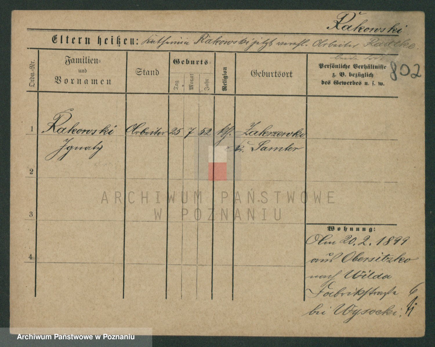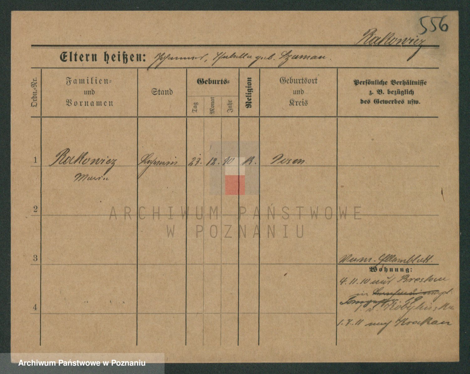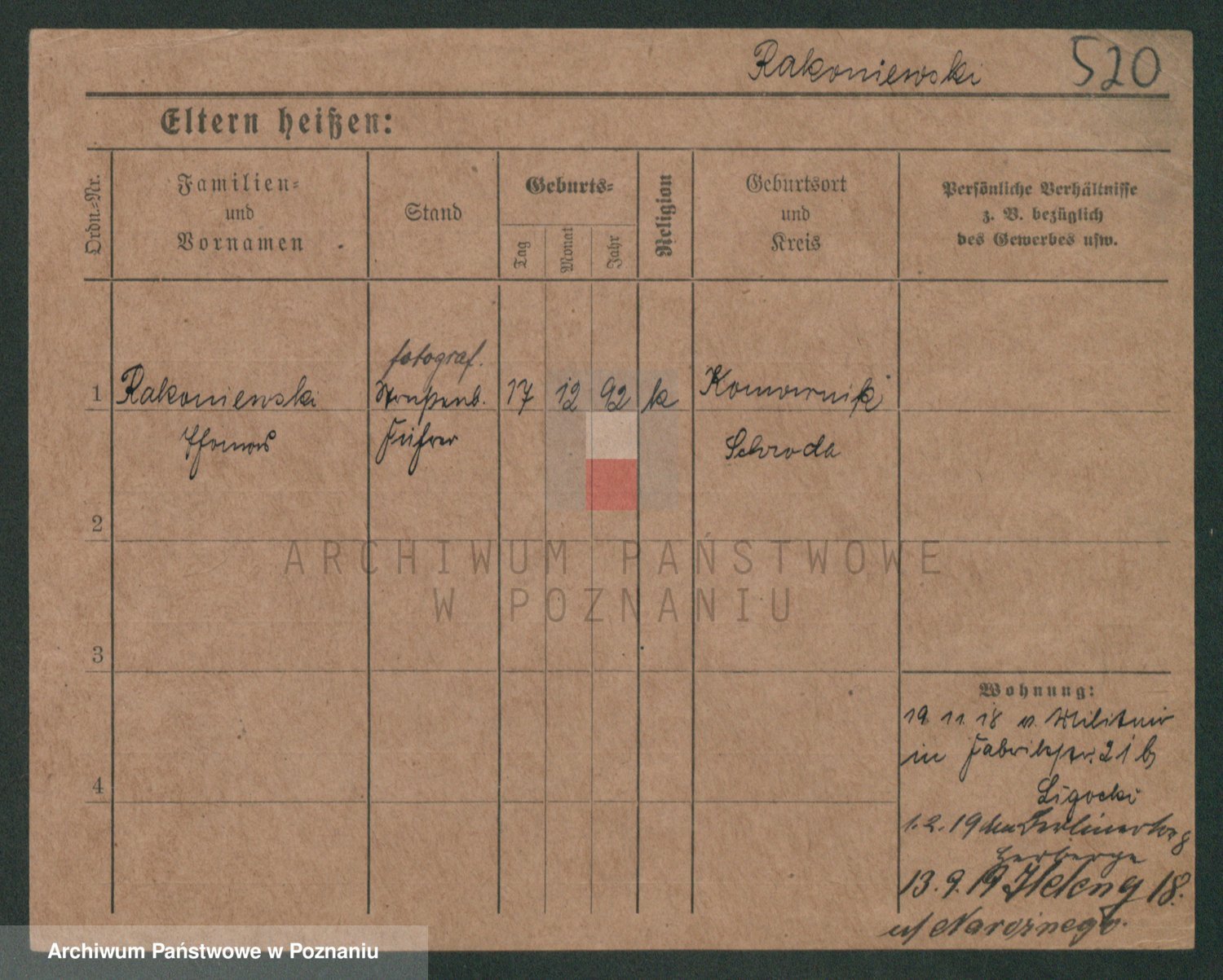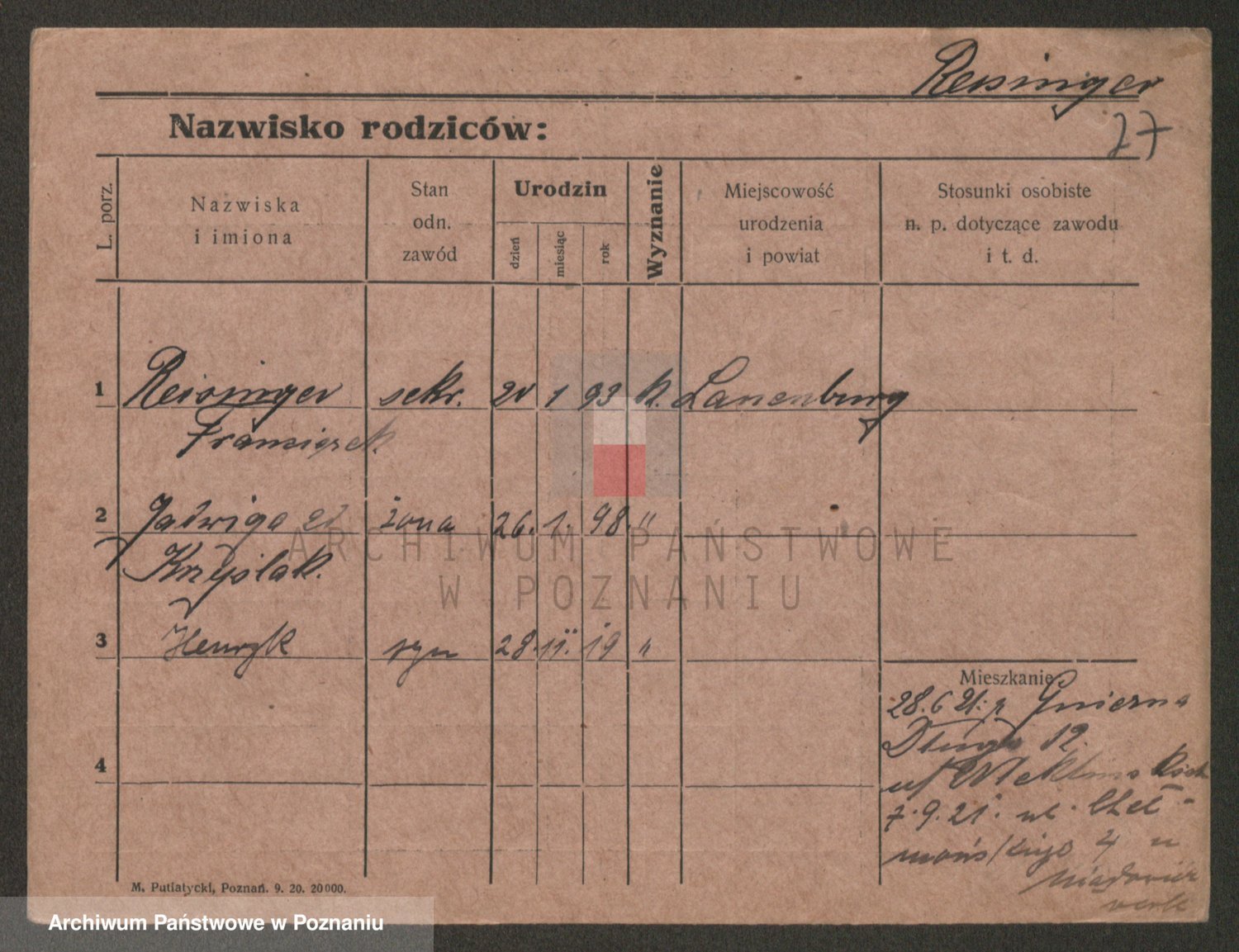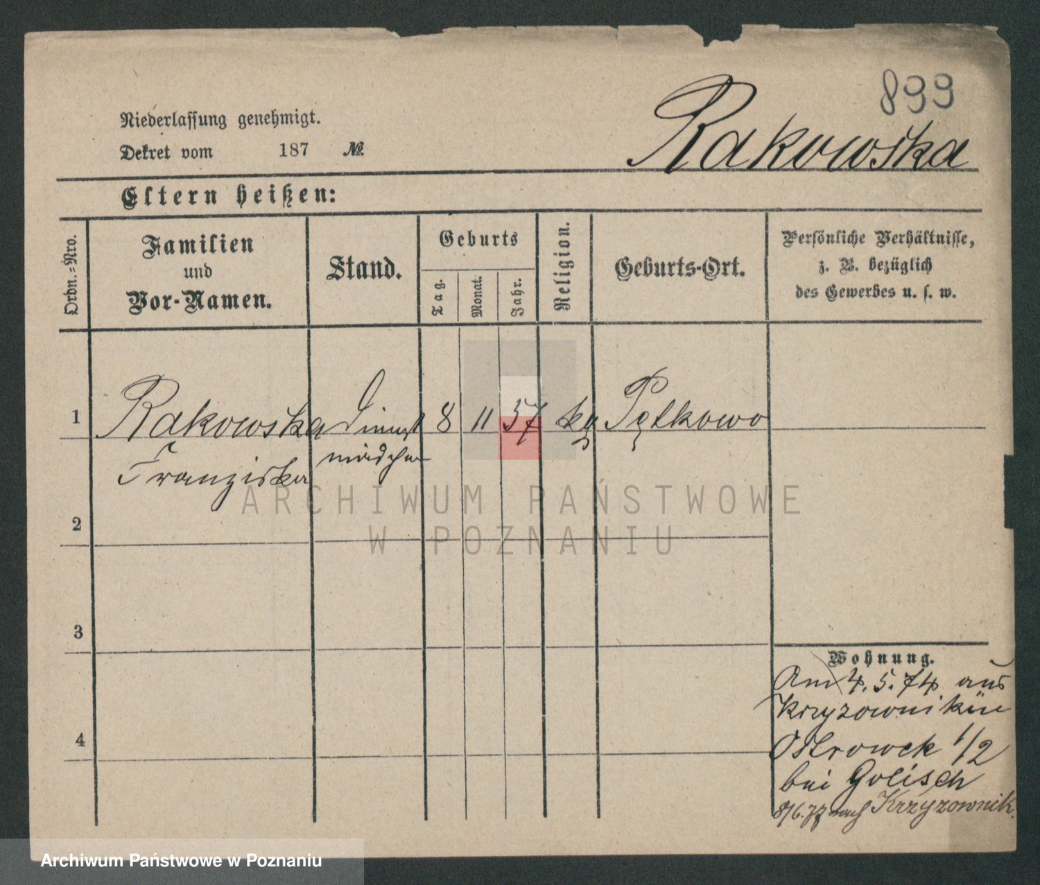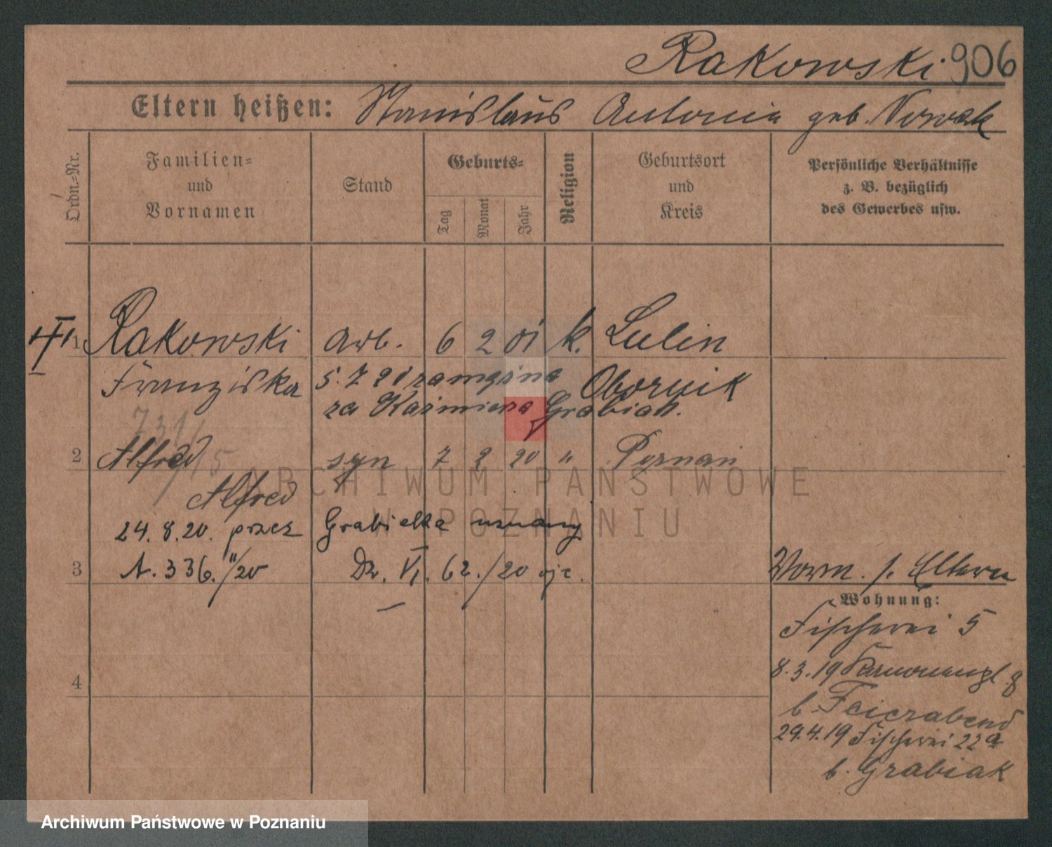 Podgląd karty osobowej dostępny jest po kliknięciu na nazwisko lub ikonkę karty. Można dokonywać powiększenia (ikony na górze) lub przechodzić między kolejnymi skanami (strzałki po bokach).