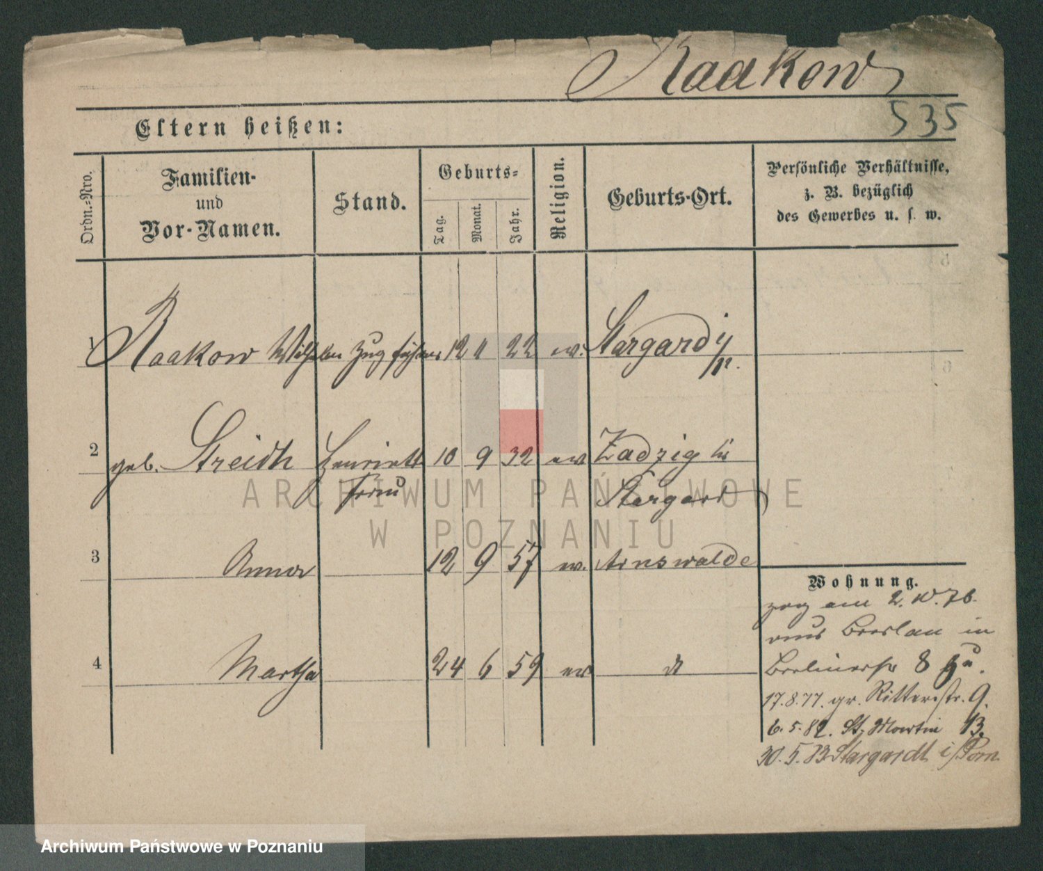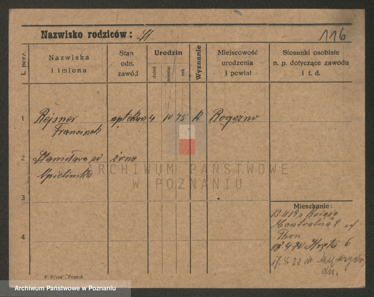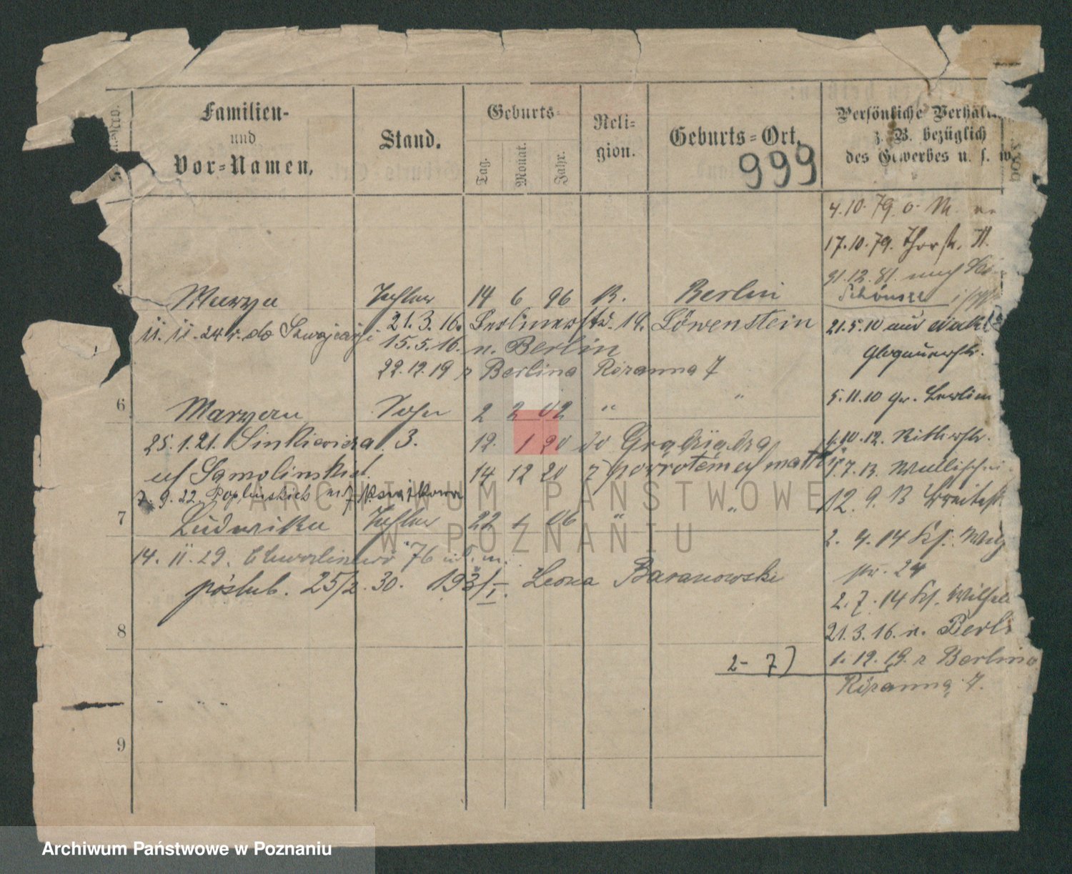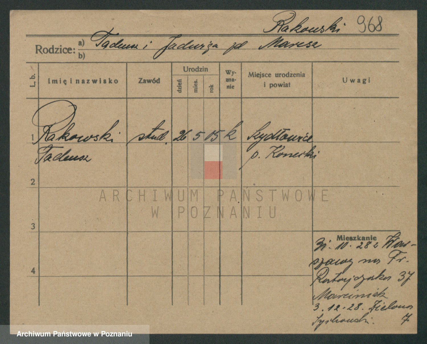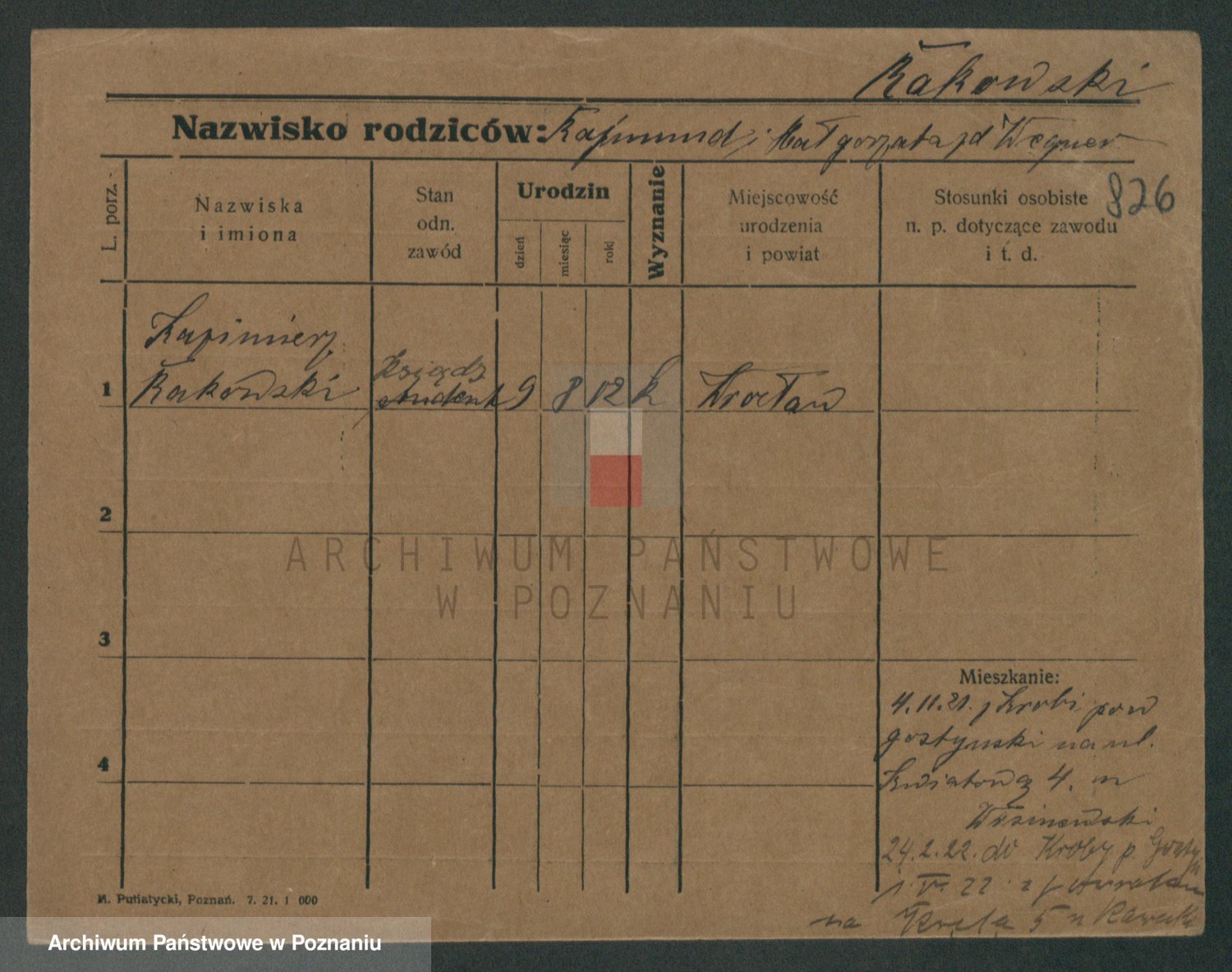 Podgląd karty osobowej dostępny jest po kliknięciu na nazwisko lub ikonkę karty. Można dokonywać powiększenia (ikony na górze) lub przechodzić między kolejnymi skanami (strzałki po bokach).