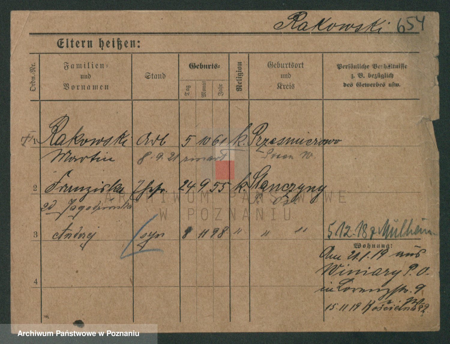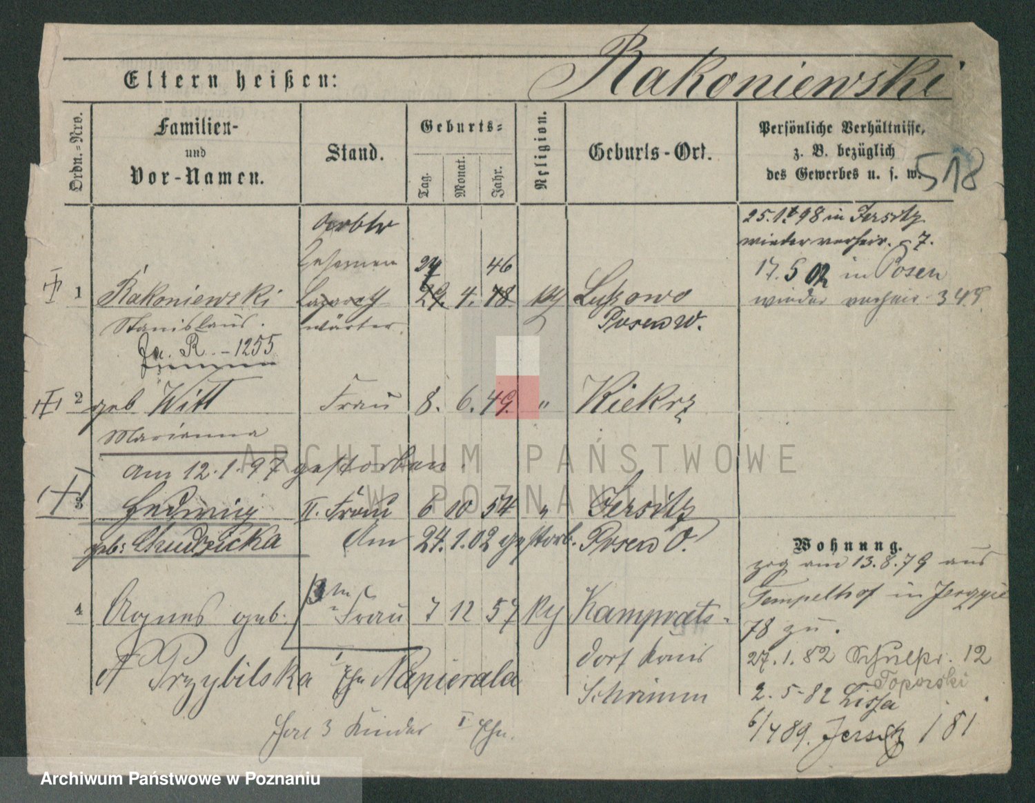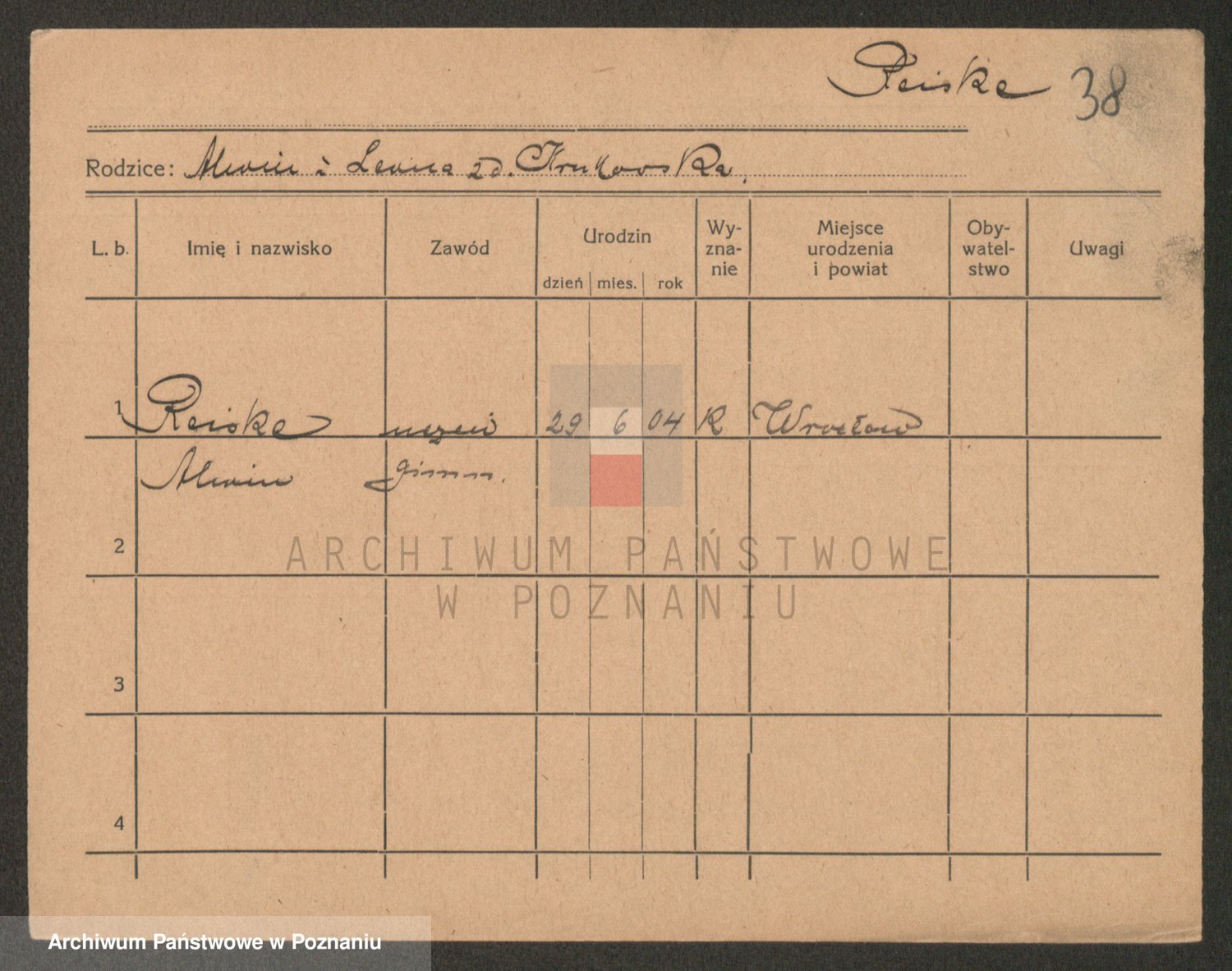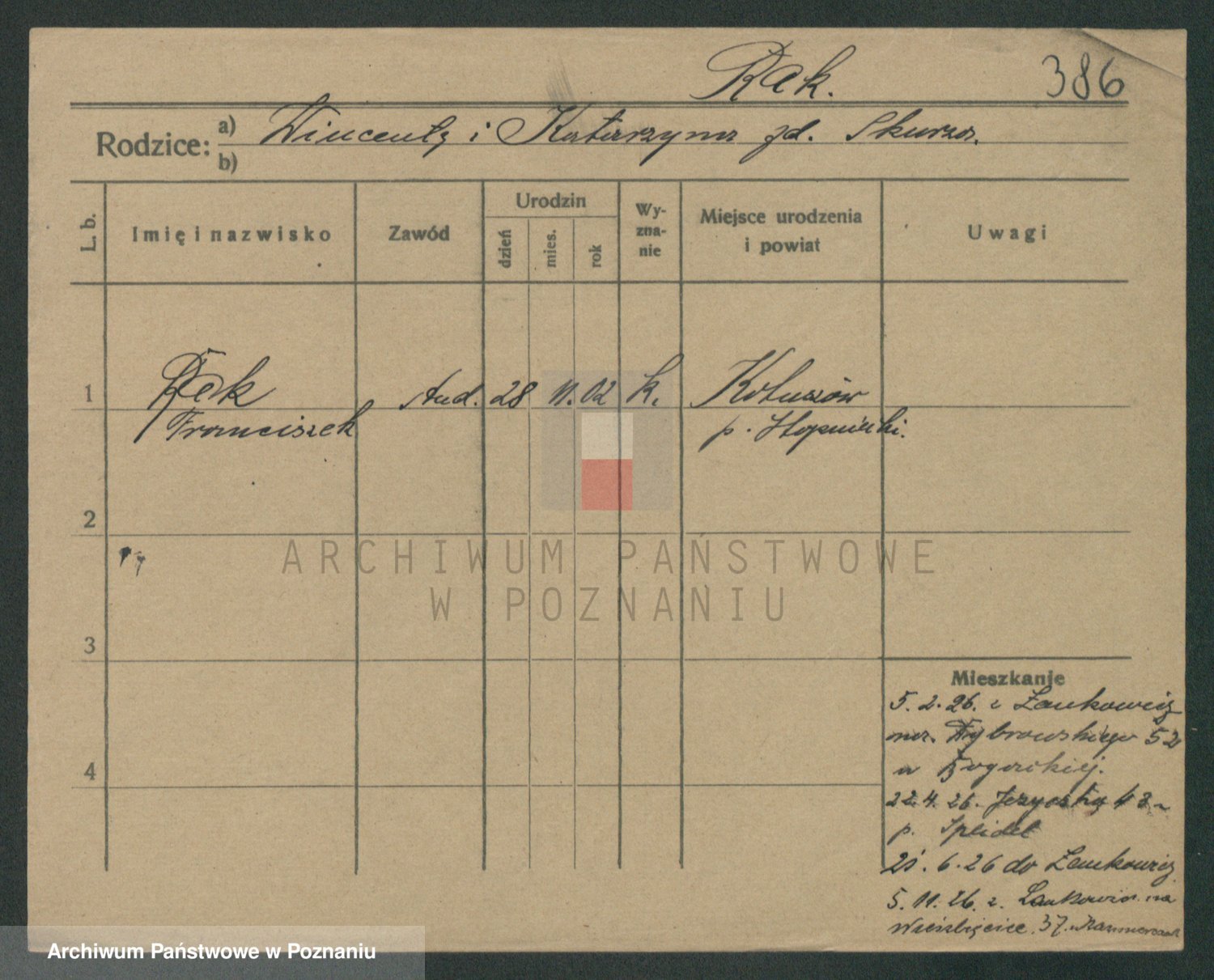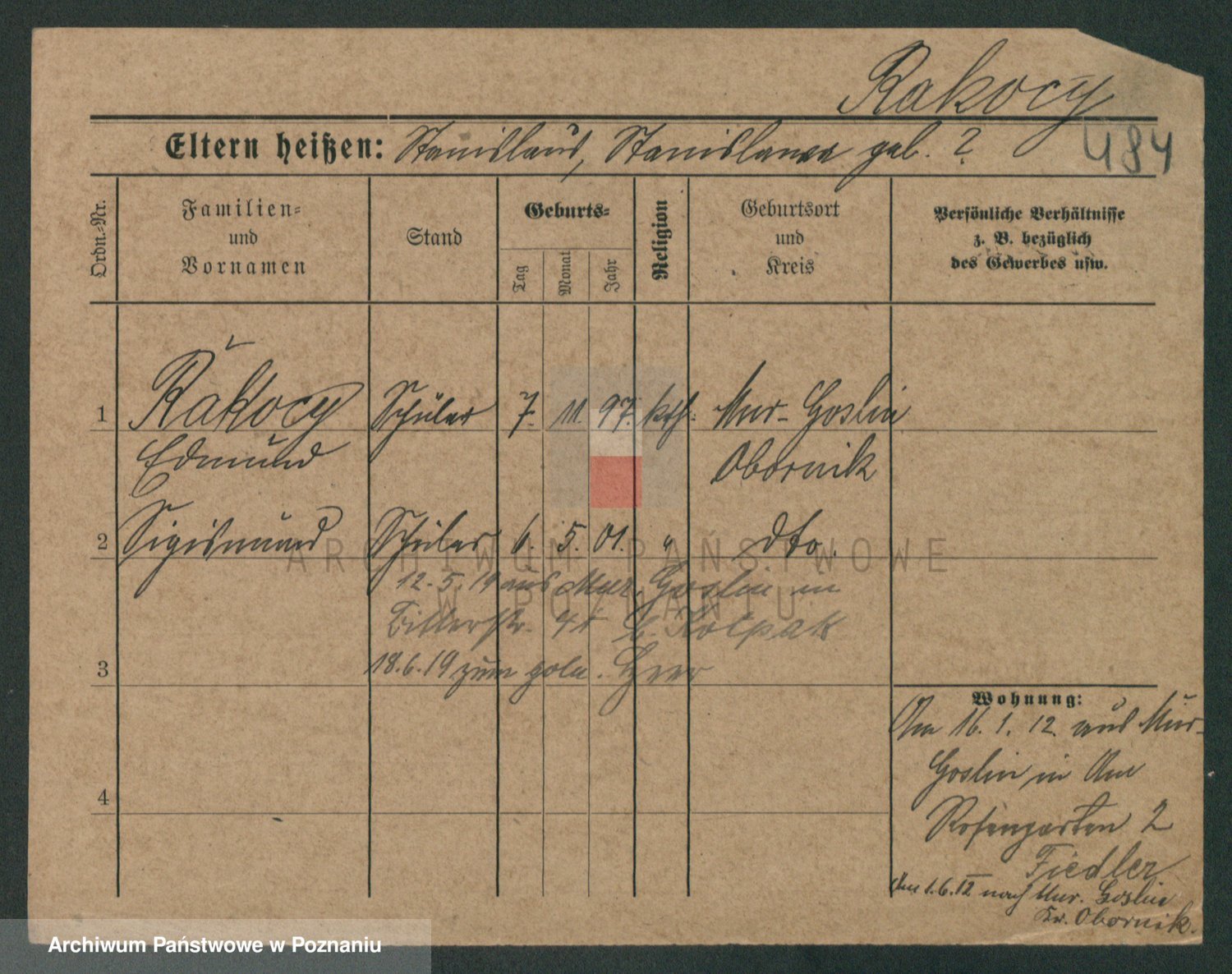 Podgląd karty osobowej dostępny jest po kliknięciu na nazwisko lub ikonkę karty. Można dokonywać powiększenia (ikony na górze) lub przechodzić między kolejnymi skanami (strzałki po bokach).