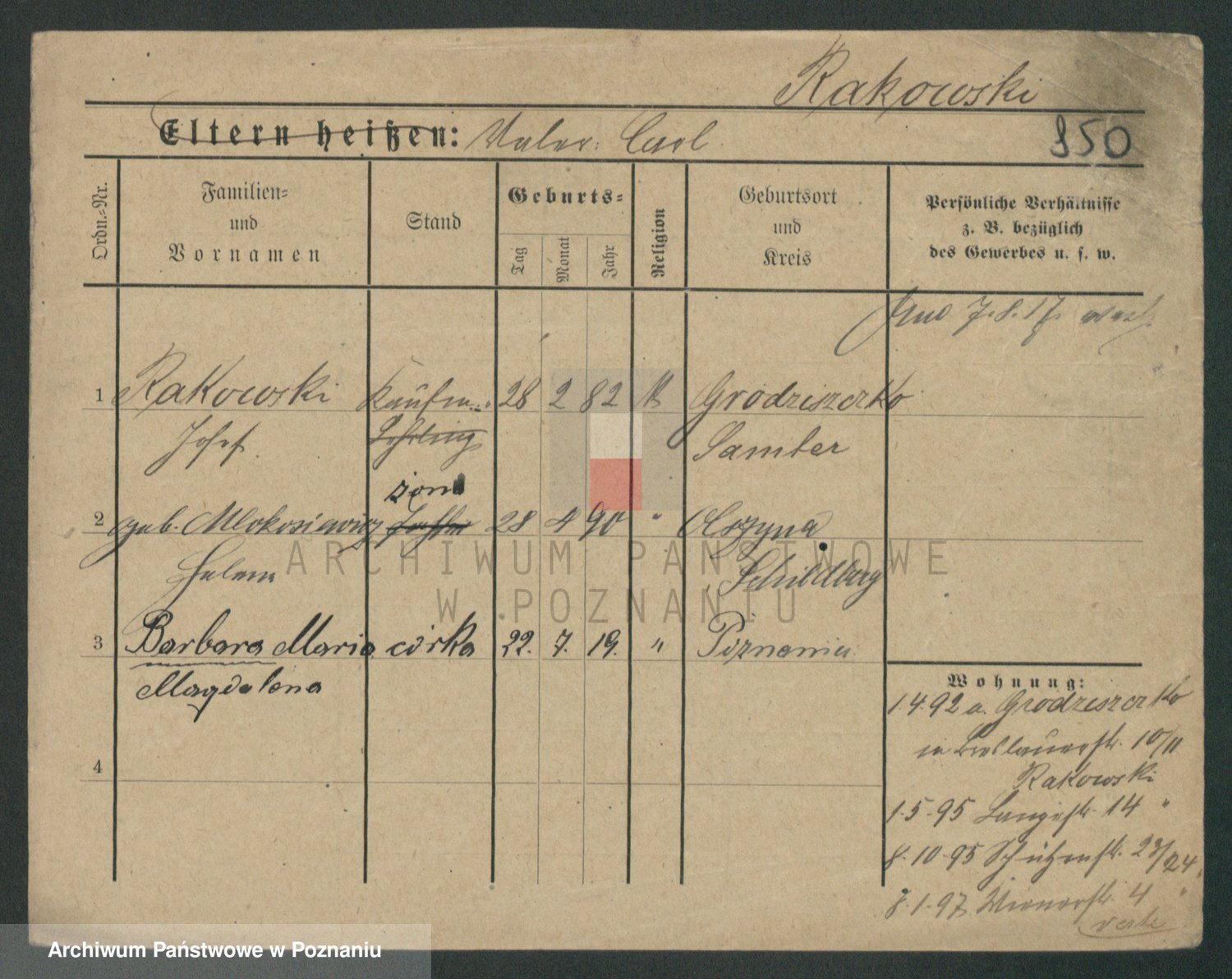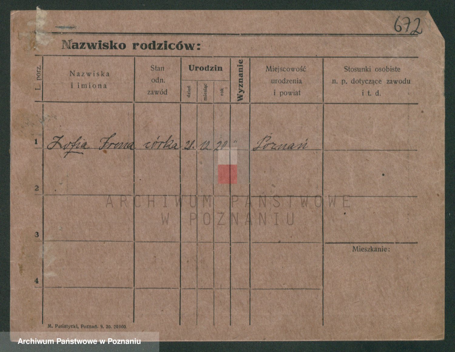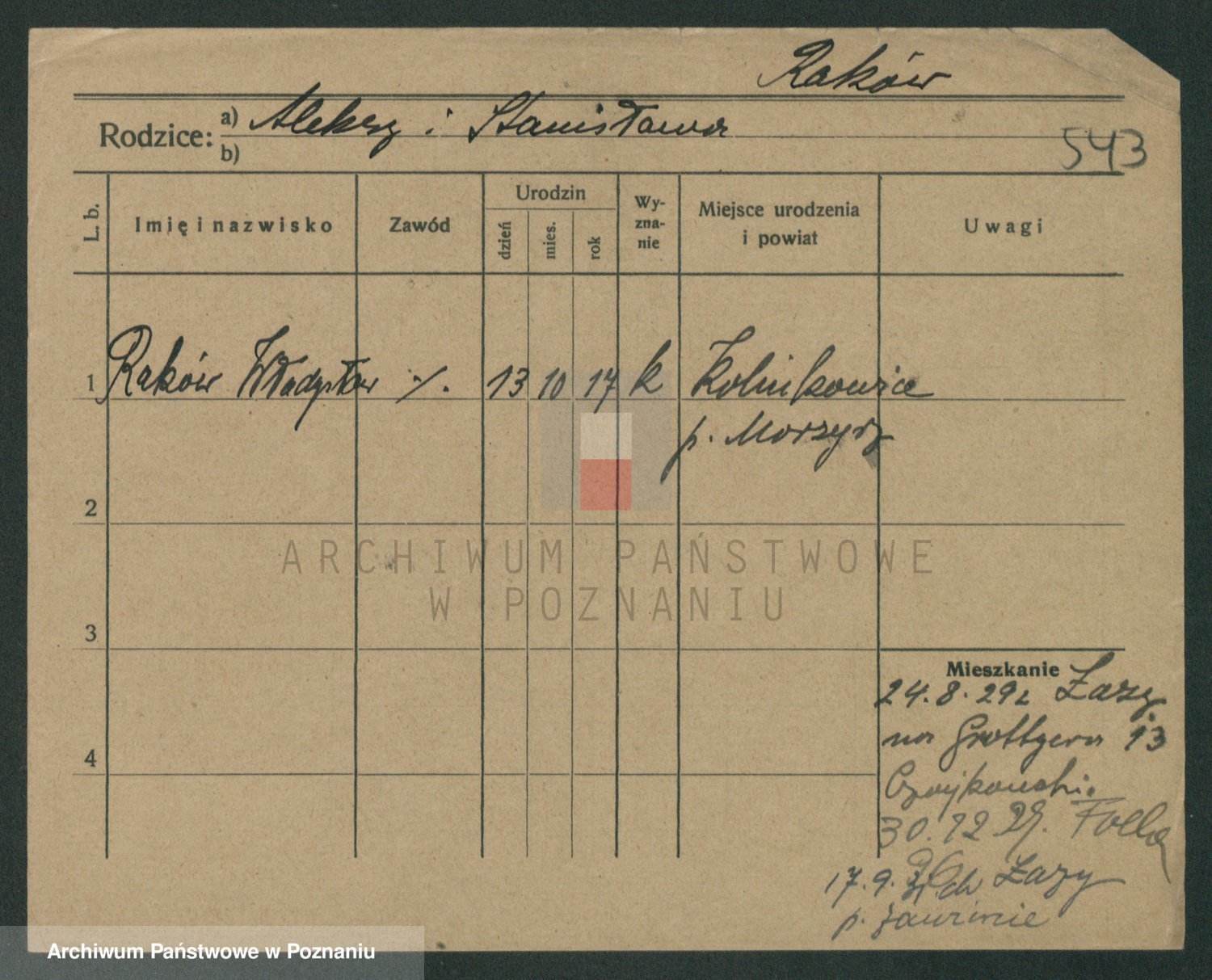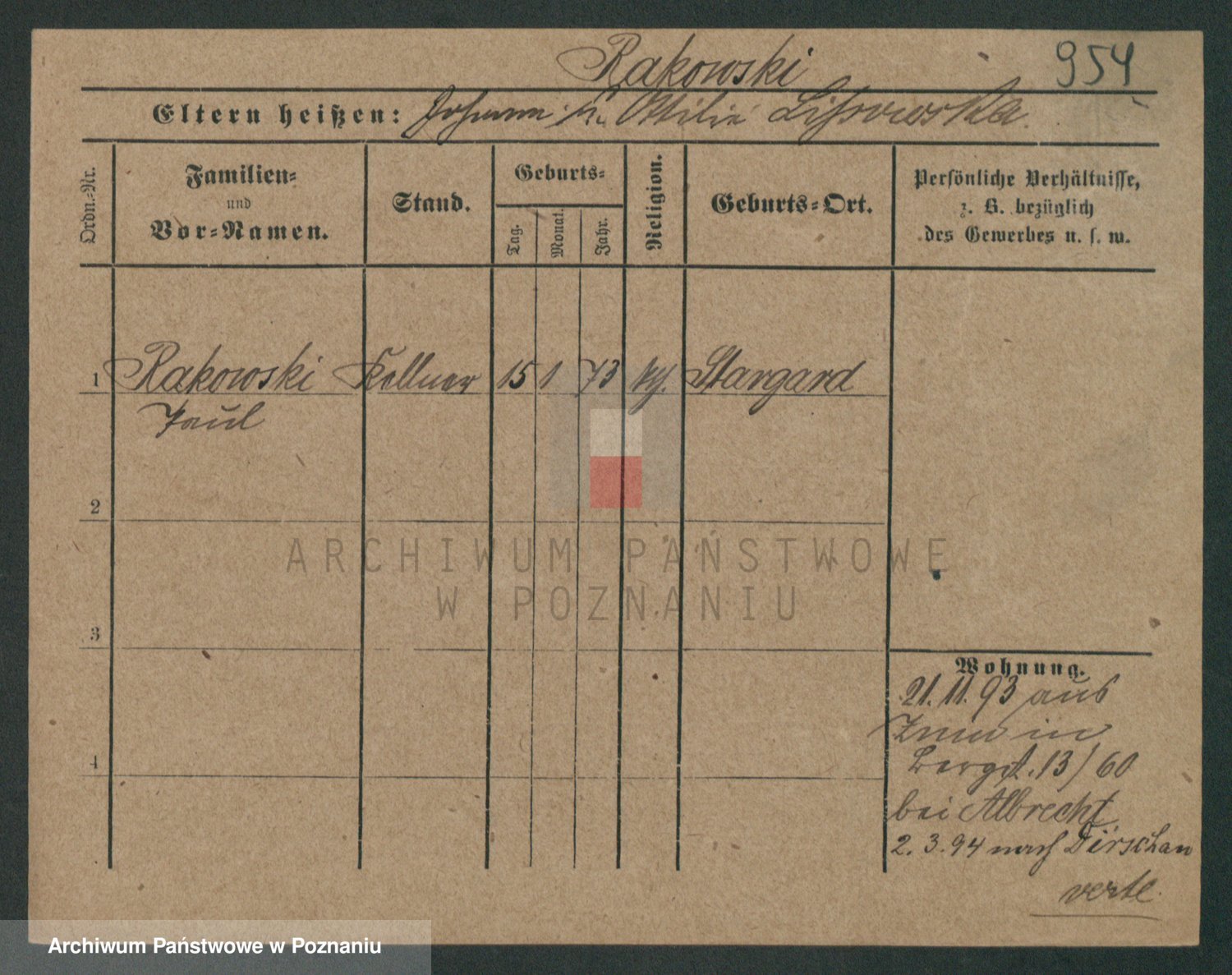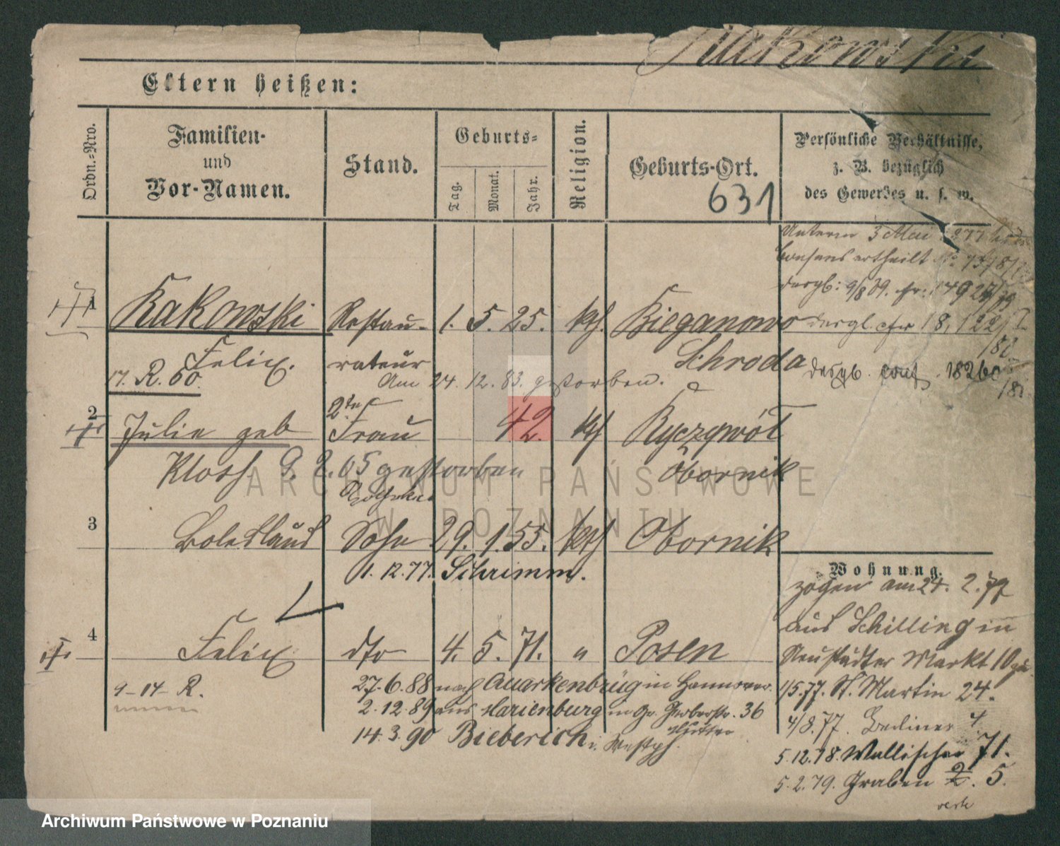 Podgląd karty osobowej dostępny jest po kliknięciu na nazwisko lub ikonkę karty. Można dokonywać powiększenia (ikony na górze) lub przechodzić między kolejnymi skanami (strzałki po bokach).
