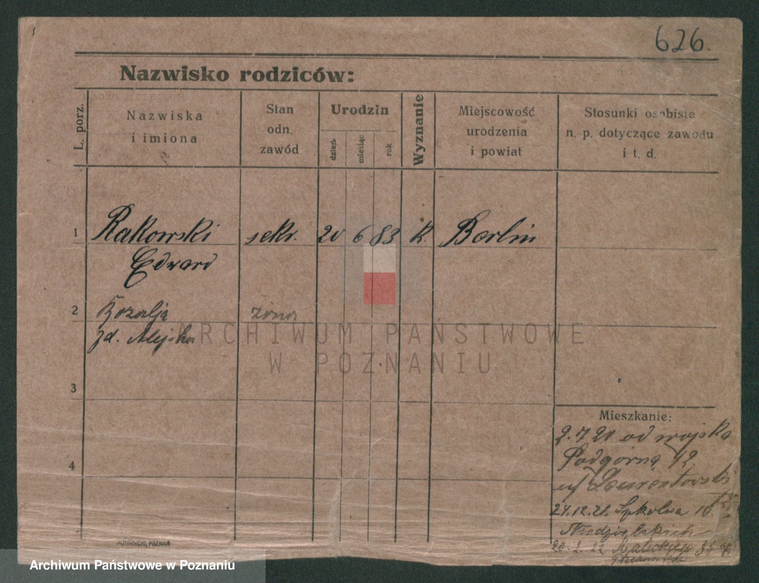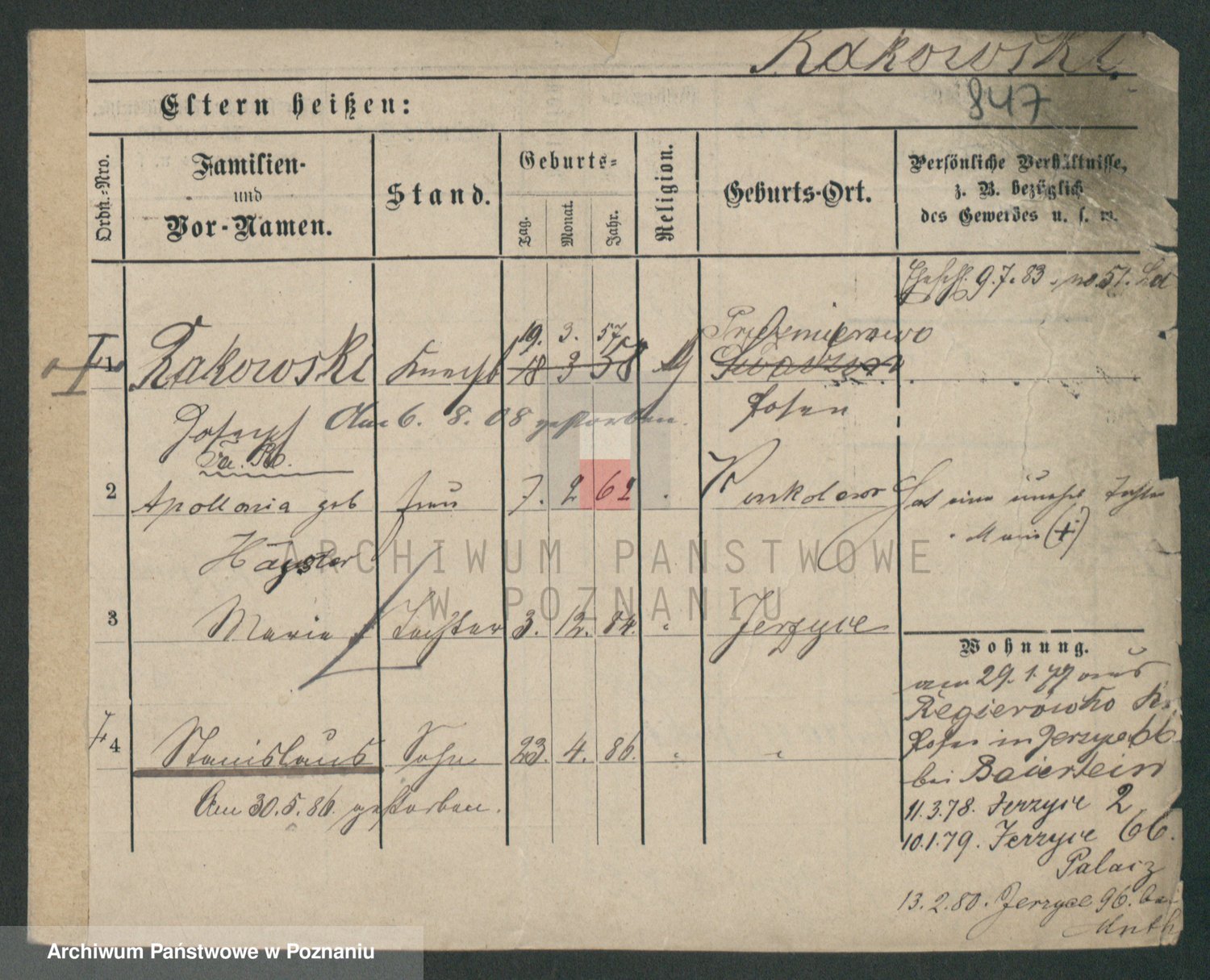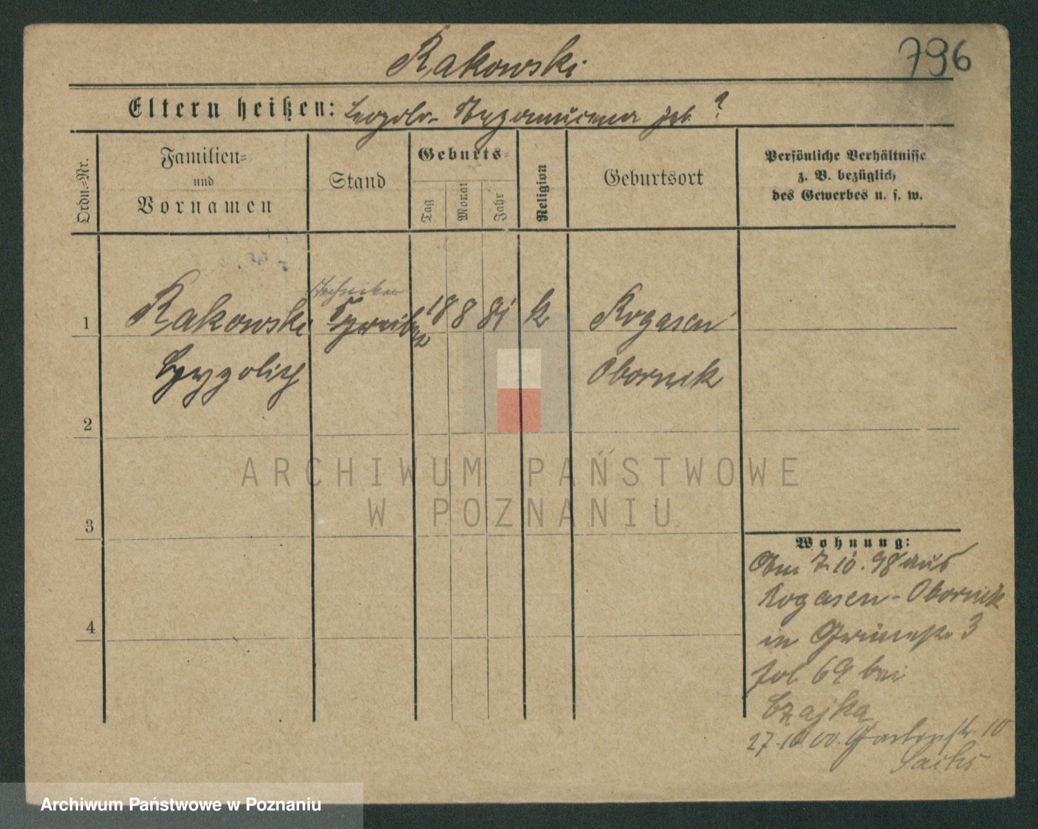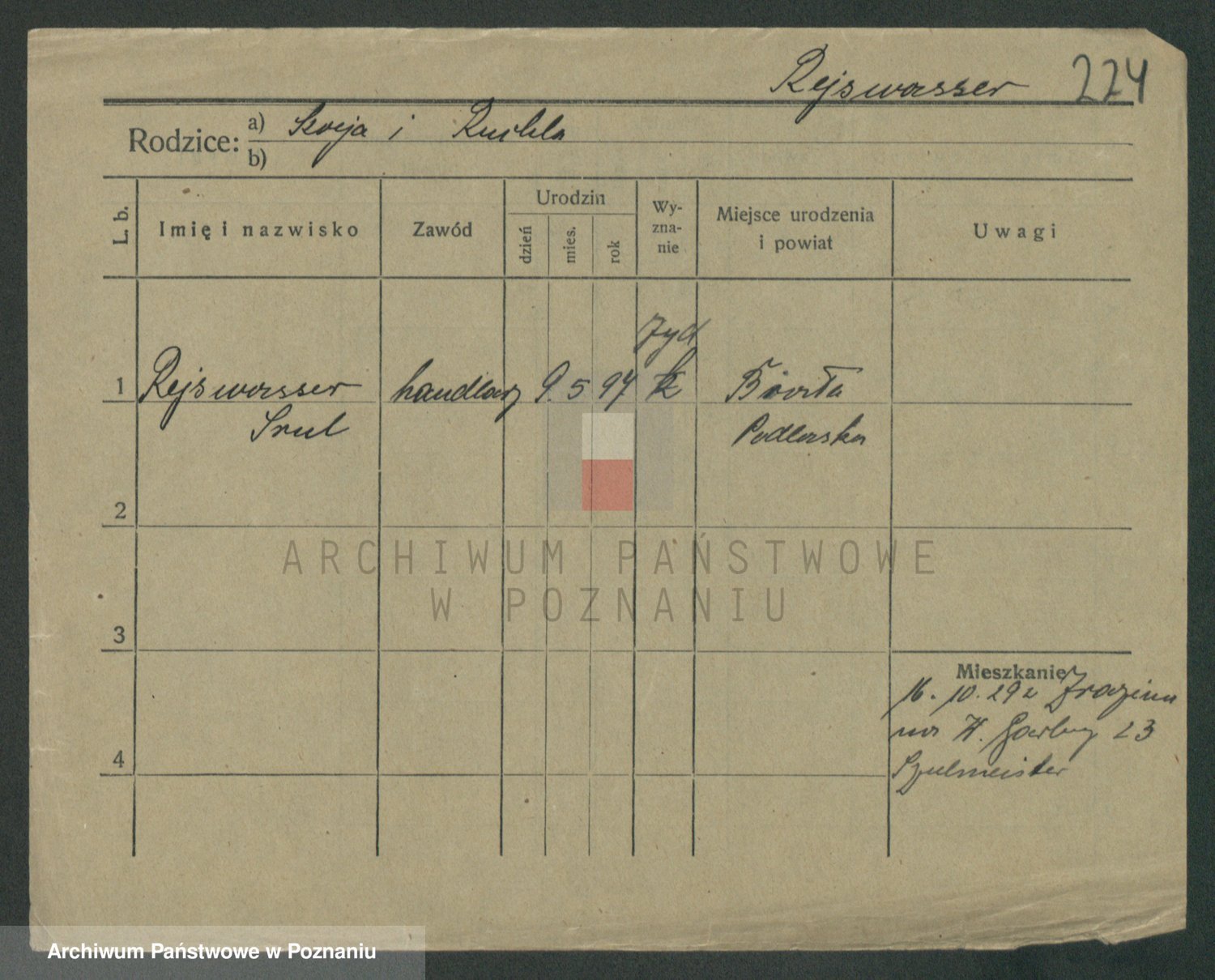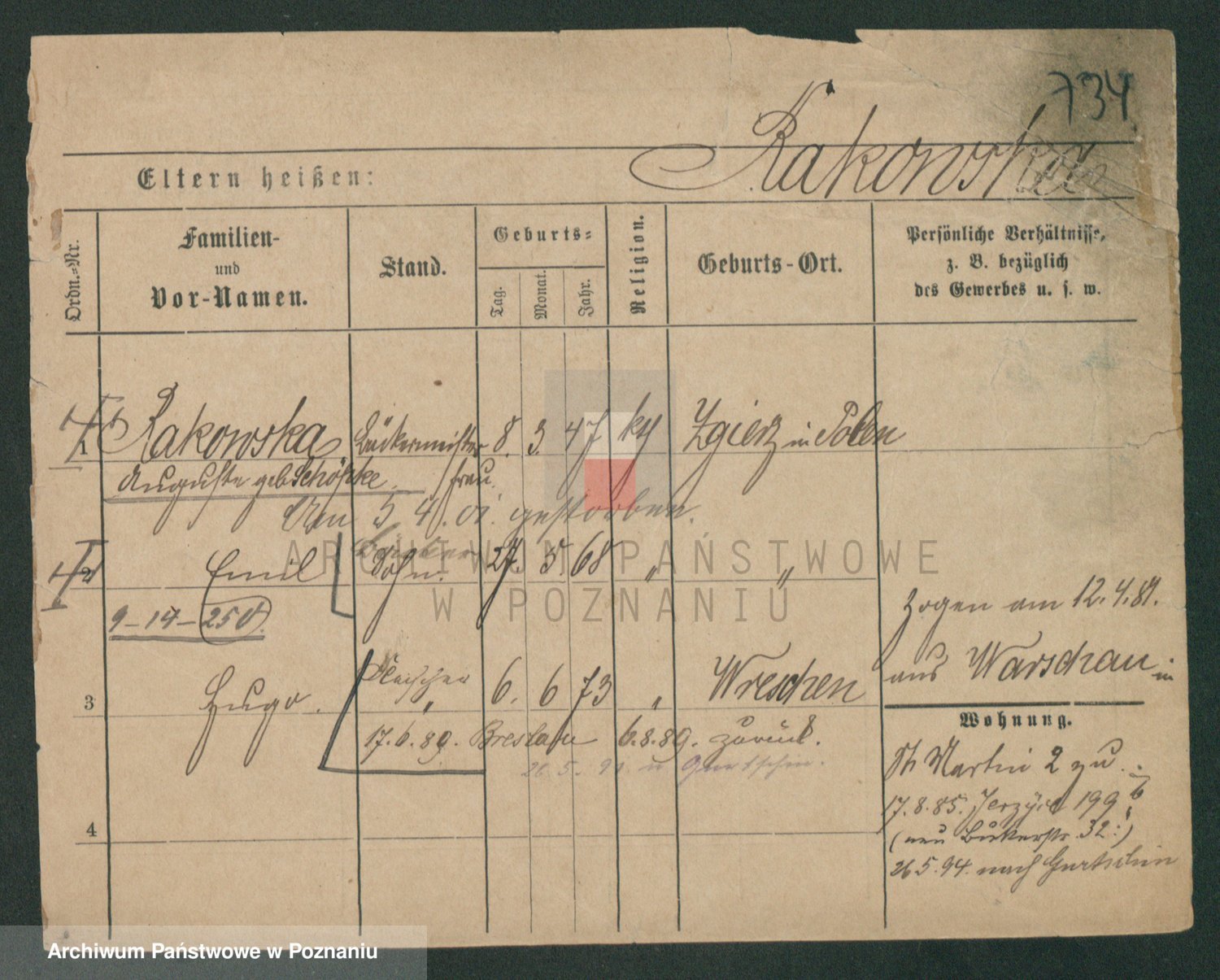 Podgląd karty osobowej dostępny jest po kliknięciu na nazwisko lub ikonkę karty. Można dokonywać powiększenia (ikony na górze) lub przechodzić między kolejnymi skanami (strzałki po bokach).