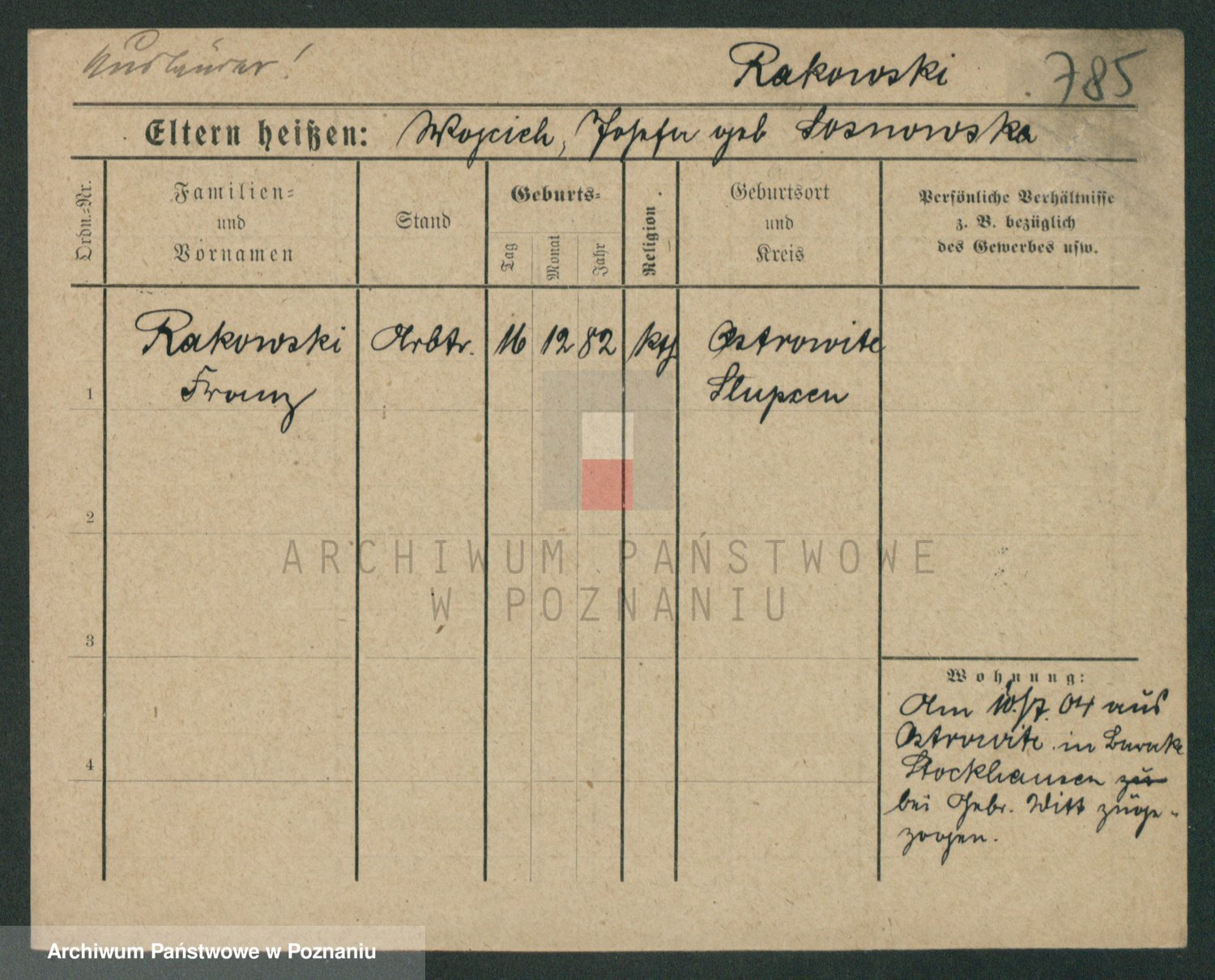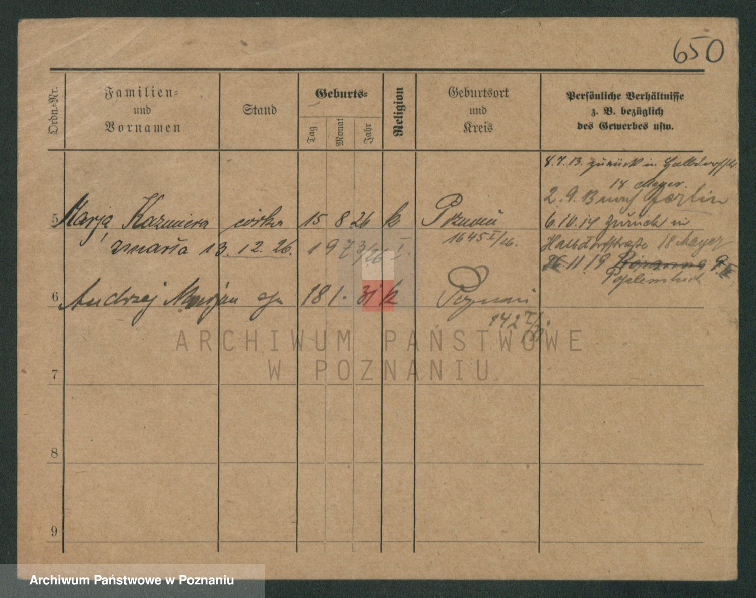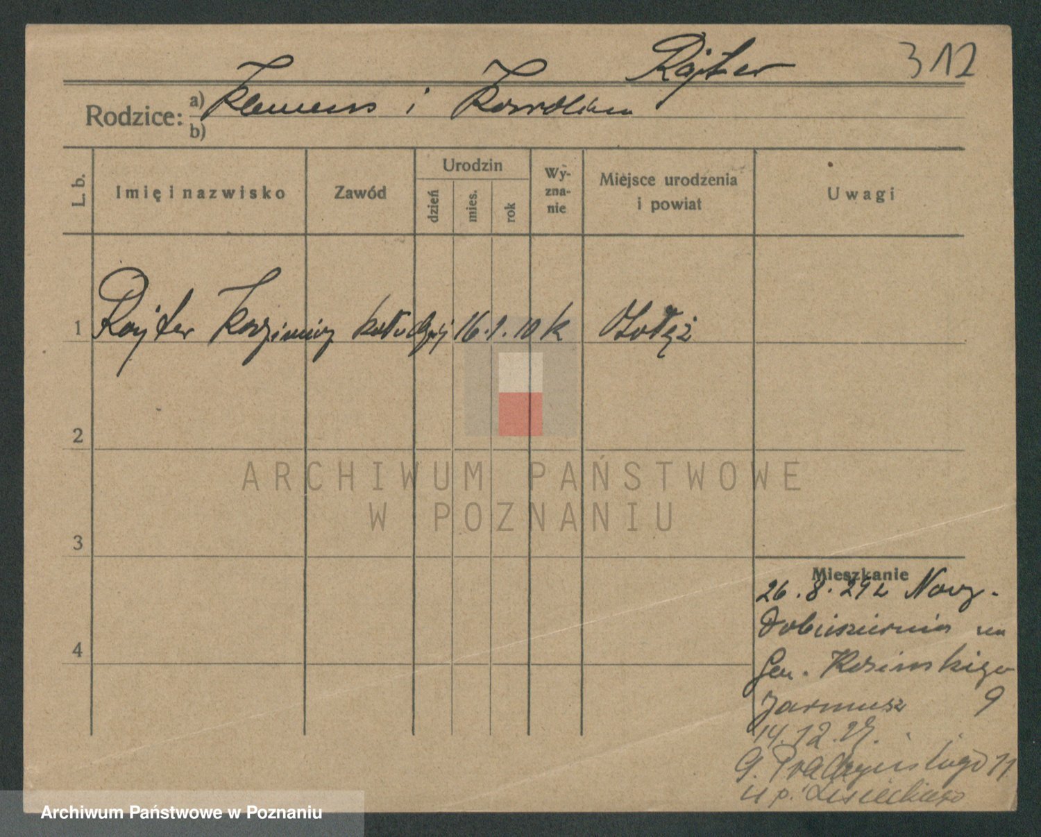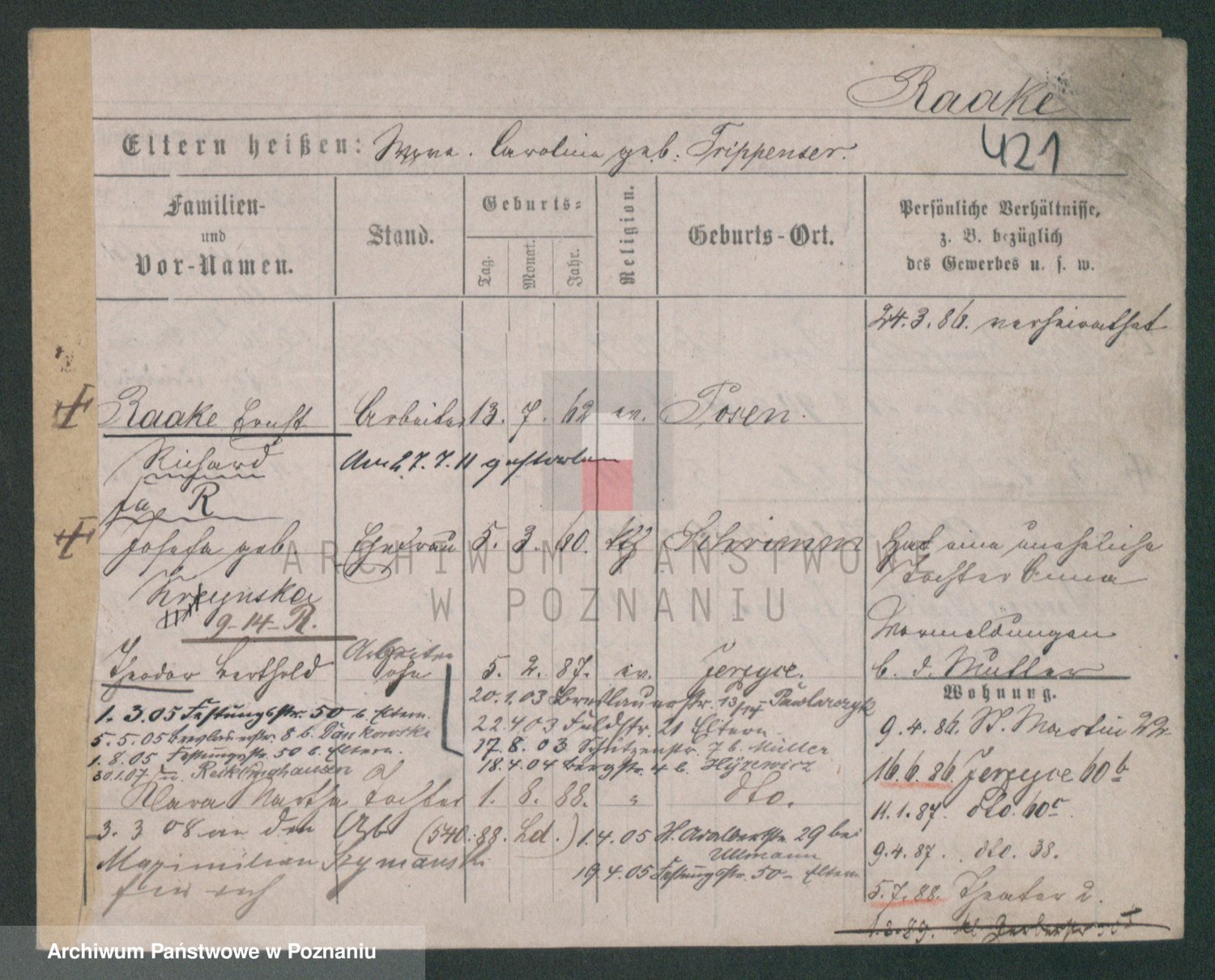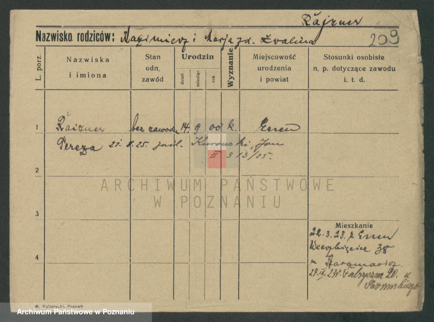 Podgląd karty osobowej dostępny jest po kliknięciu na nazwisko lub ikonkę karty. Można dokonywać powiększenia (ikony na górze) lub przechodzić między kolejnymi skanami (strzałki po bokach).