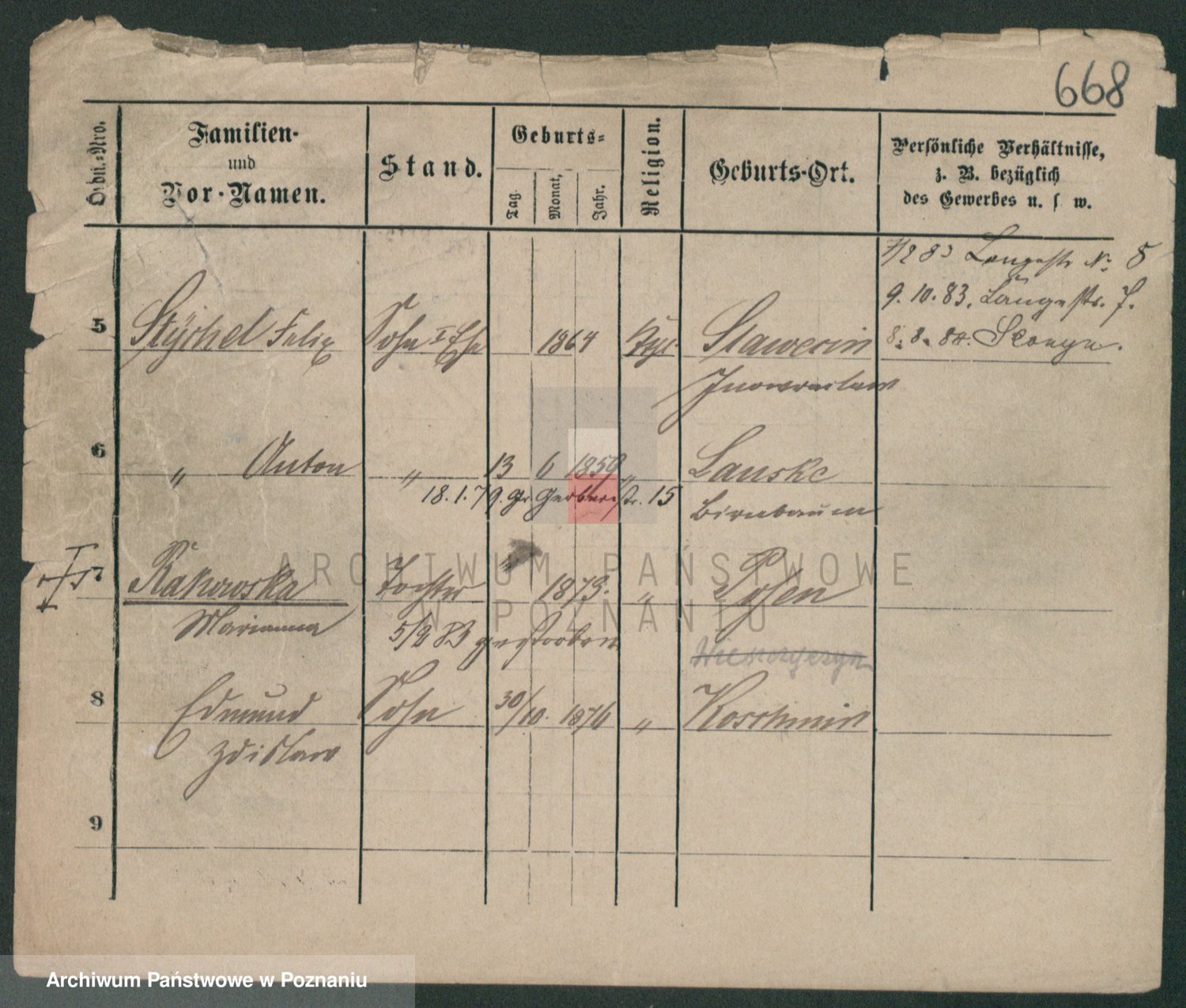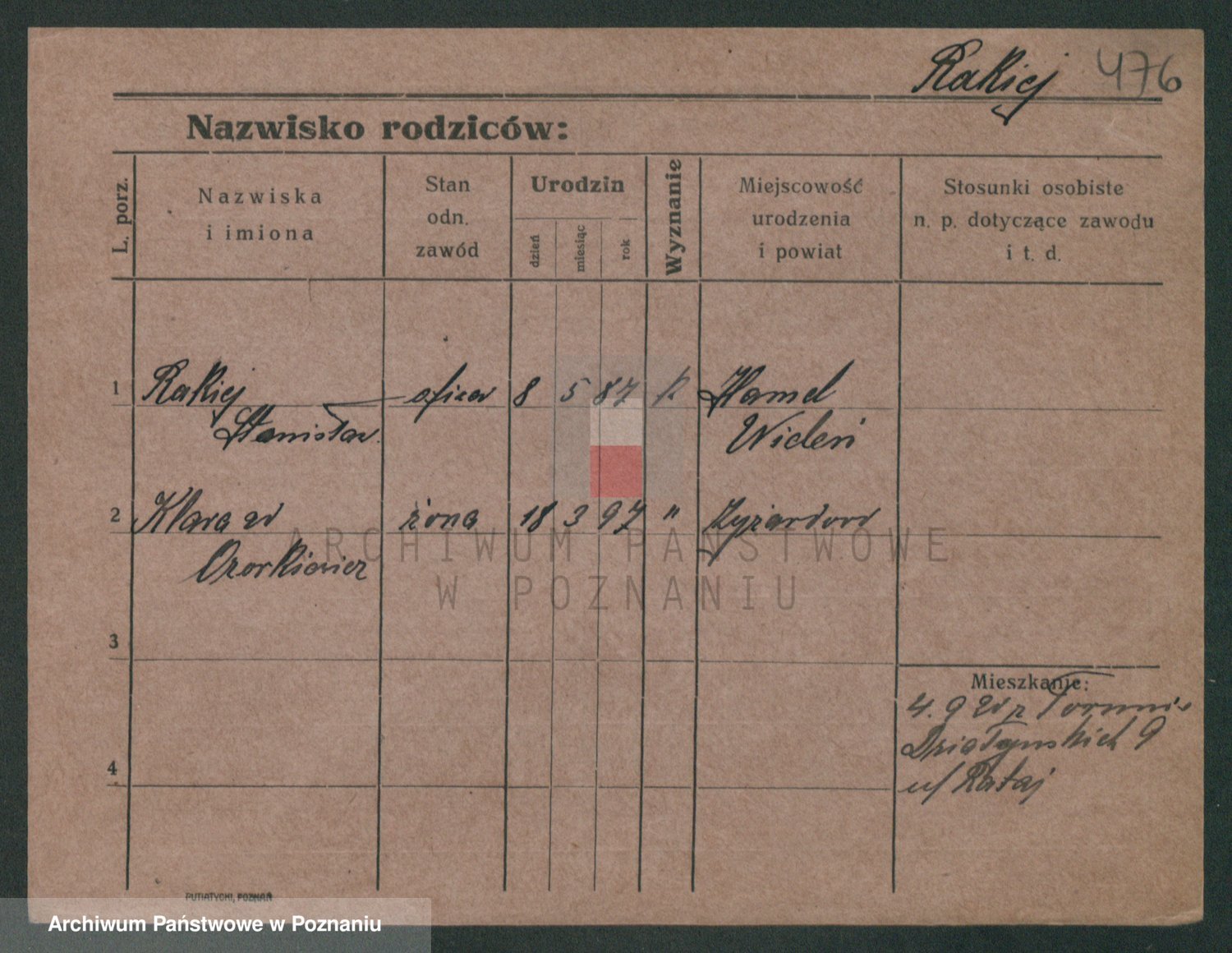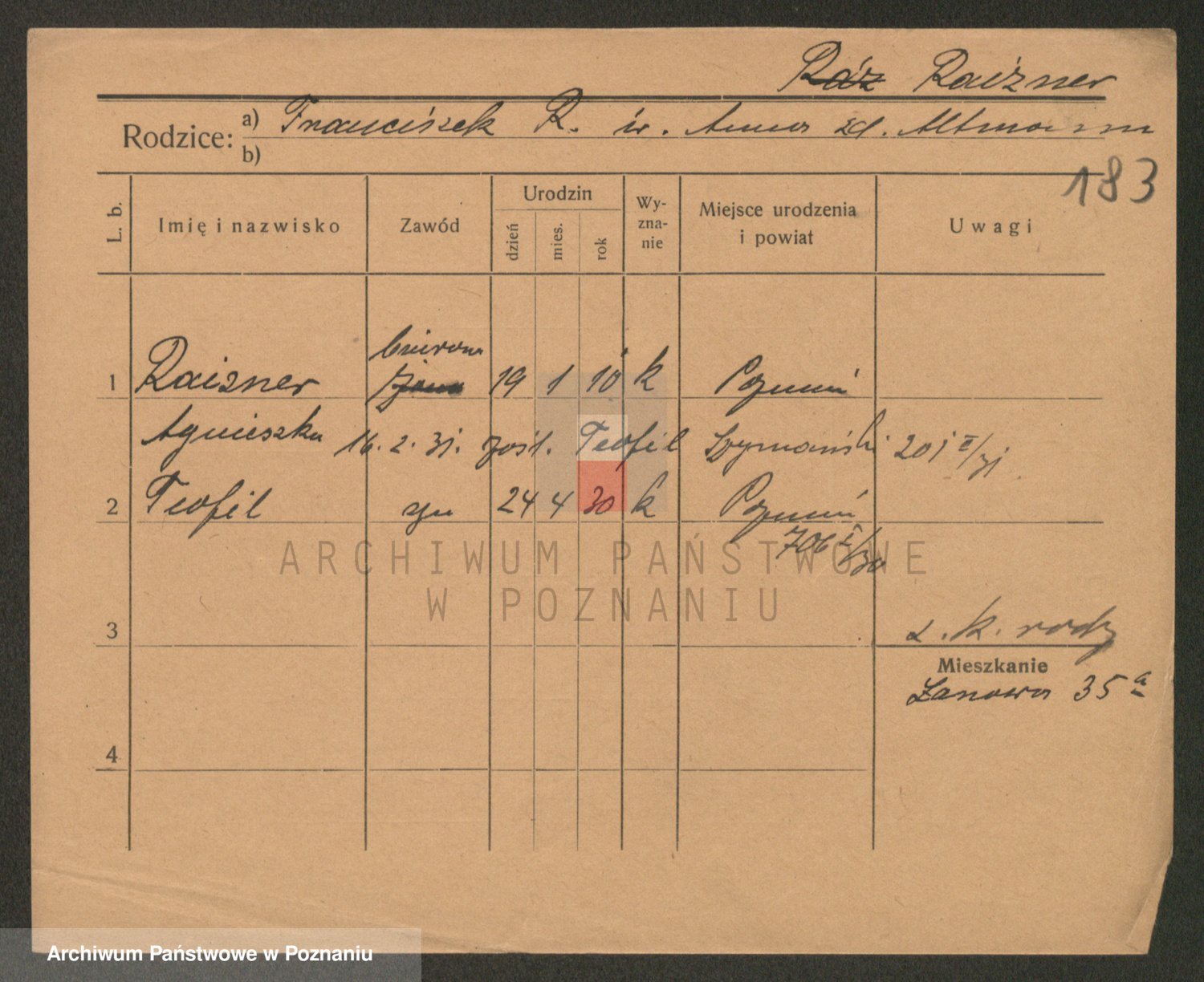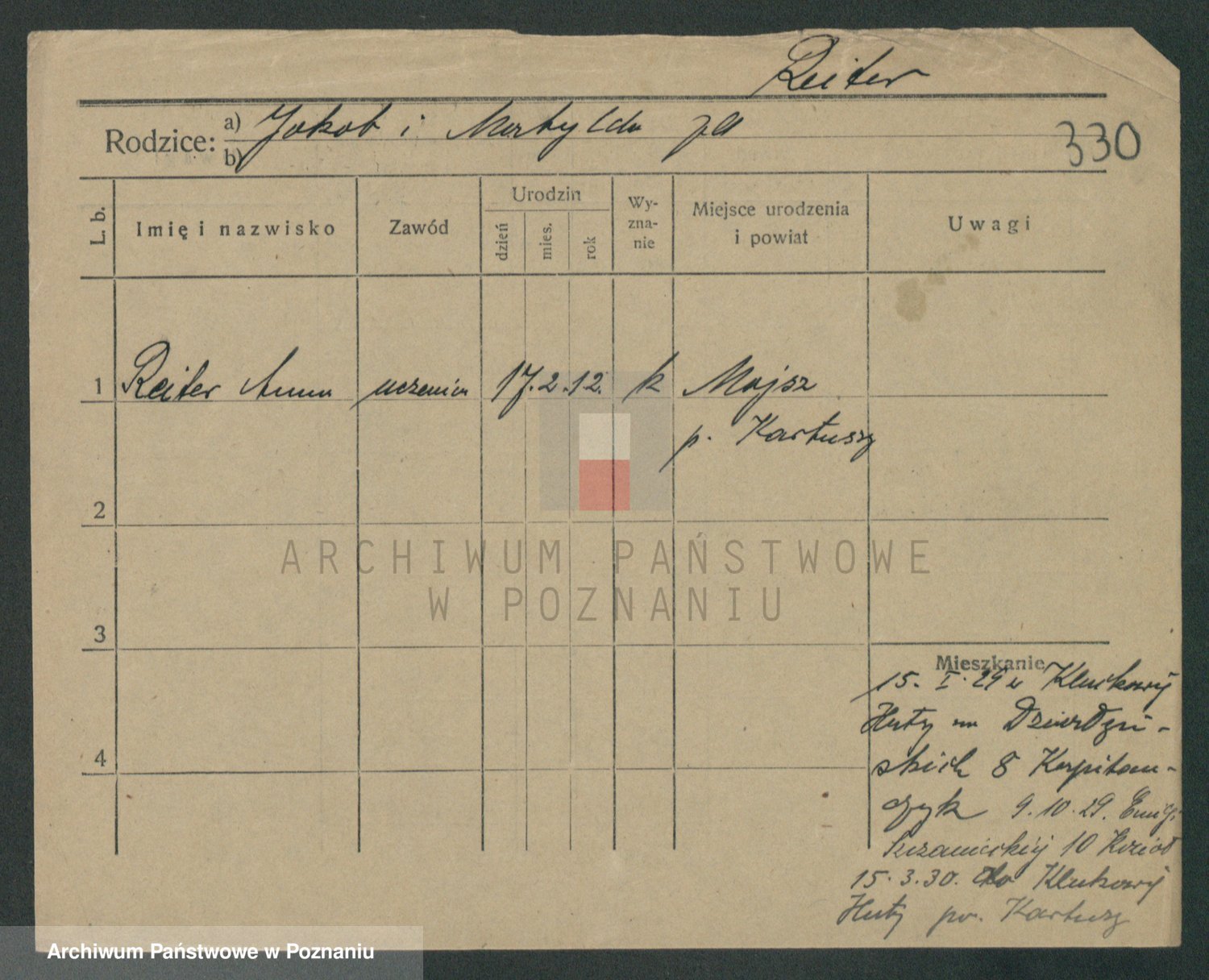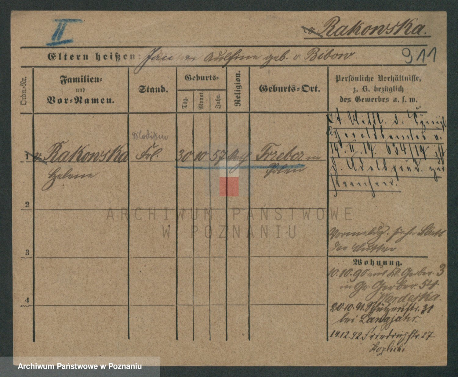 Podgląd karty osobowej dostępny jest po kliknięciu na nazwisko lub ikonkę karty. Można dokonywać powiększenia (ikony na górze) lub przechodzić między kolejnymi skanami (strzałki po bokach).