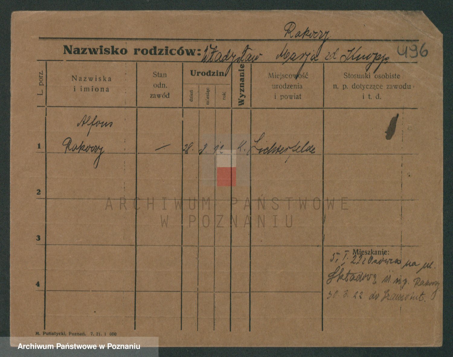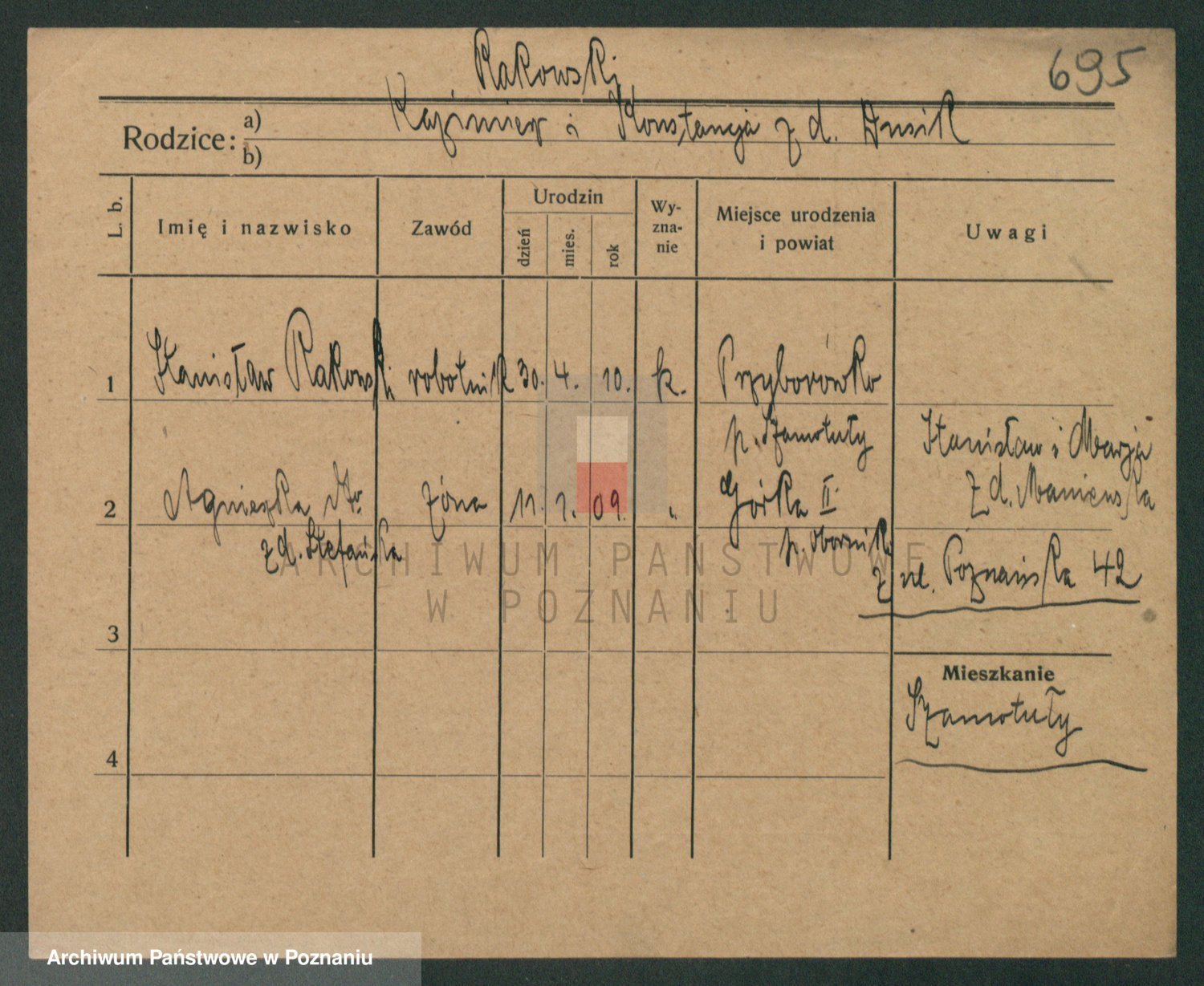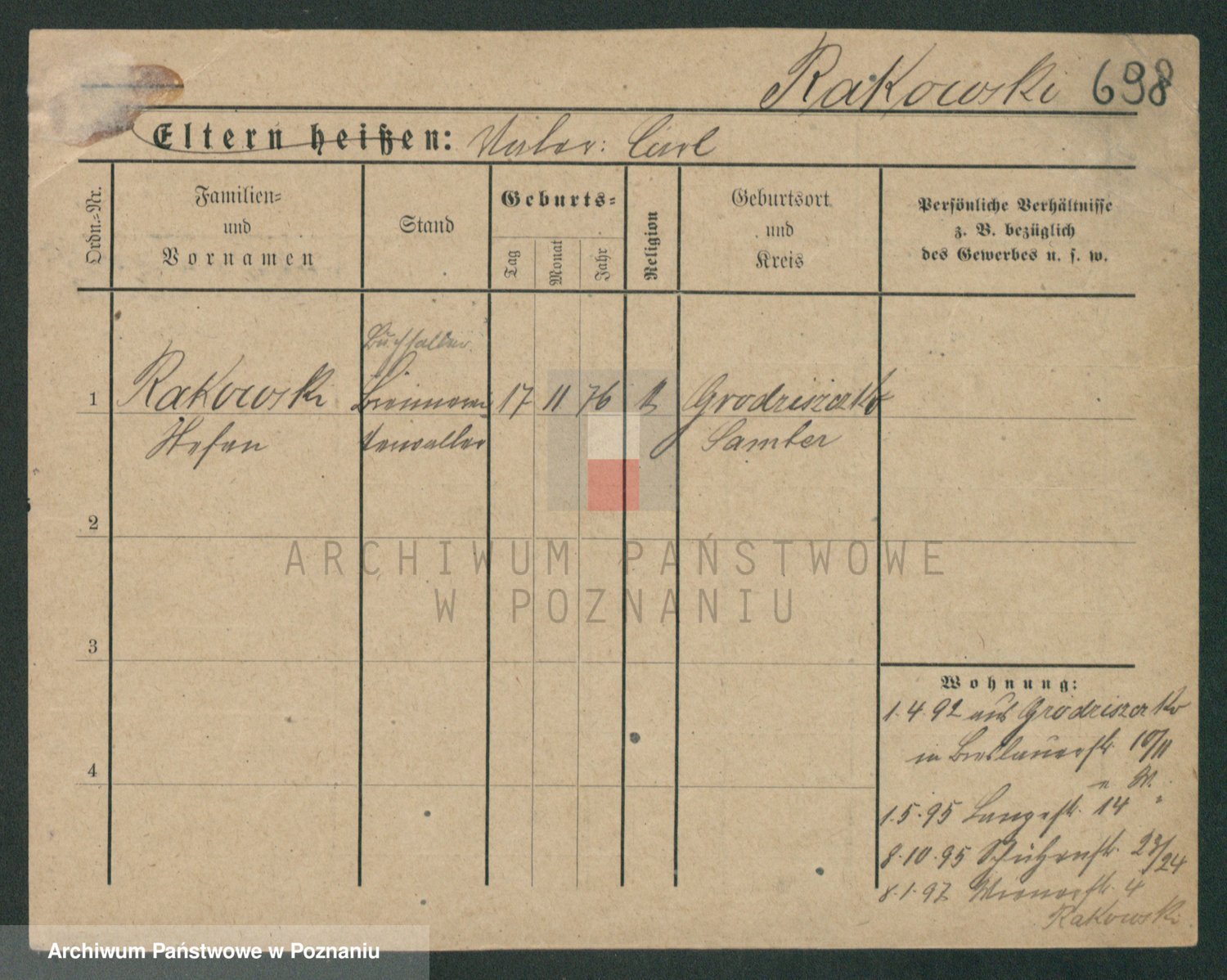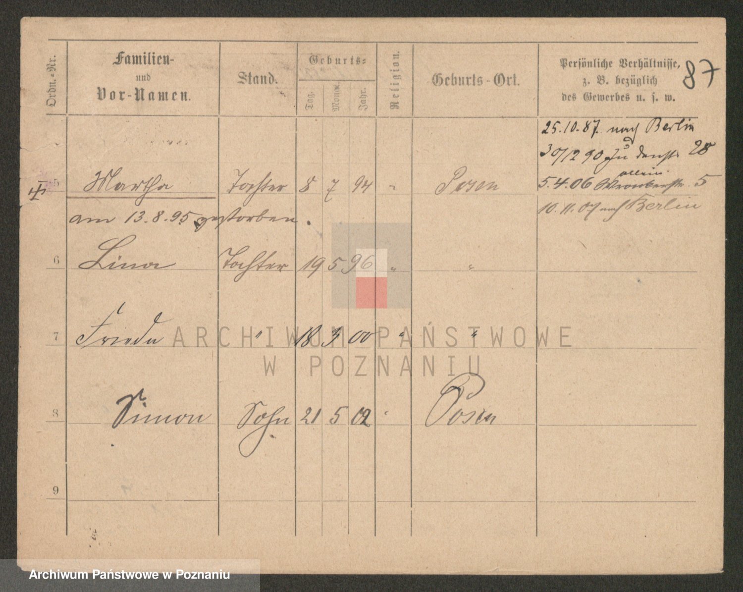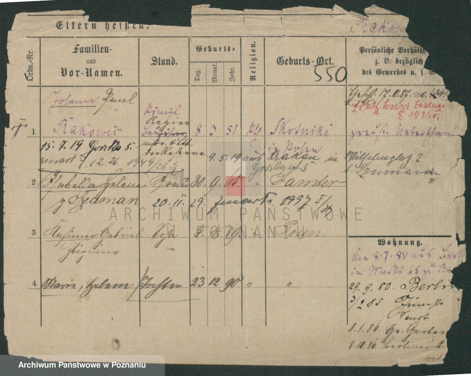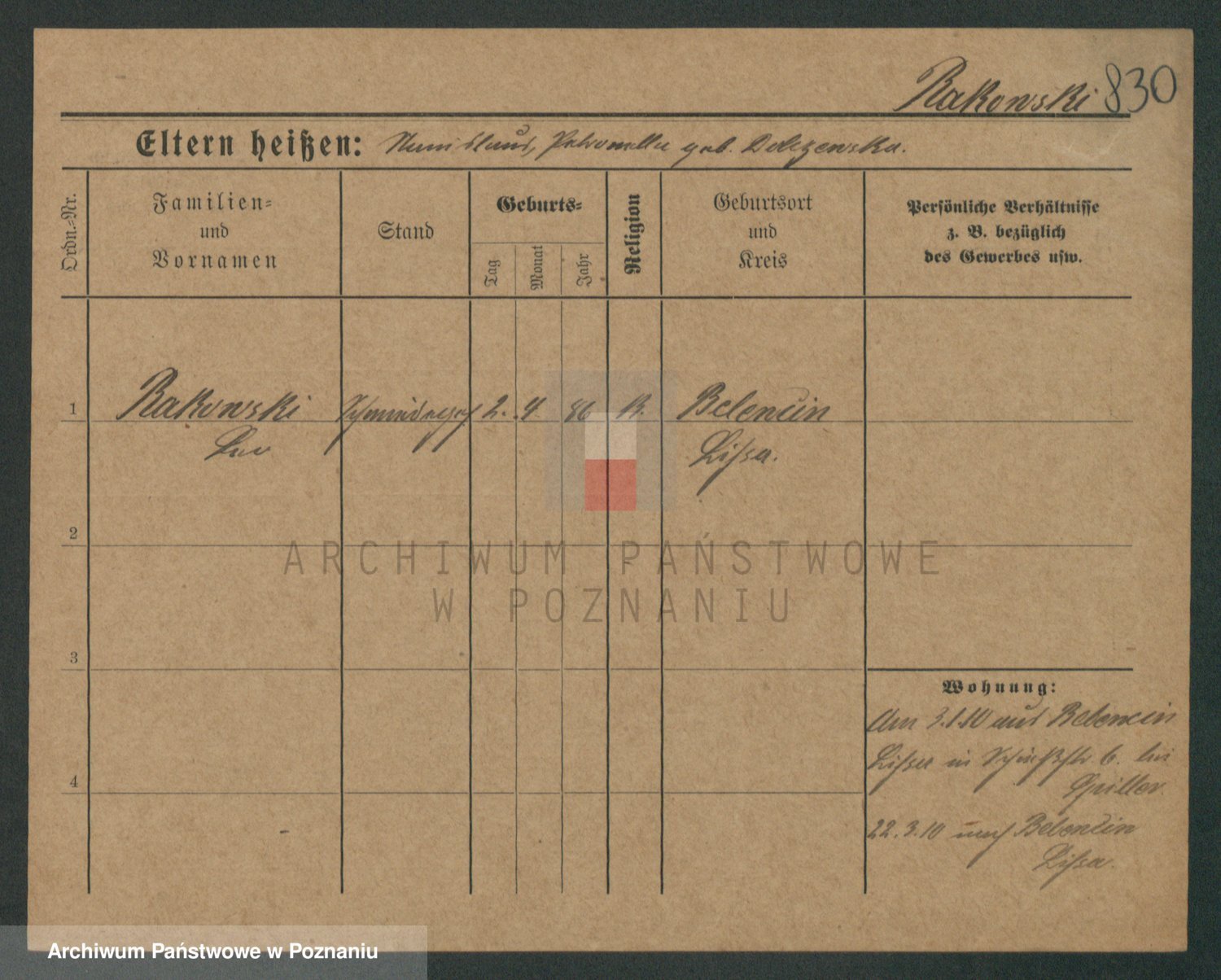 Podgląd karty osobowej dostępny jest po kliknięciu na nazwisko lub ikonkę karty. Można dokonywać powiększenia (ikony na górze) lub przechodzić między kolejnymi skanami (strzałki po bokach).