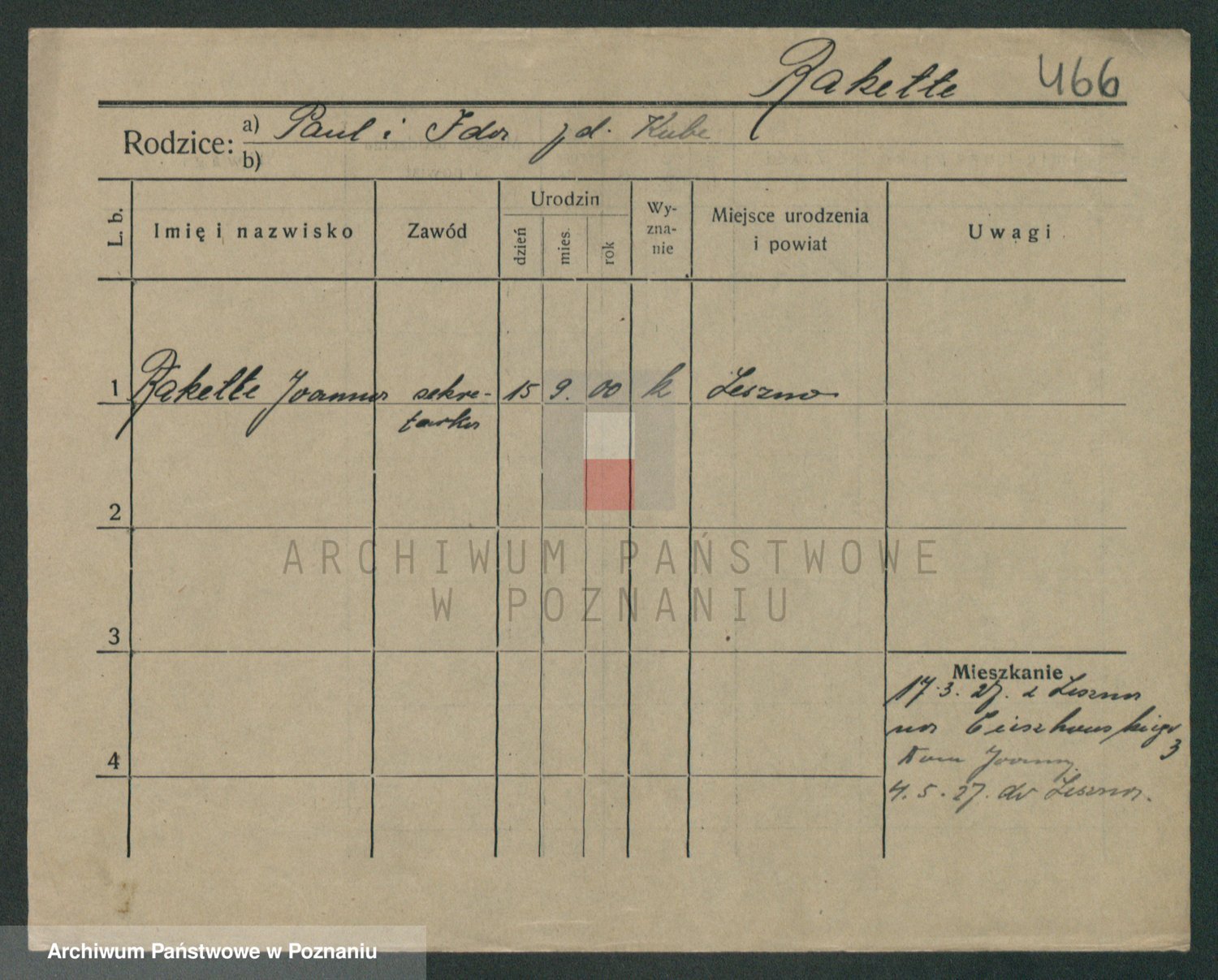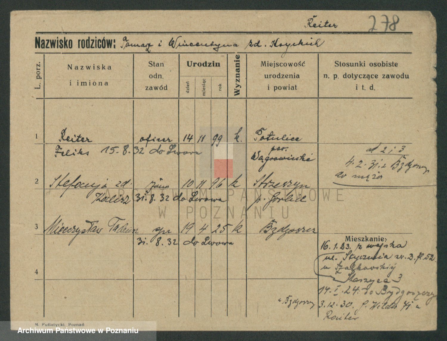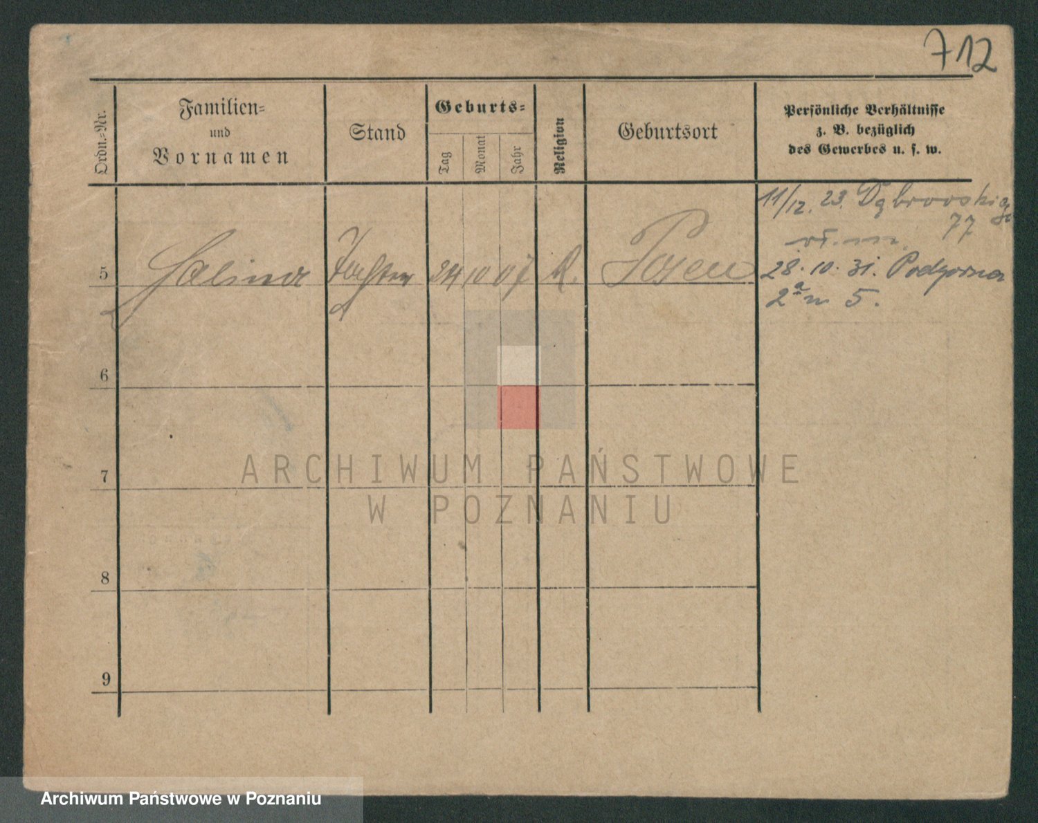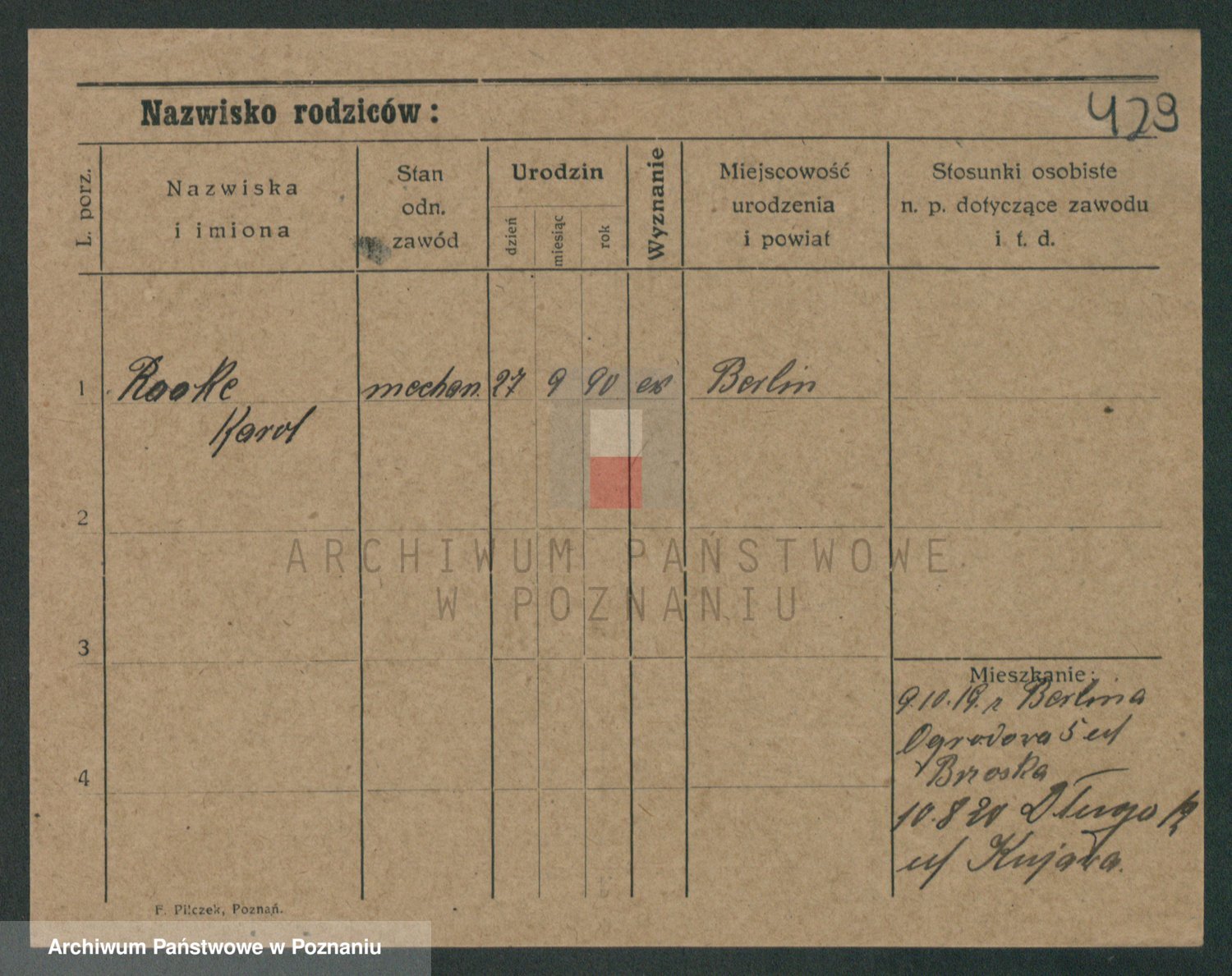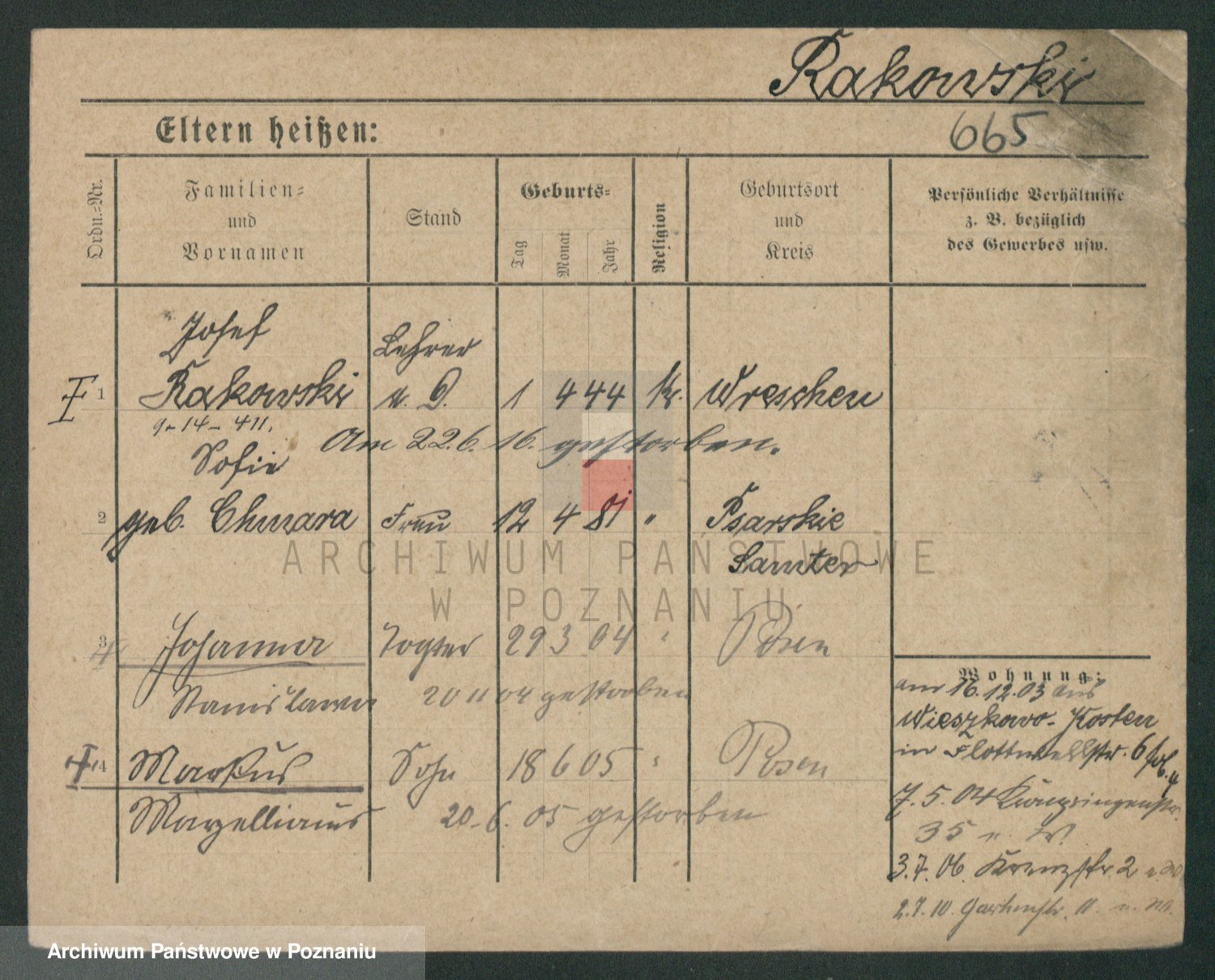Podgląd karty osobowej dostępny jest po kliknięciu na nazwisko lub ikonkę karty. Można dokonywać powiększenia (ikony na górze) lub przechodzić między kolejnymi skanami (strzałki po bokach).