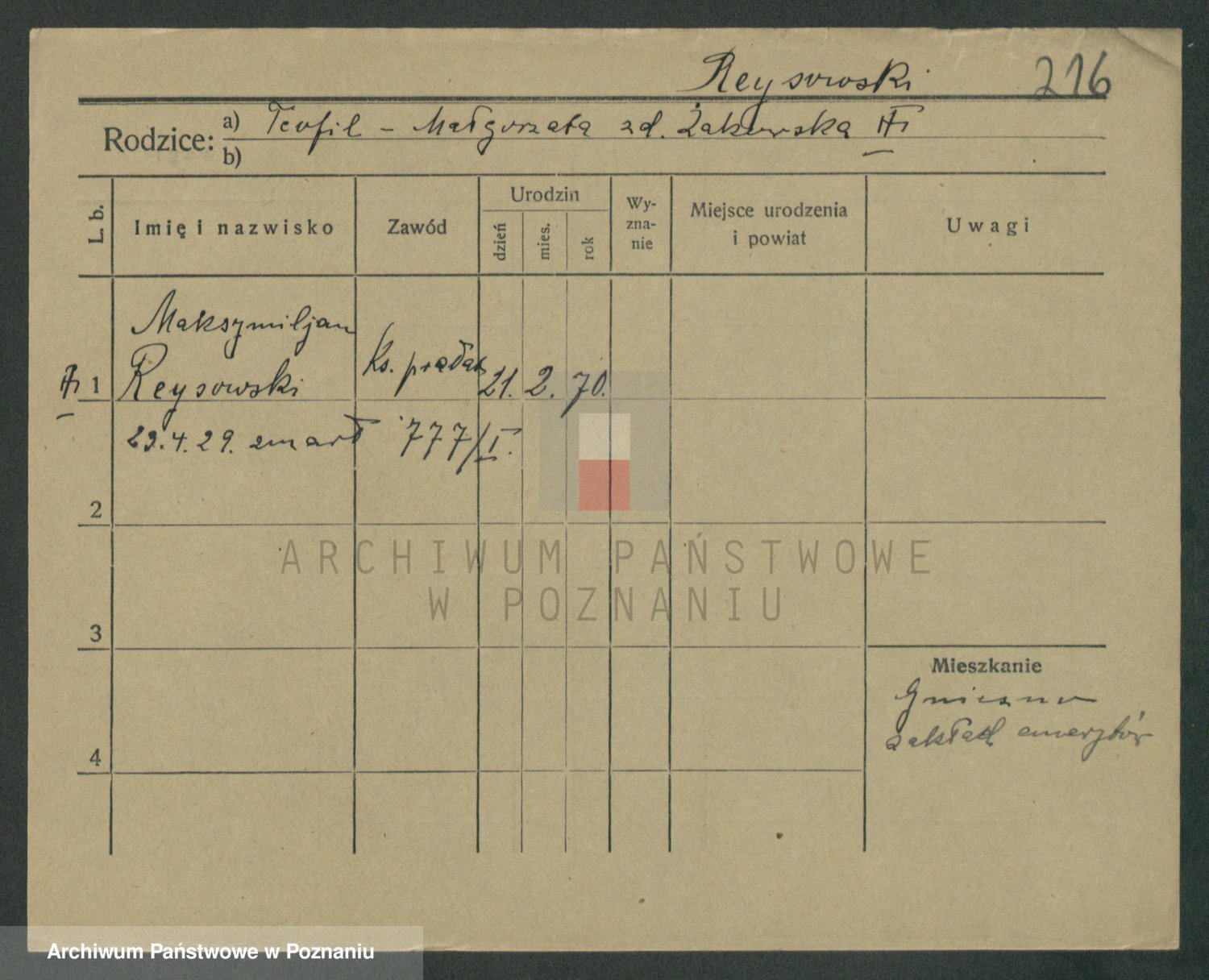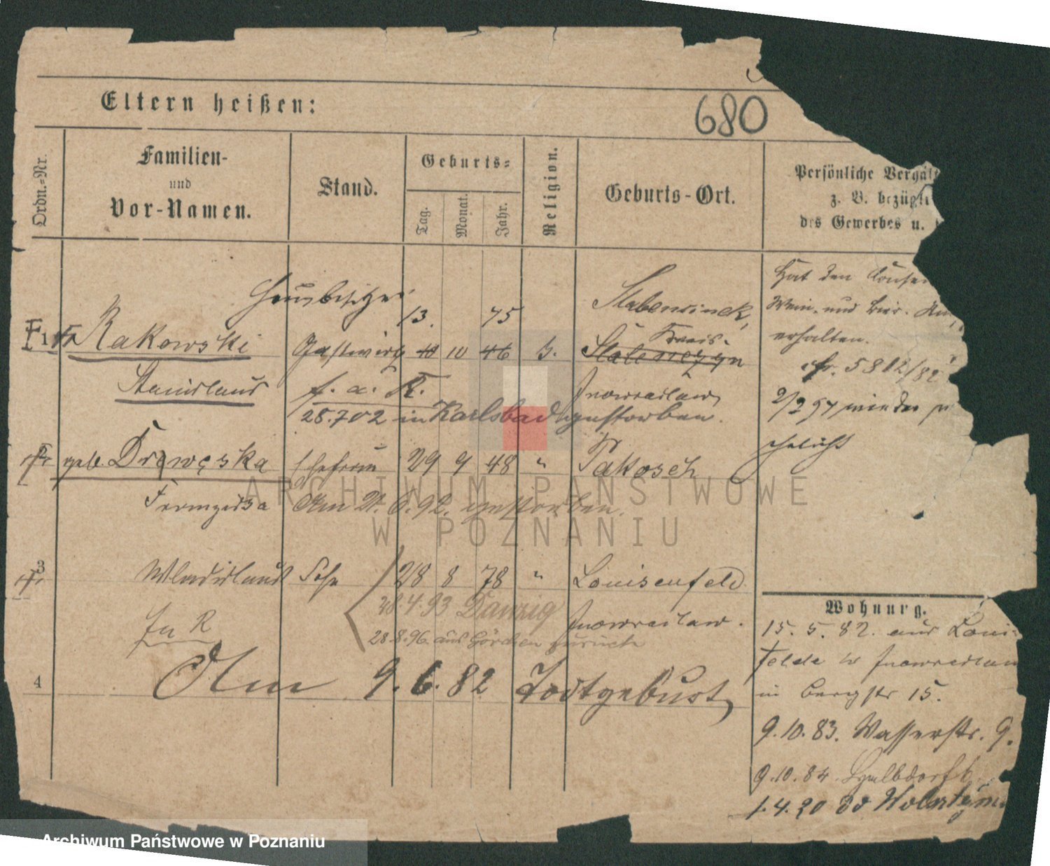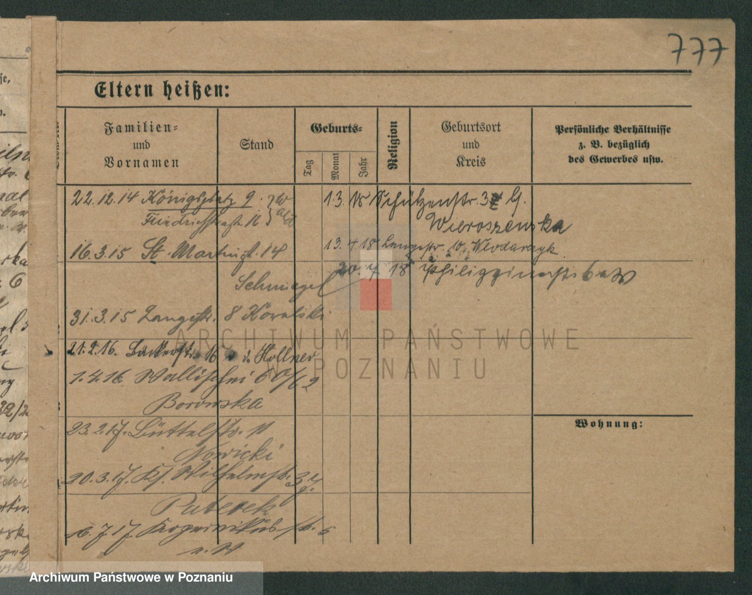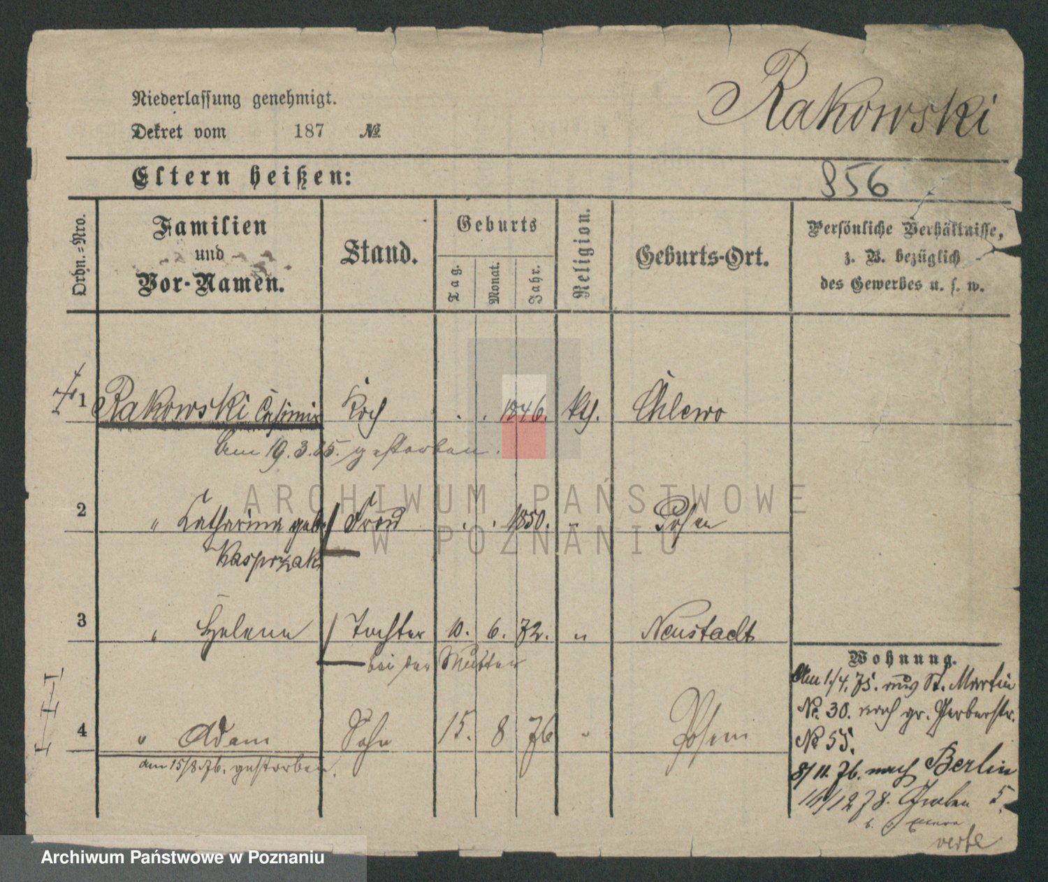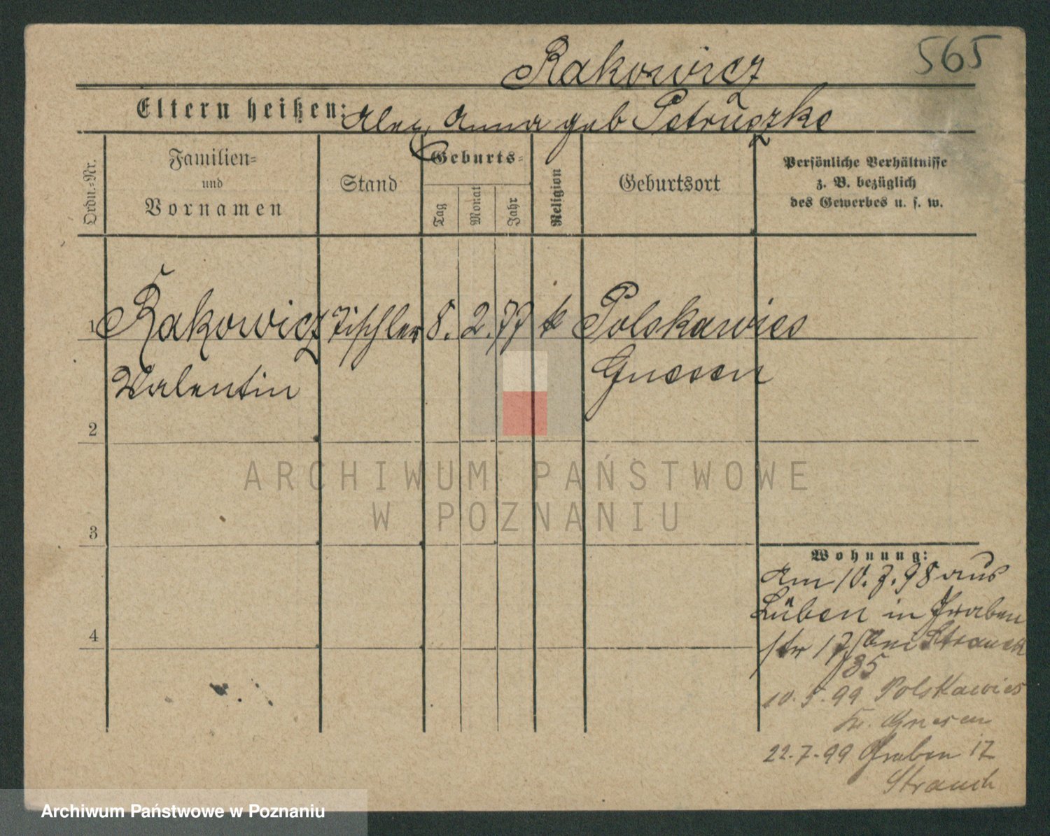 Podgląd karty osobowej dostępny jest po kliknięciu na nazwisko lub ikonkę karty. Można dokonywać powiększenia (ikony na górze) lub przechodzić między kolejnymi skanami (strzałki po bokach).