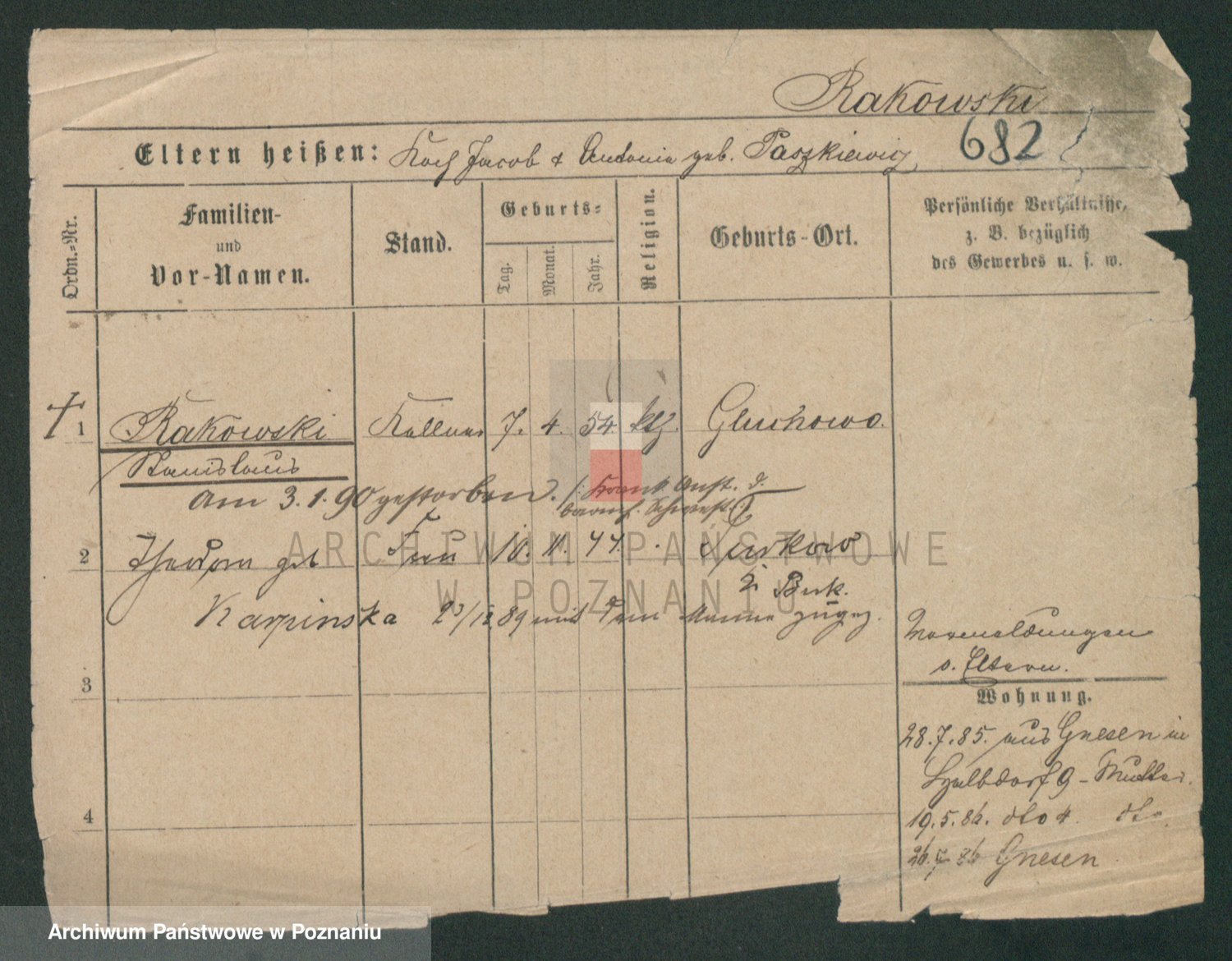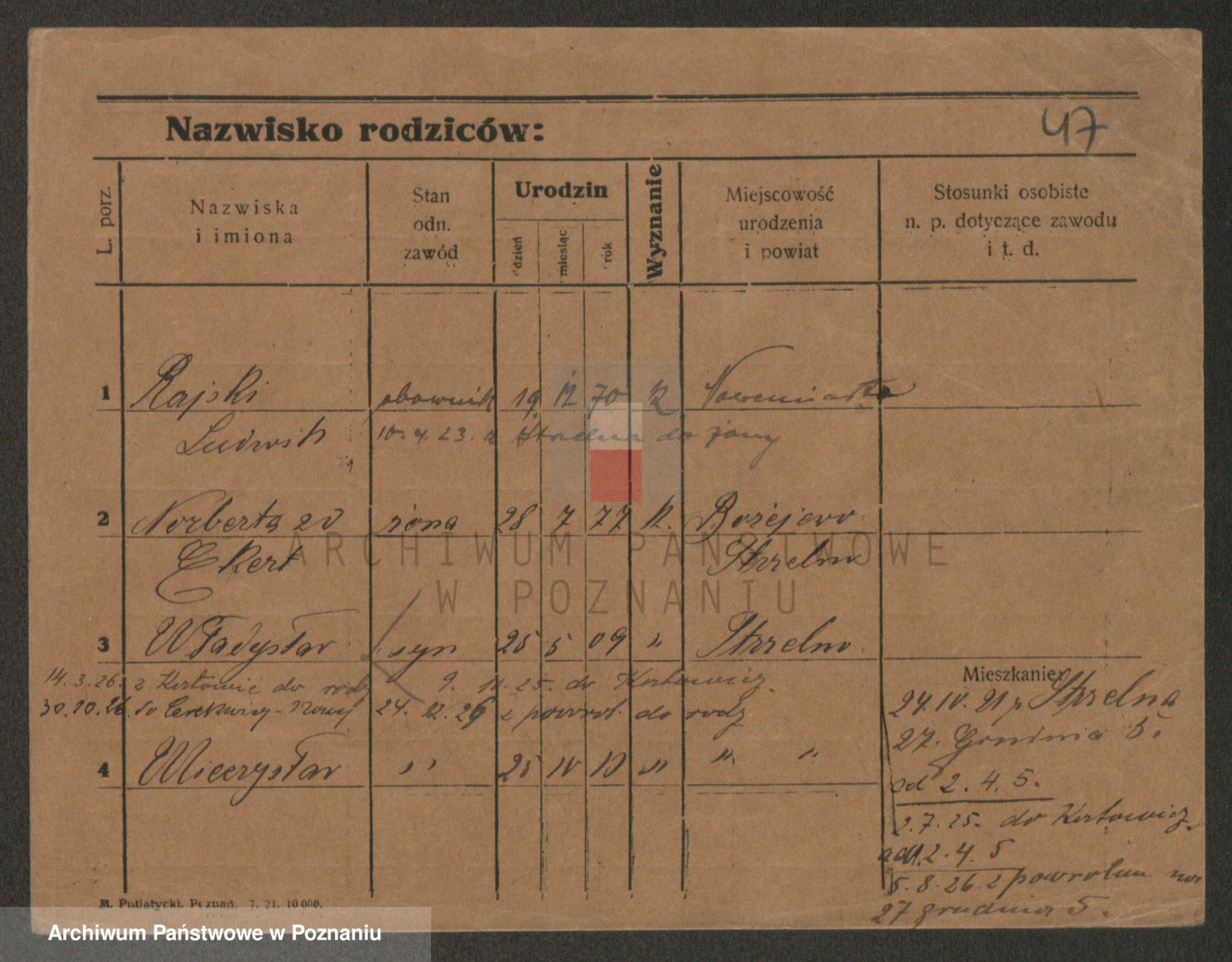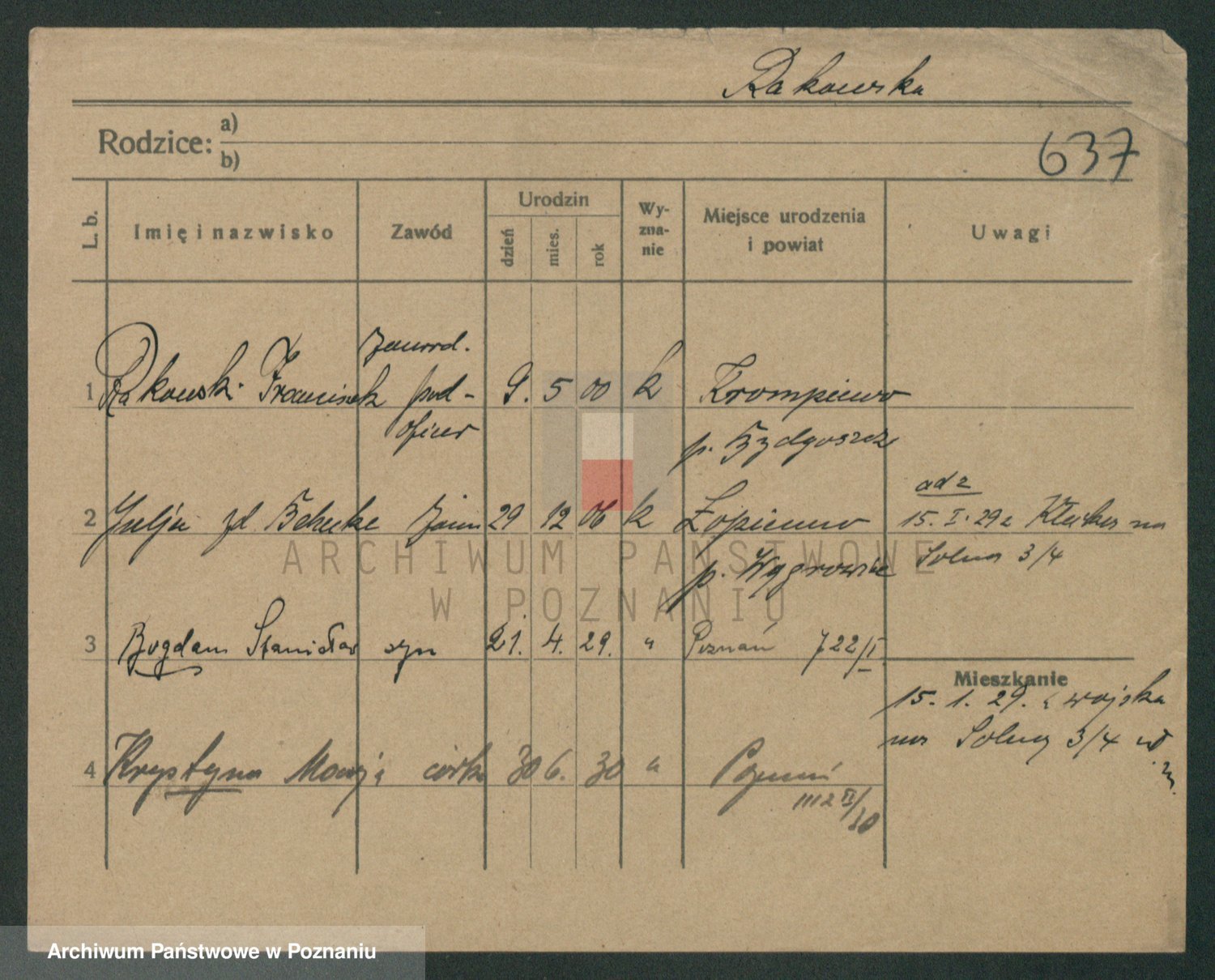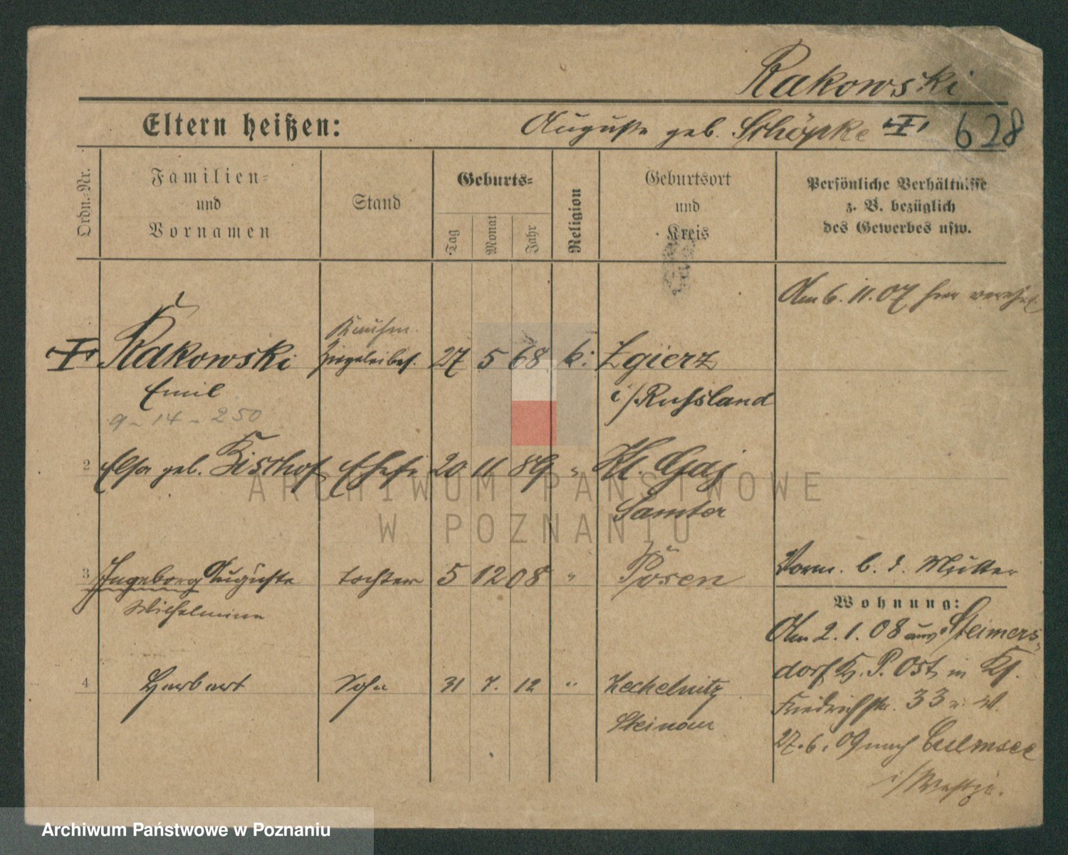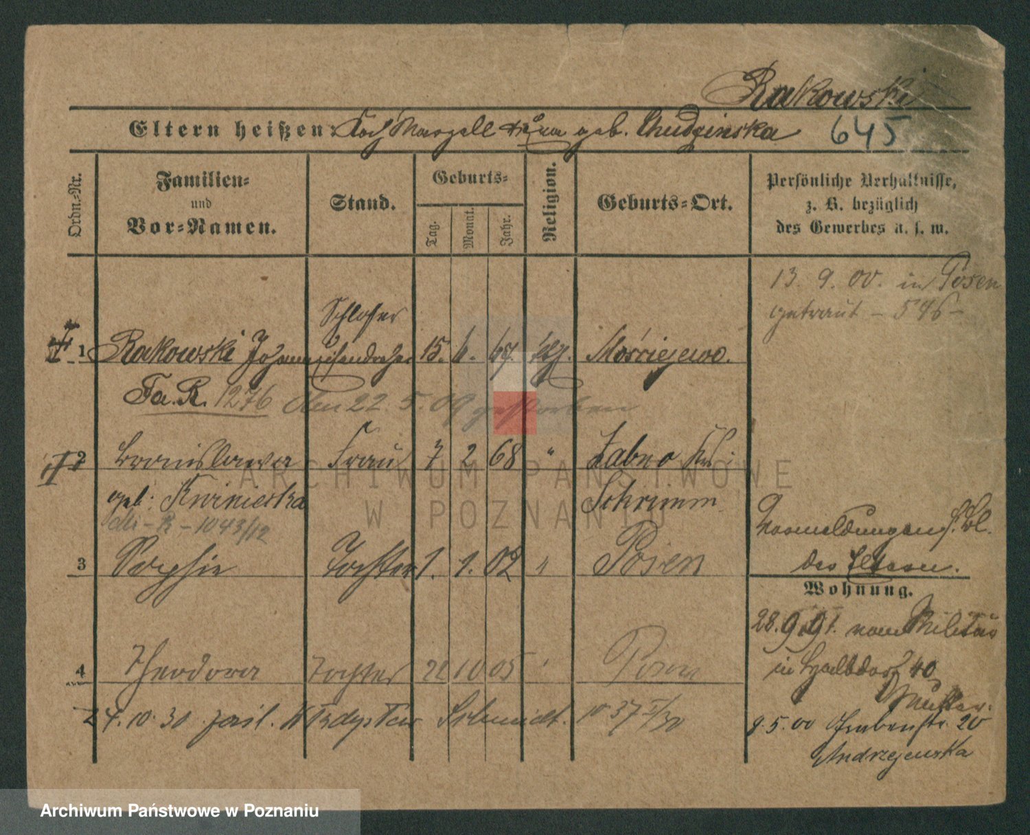 Podgląd karty osobowej dostępny jest po kliknięciu na nazwisko lub ikonkę karty. Można dokonywać powiększenia (ikony na górze) lub przechodzić między kolejnymi skanami (strzałki po bokach).