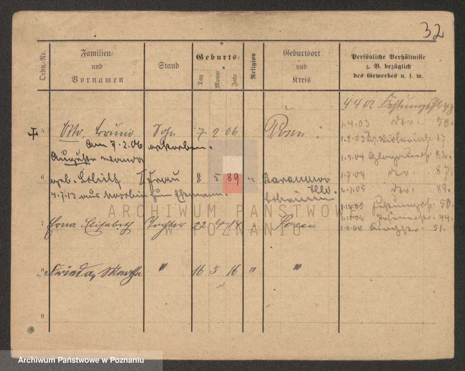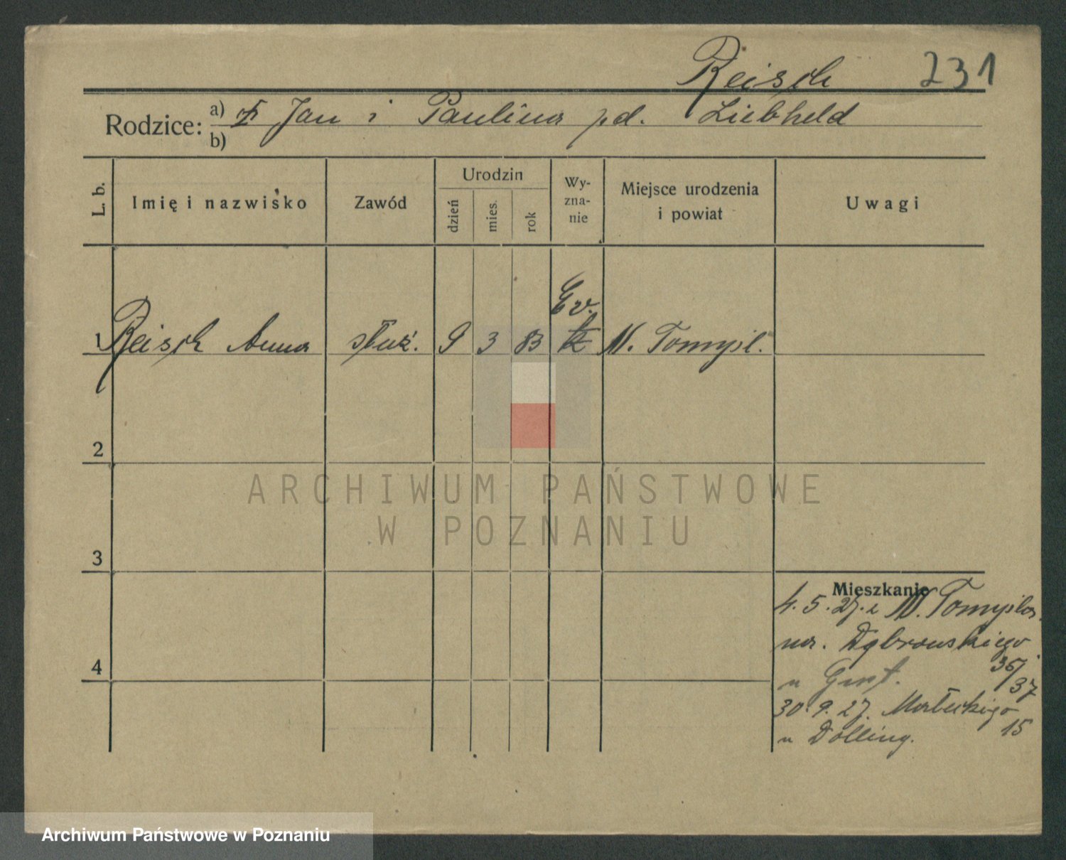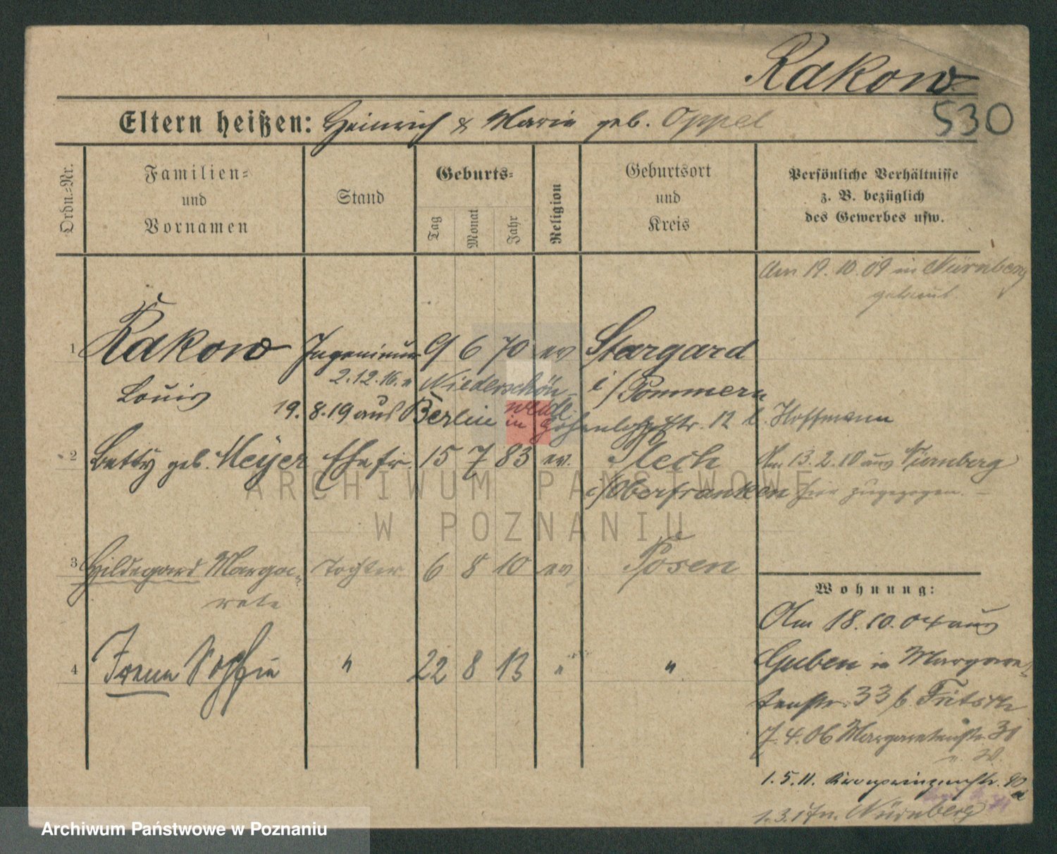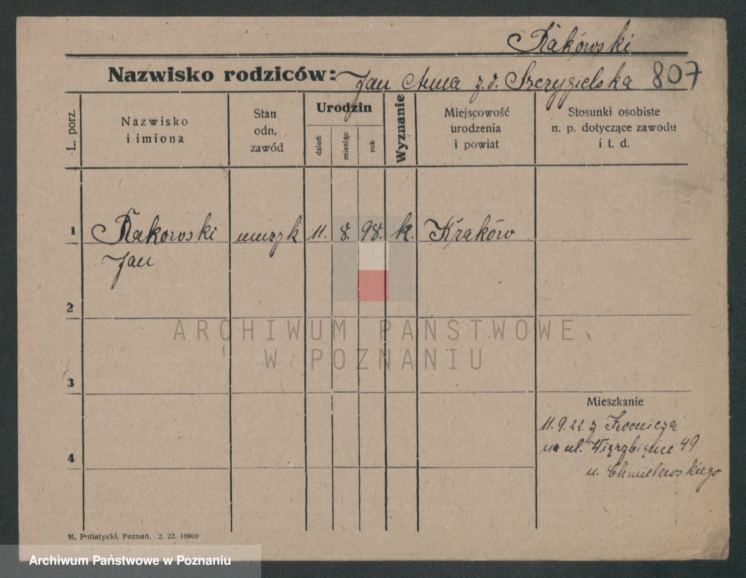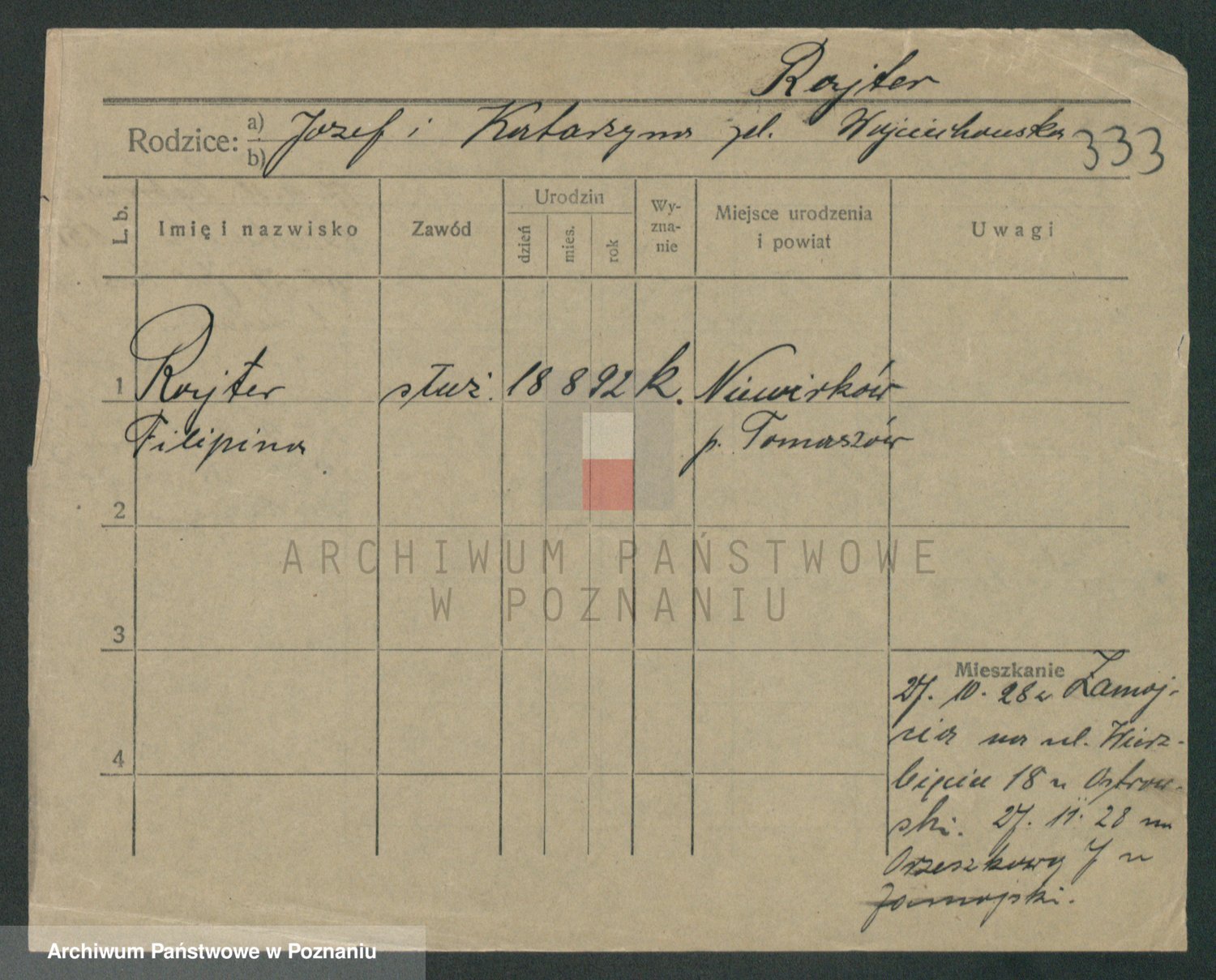 Podgląd karty osobowej dostępny jest po kliknięciu na nazwisko lub ikonkę karty. Można dokonywać powiększenia (ikony na górze) lub przechodzić między kolejnymi skanami (strzałki po bokach).