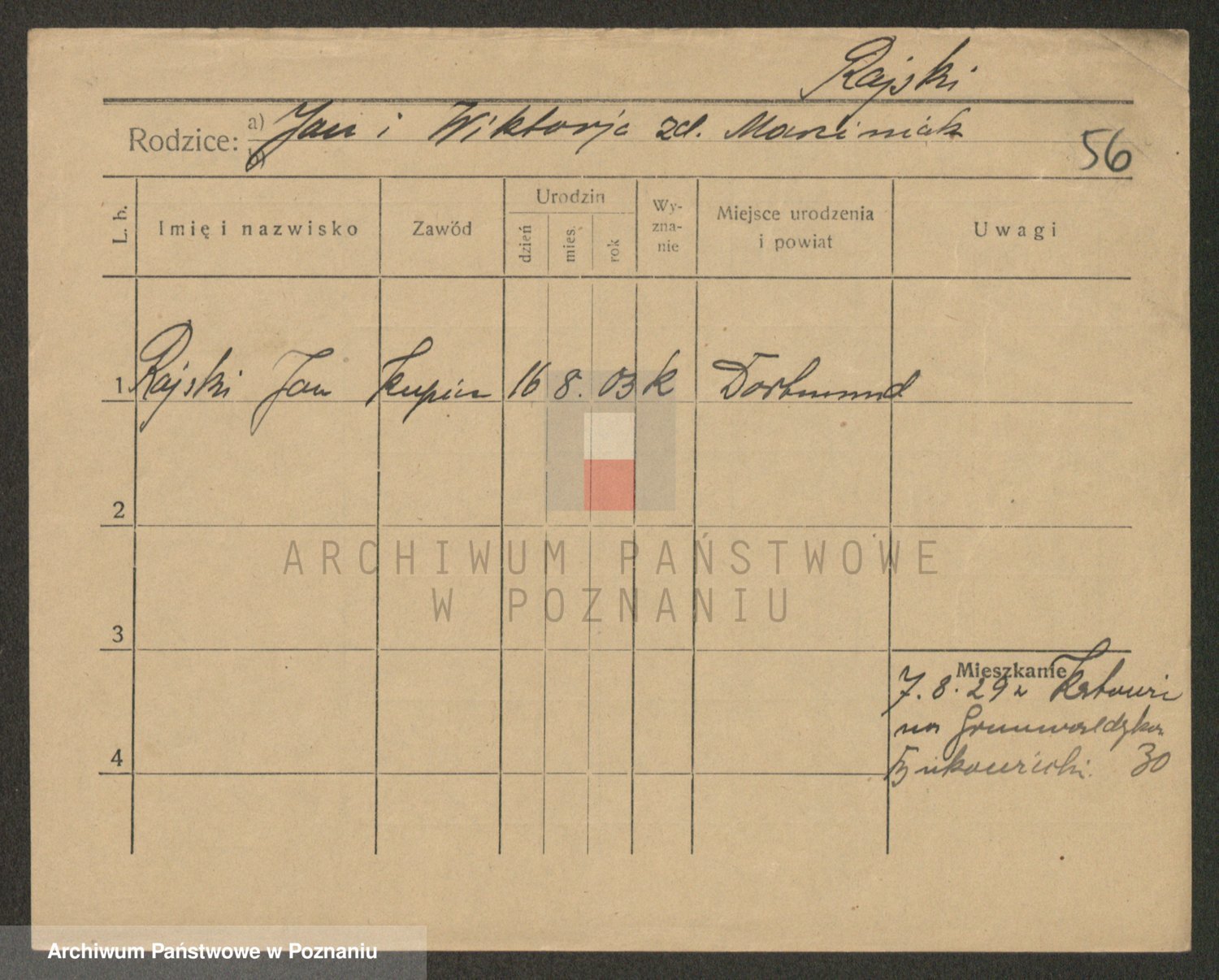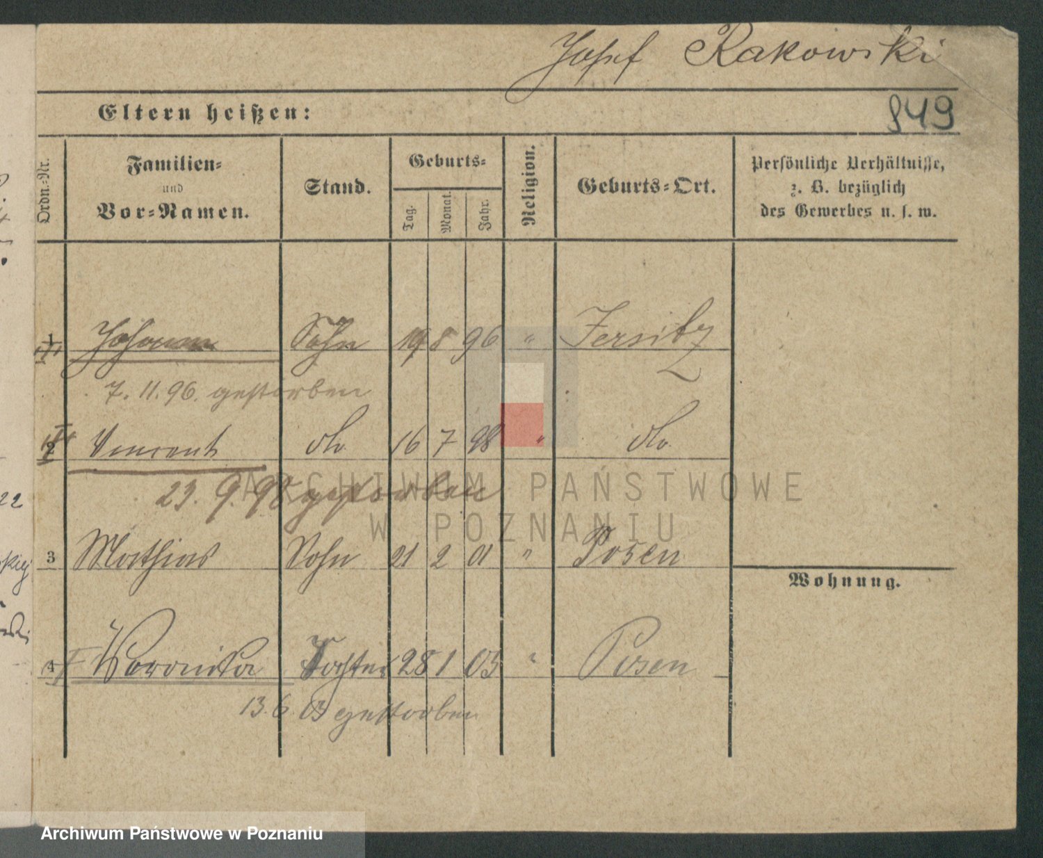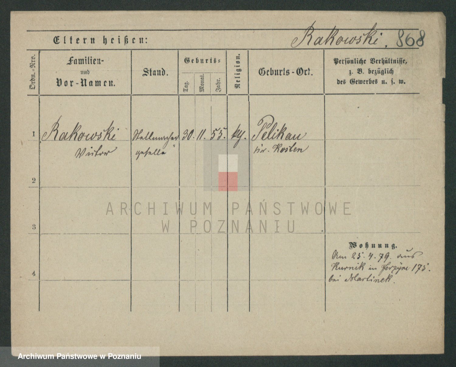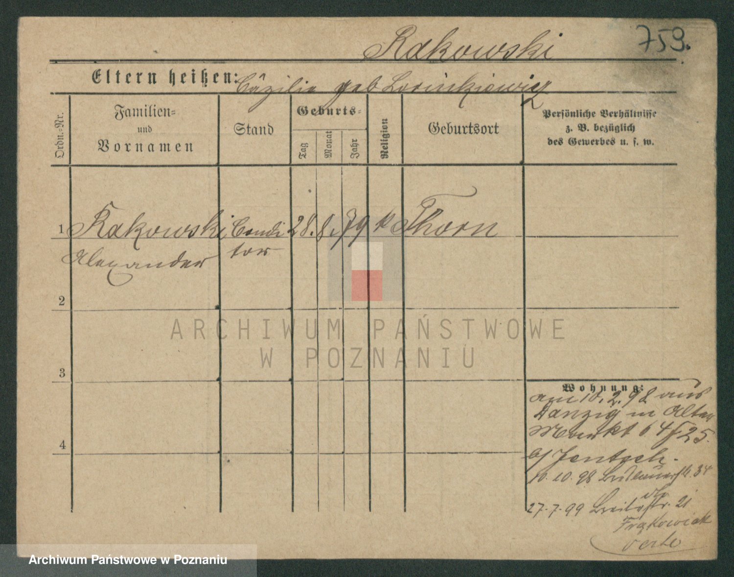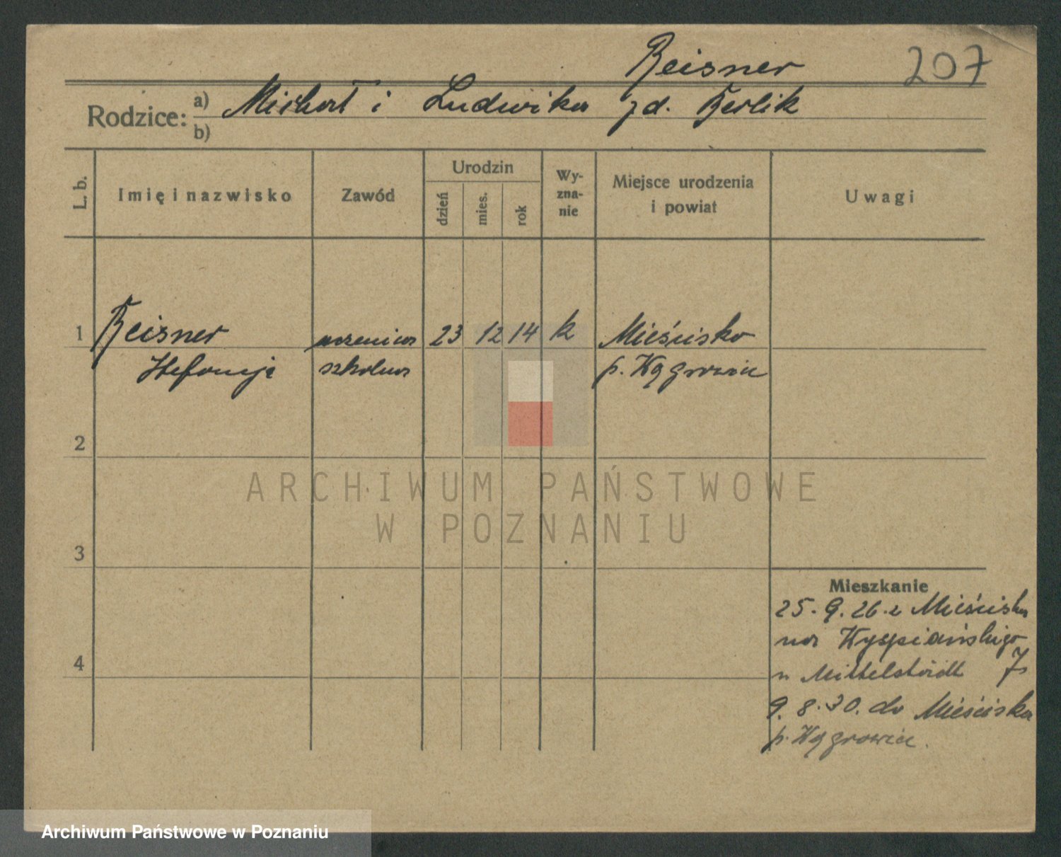 Podgląd karty osobowej dostępny jest po kliknięciu na nazwisko lub ikonkę karty. Można dokonywać powiększenia (ikony na górze) lub przechodzić między kolejnymi skanami (strzałki po bokach).
