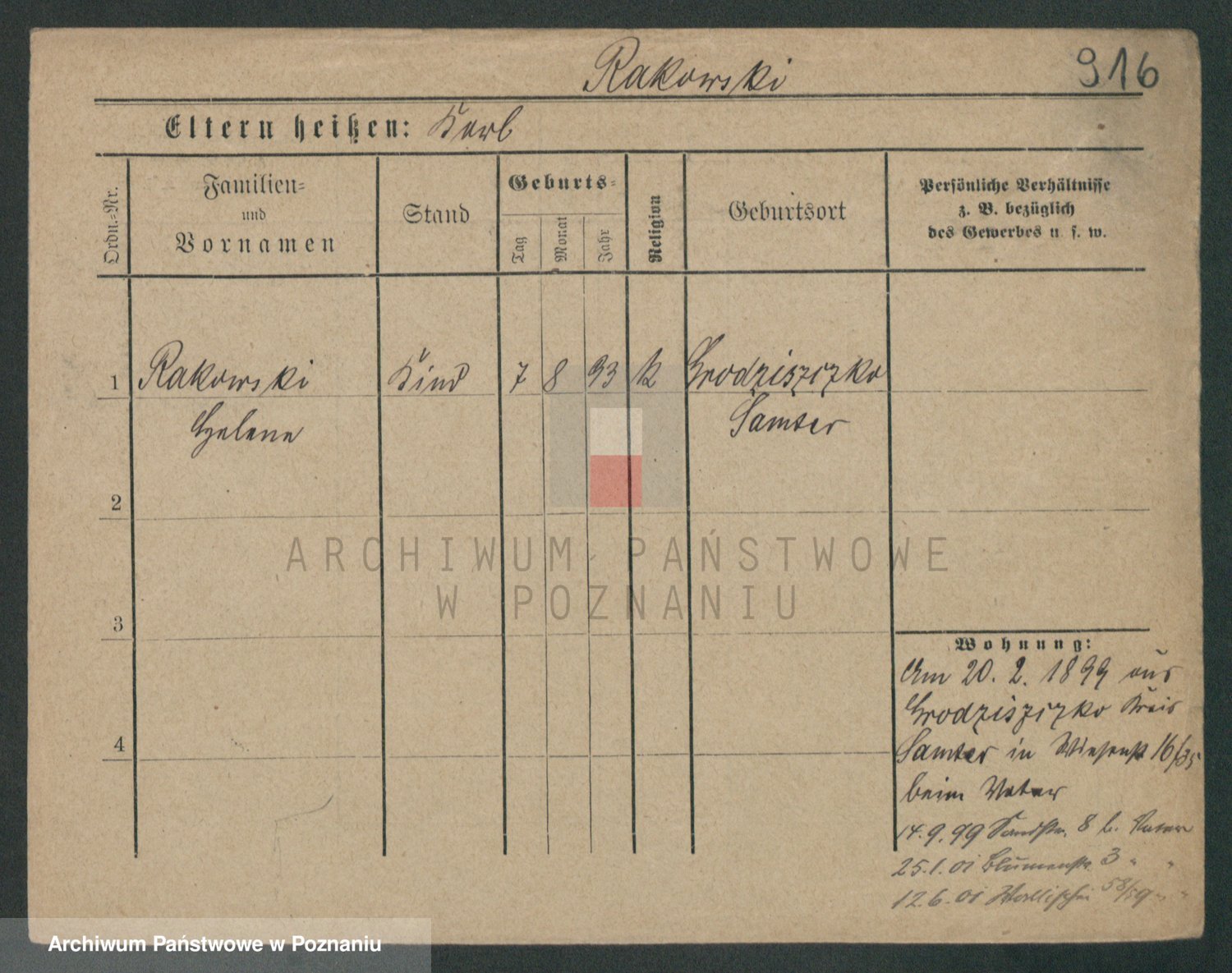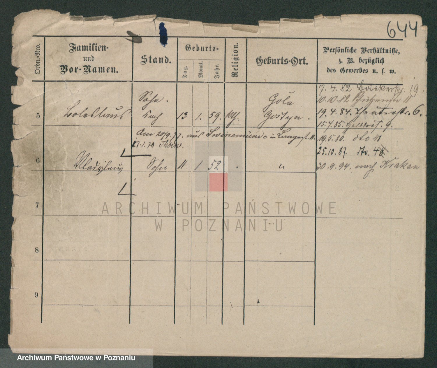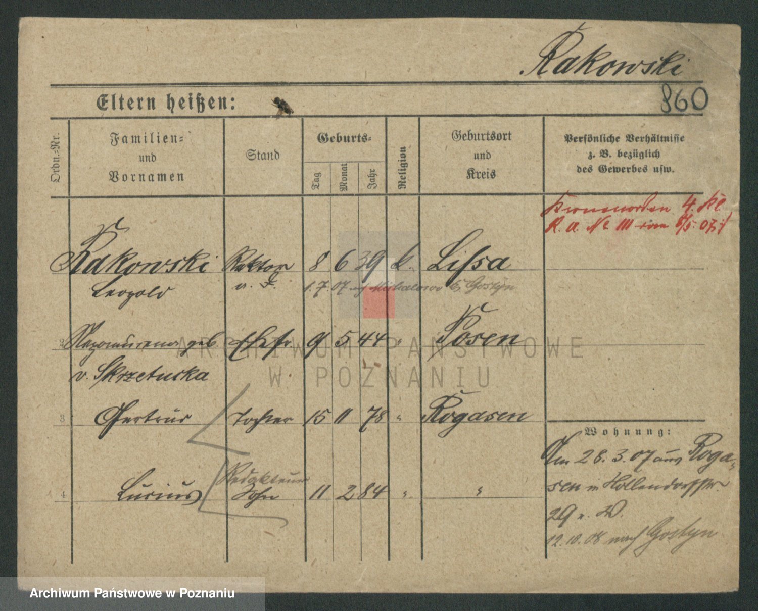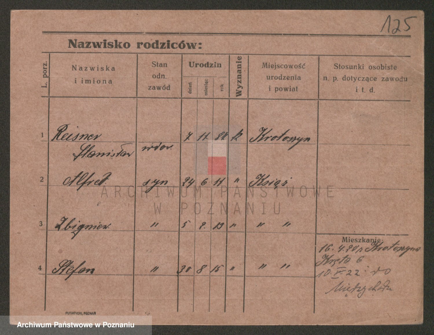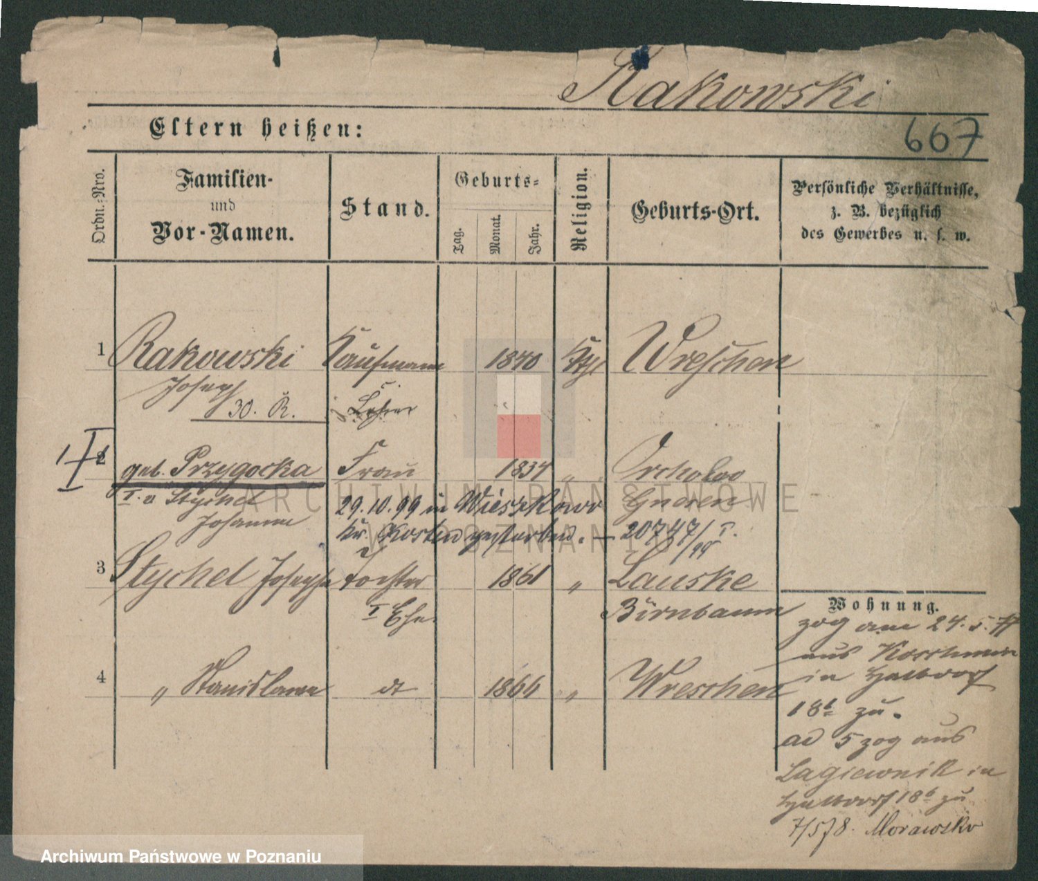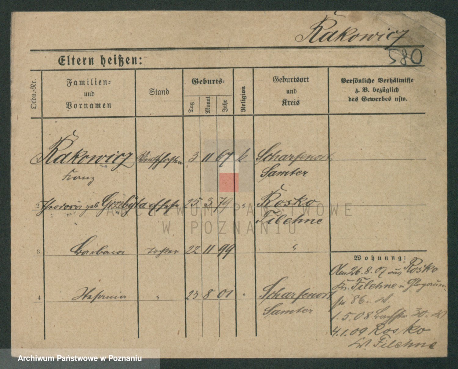 Podgląd karty osobowej dostępny jest po kliknięciu na nazwisko lub ikonkę karty. Można dokonywać powiększenia (ikony na górze) lub przechodzić między kolejnymi skanami (strzałki po bokach).