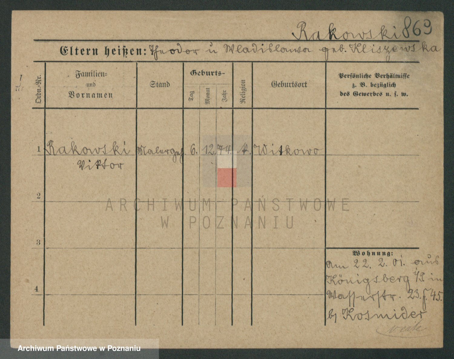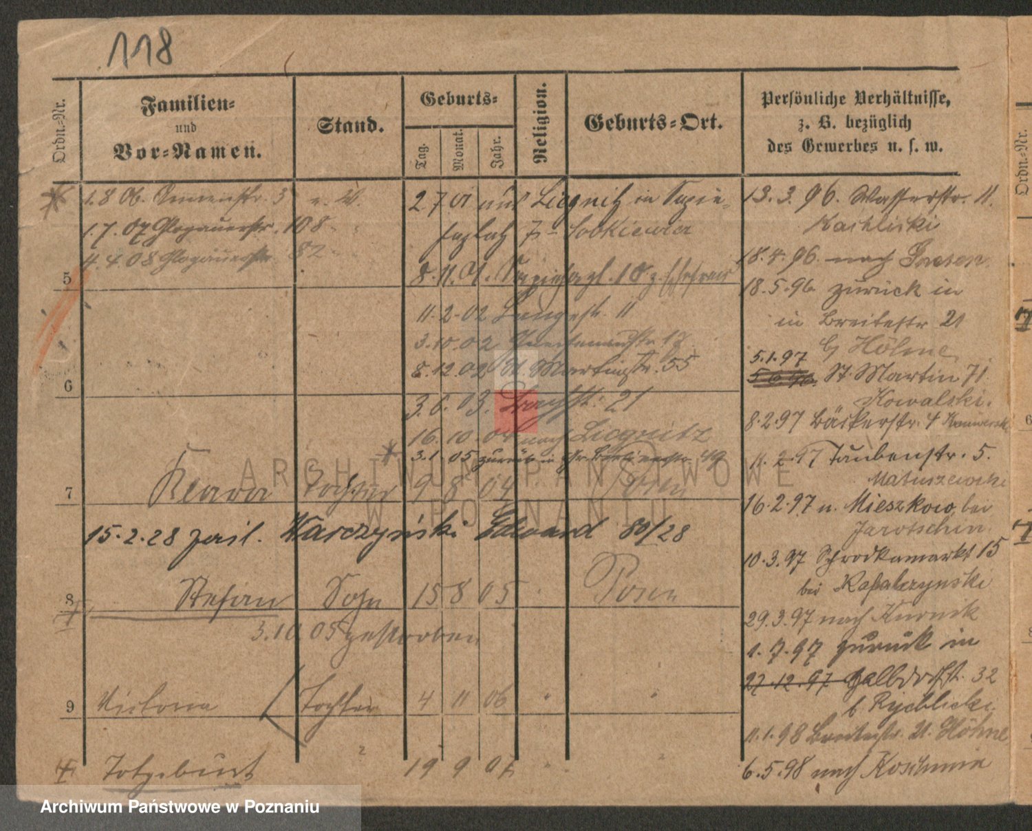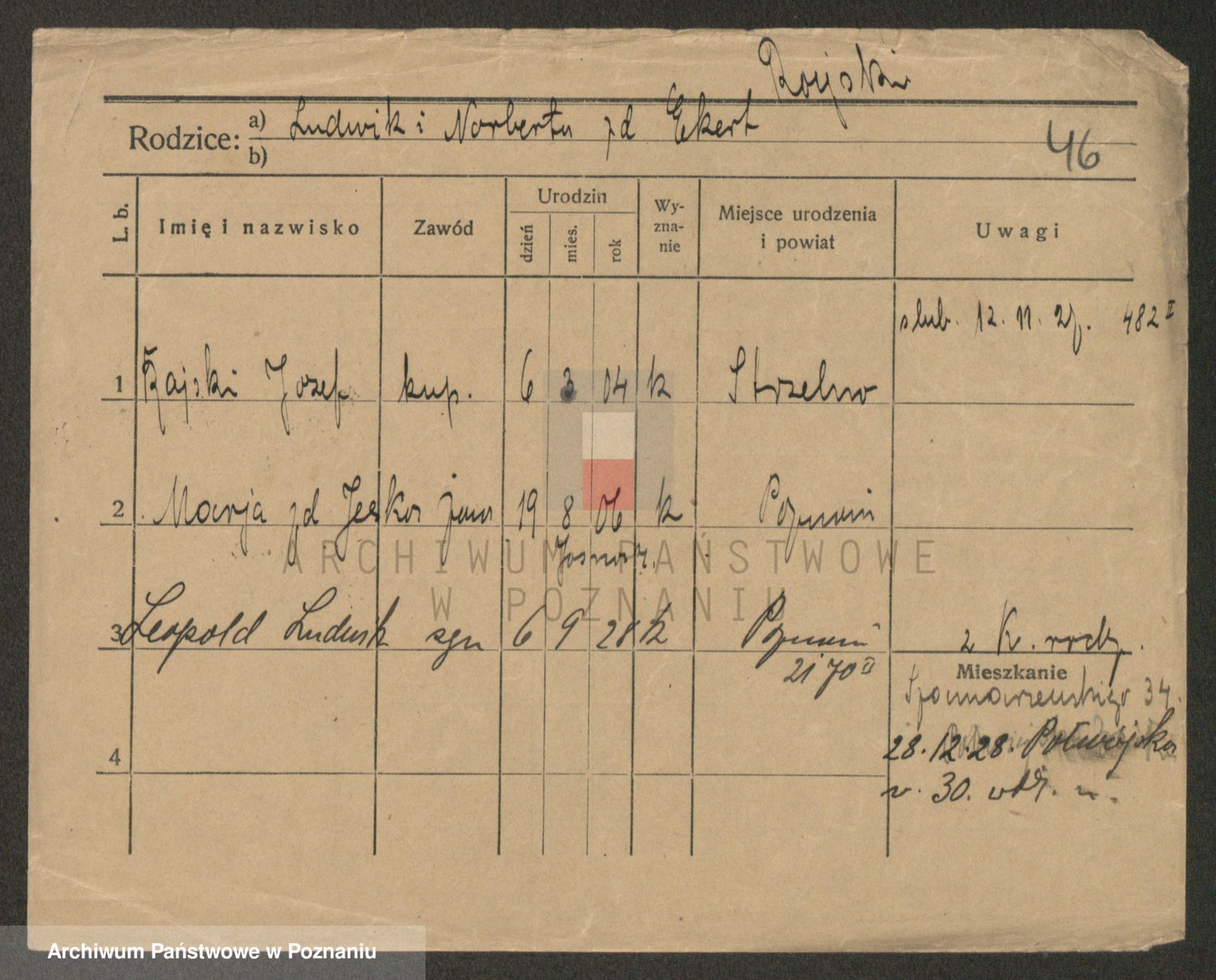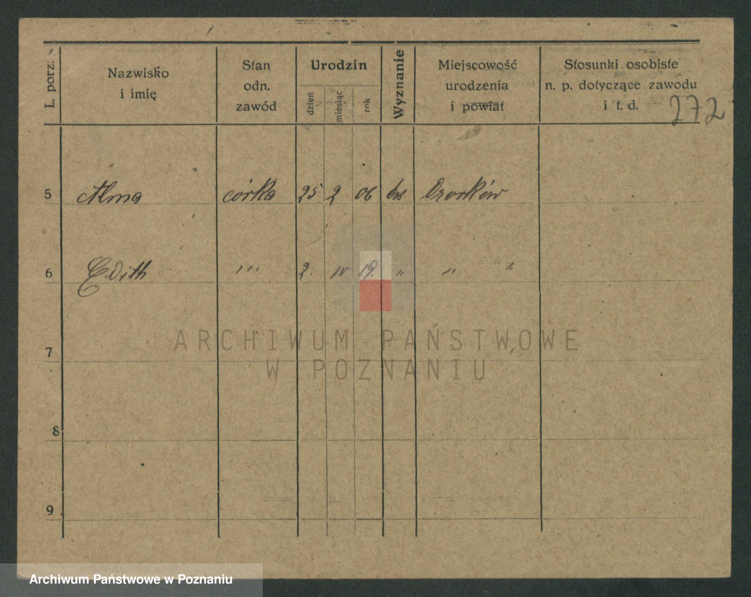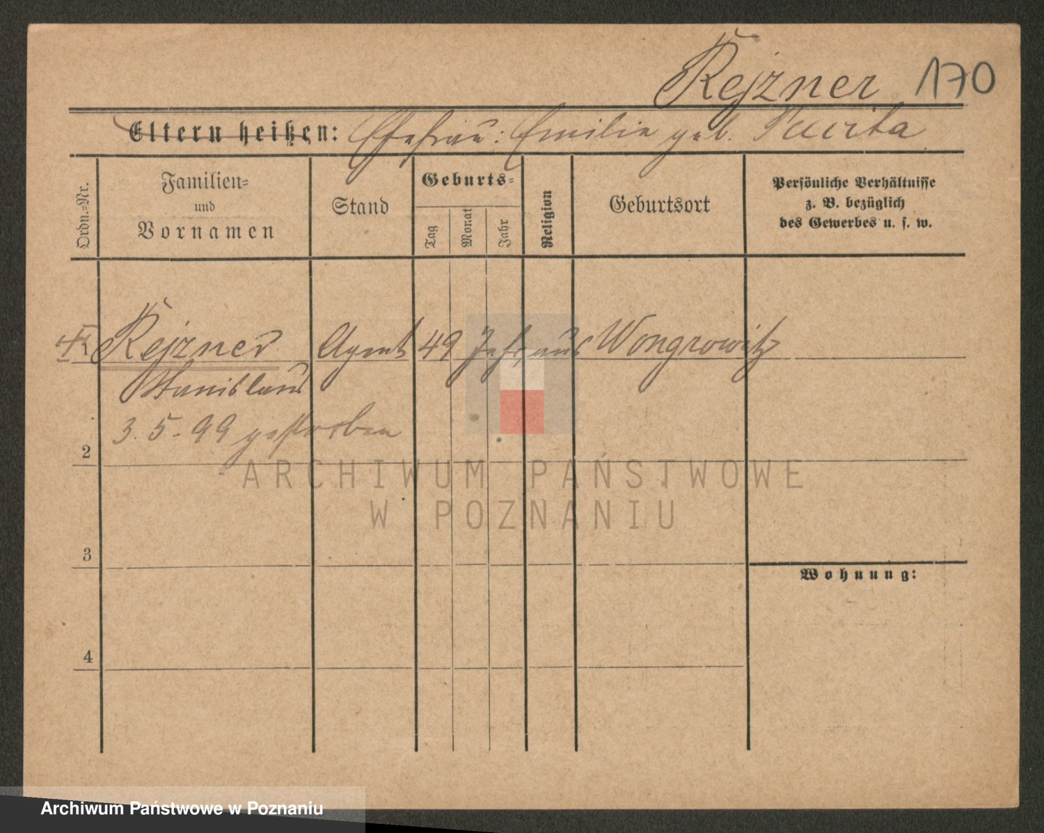 Podgląd karty osobowej dostępny jest po kliknięciu na nazwisko lub ikonkę karty. Można dokonywać powiększenia (ikony na górze) lub przechodzić między kolejnymi skanami (strzałki po bokach).