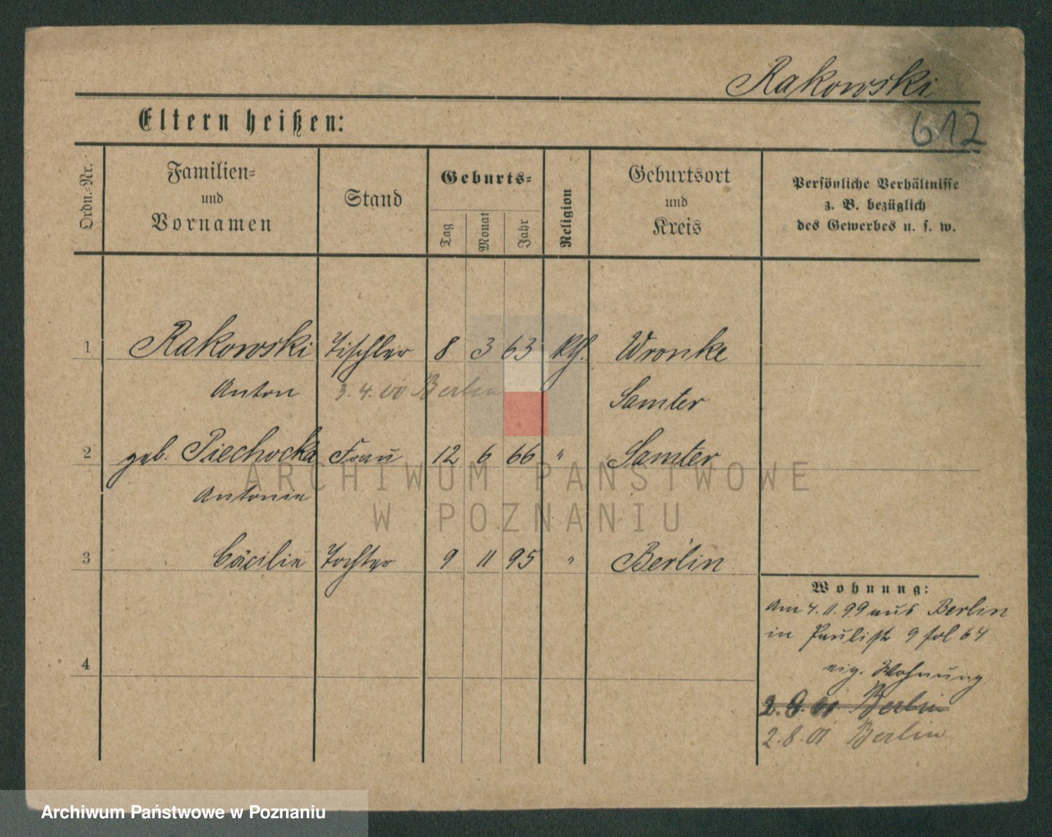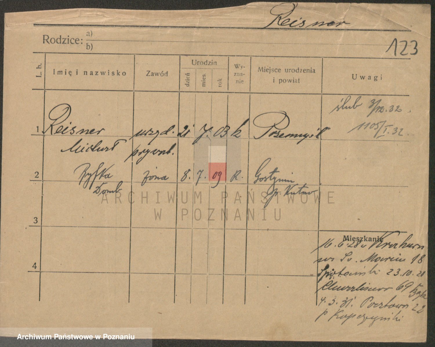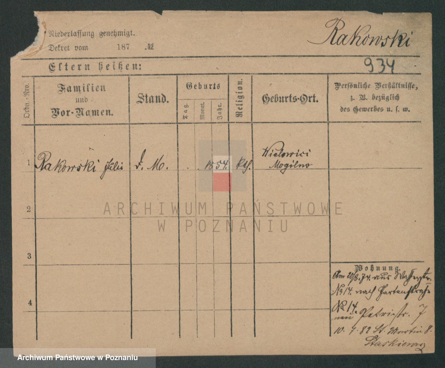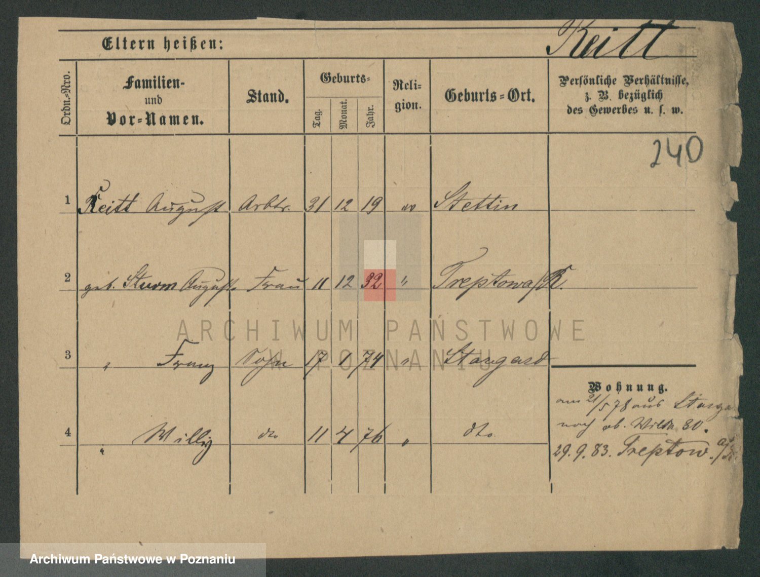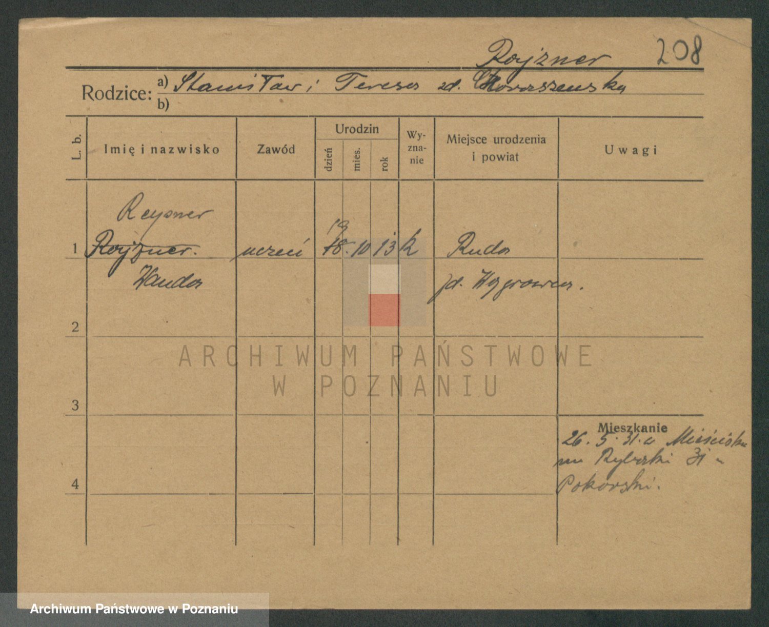 Podgląd karty osobowej dostępny jest po kliknięciu na nazwisko lub ikonkę karty. Można dokonywać powiększenia (ikony na górze) lub przechodzić między kolejnymi skanami (strzałki po bokach).