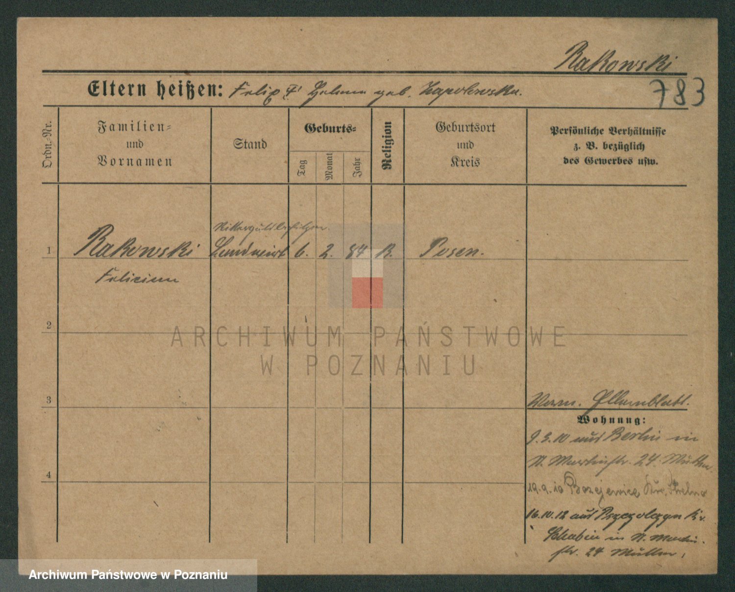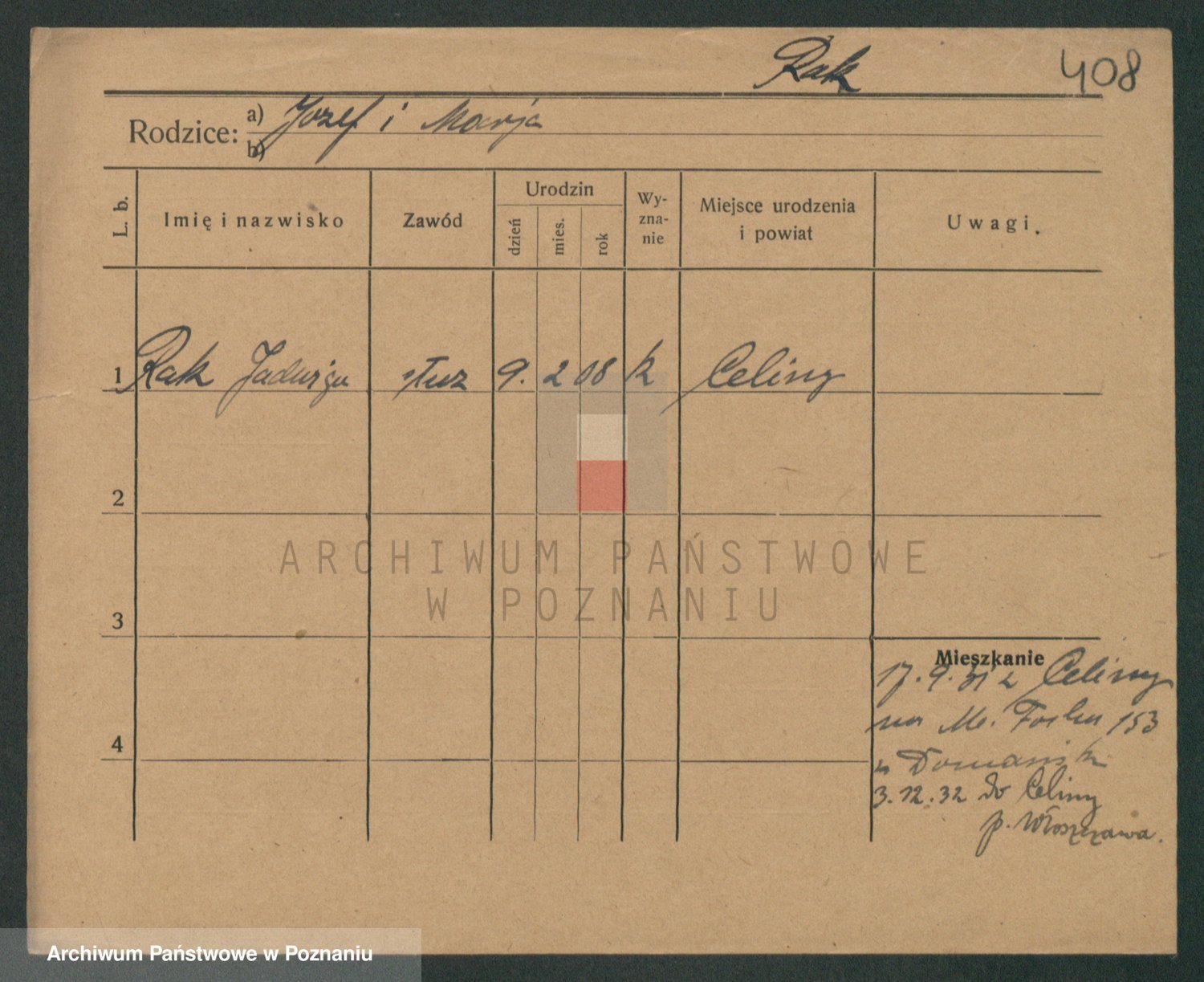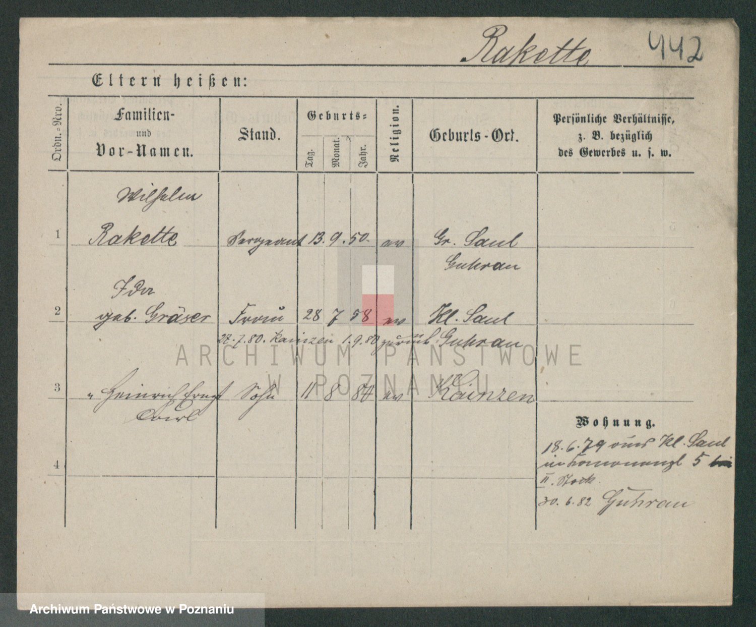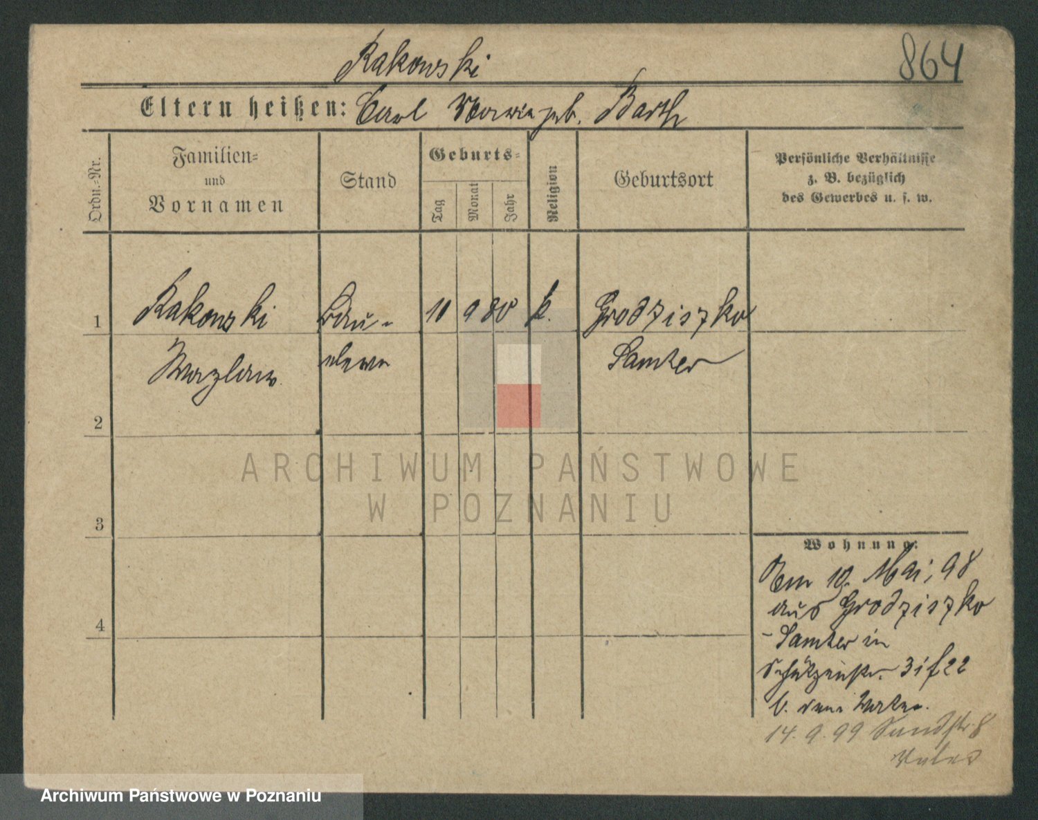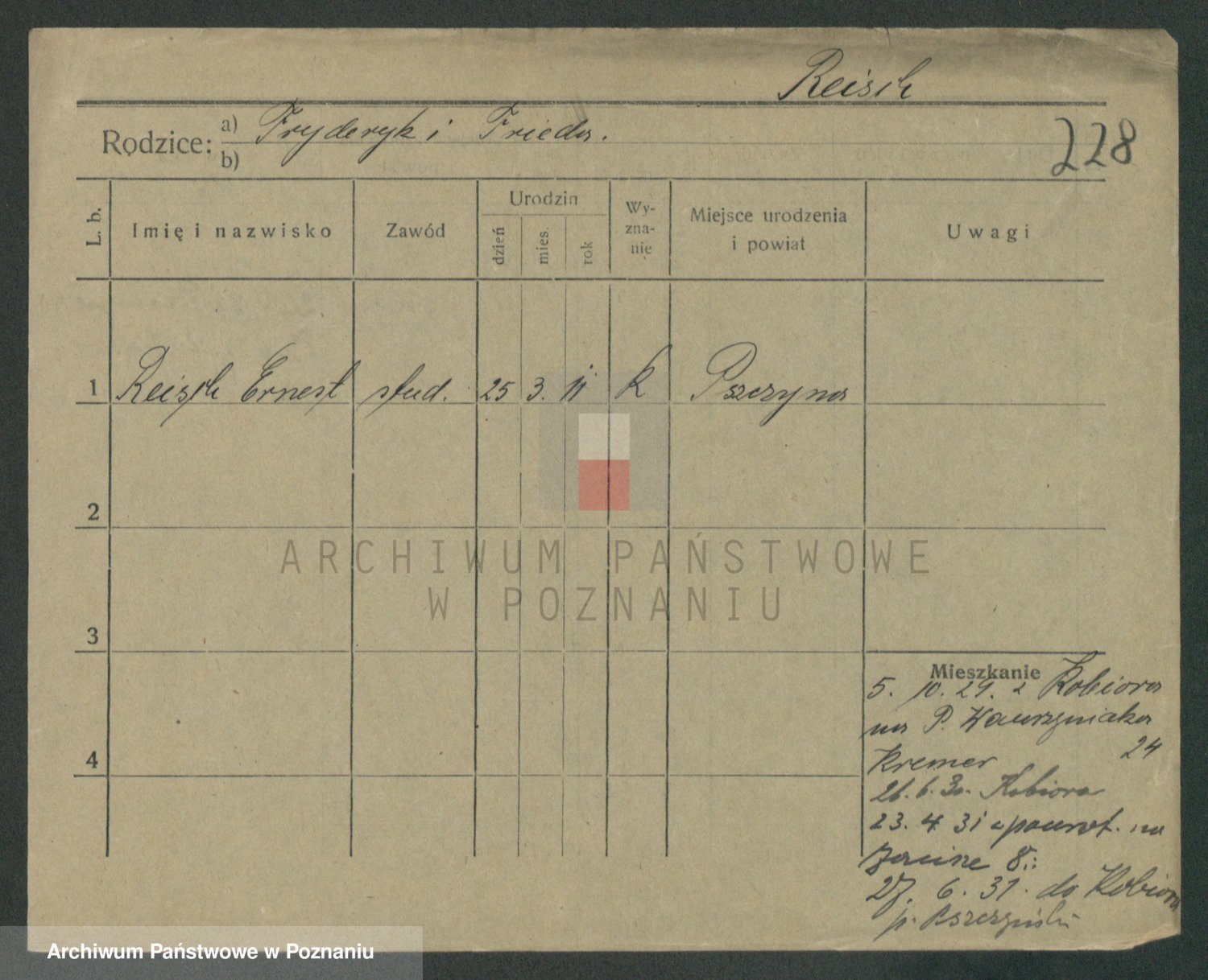 Podgląd karty osobowej dostępny jest po kliknięciu na nazwisko lub ikonkę karty. Można dokonywać powiększenia (ikony na górze) lub przechodzić między kolejnymi skanami (strzałki po bokach).