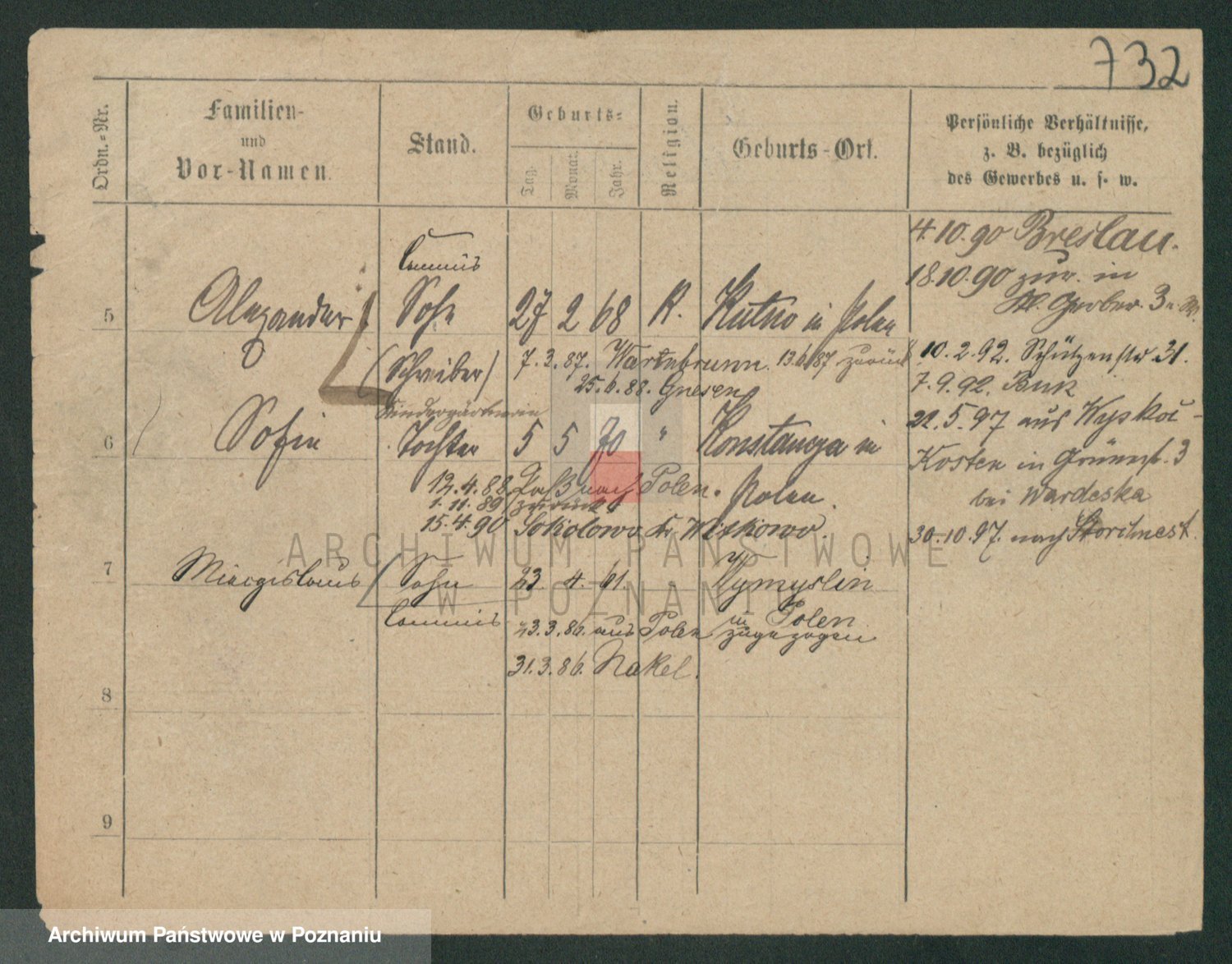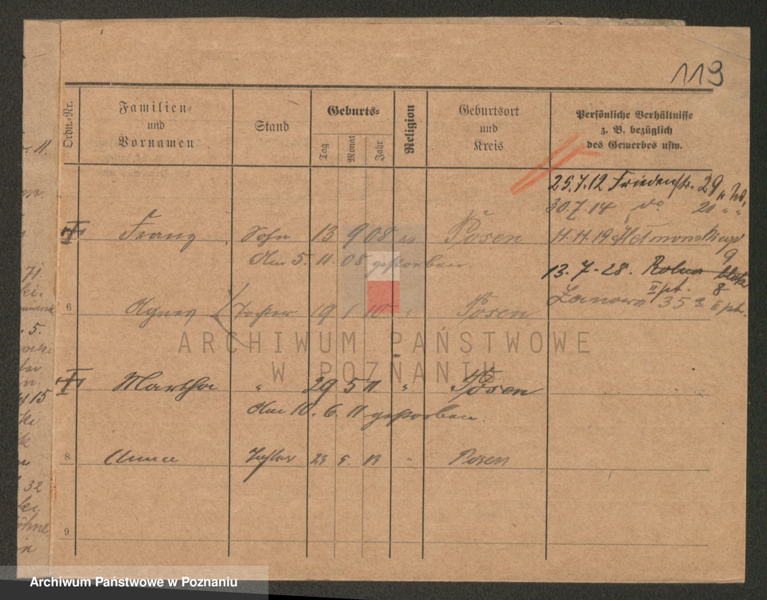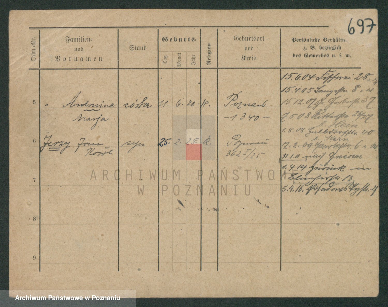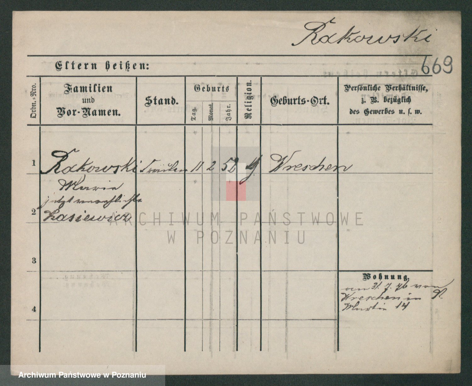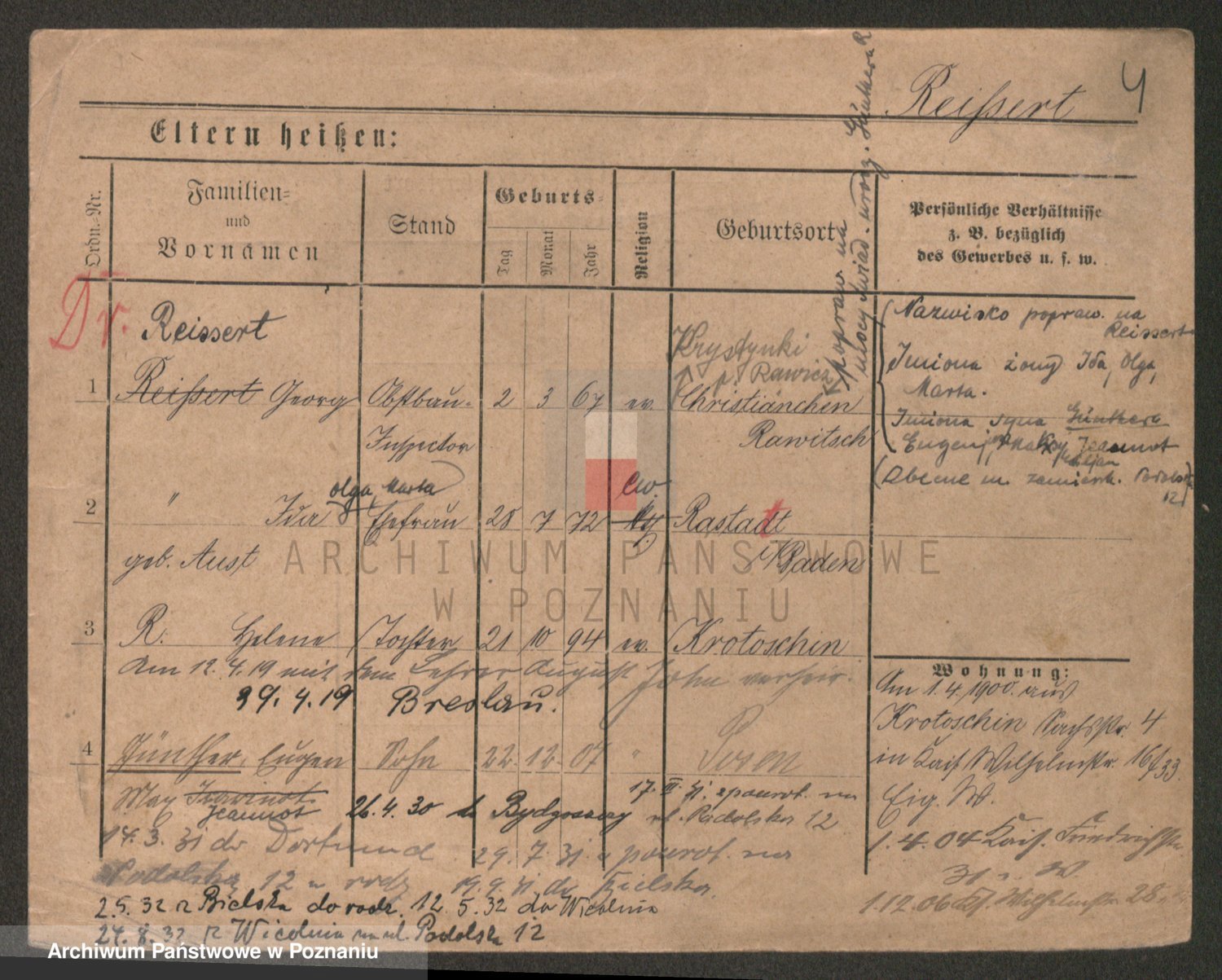 Podgląd karty osobowej dostępny jest po kliknięciu na nazwisko lub ikonkę karty. Można dokonywać powiększenia (ikony na górze) lub przechodzić między kolejnymi skanami (strzałki po bokach).