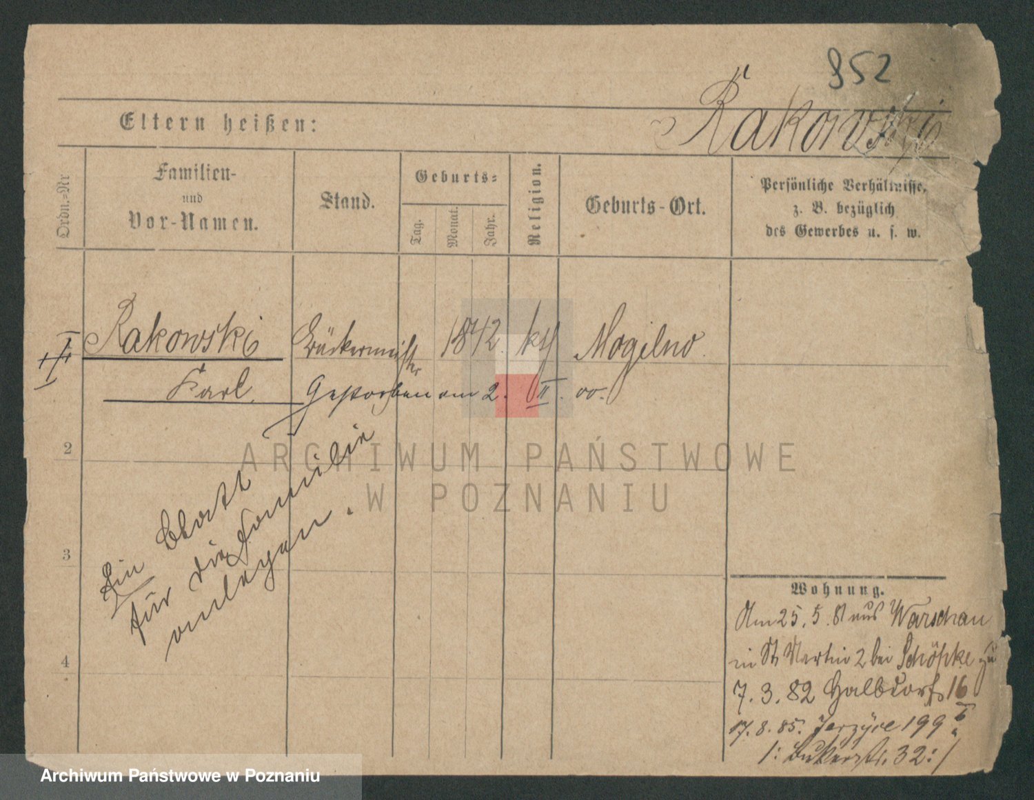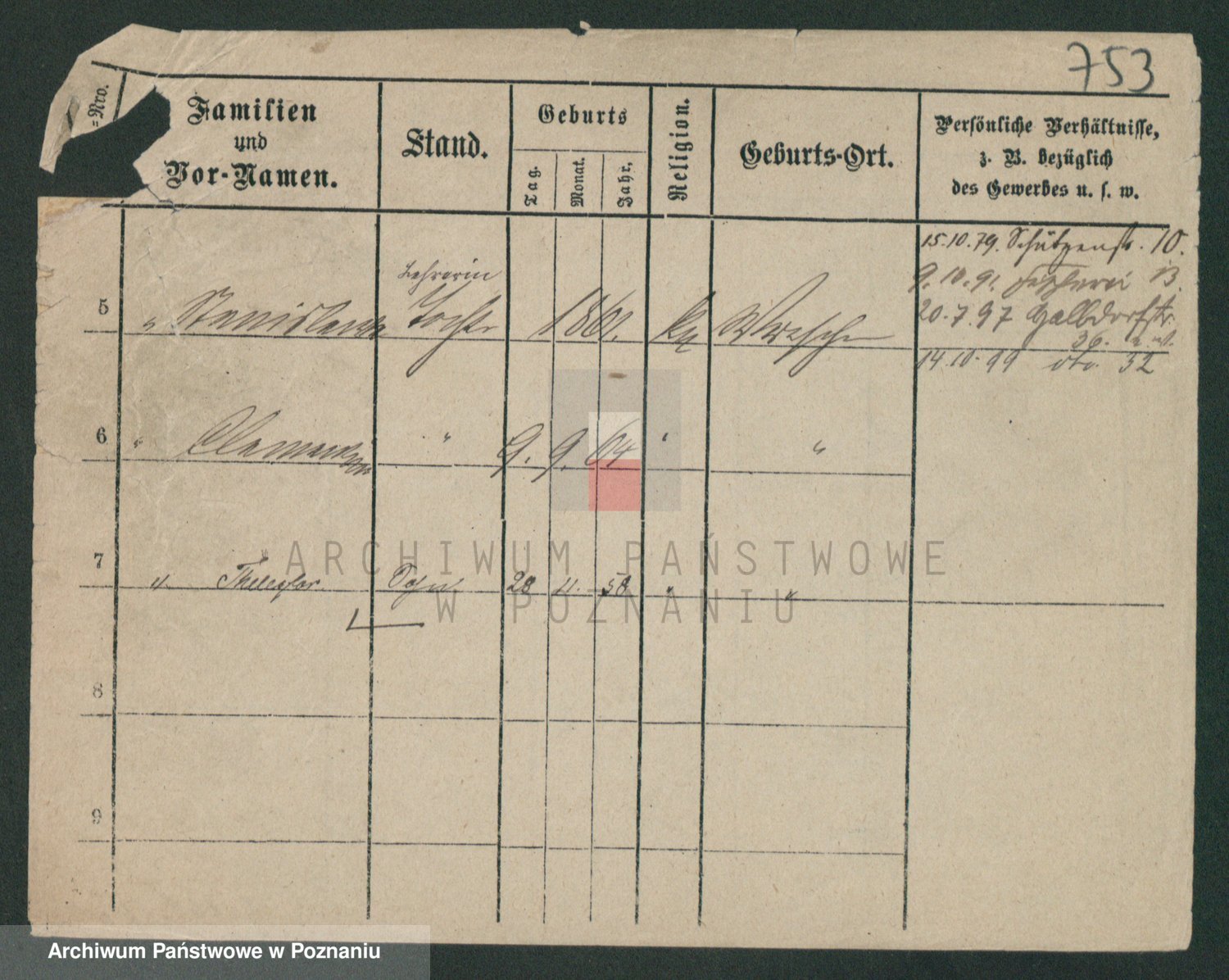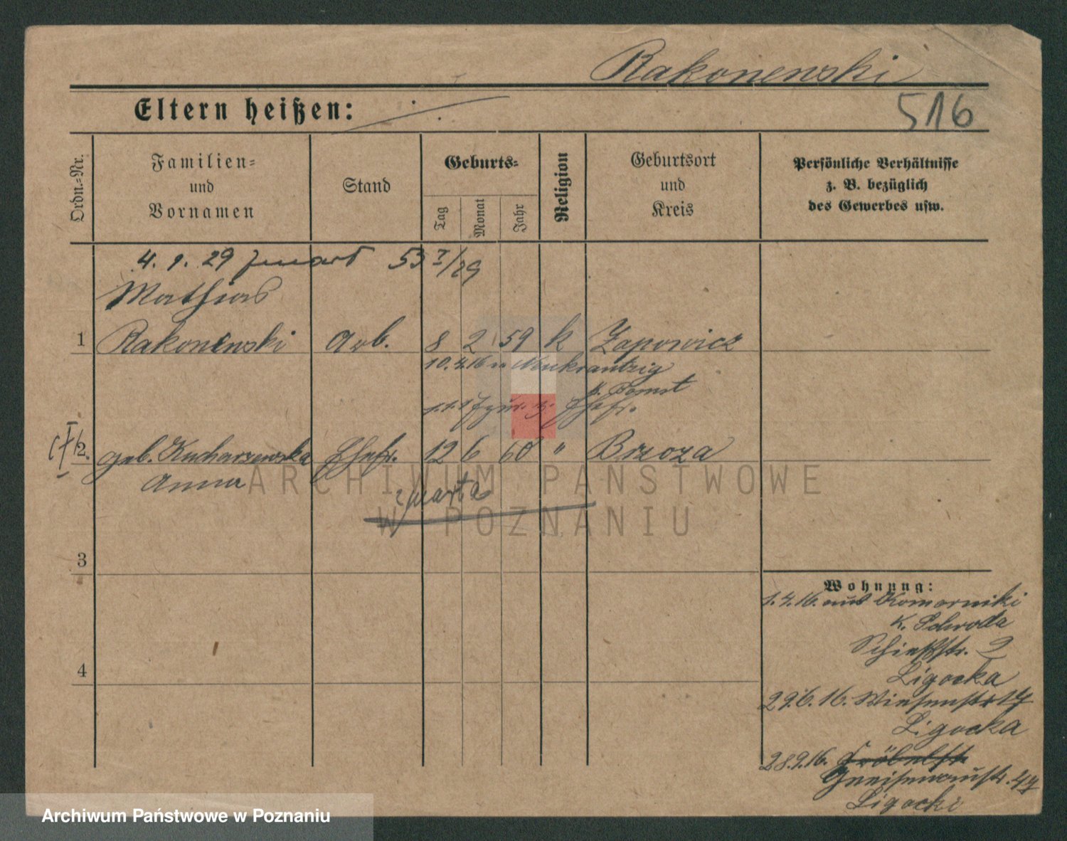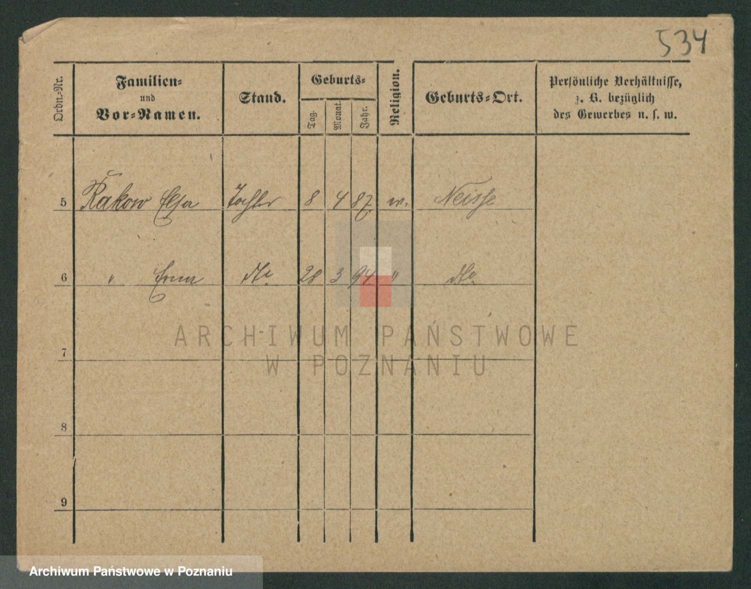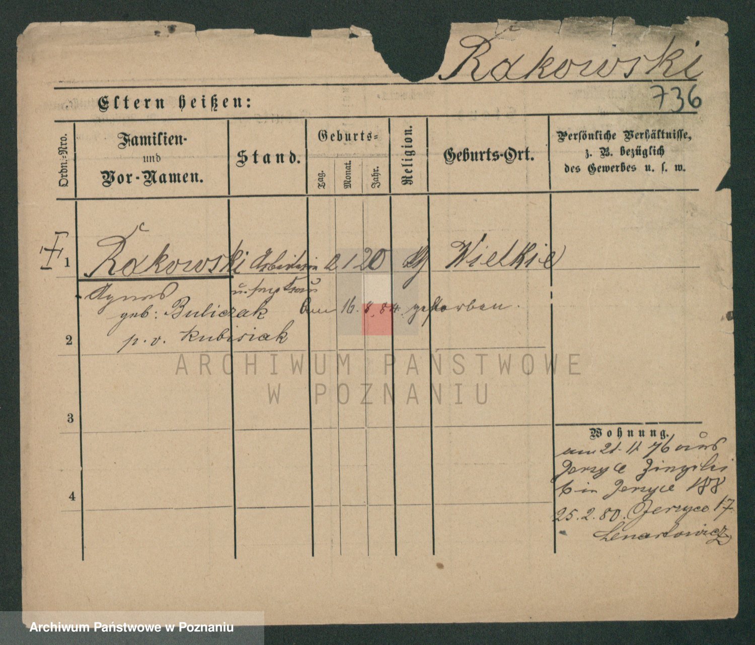 Podgląd karty osobowej dostępny jest po kliknięciu na nazwisko lub ikonkę karty. Można dokonywać powiększenia (ikony na górze) lub przechodzić między kolejnymi skanami (strzałki po bokach).