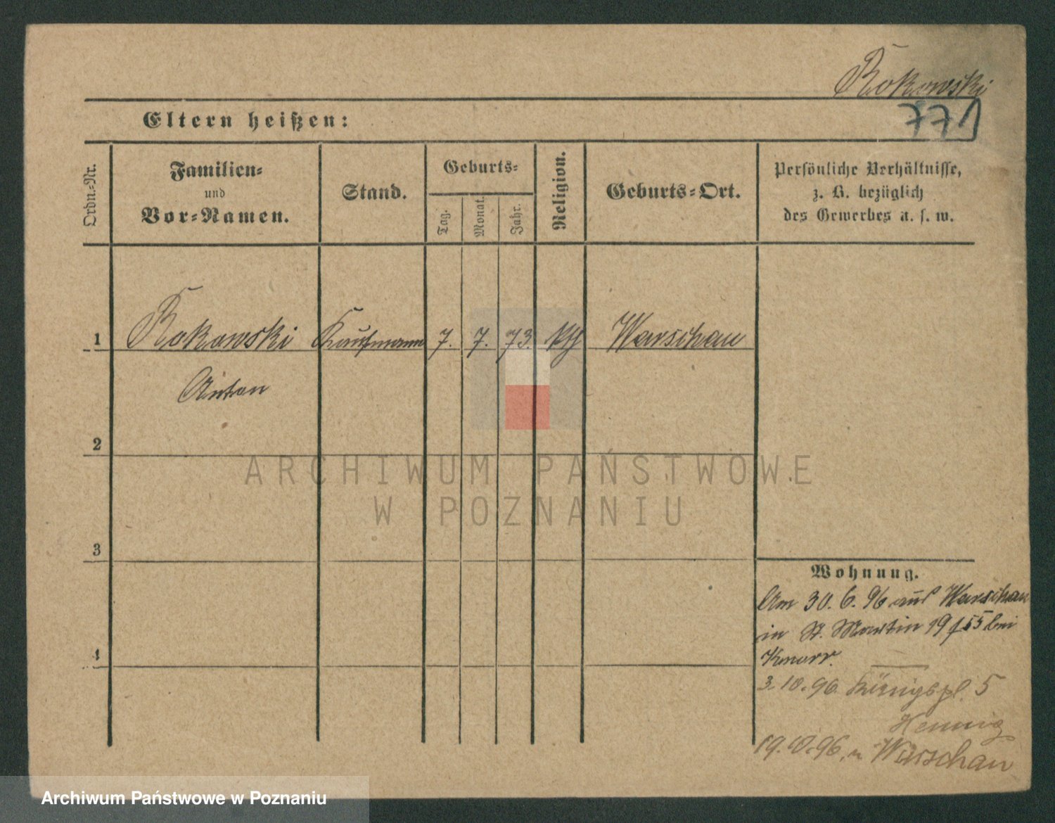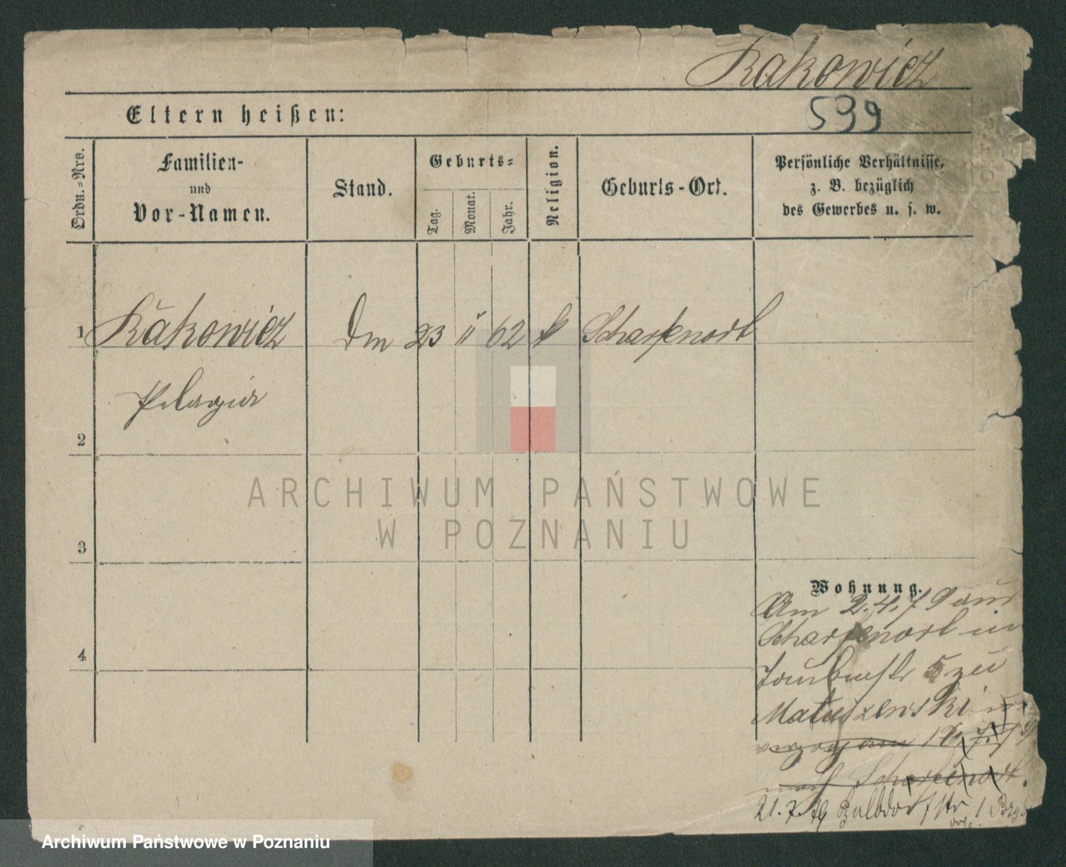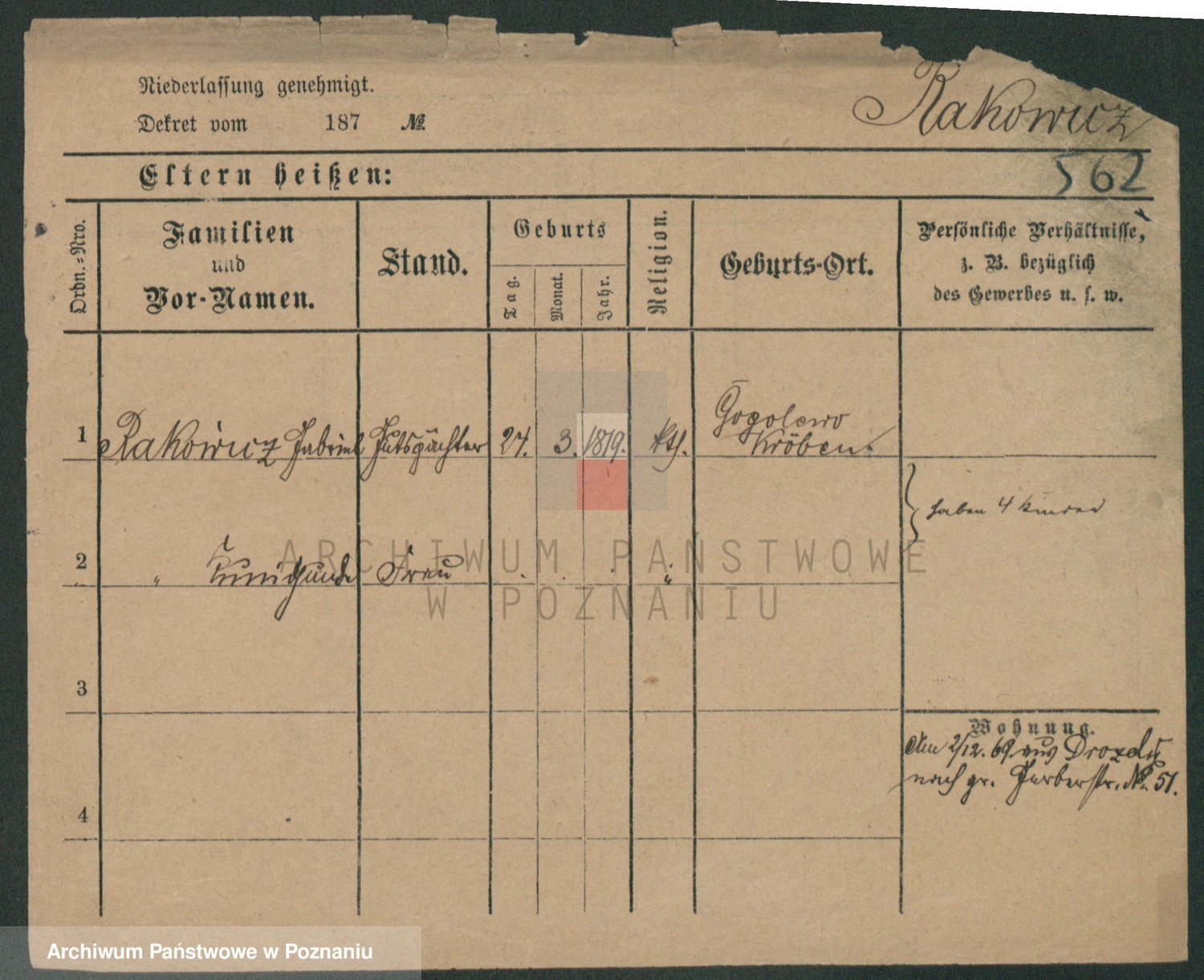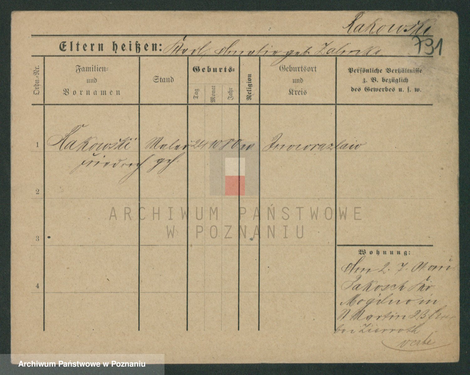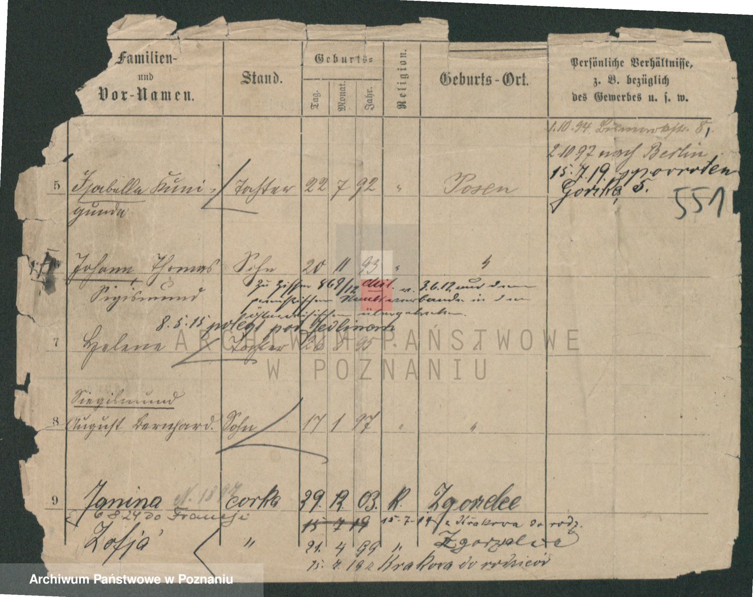 Podgląd karty osobowej dostępny jest po kliknięciu na nazwisko lub ikonkę karty. Można dokonywać powiększenia (ikony na górze) lub przechodzić między kolejnymi skanami (strzałki po bokach).