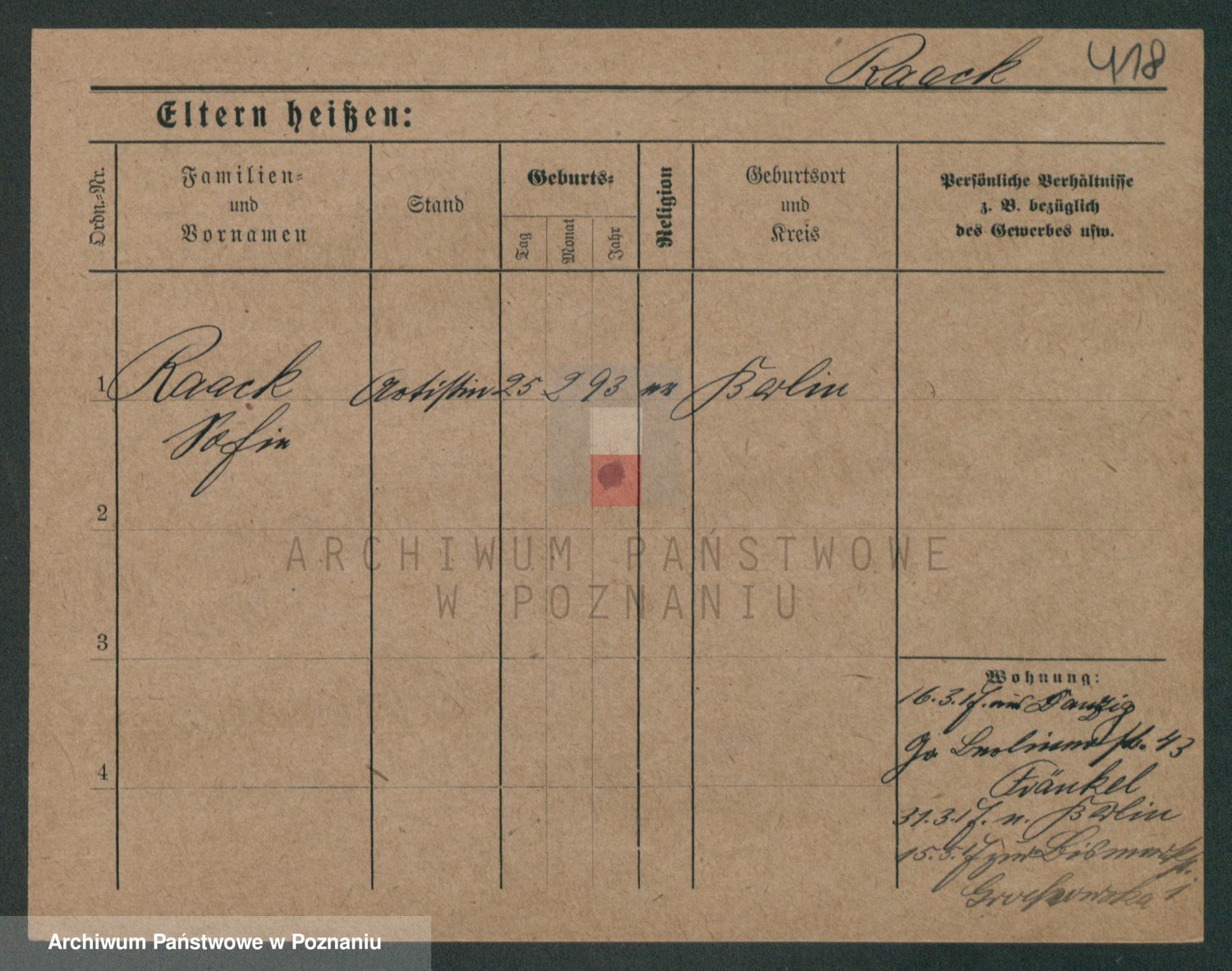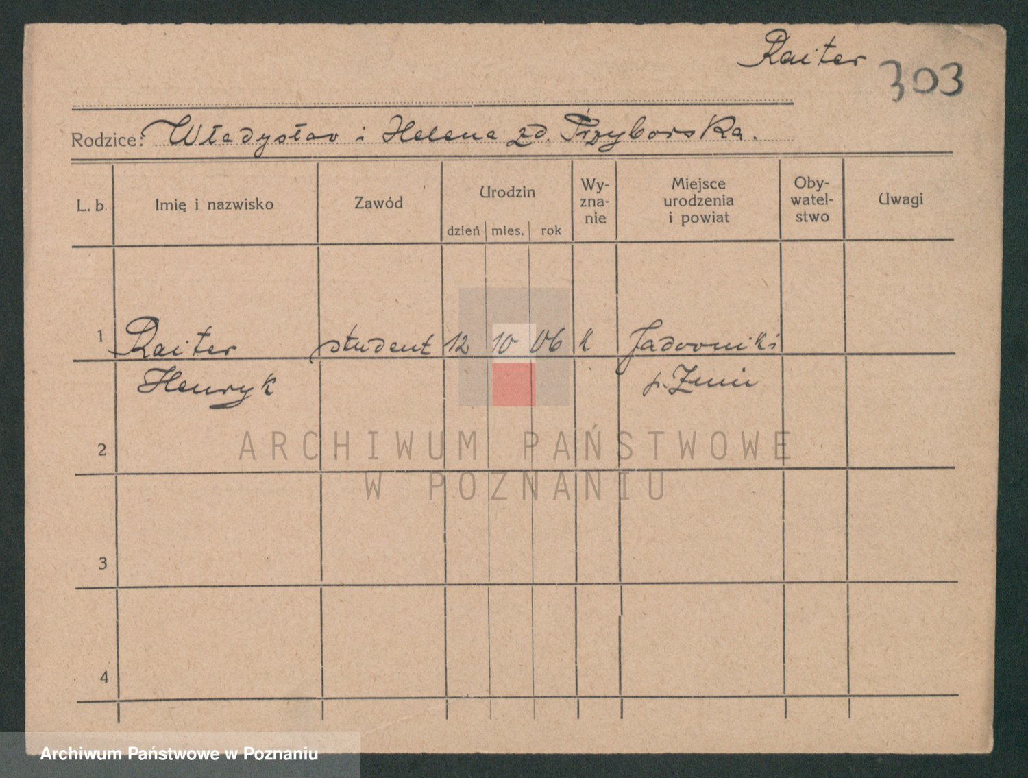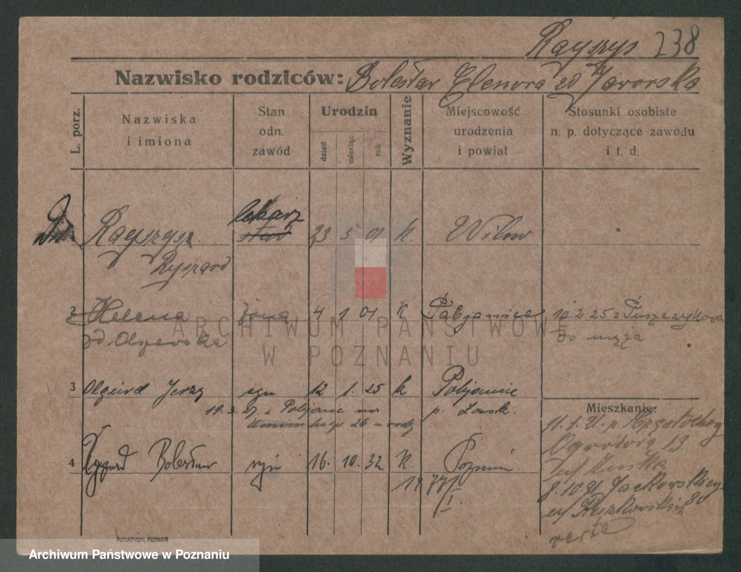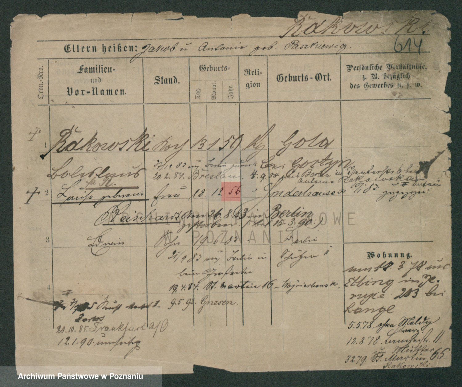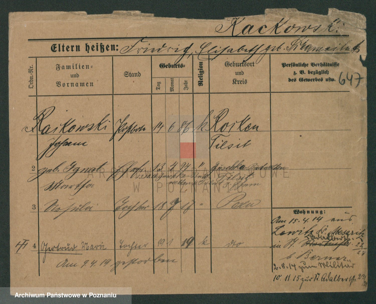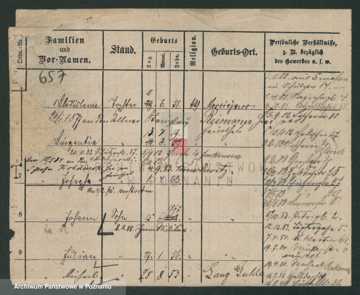 Podgląd karty osobowej dostępny jest po kliknięciu na nazwisko lub ikonkę karty. Można dokonywać powiększenia (ikony na górze) lub przechodzić między kolejnymi skanami (strzałki po bokach).