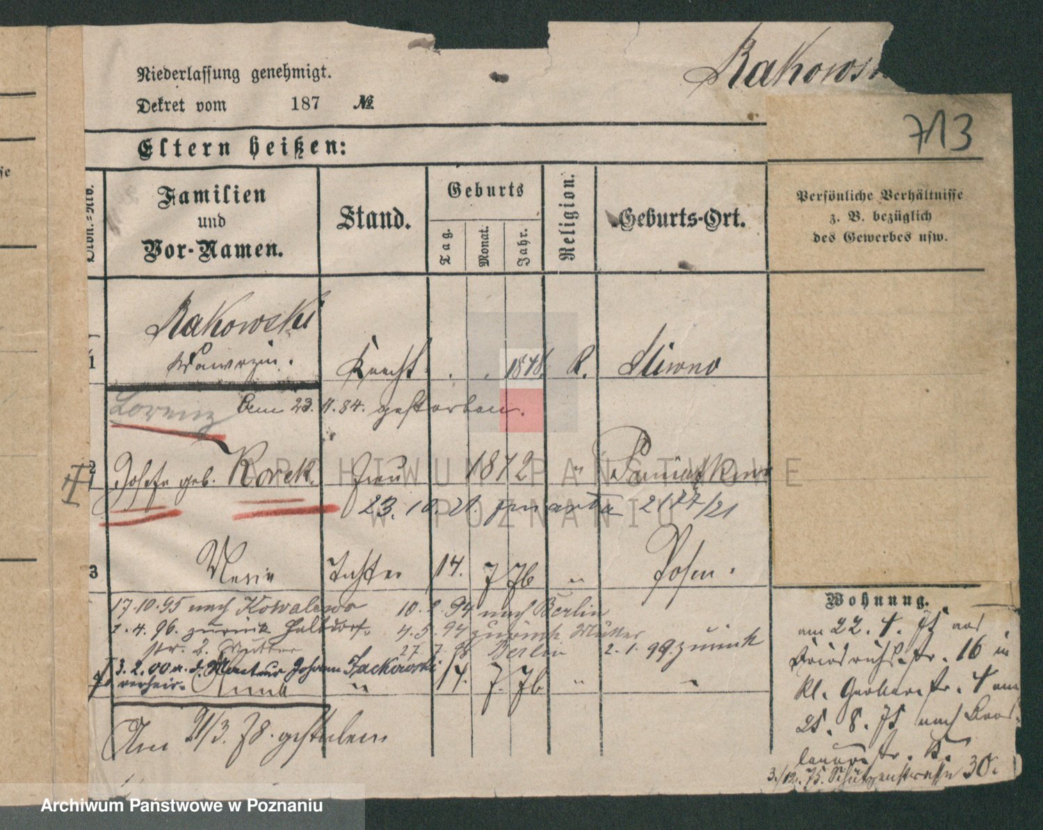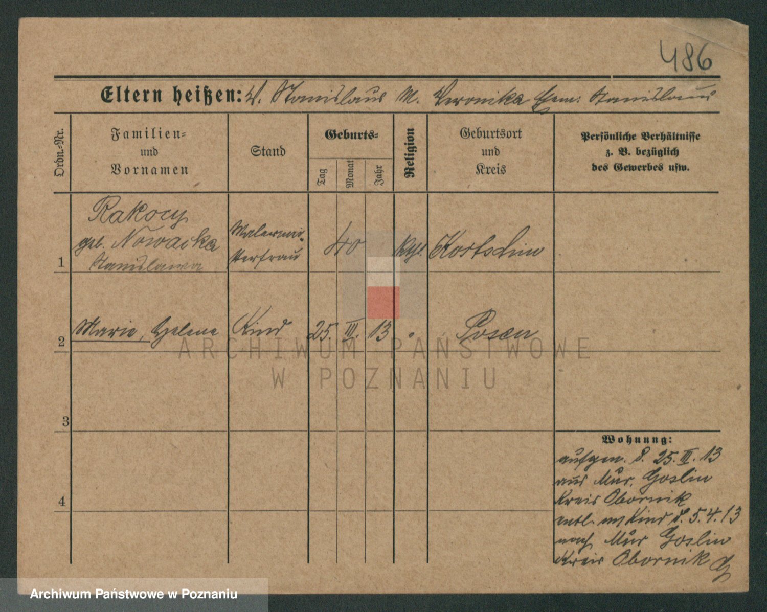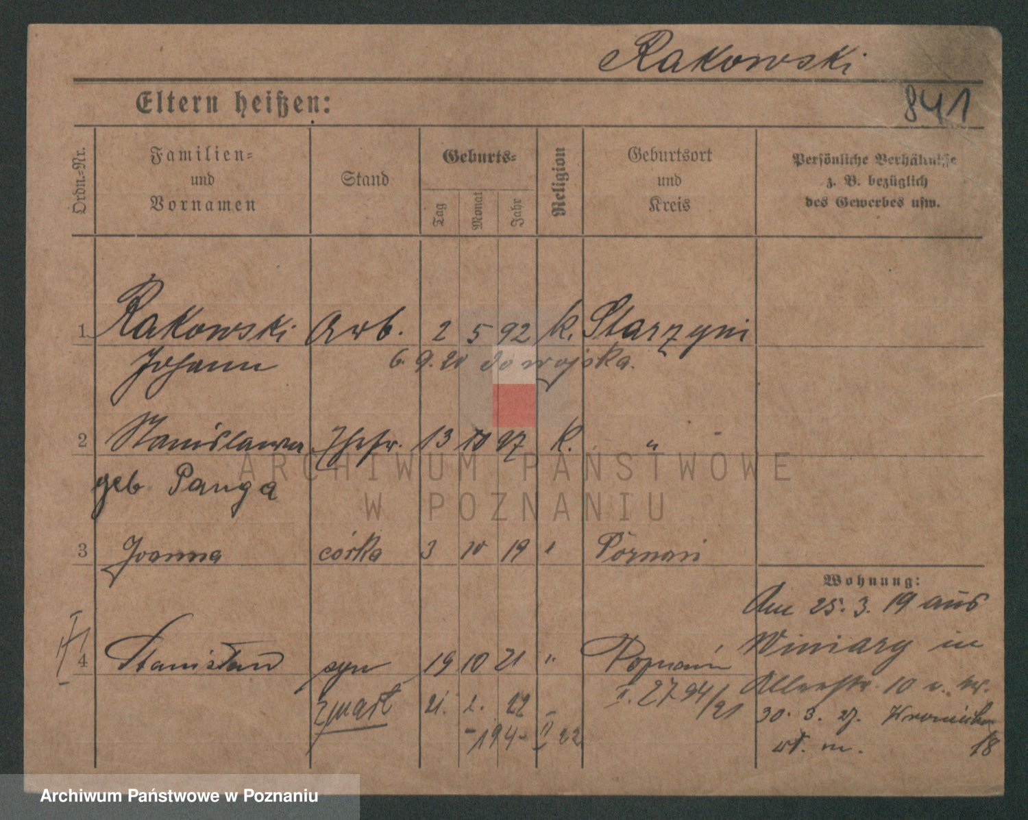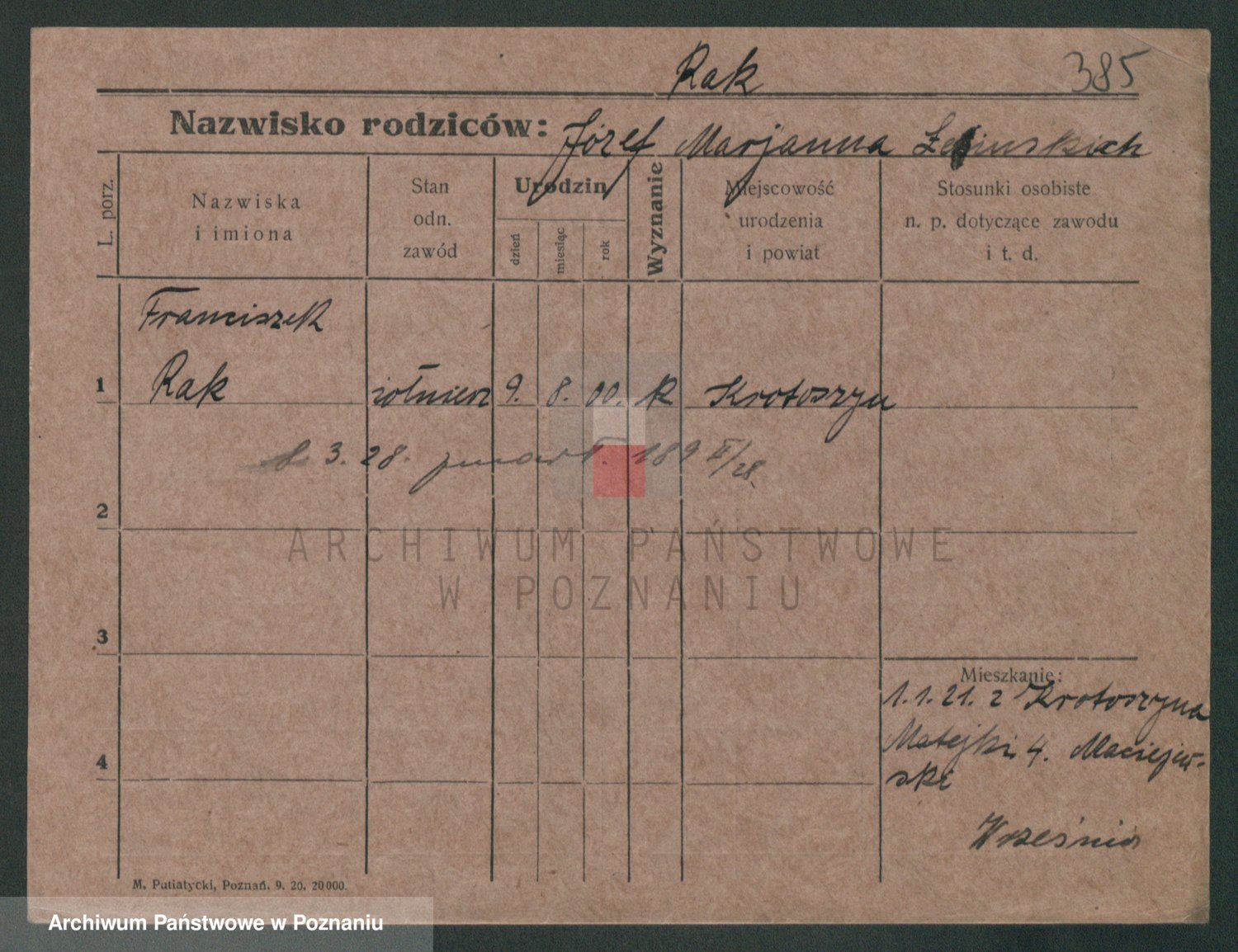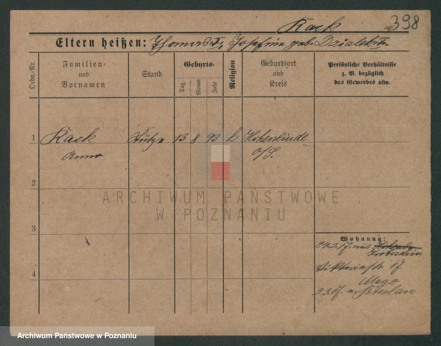 Podgląd karty osobowej dostępny jest po kliknięciu na nazwisko lub ikonkę karty. Można dokonywać powiększenia (ikony na górze) lub przechodzić między kolejnymi skanami (strzałki po bokach).