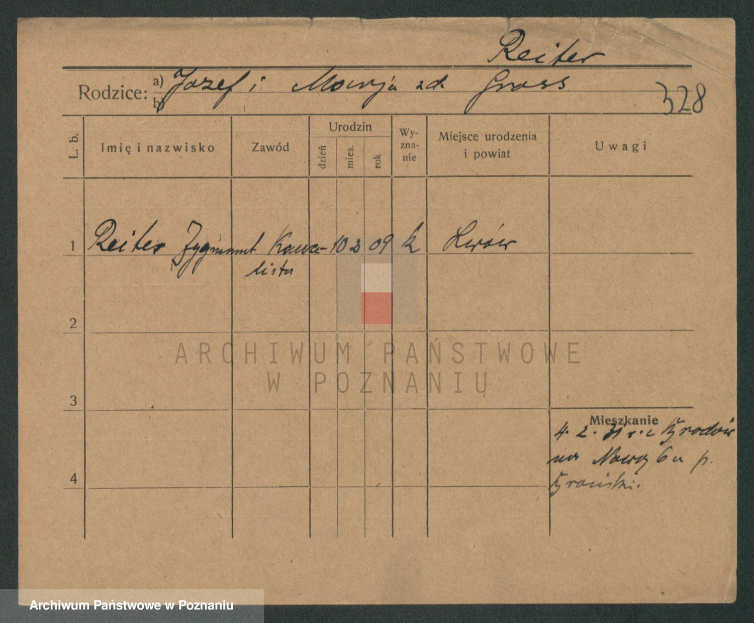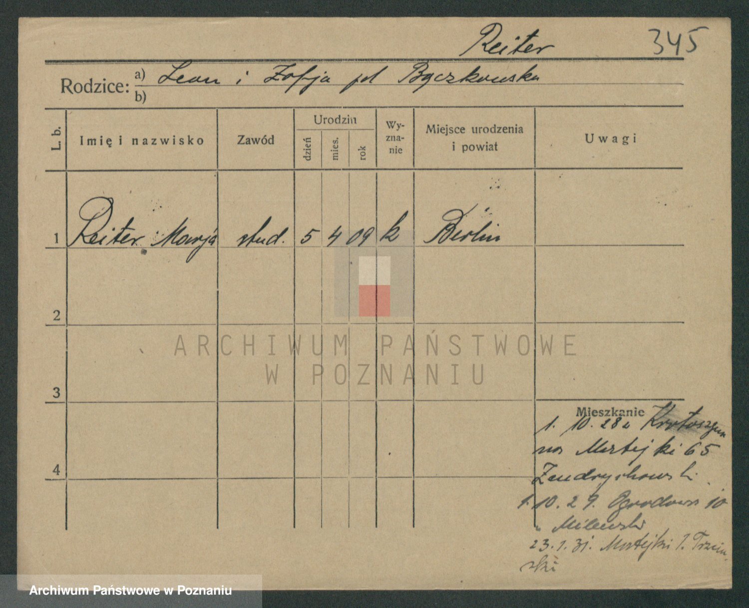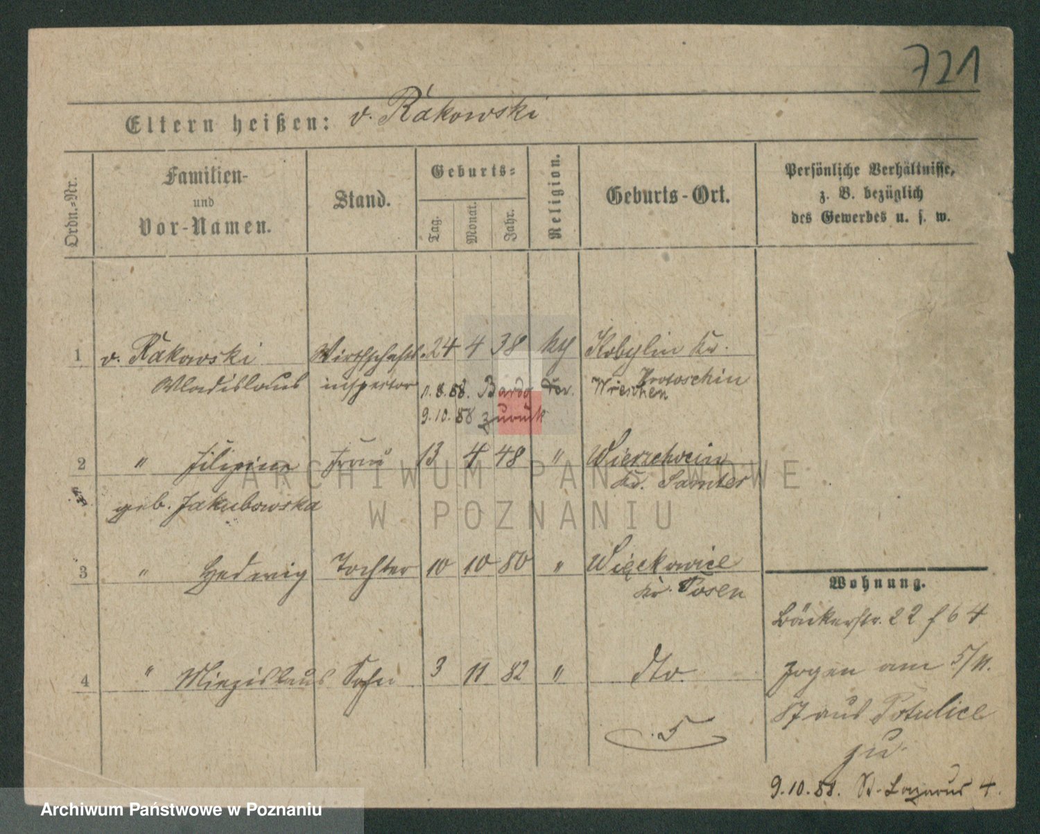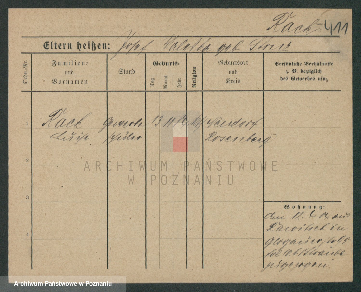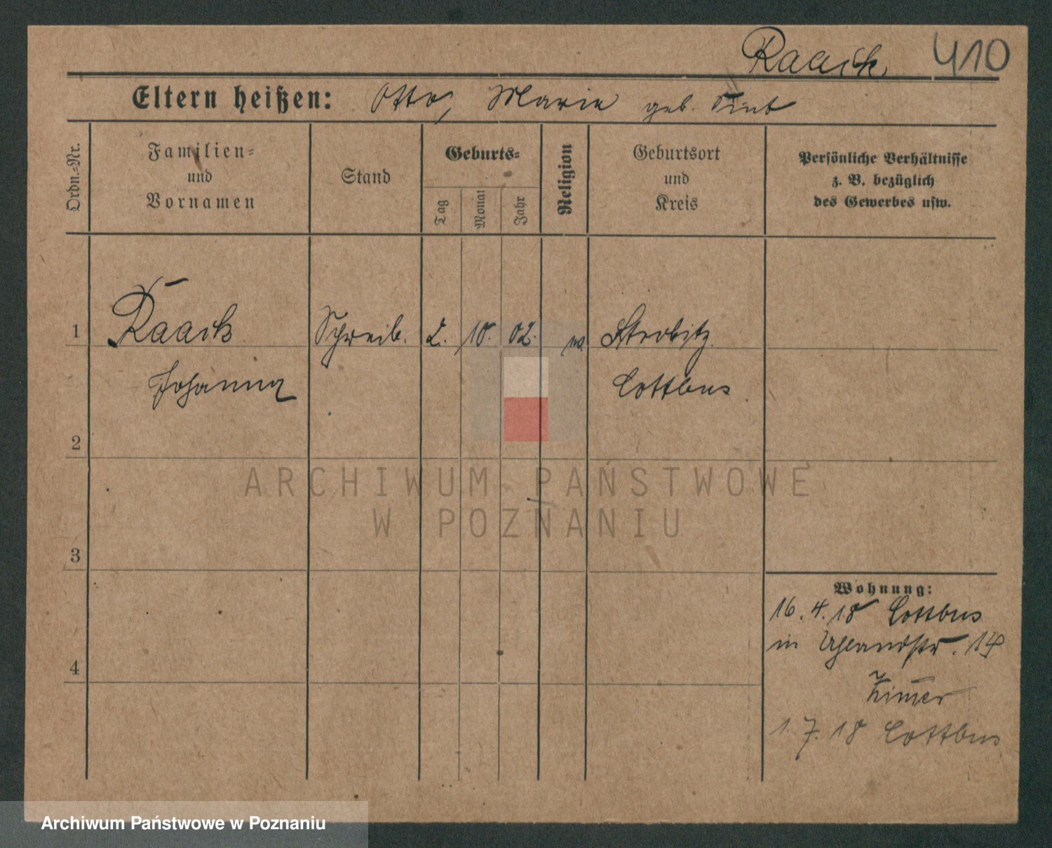 Podgląd karty osobowej dostępny jest po kliknięciu na nazwisko lub ikonkę karty. Można dokonywać powiększenia (ikony na górze) lub przechodzić między kolejnymi skanami (strzałki po bokach).