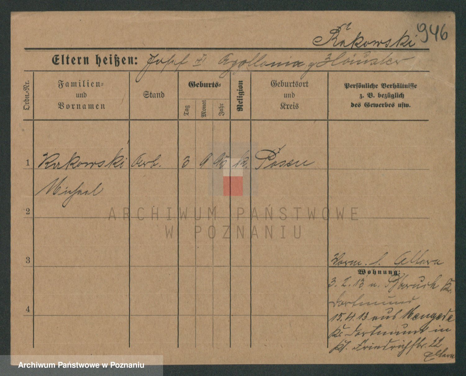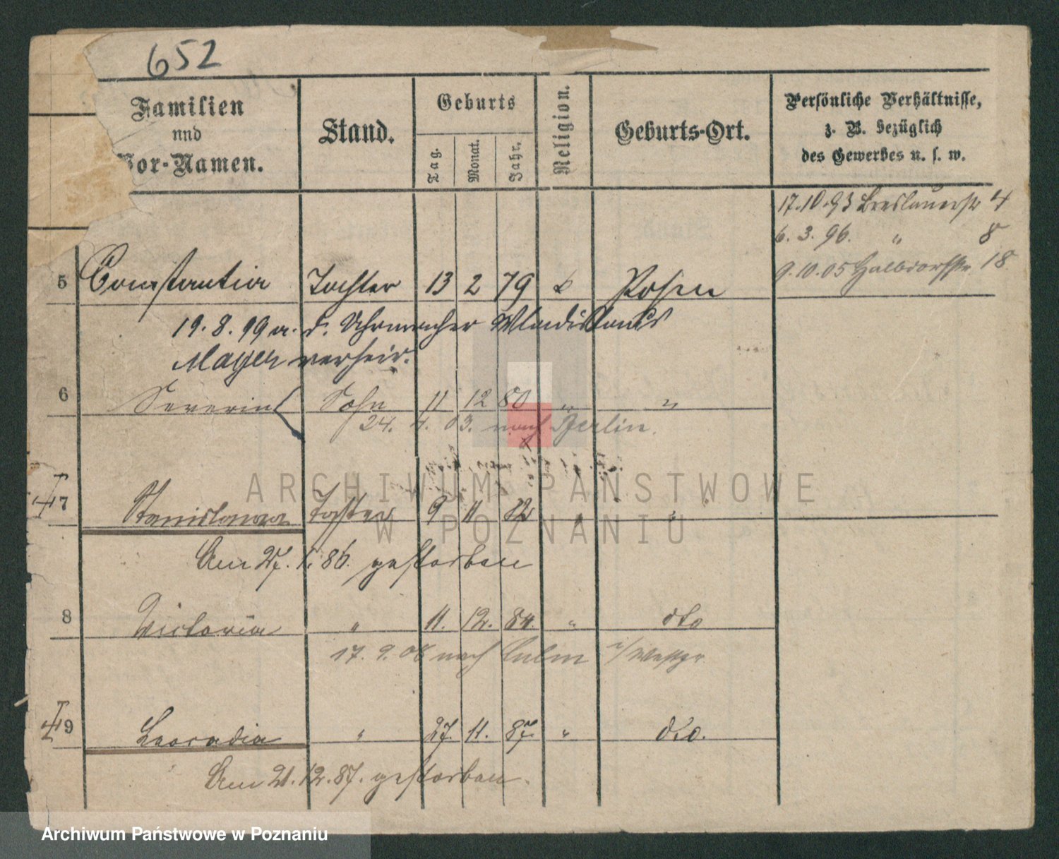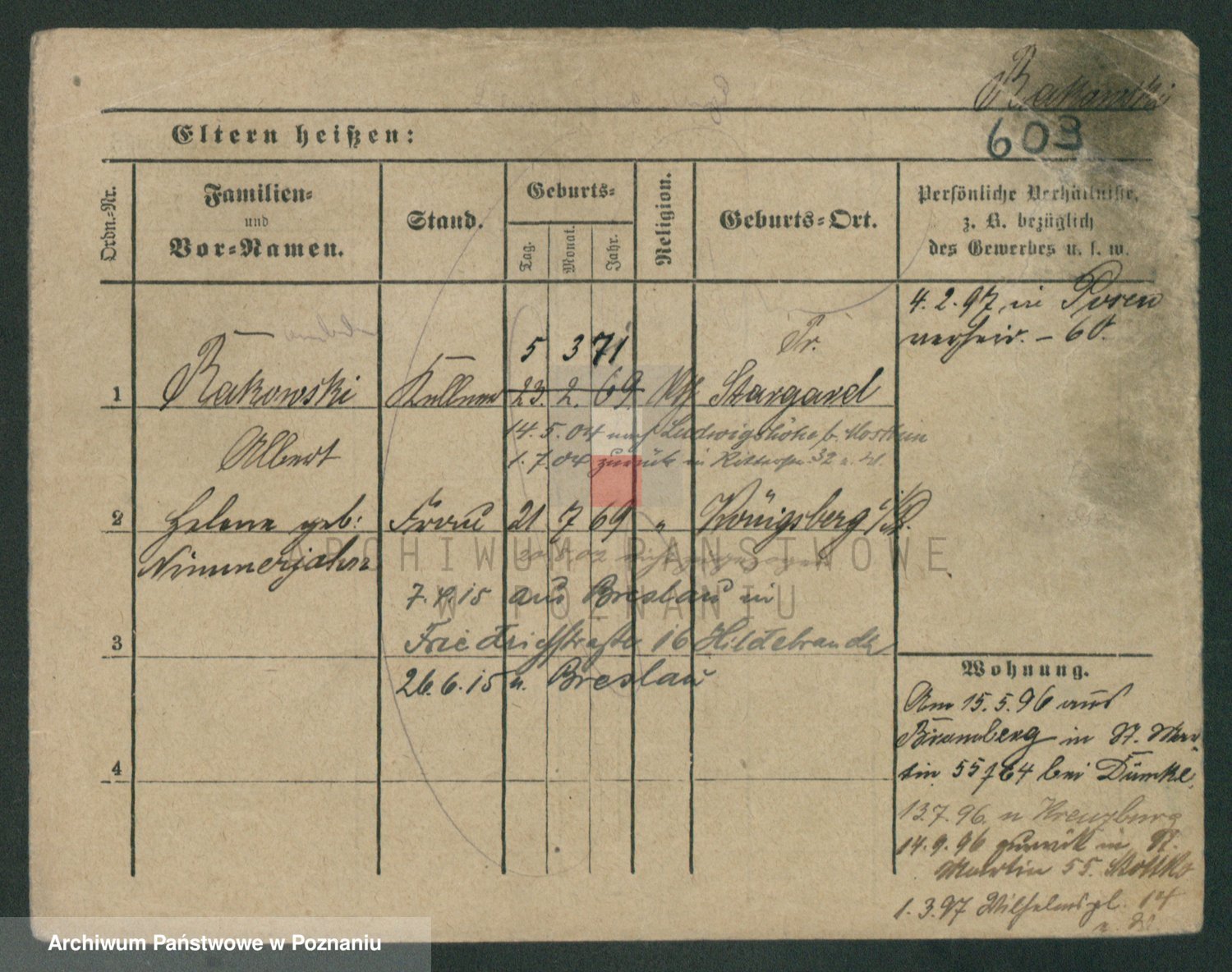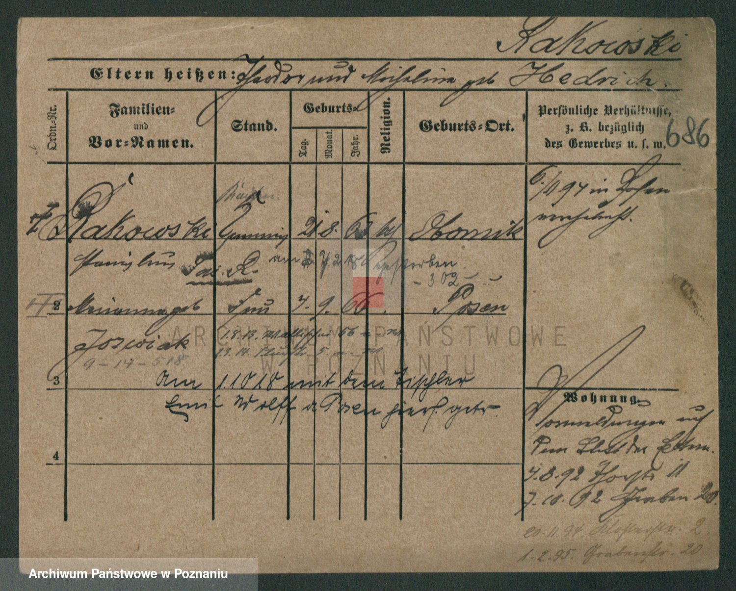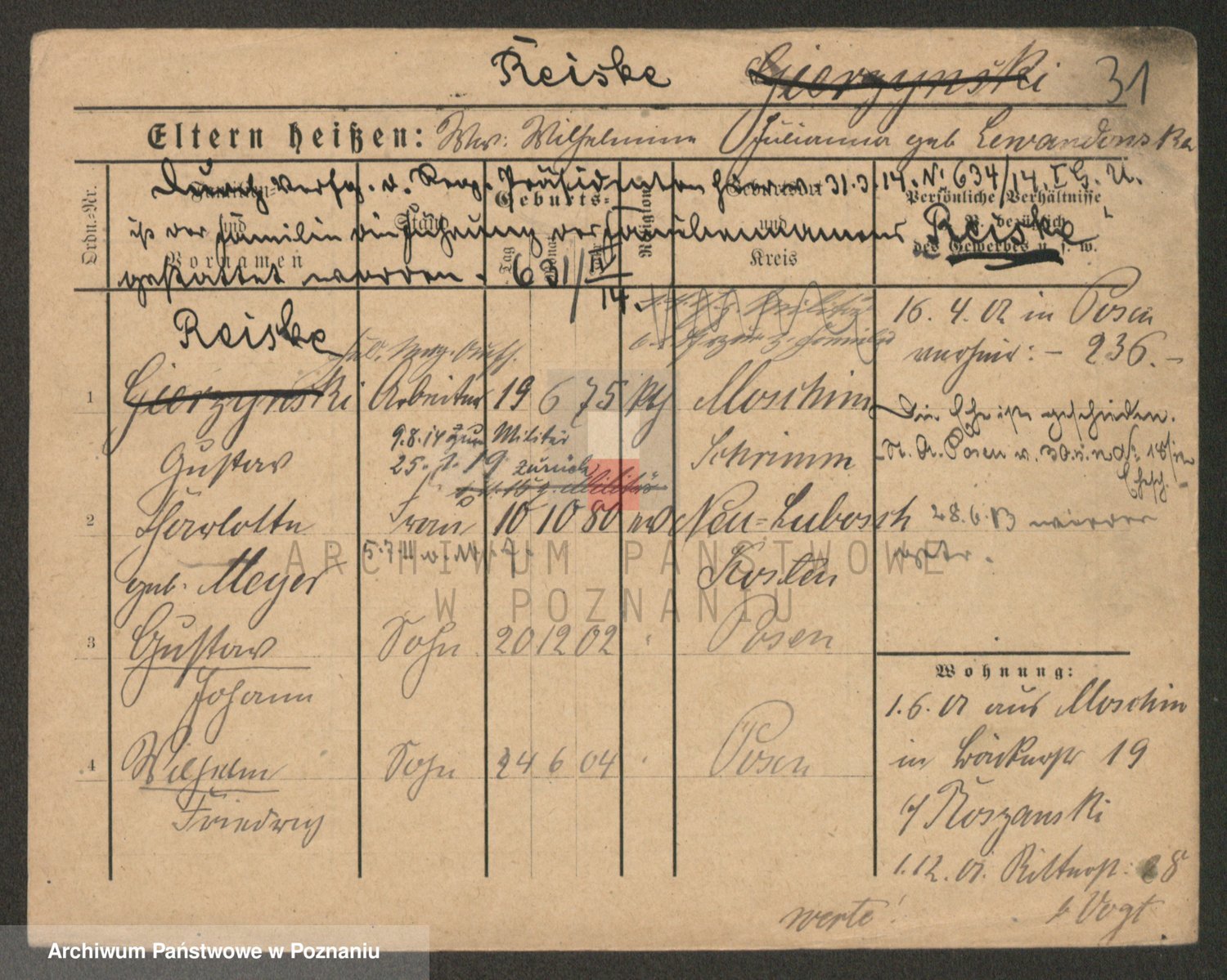 Podgląd karty osobowej dostępny jest po kliknięciu na nazwisko lub ikonkę karty. Można dokonywać powiększenia (ikony na górze) lub przechodzić między kolejnymi skanami (strzałki po bokach).