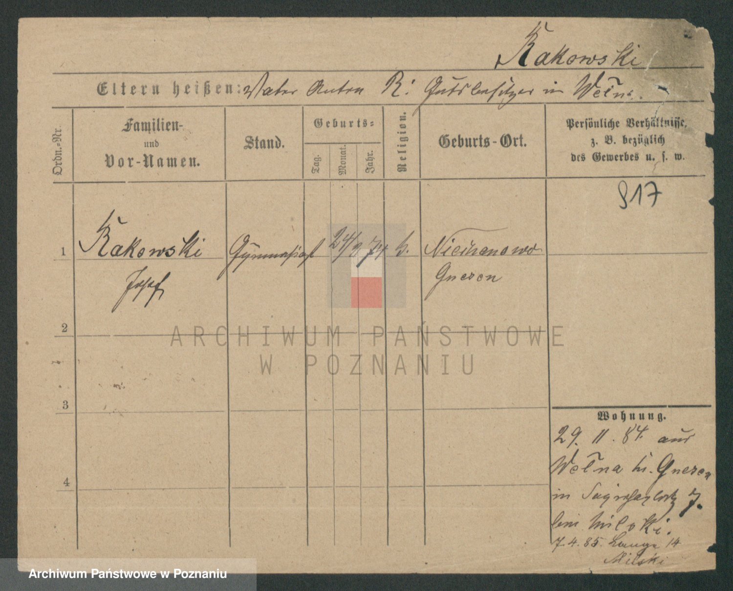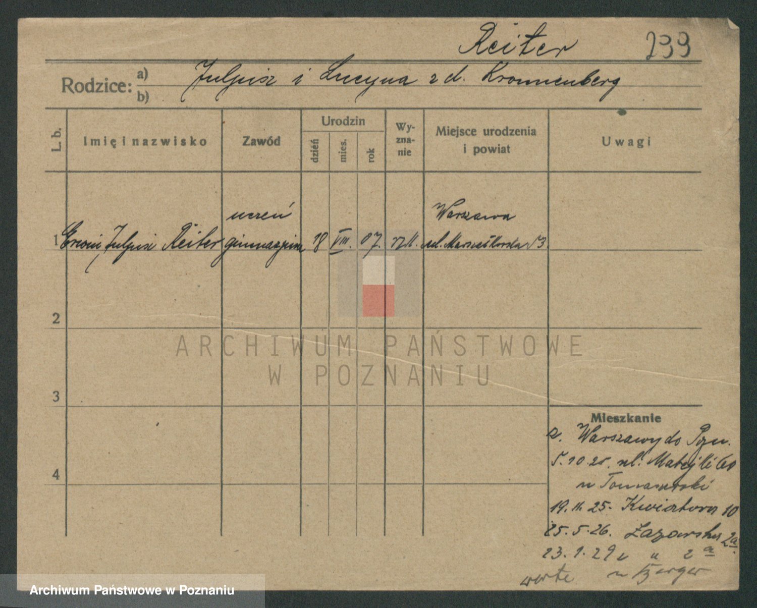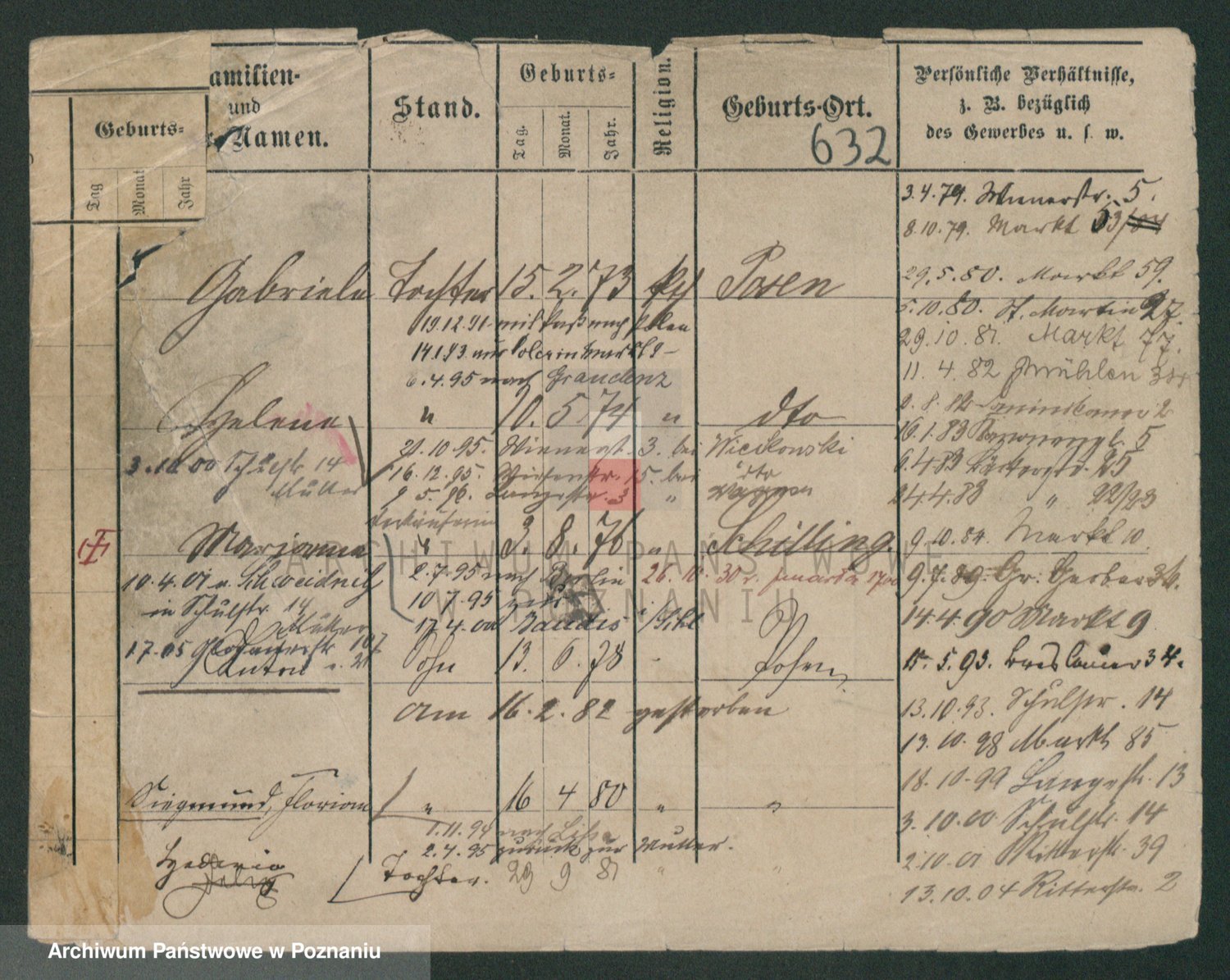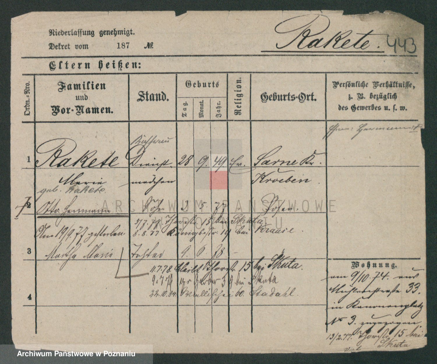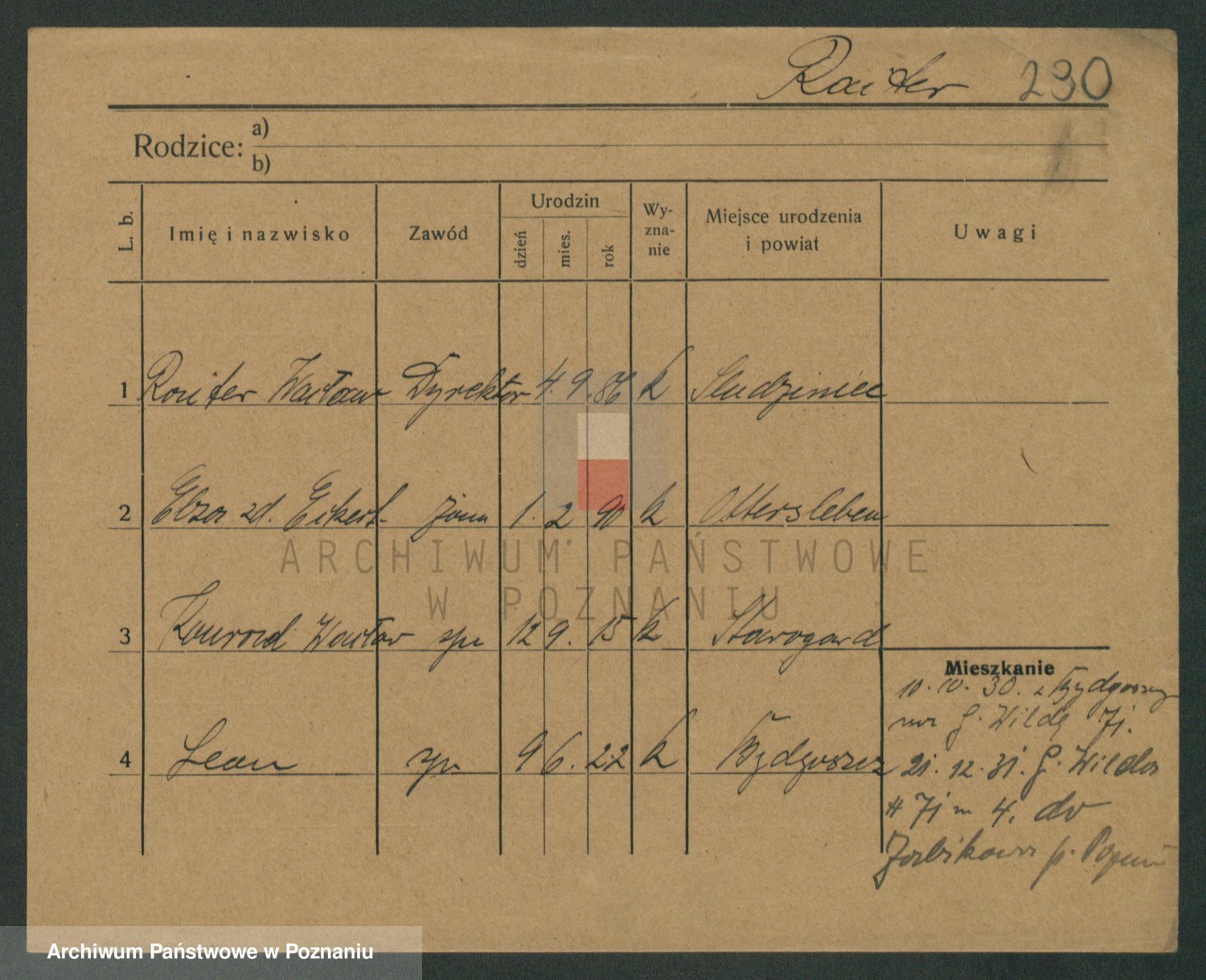 Podgląd karty osobowej dostępny jest po kliknięciu na nazwisko lub ikonkę karty. Można dokonywać powiększenia (ikony na górze) lub przechodzić między kolejnymi skanami (strzałki po bokach).