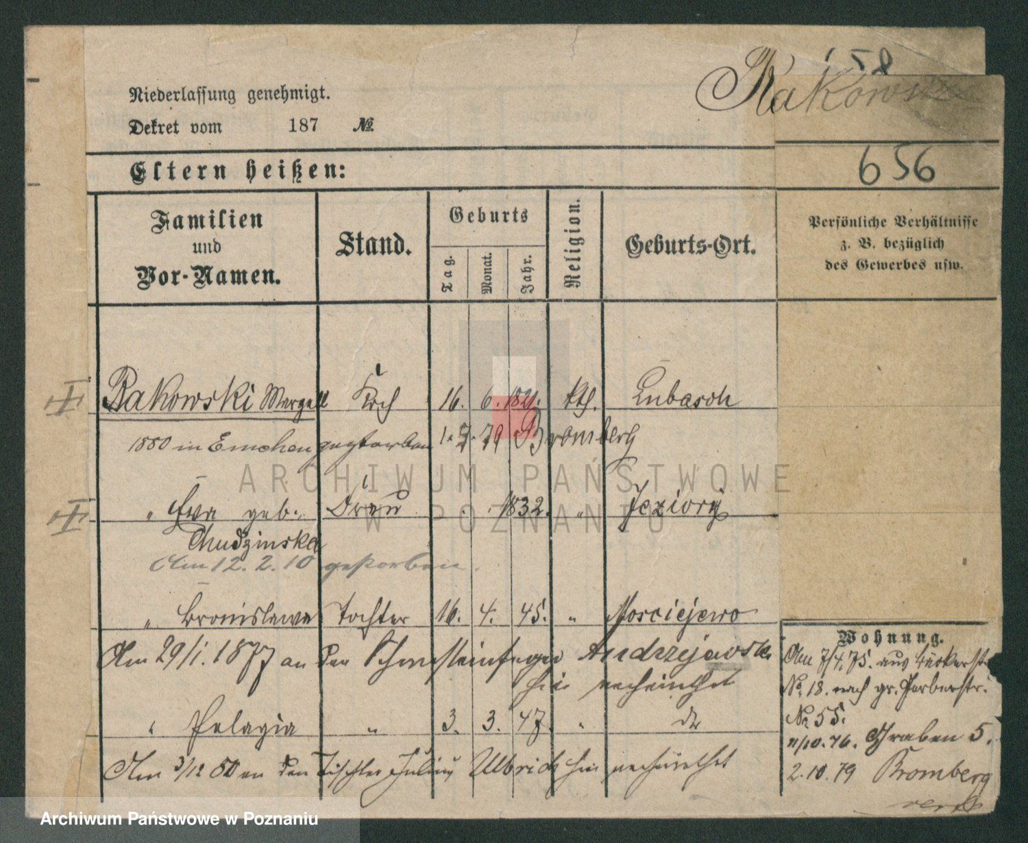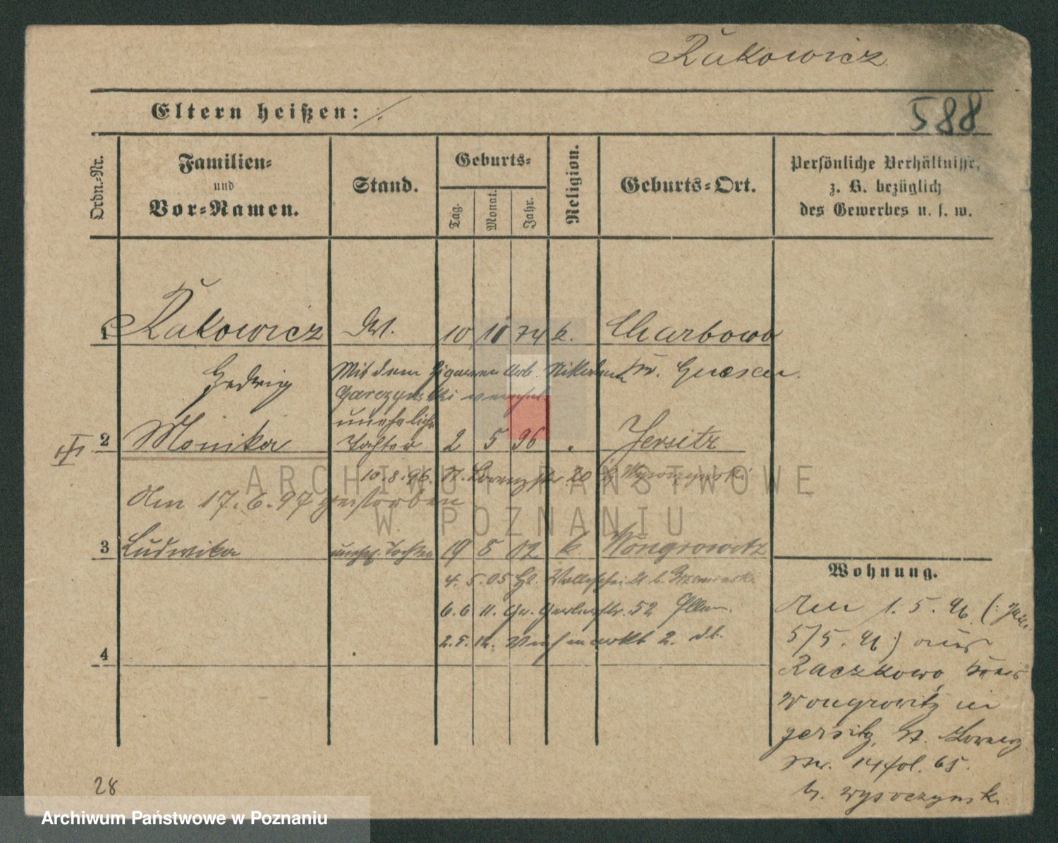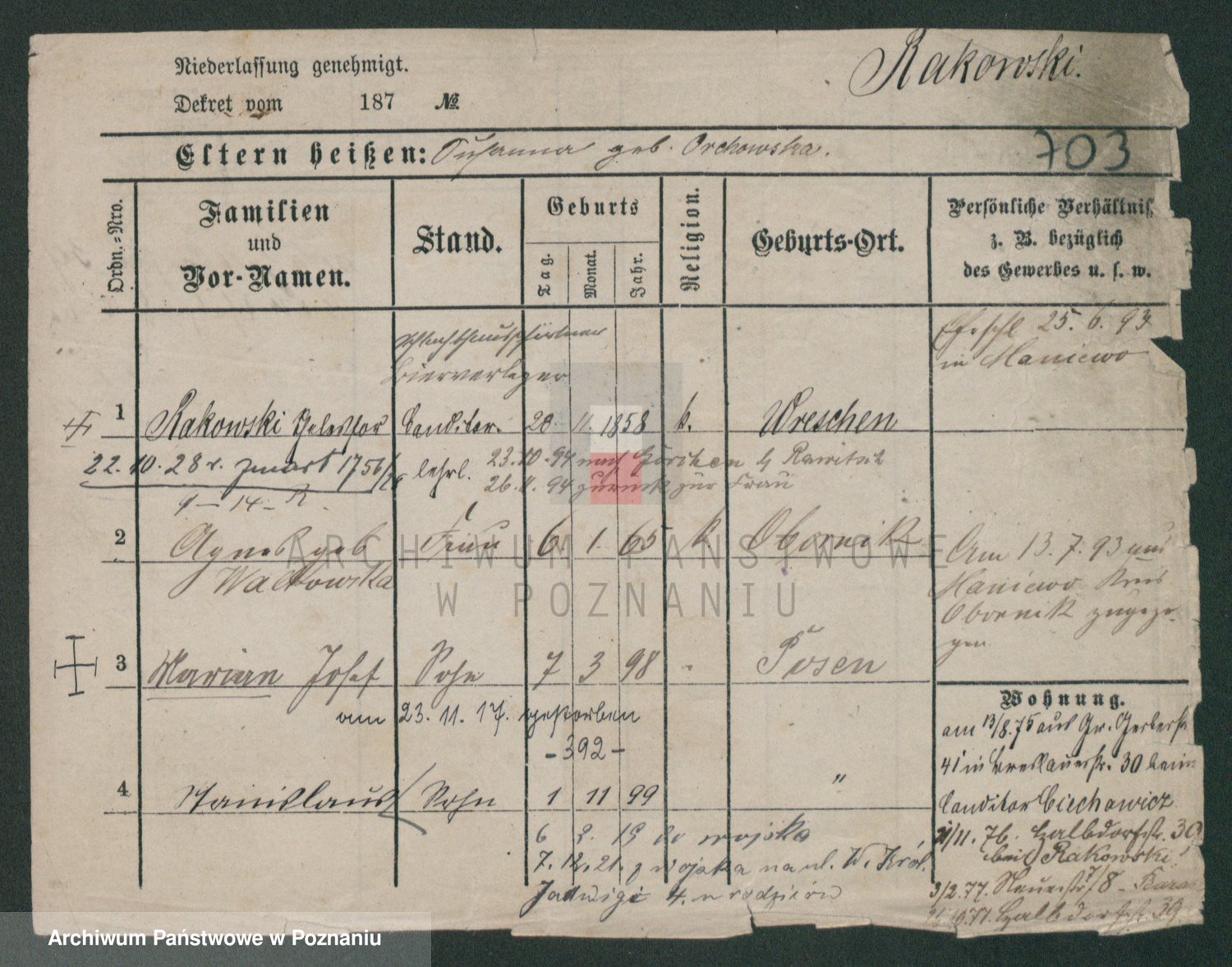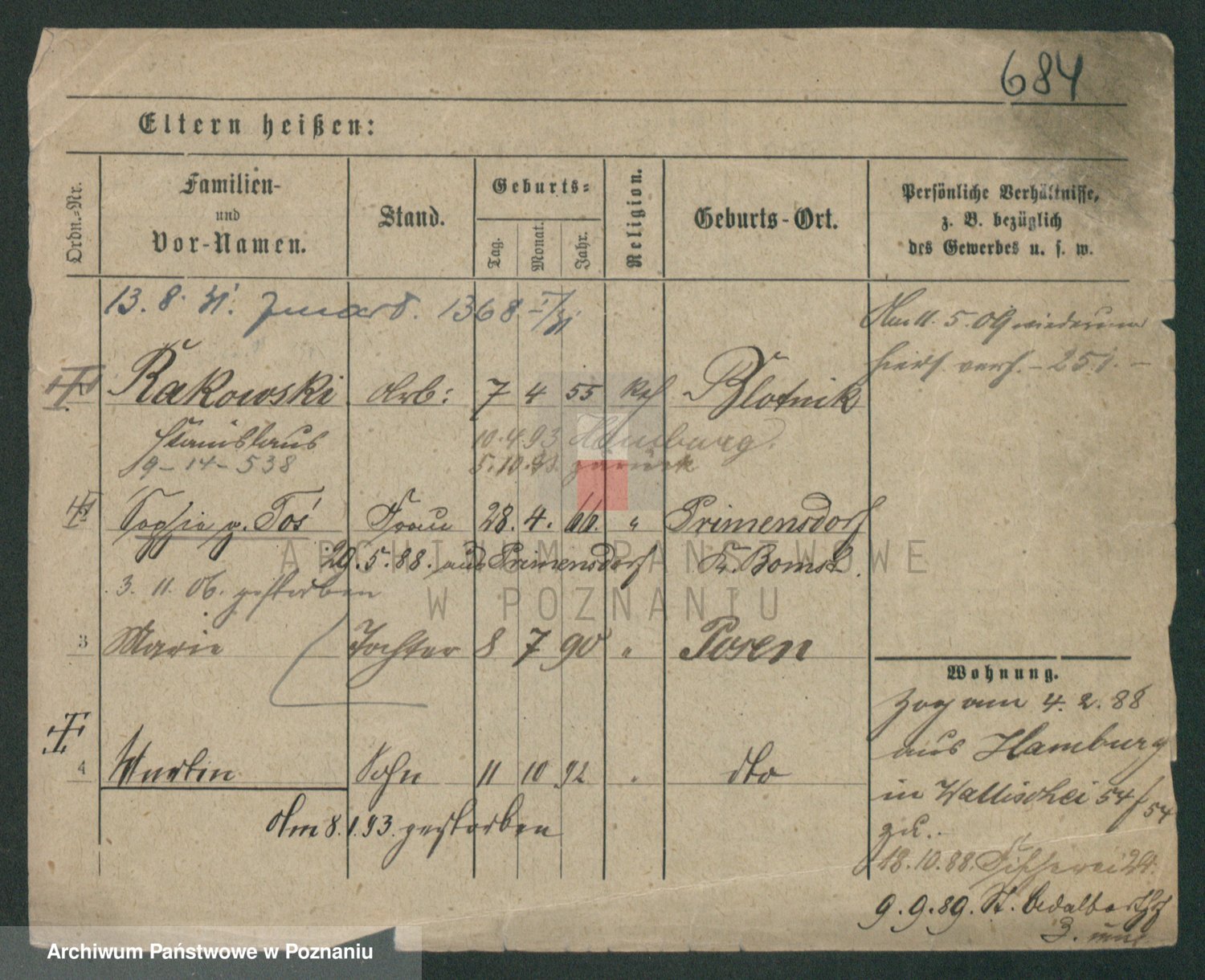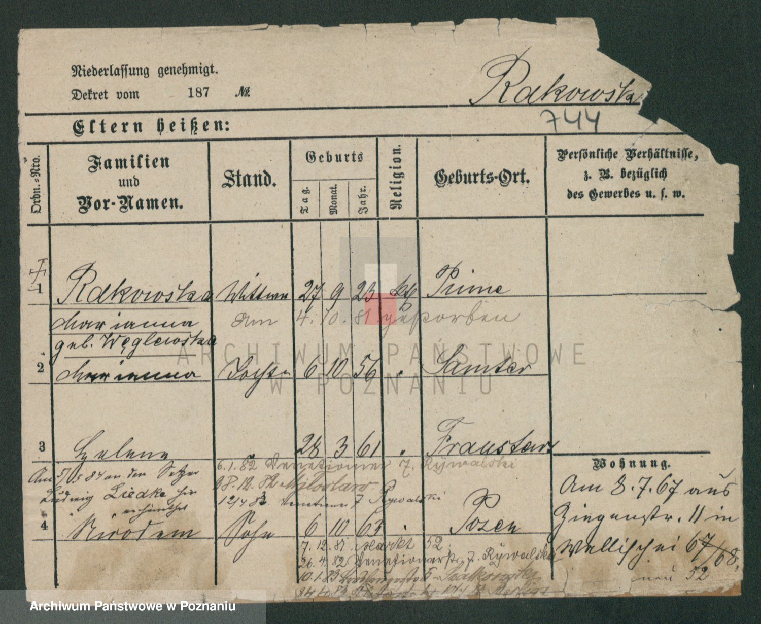 Podgląd karty osobowej dostępny jest po kliknięciu na nazwisko lub ikonkę karty. Można dokonywać powiększenia (ikony na górze) lub przechodzić między kolejnymi skanami (strzałki po bokach).