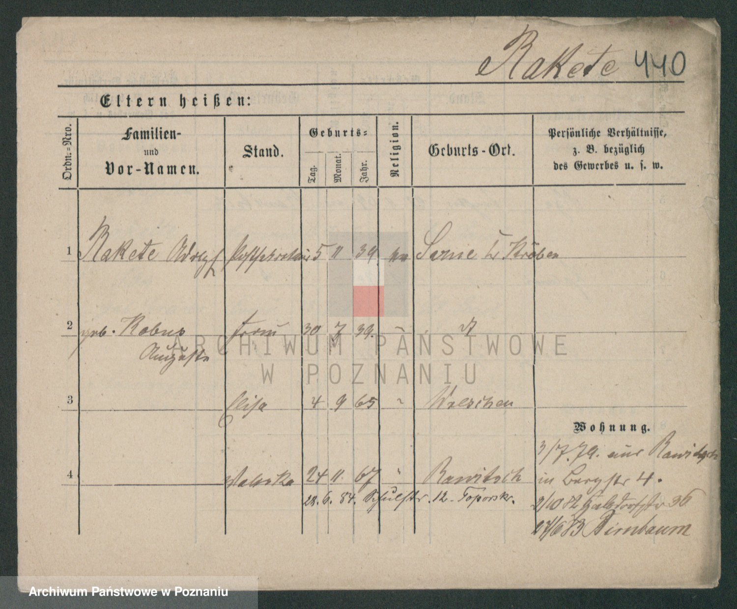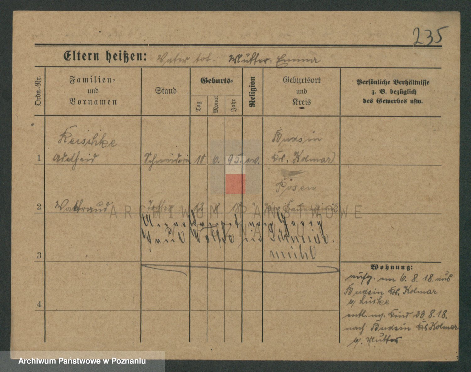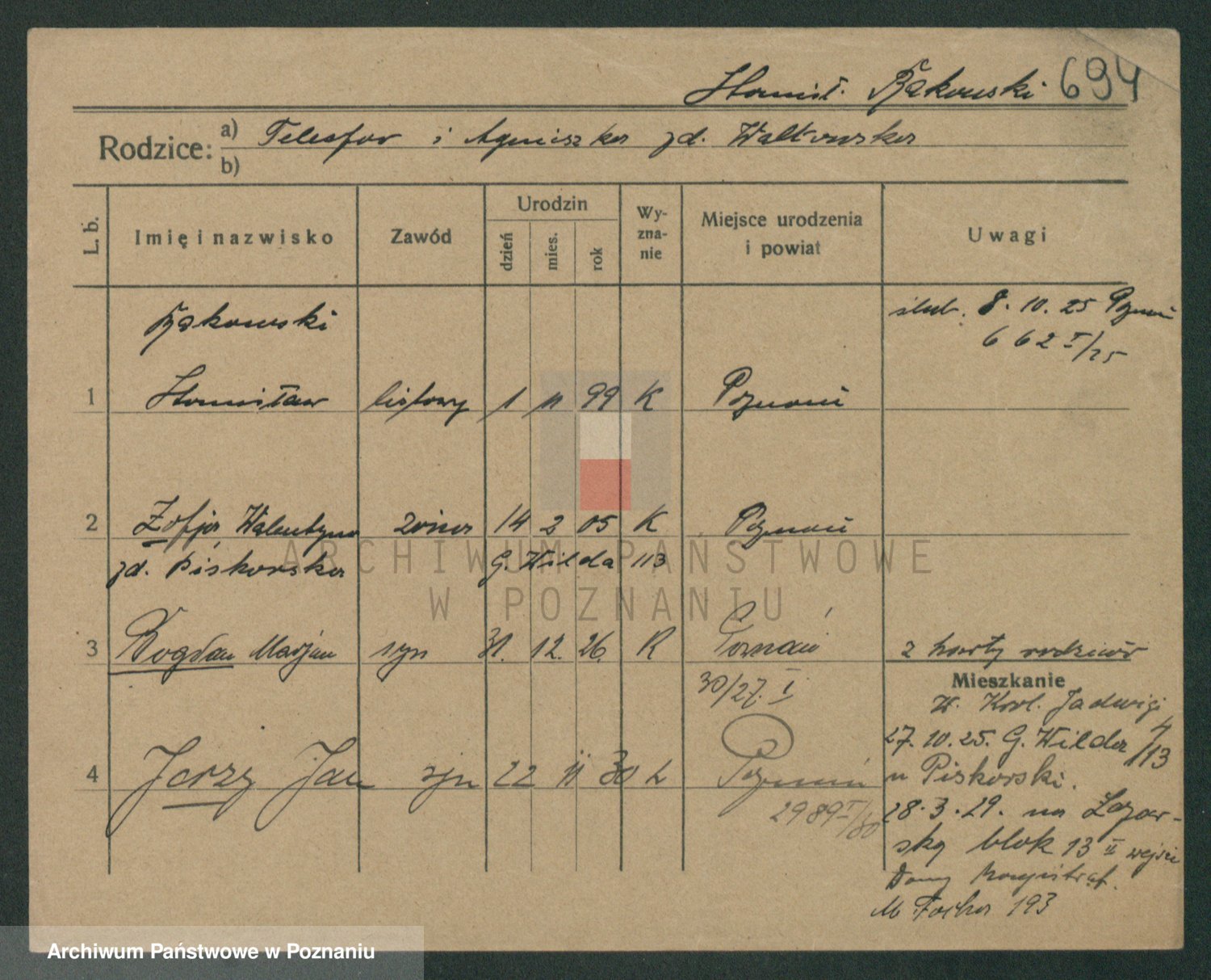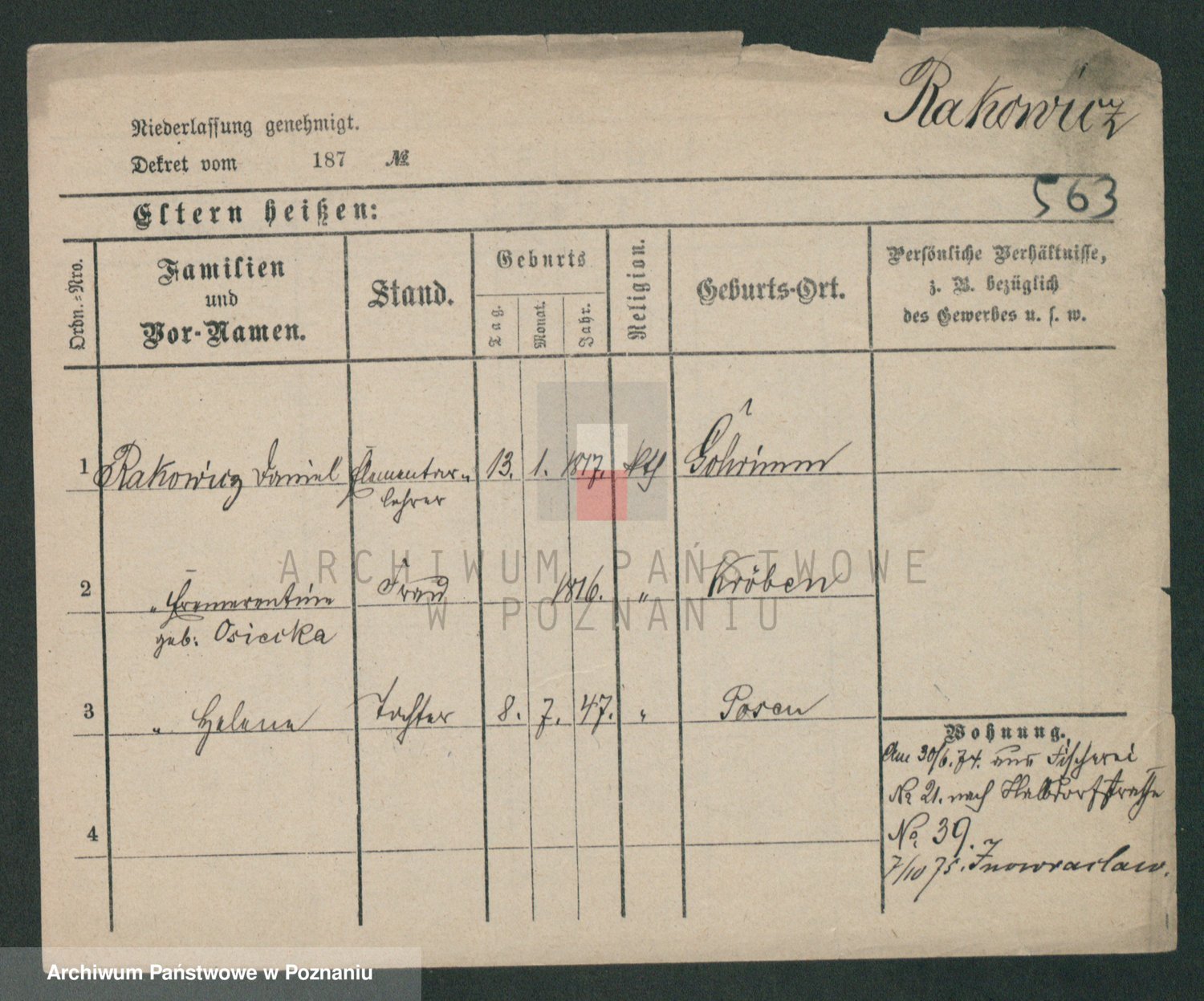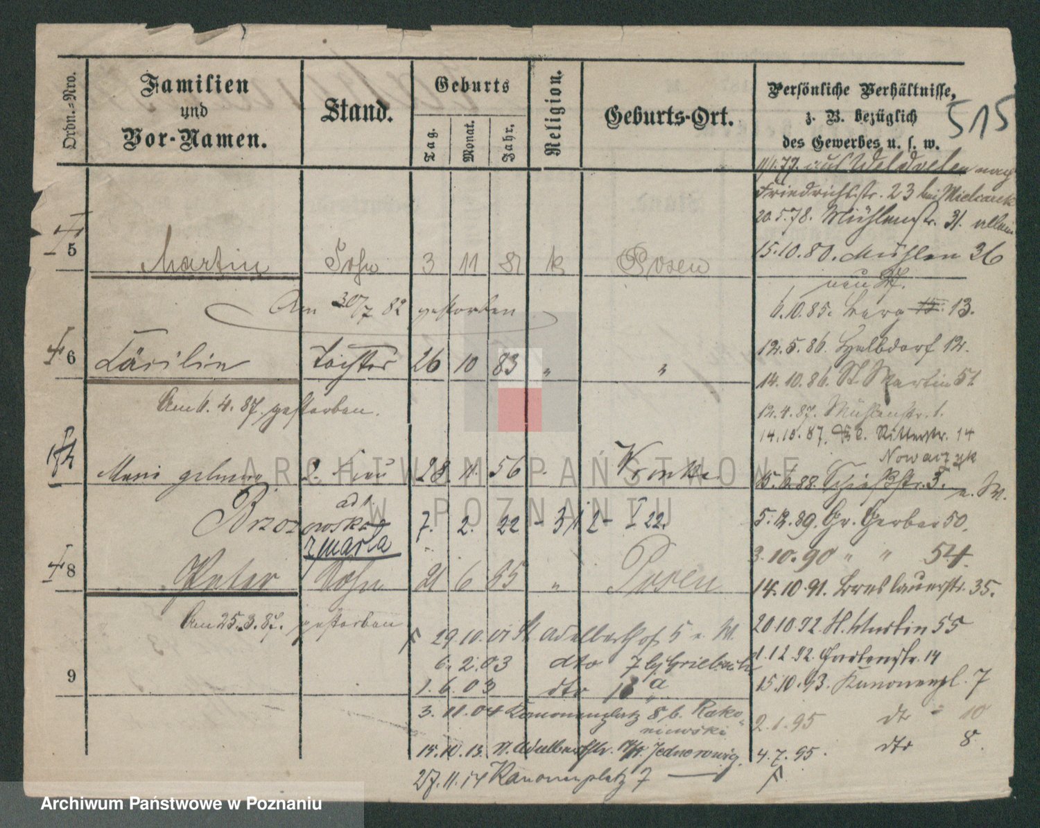 Podgląd karty osobowej dostępny jest po kliknięciu na nazwisko lub ikonkę karty. Można dokonywać powiększenia (ikony na górze) lub przechodzić między kolejnymi skanami (strzałki po bokach).