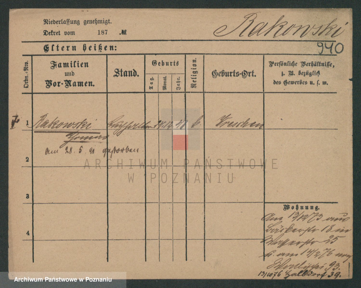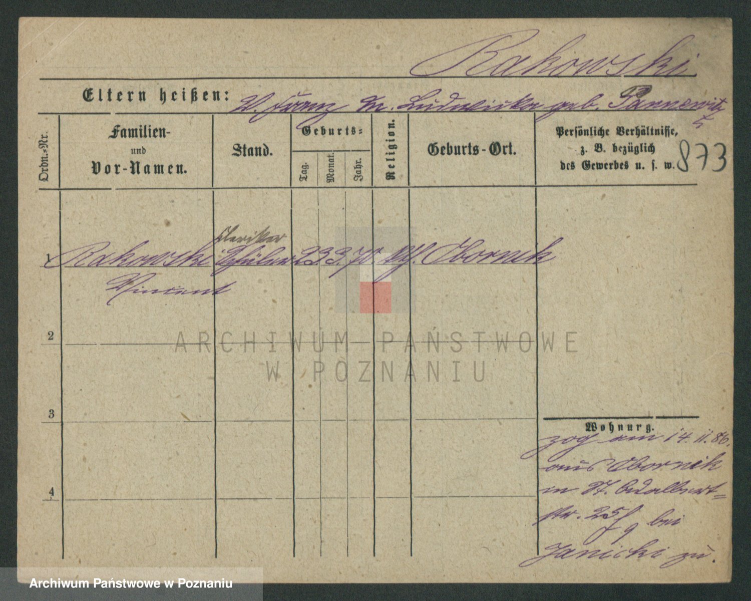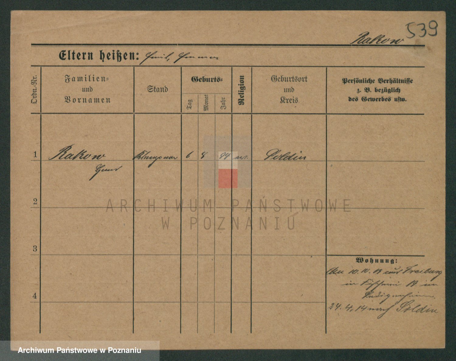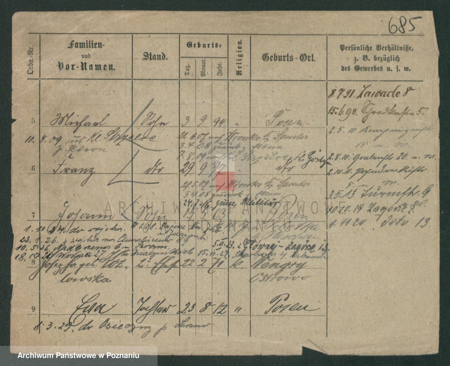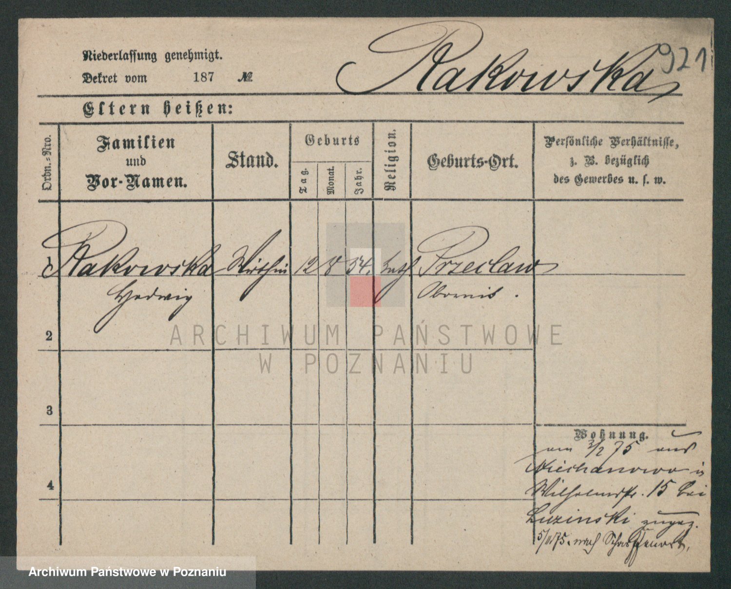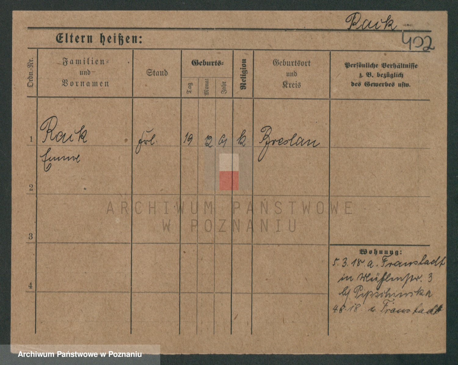 Podgląd karty osobowej dostępny jest po kliknięciu na nazwisko lub ikonkę karty. Można dokonywać powiększenia (ikony na górze) lub przechodzić między kolejnymi skanami (strzałki po bokach).