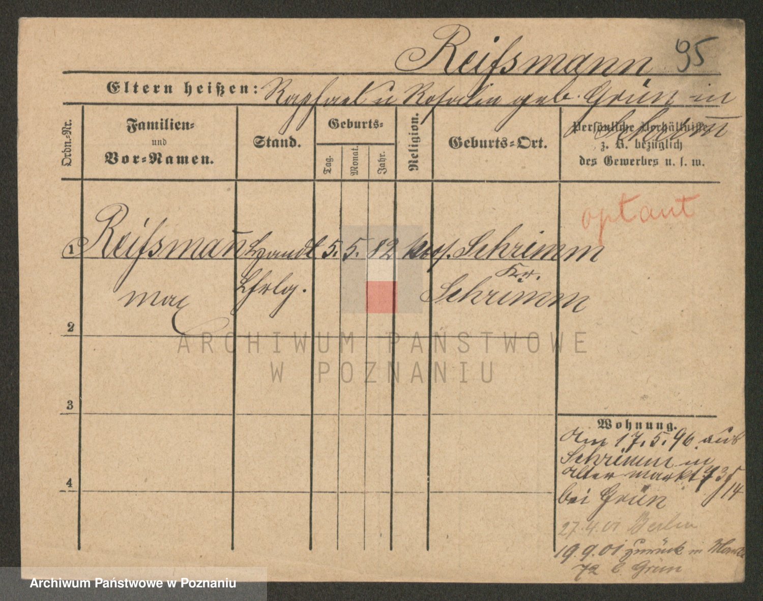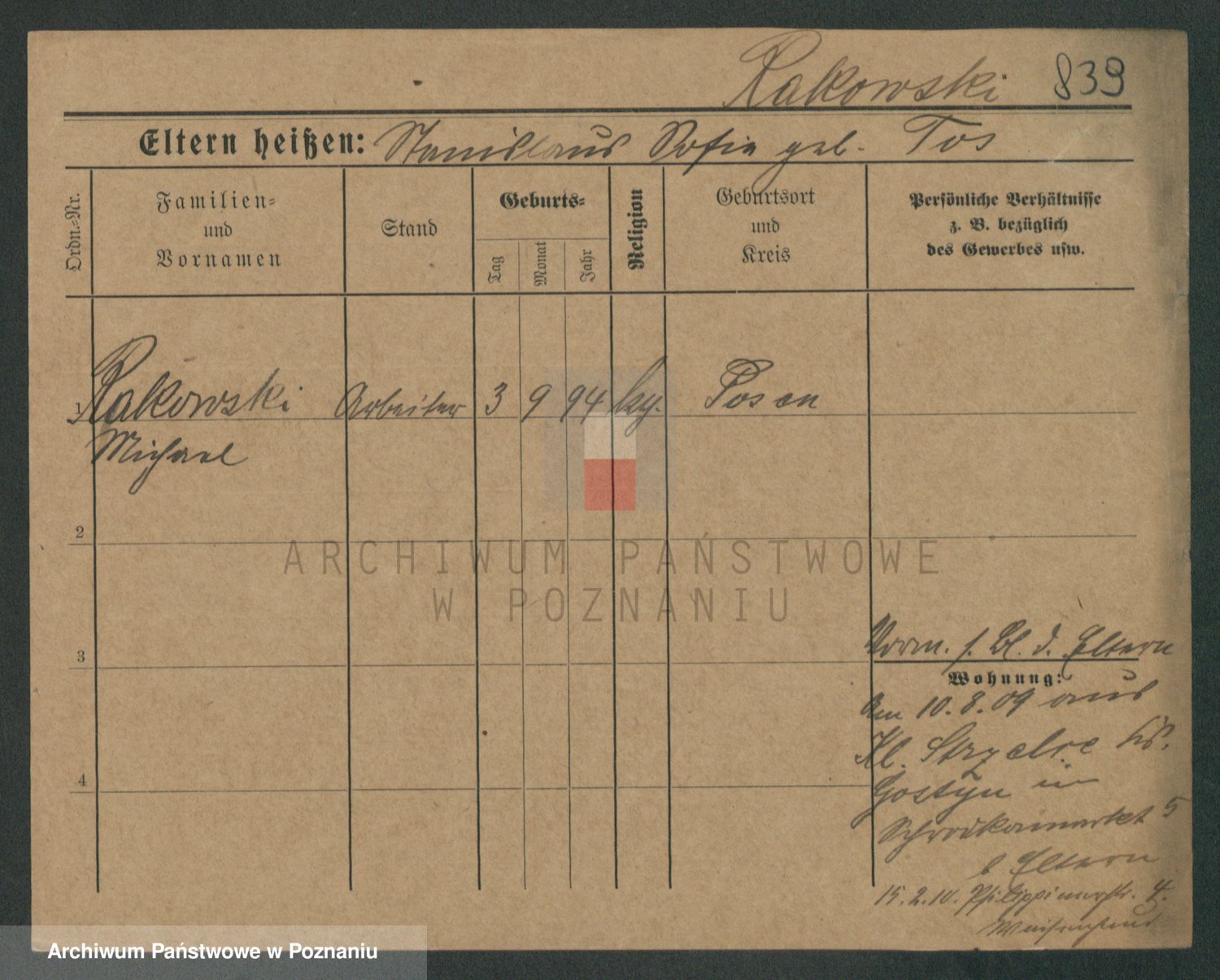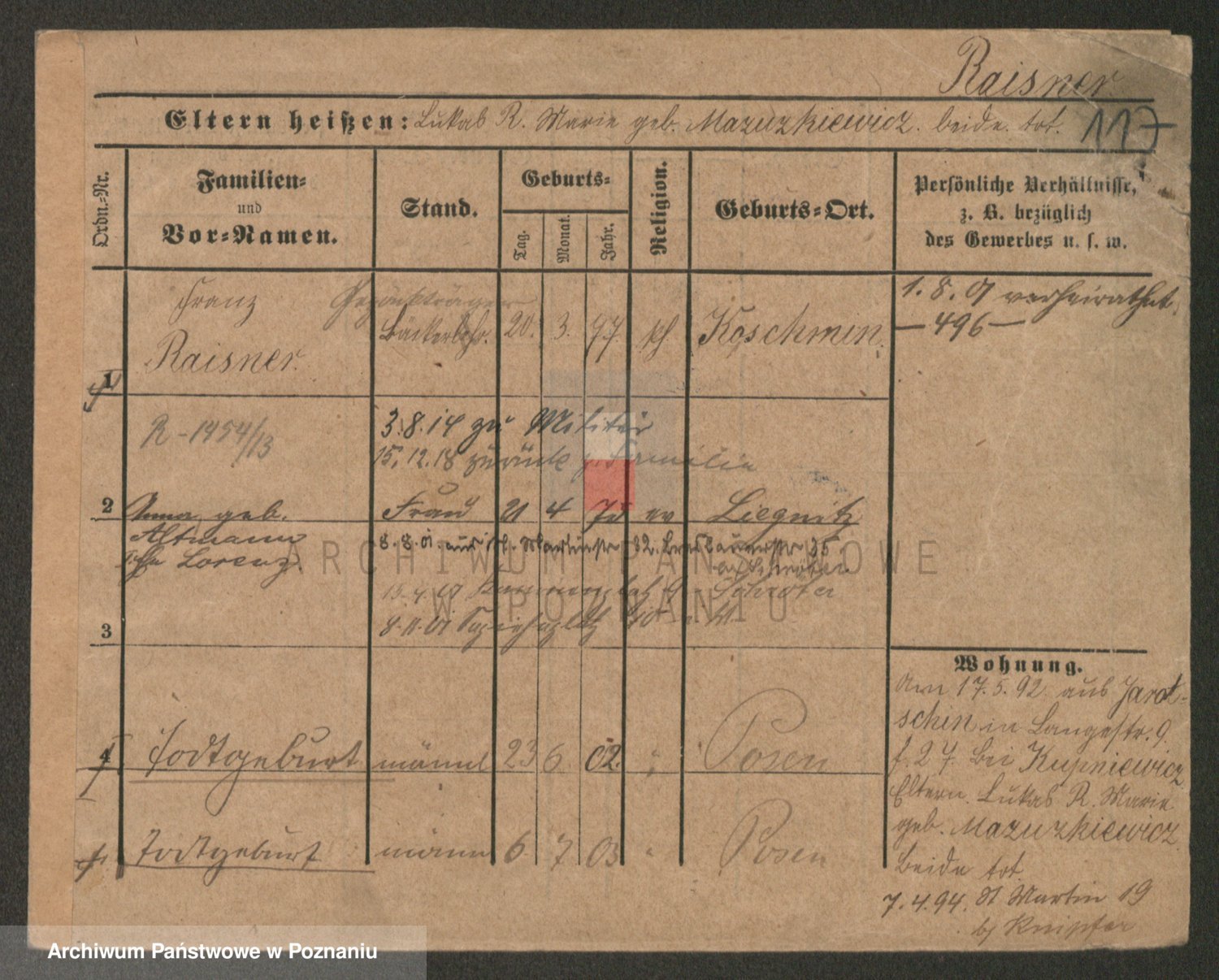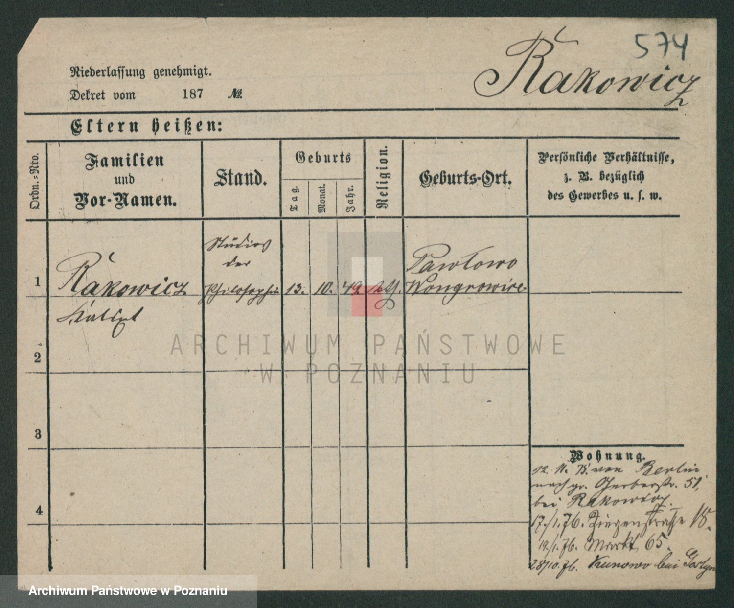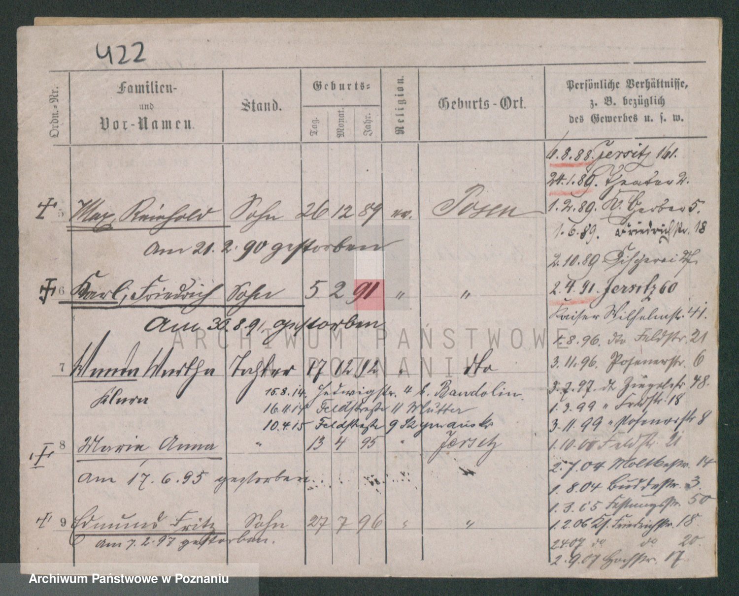 Podgląd karty osobowej dostępny jest po kliknięciu na nazwisko lub ikonkę karty. Można dokonywać powiększenia (ikony na górze) lub przechodzić między kolejnymi skanami (strzałki po bokach).