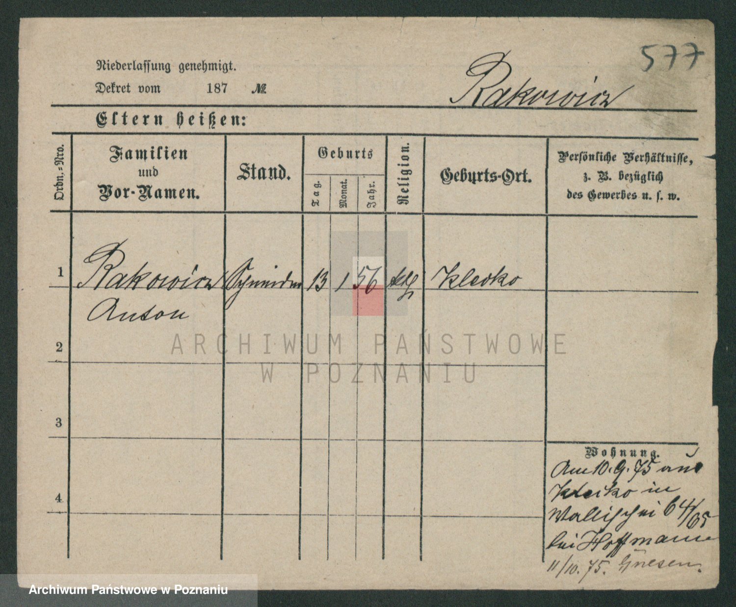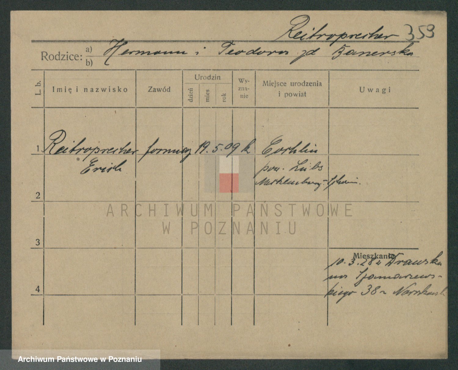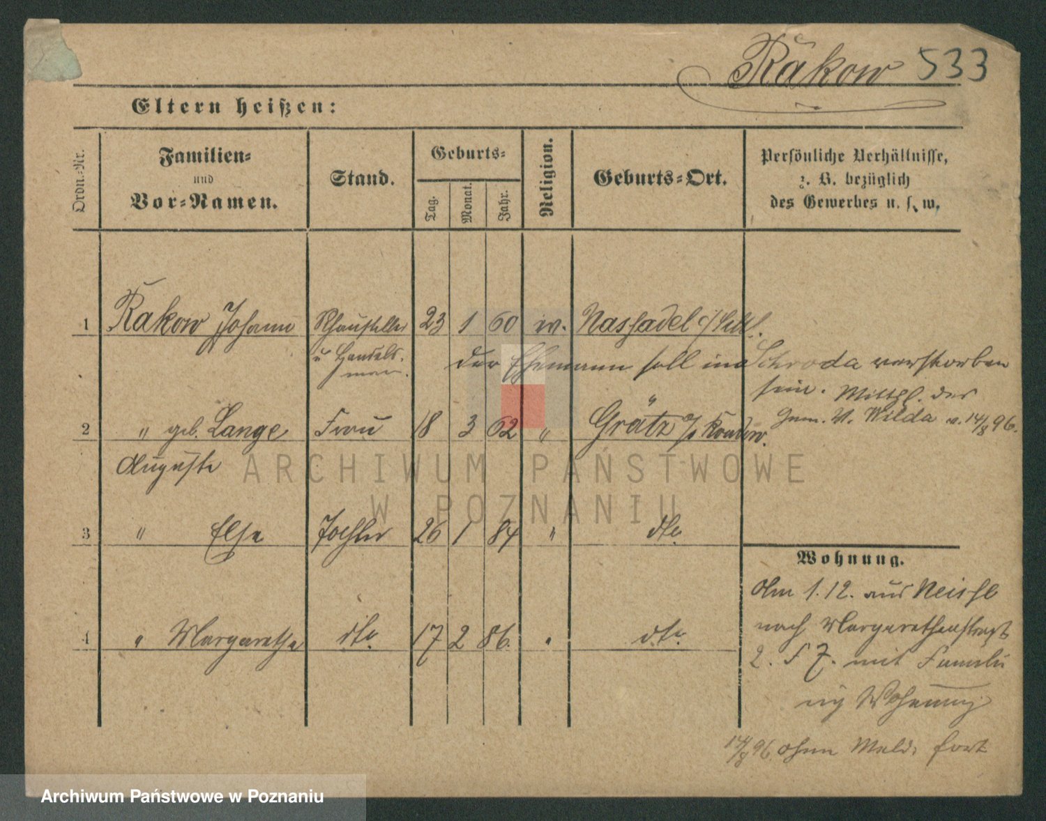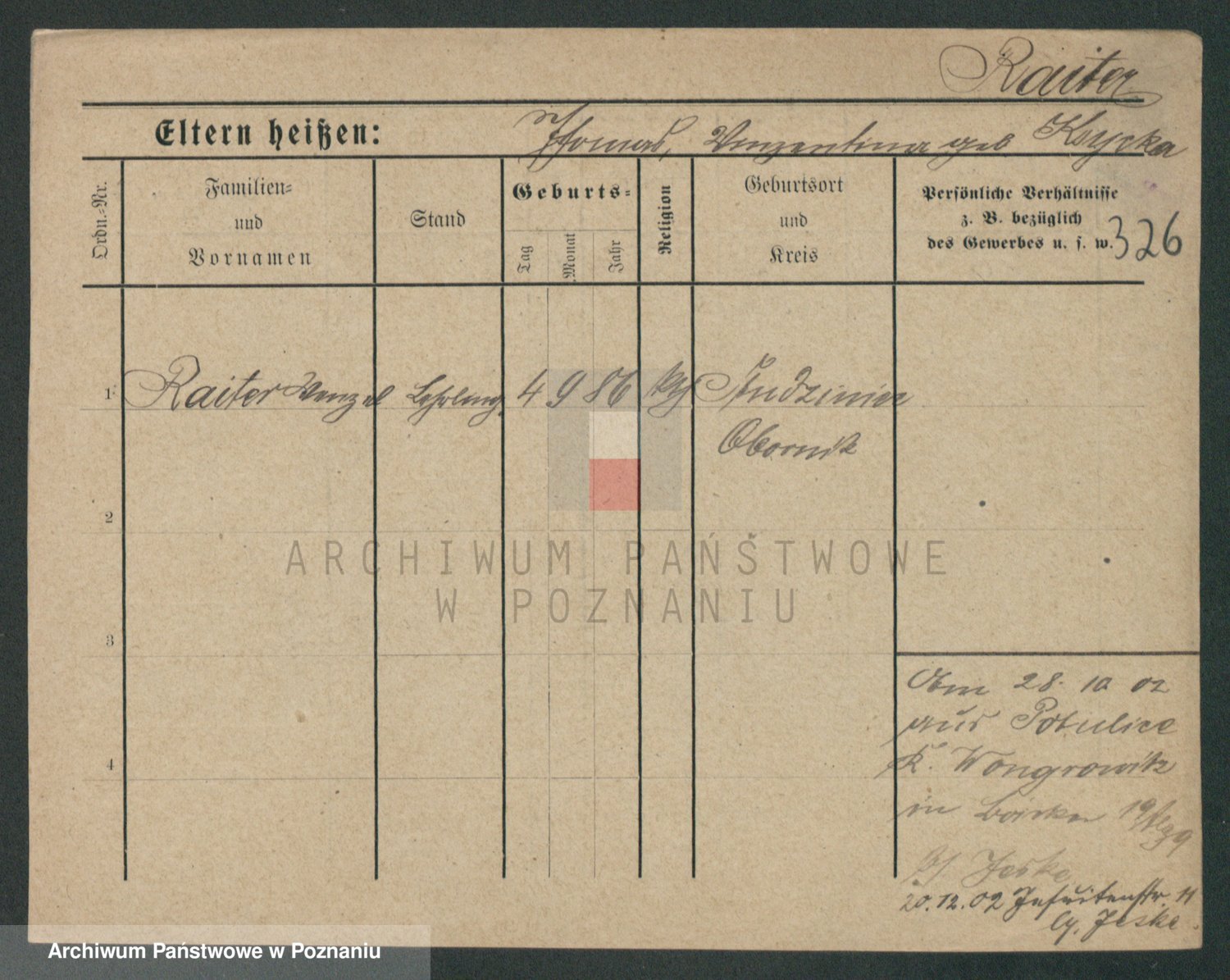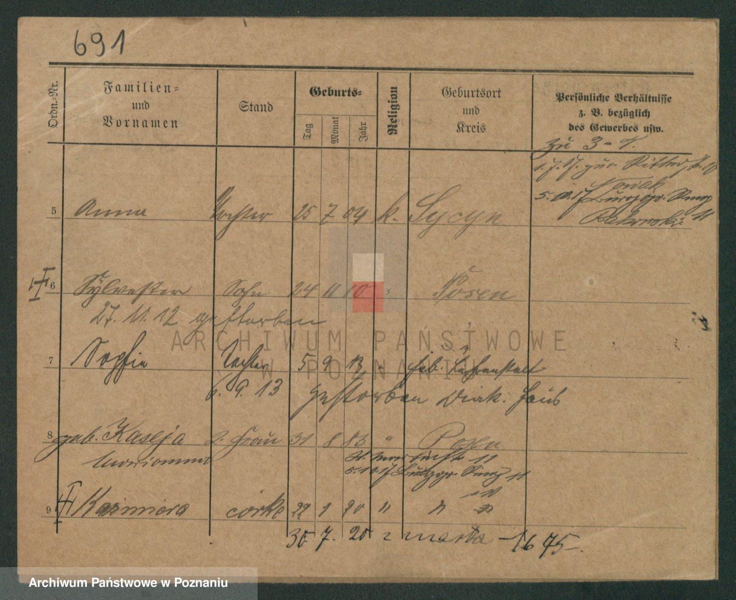 Podgląd karty osobowej dostępny jest po kliknięciu na nazwisko lub ikonkę karty. Można dokonywać powiększenia (ikony na górze) lub przechodzić między kolejnymi skanami (strzałki po bokach).