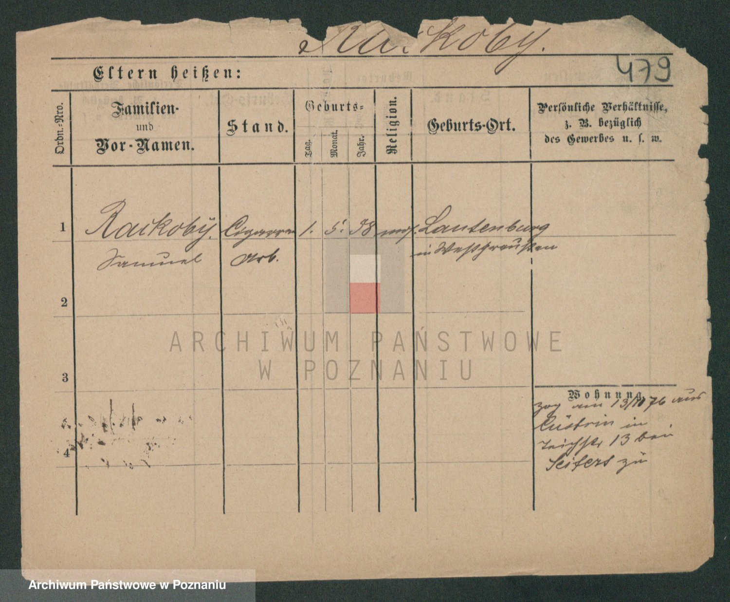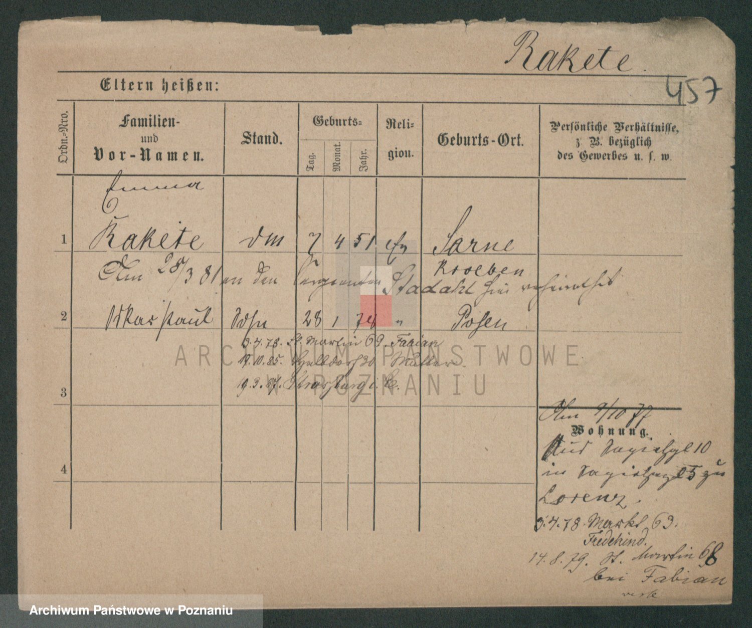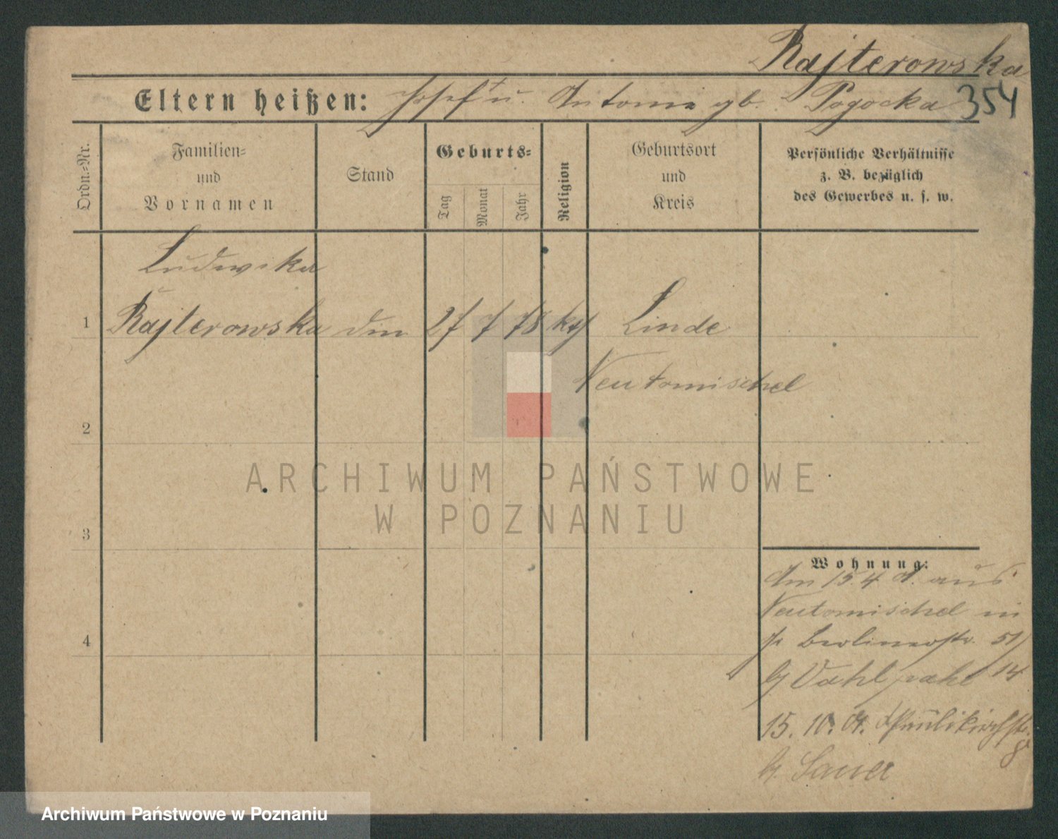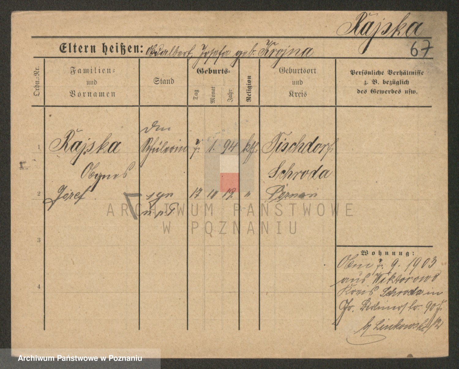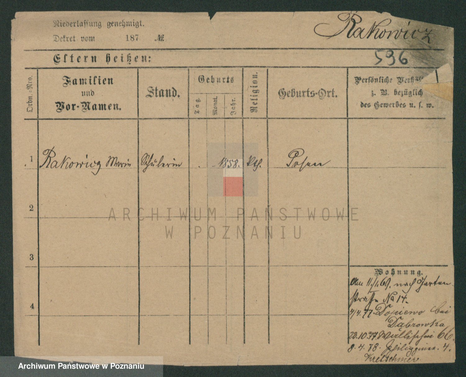 Podgląd karty osobowej dostępny jest po kliknięciu na nazwisko lub ikonkę karty. Można dokonywać powiększenia (ikony na górze) lub przechodzić między kolejnymi skanami (strzałki po bokach).