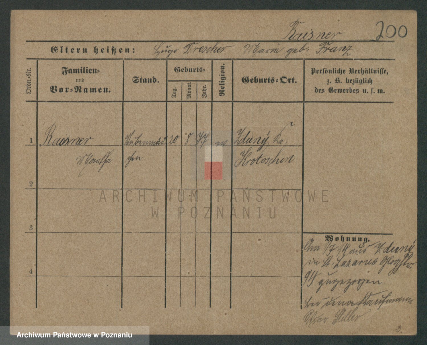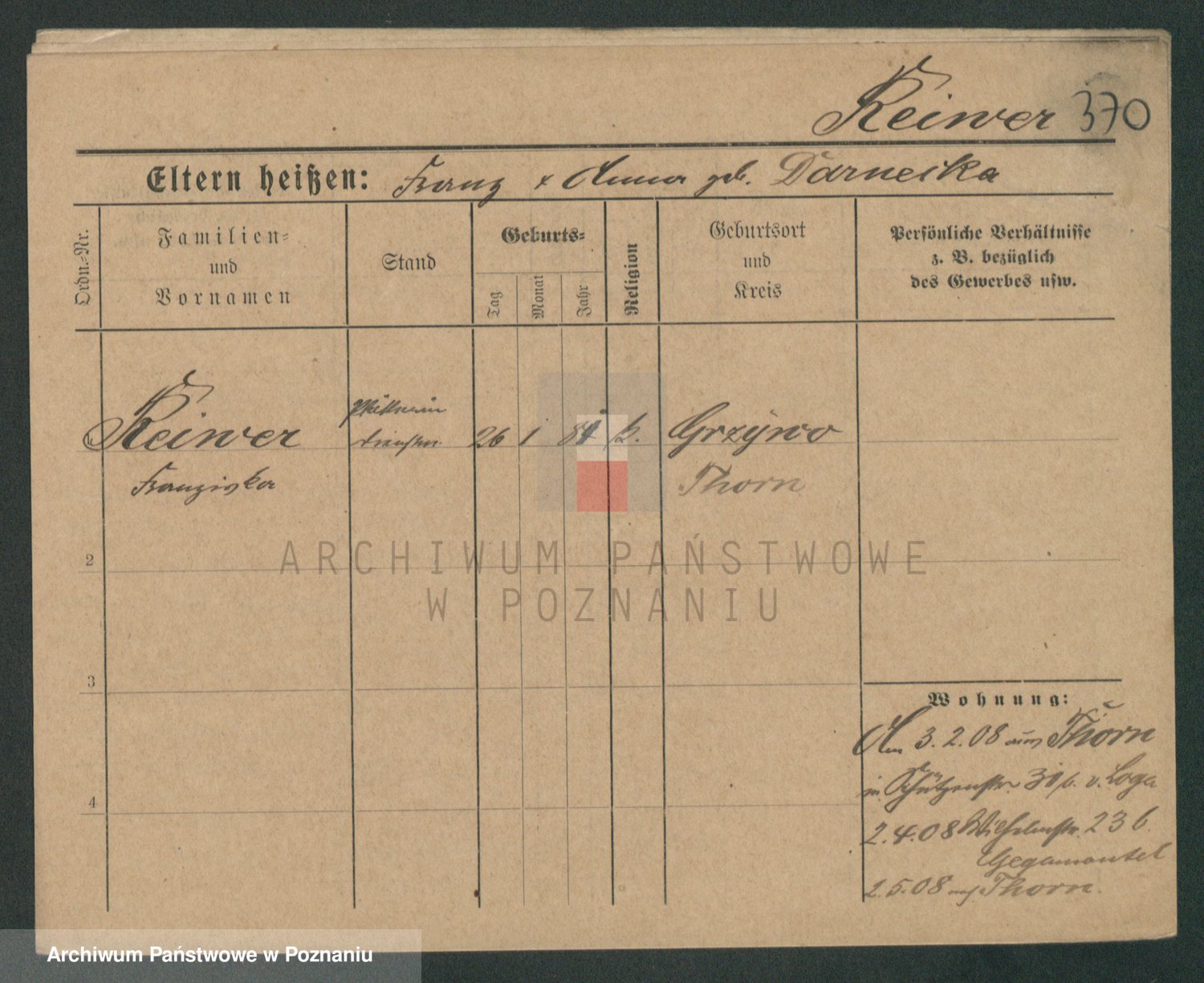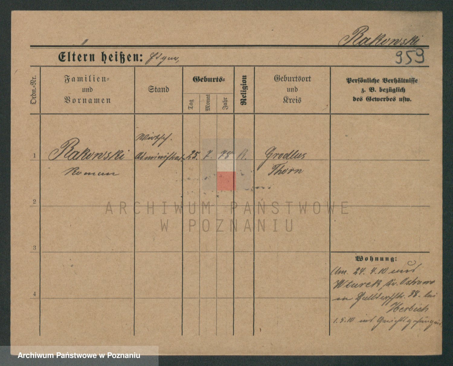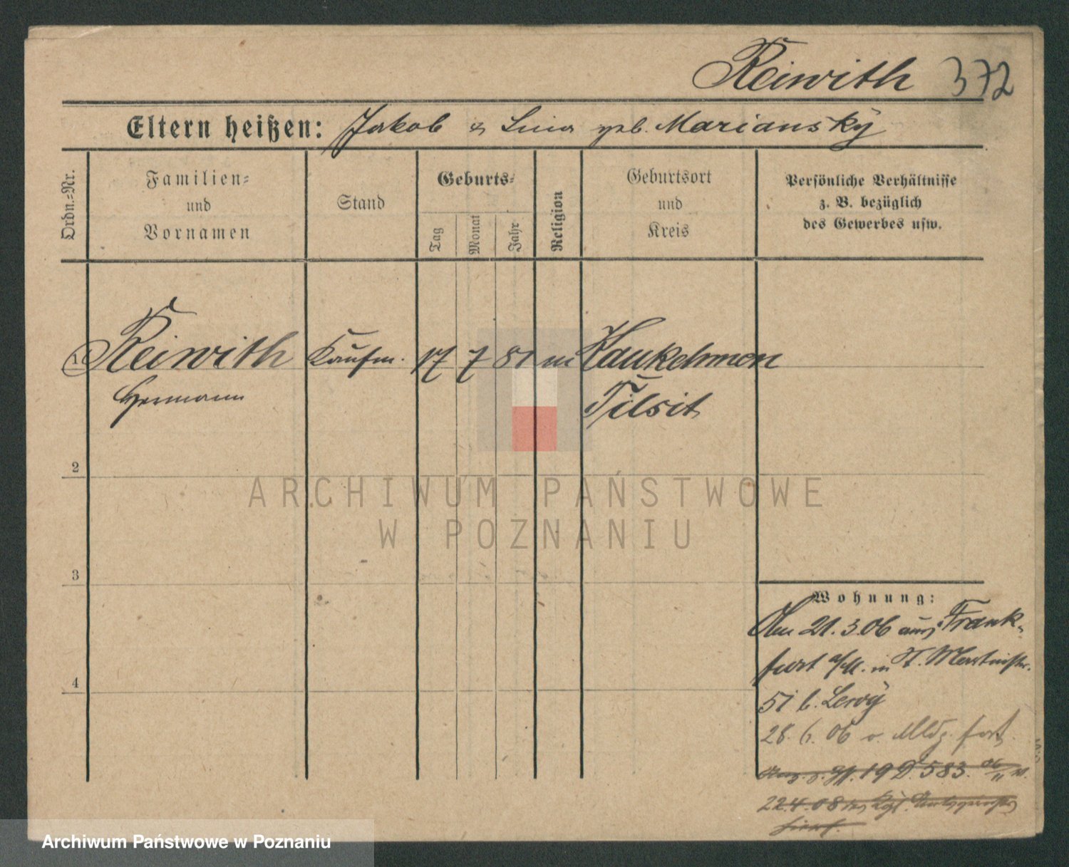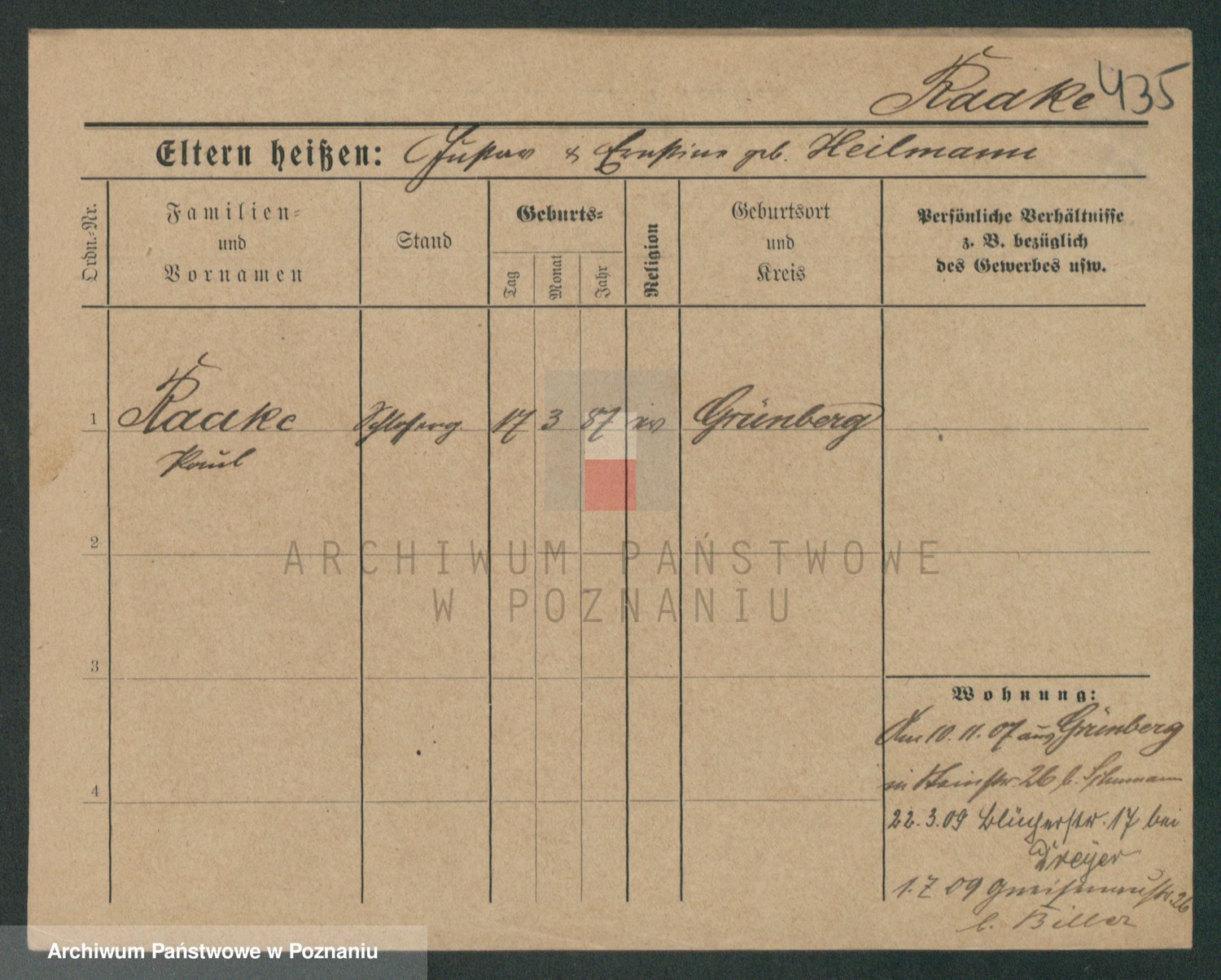 Podgląd karty osobowej dostępny jest po kliknięciu na nazwisko lub ikonkę karty. Można dokonywać powiększenia (ikony na górze) lub przechodzić między kolejnymi skanami (strzałki po bokach).