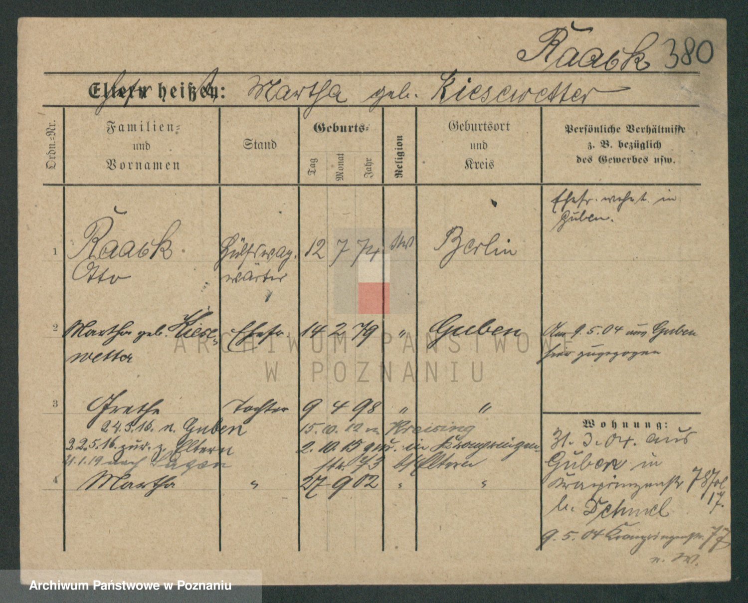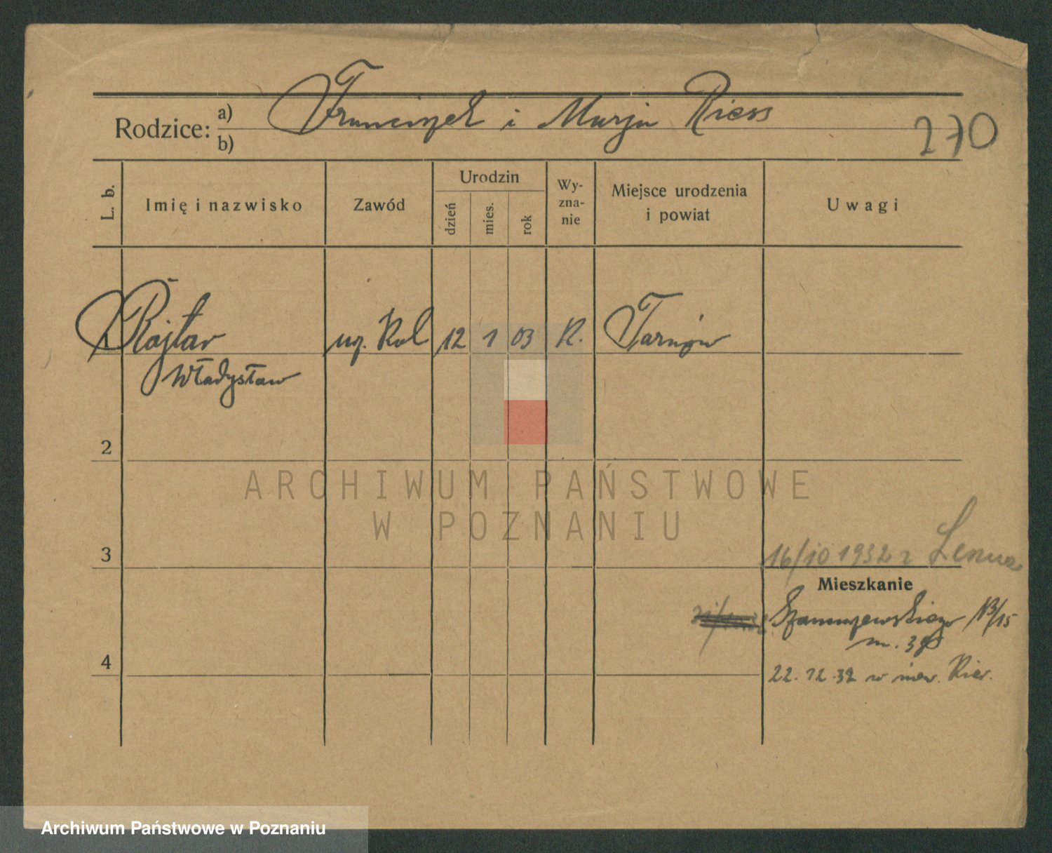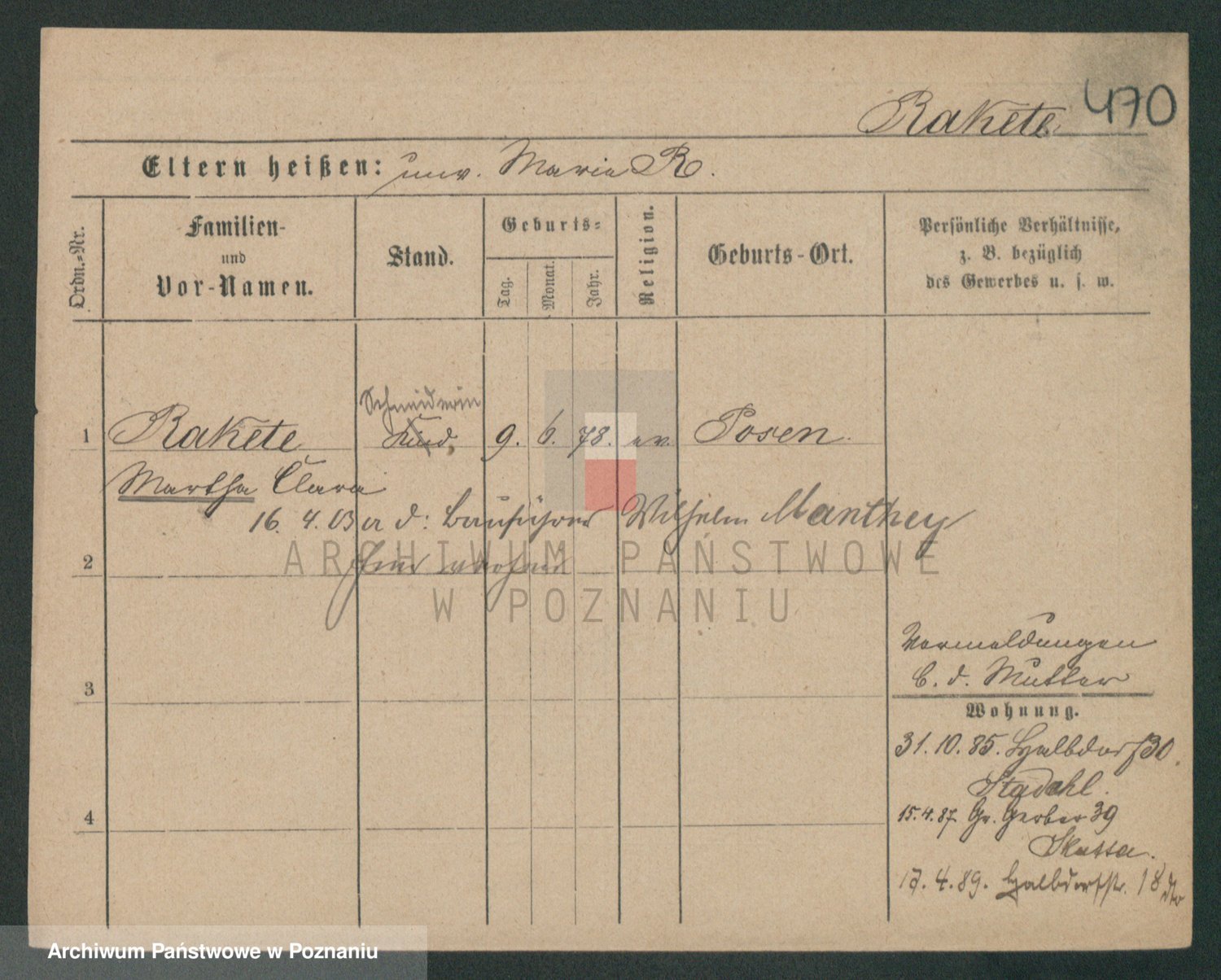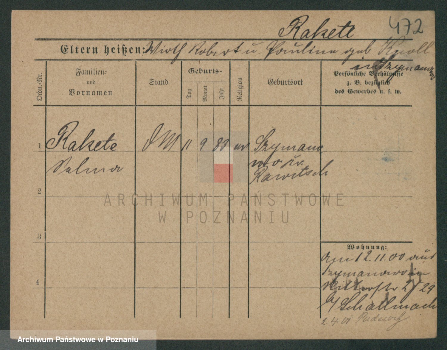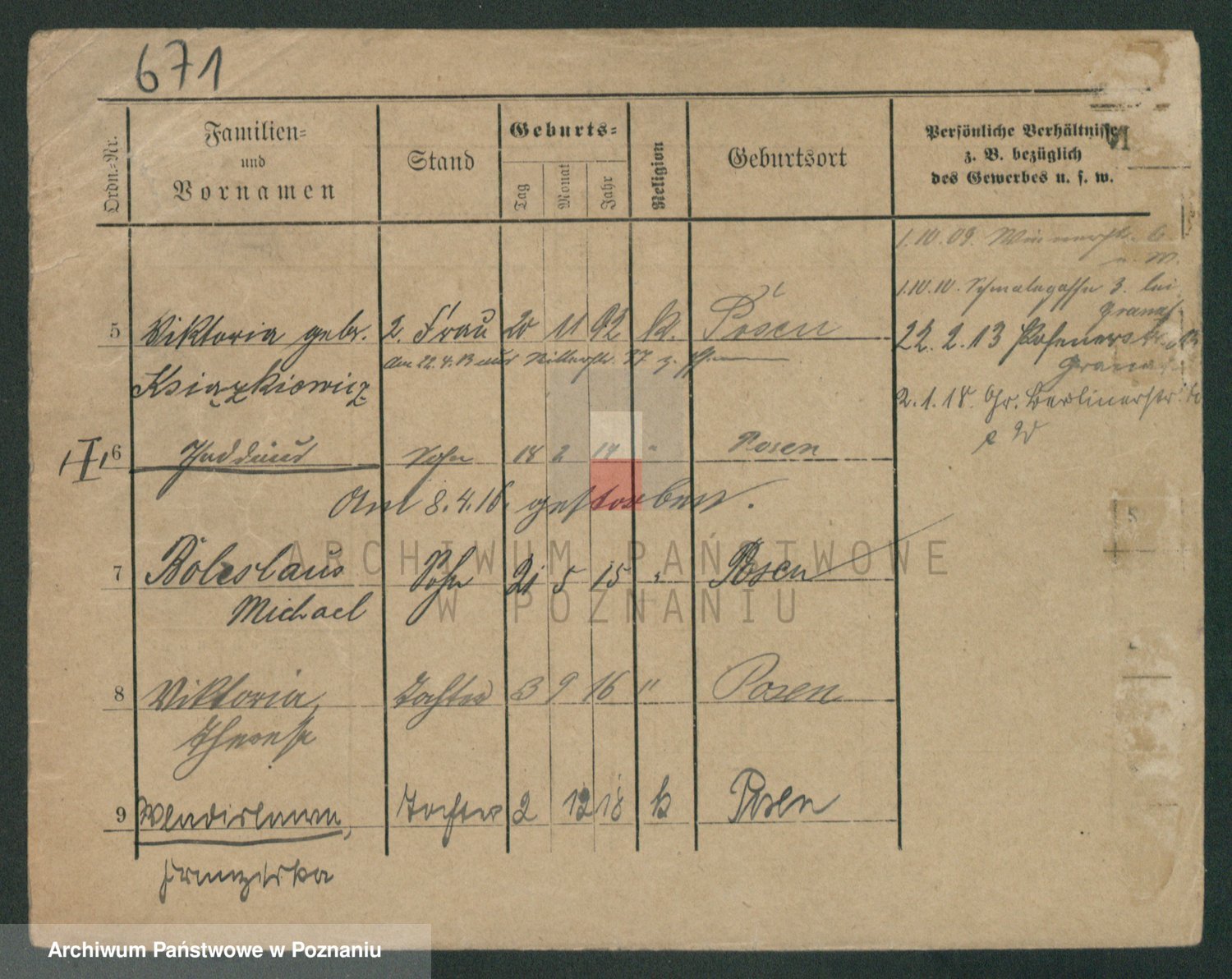 Podgląd karty osobowej dostępny jest po kliknięciu na nazwisko lub ikonkę karty. Można dokonywać powiększenia (ikony na górze) lub przechodzić między kolejnymi skanami (strzałki po bokach).