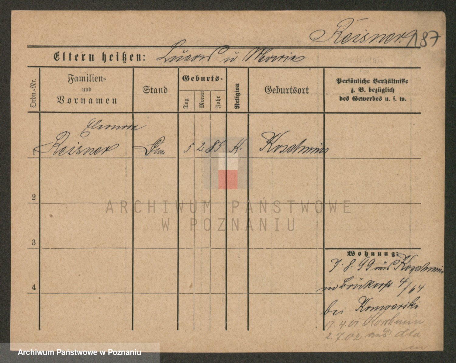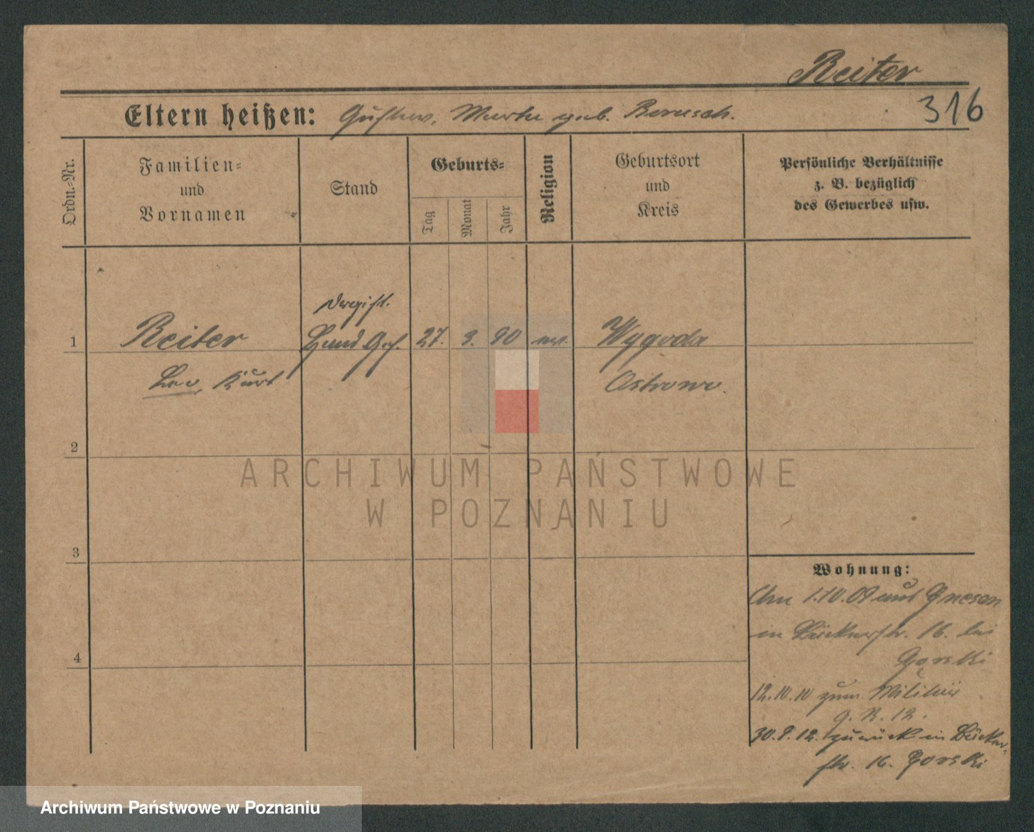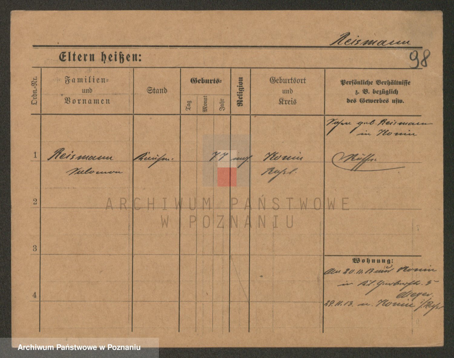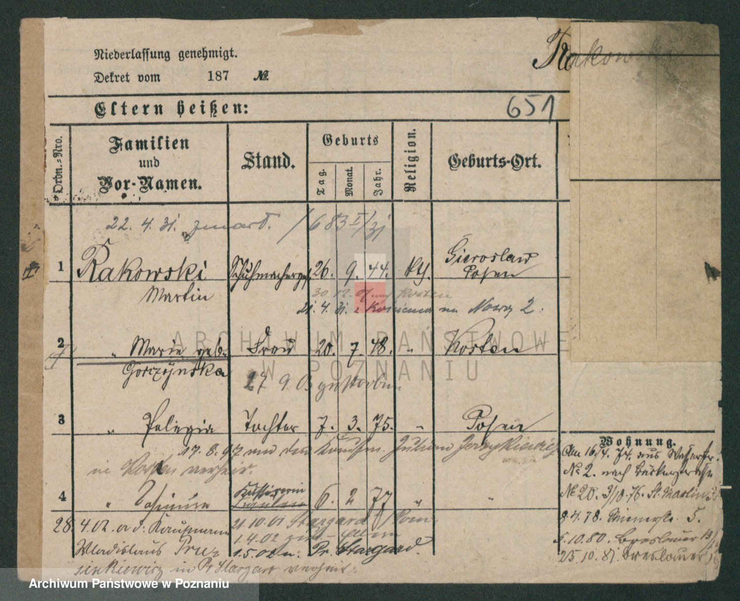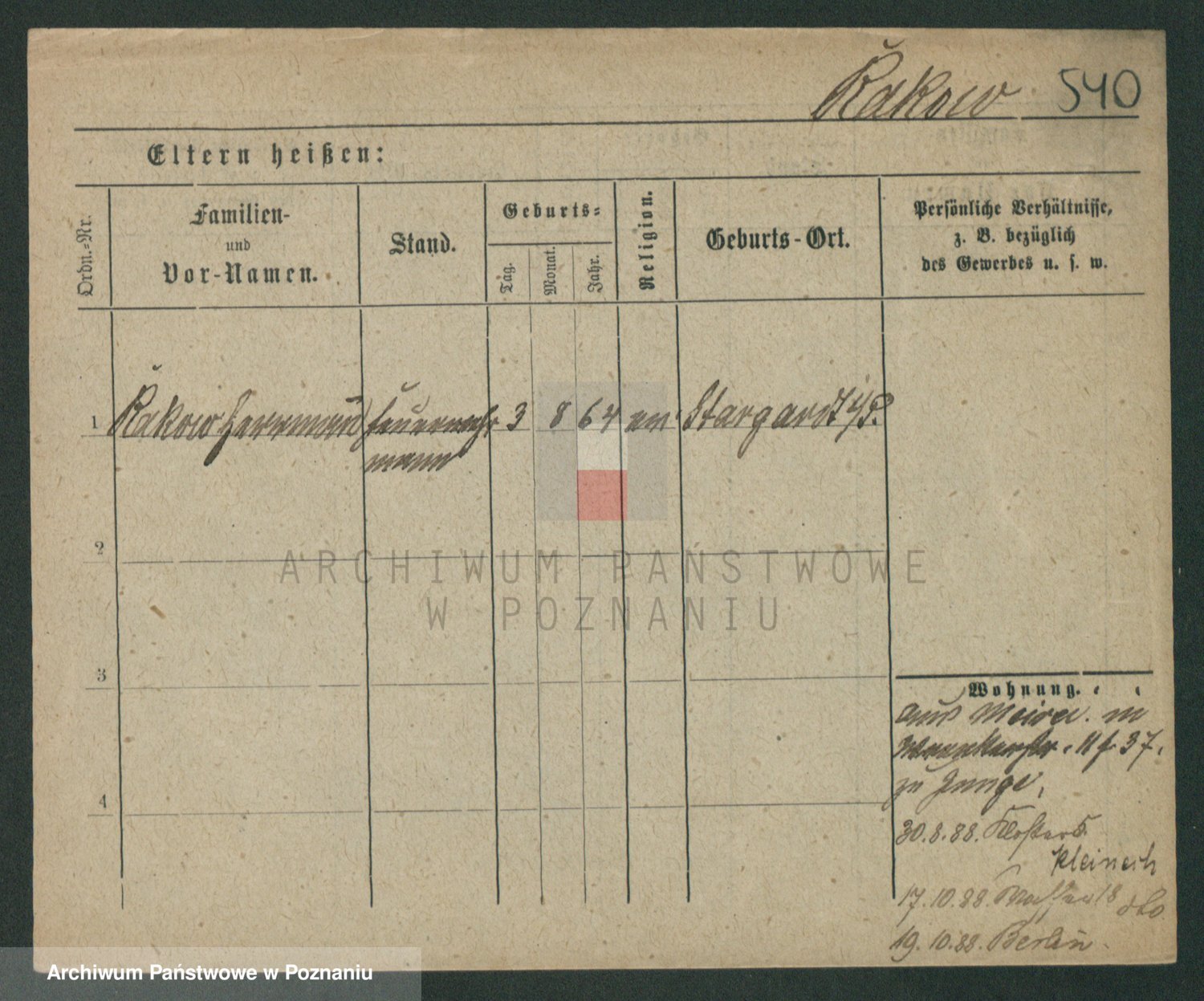 Podgląd karty osobowej dostępny jest po kliknięciu na nazwisko lub ikonkę karty. Można dokonywać powiększenia (ikony na górze) lub przechodzić między kolejnymi skanami (strzałki po bokach).