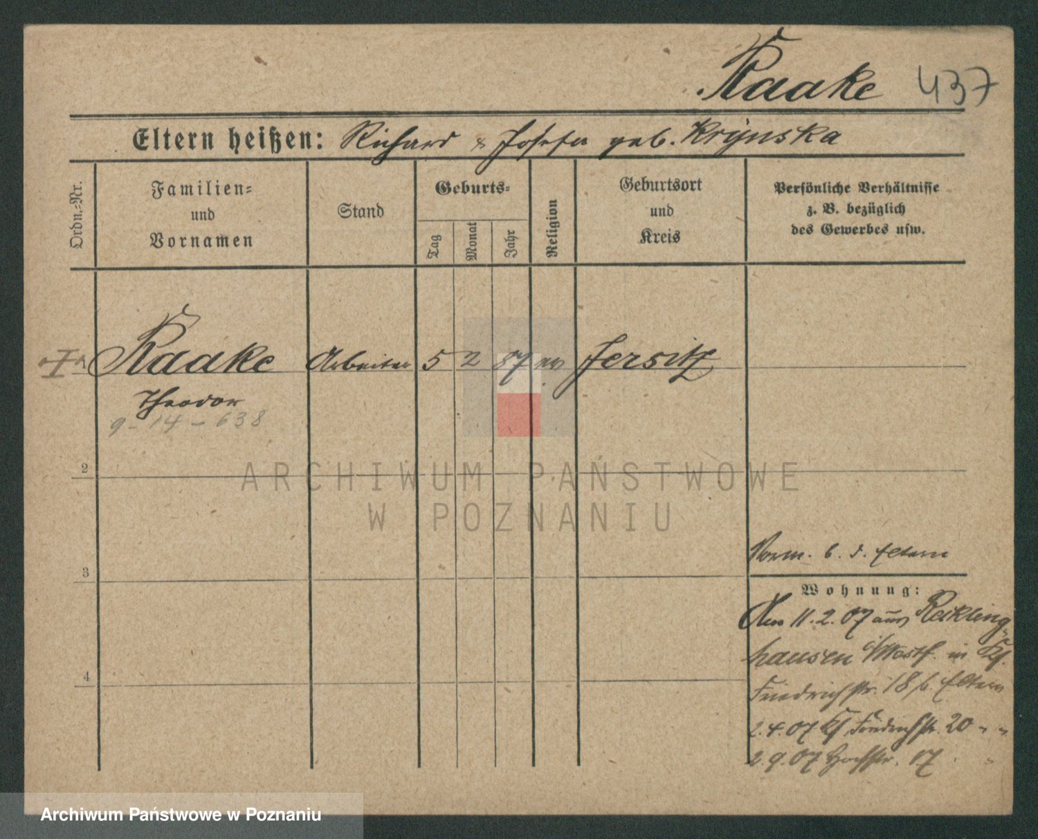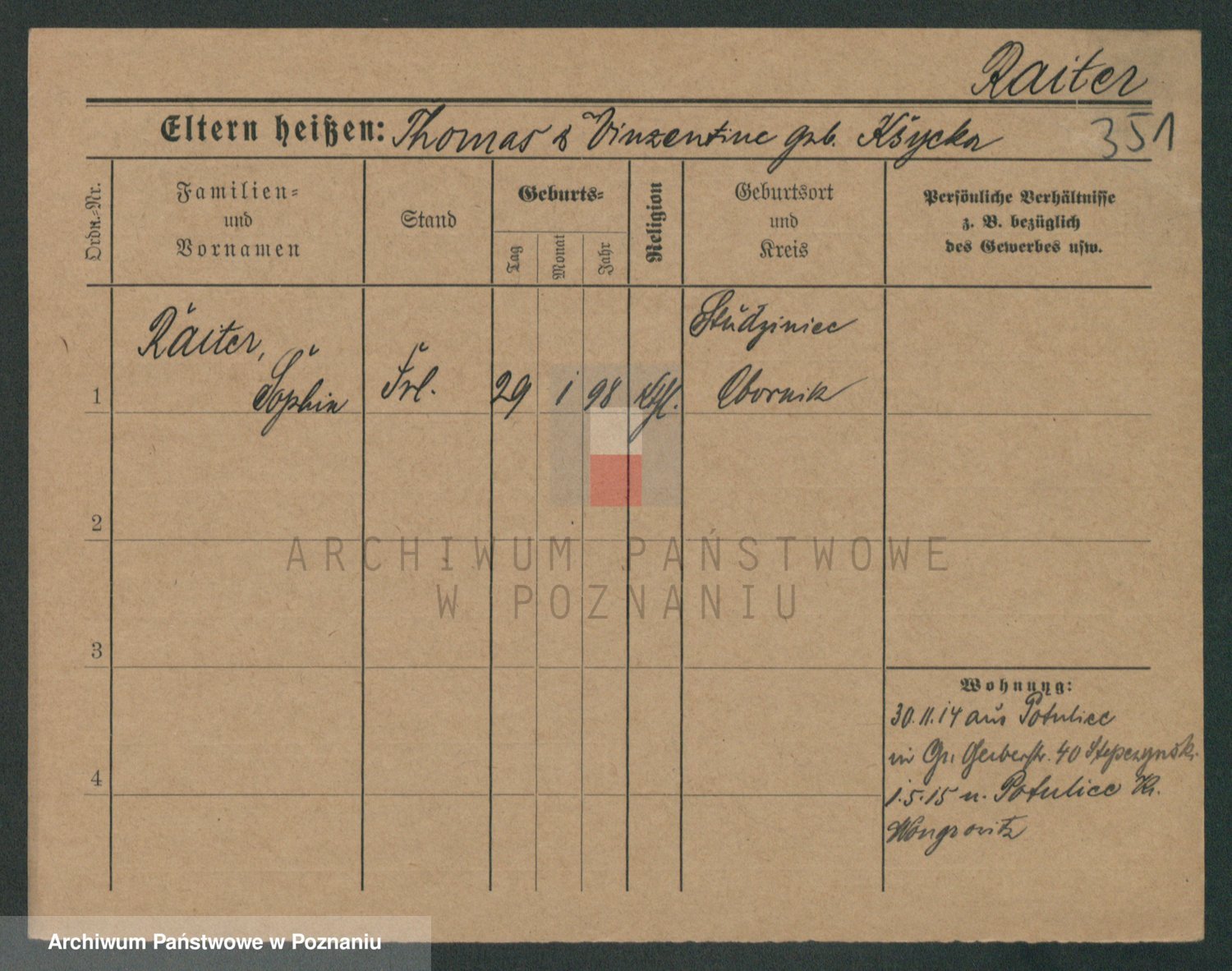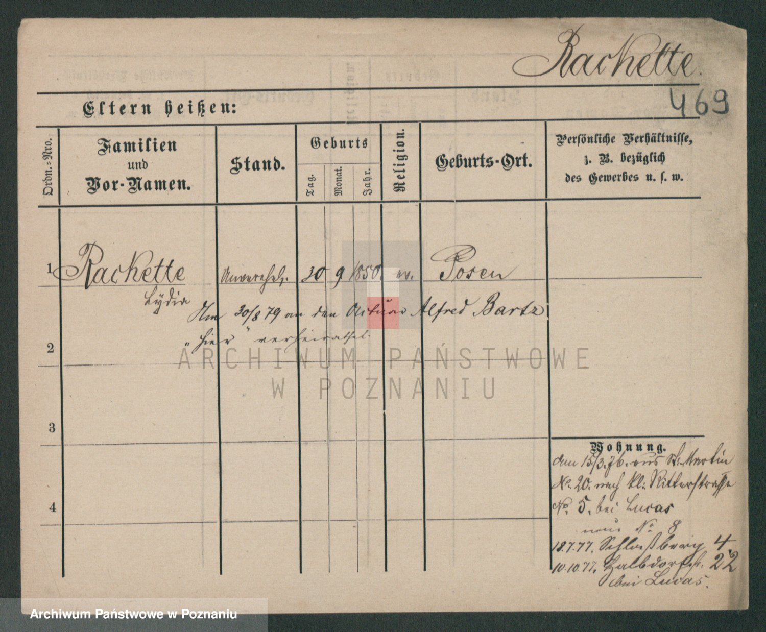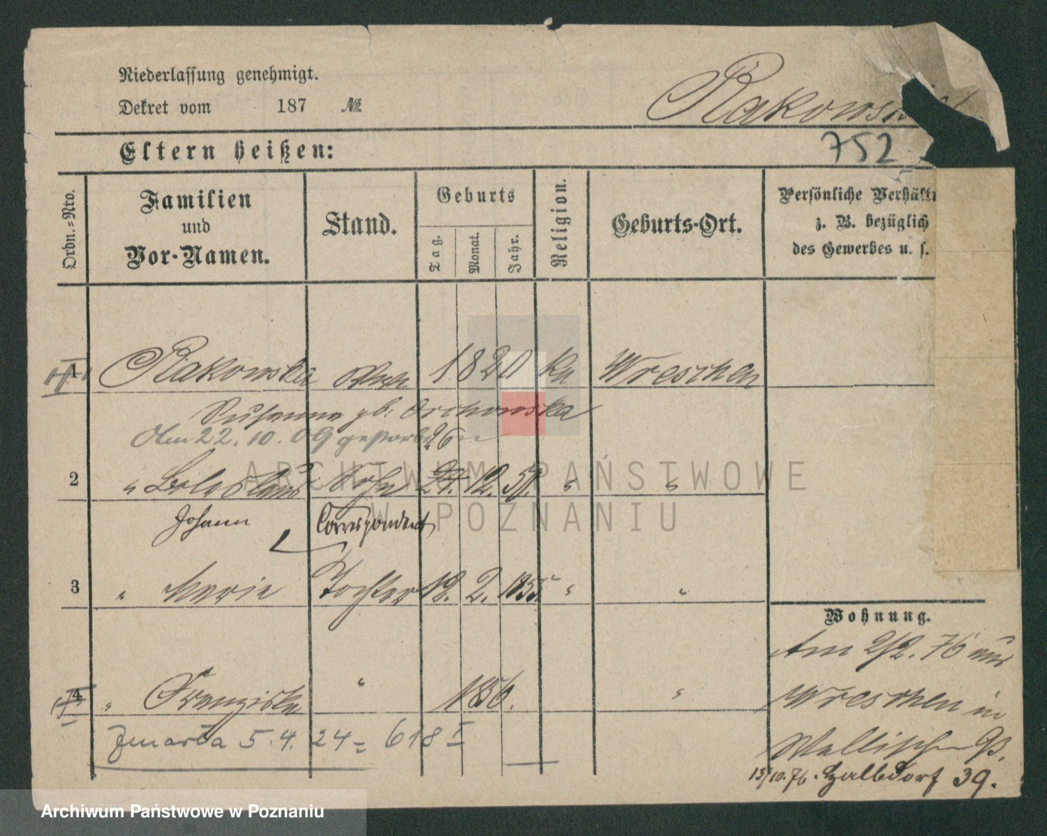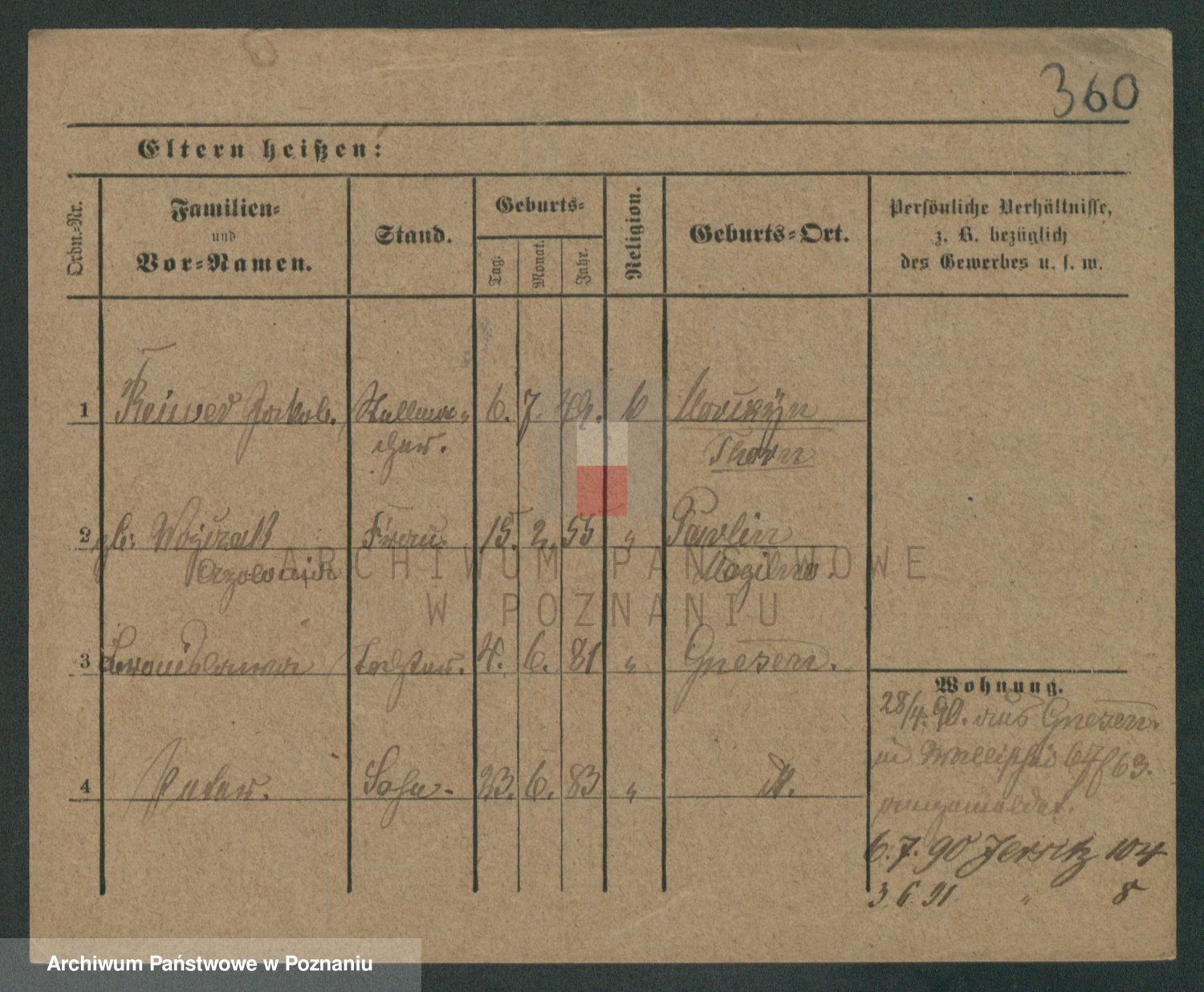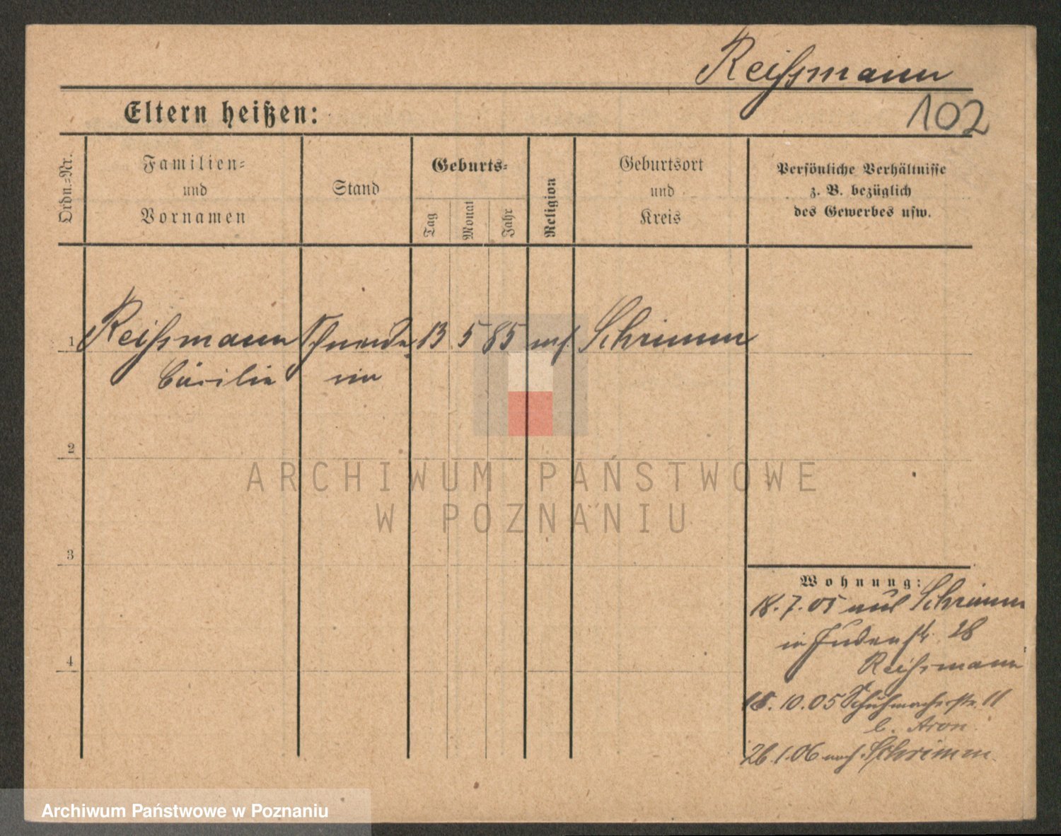 Podgląd karty osobowej dostępny jest po kliknięciu na nazwisko lub ikonkę karty. Można dokonywać powiększenia (ikony na górze) lub przechodzić między kolejnymi skanami (strzałki po bokach).