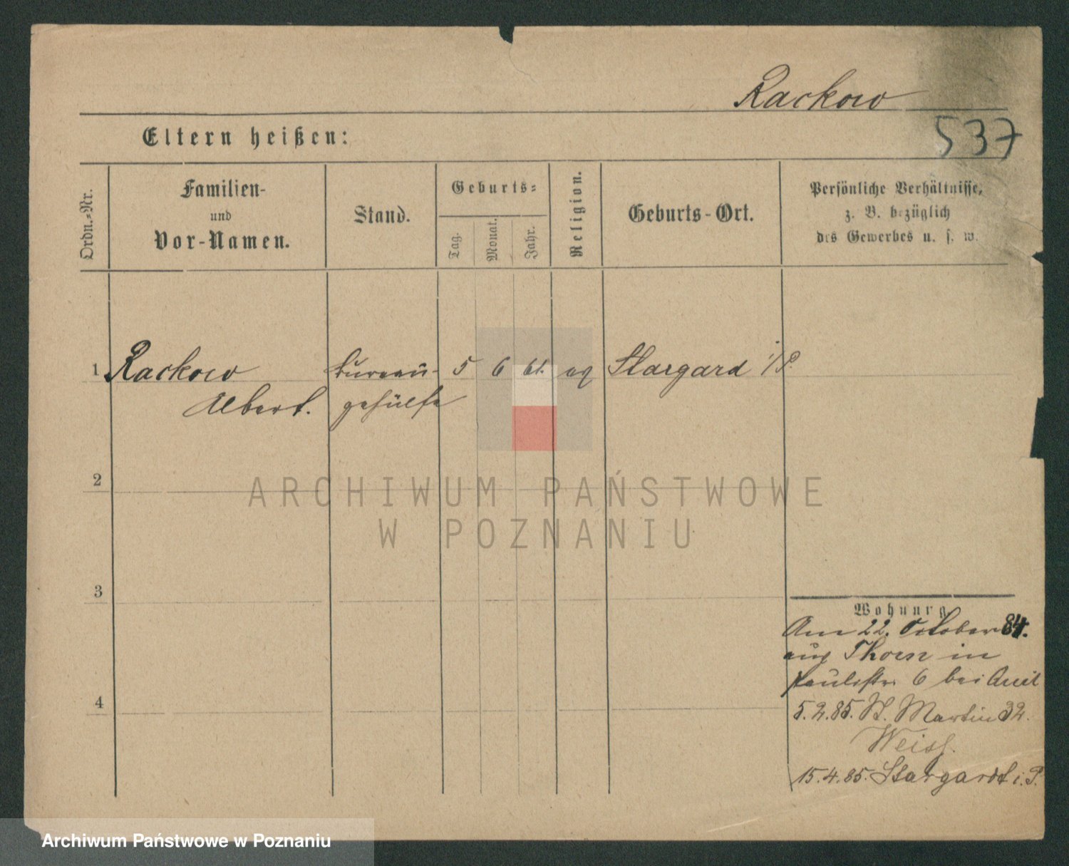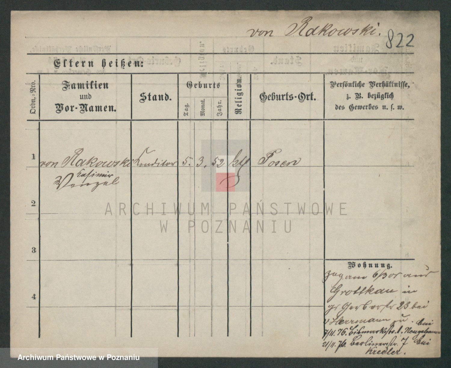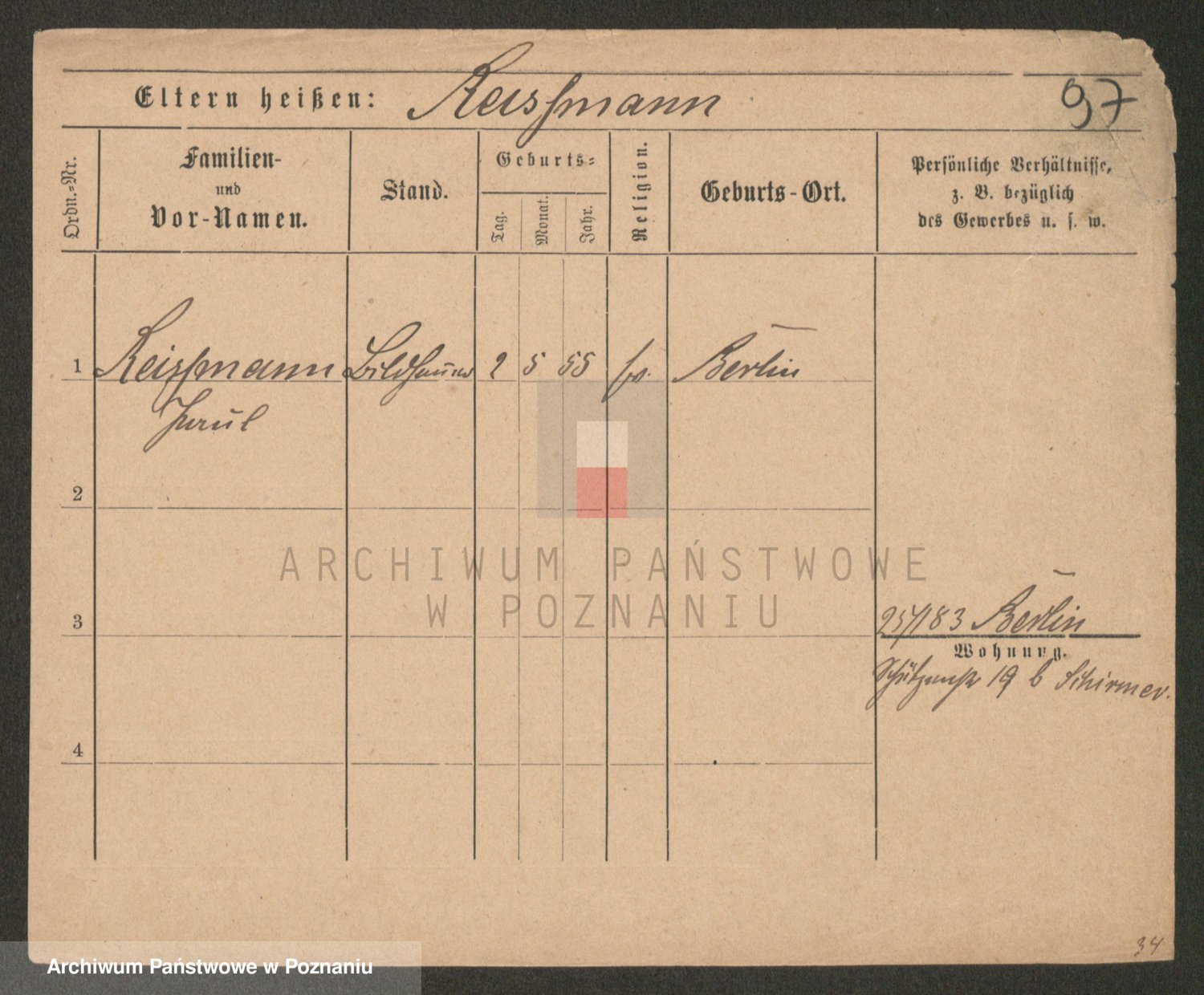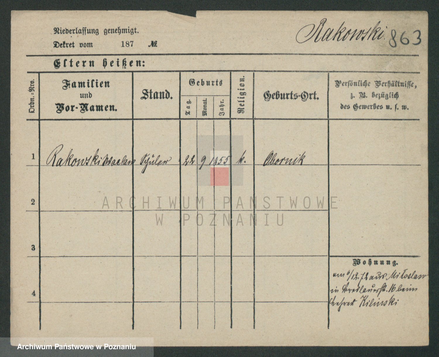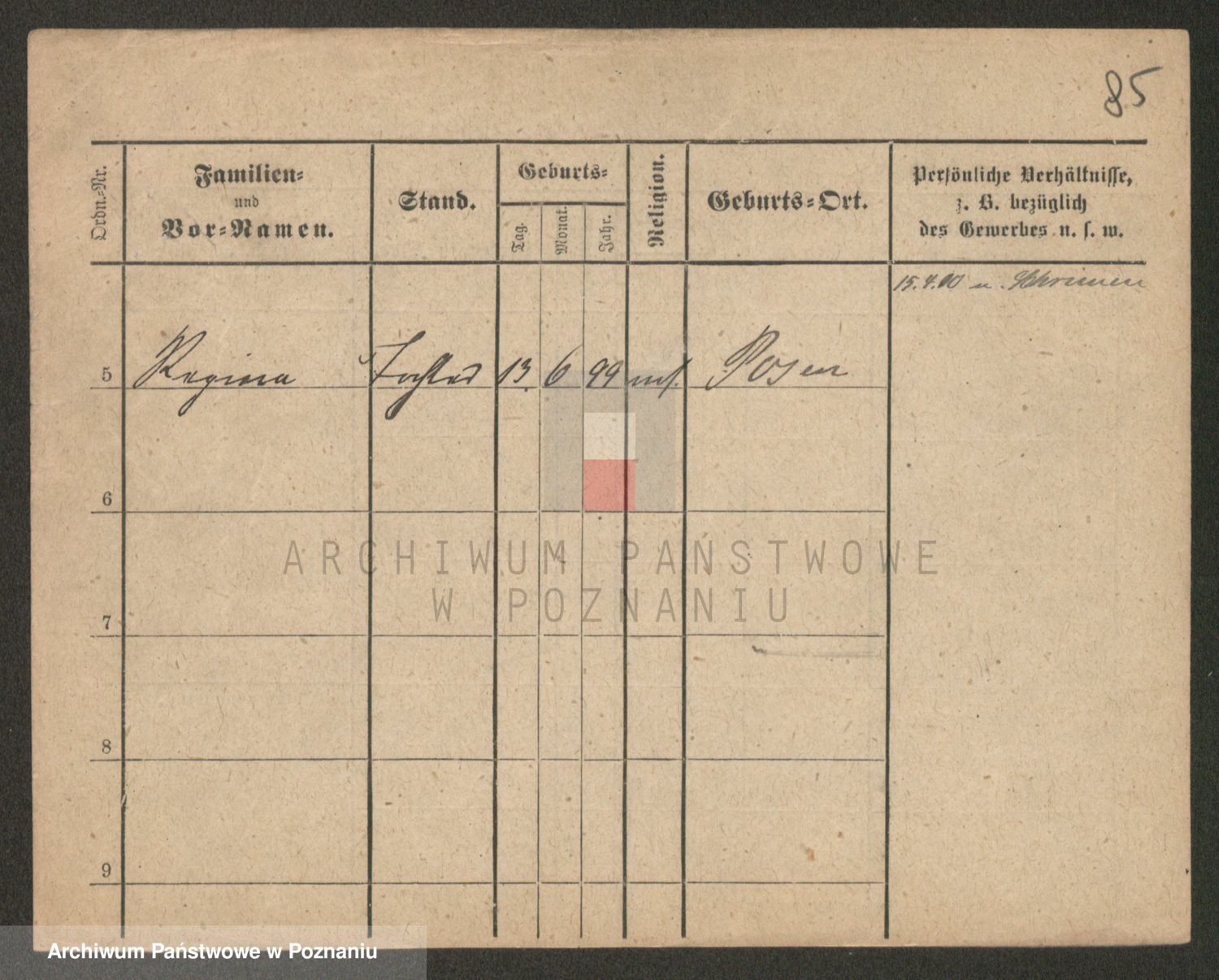 Podgląd karty osobowej dostępny jest po kliknięciu na nazwisko lub ikonkę karty. Można dokonywać powiększenia (ikony na górze) lub przechodzić między kolejnymi skanami (strzałki po bokach).
