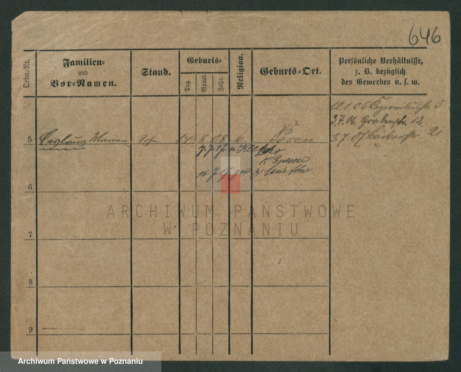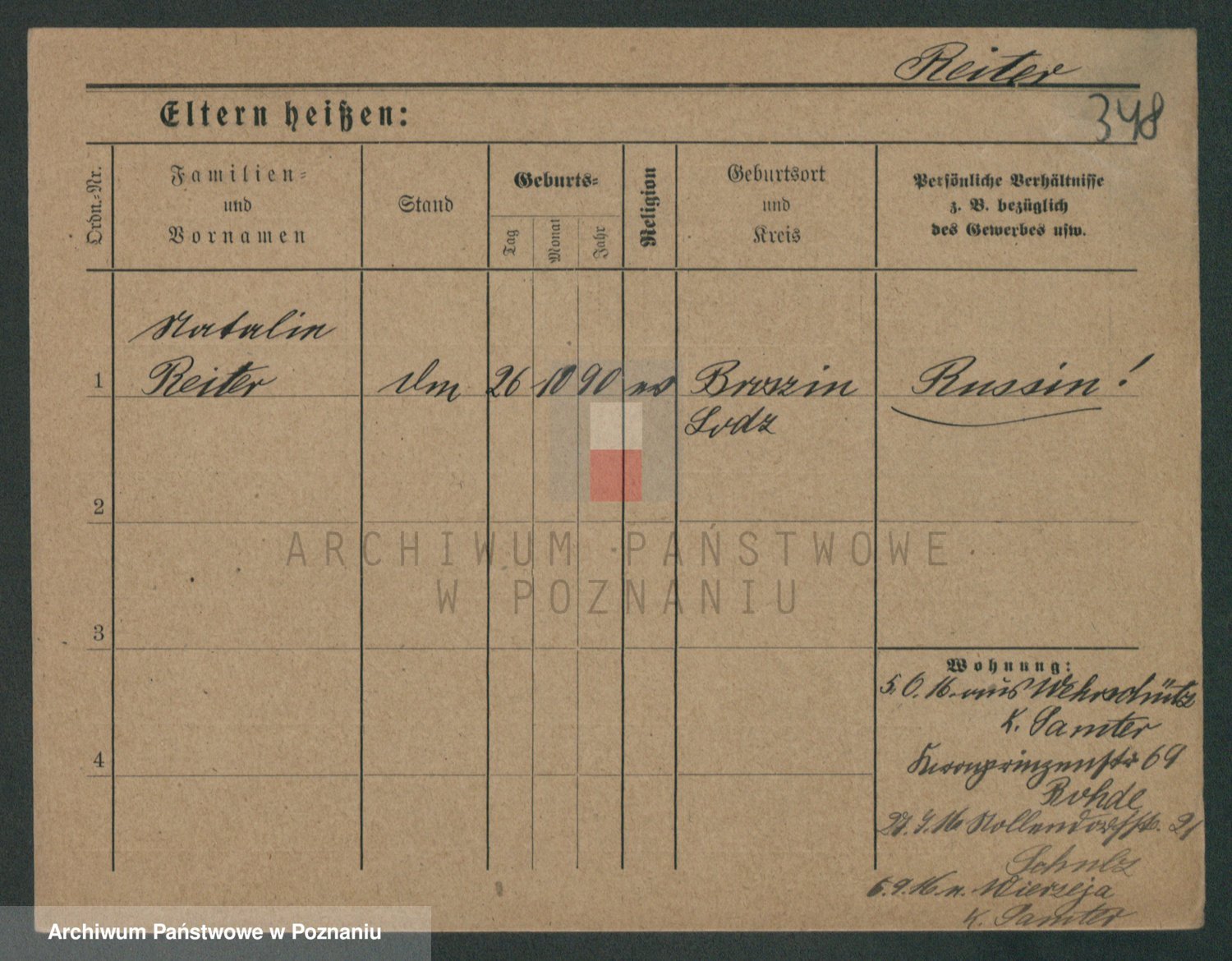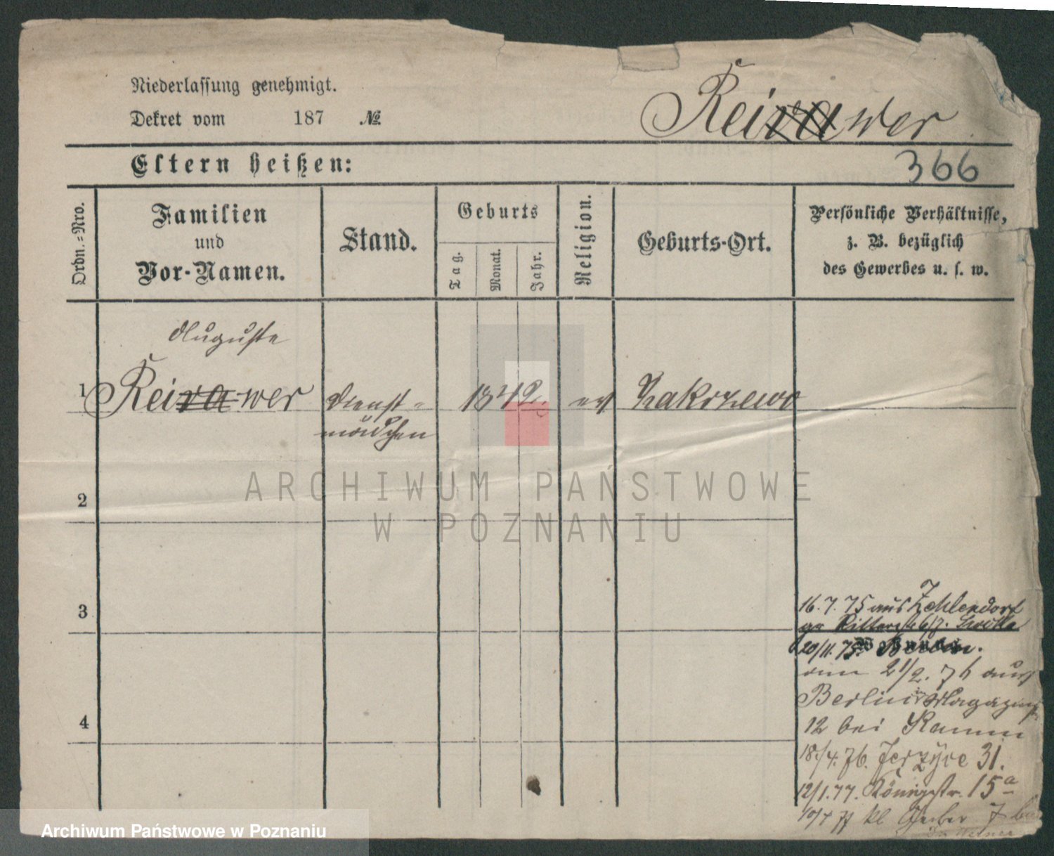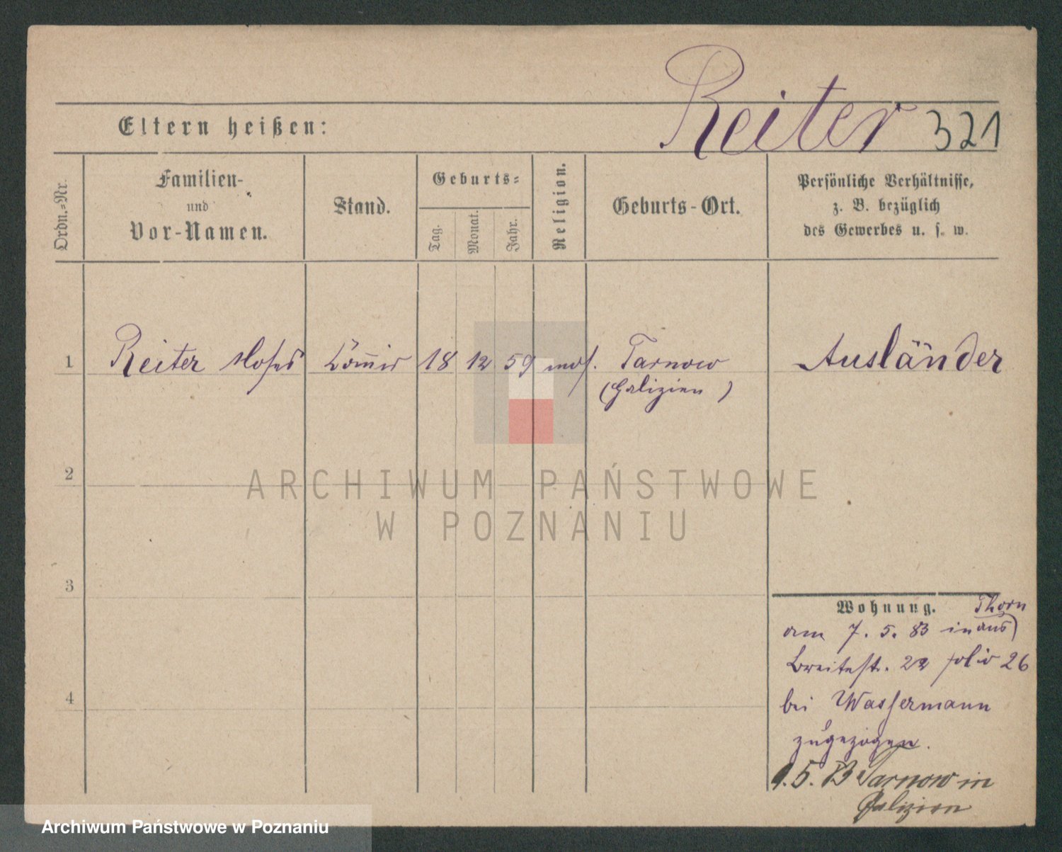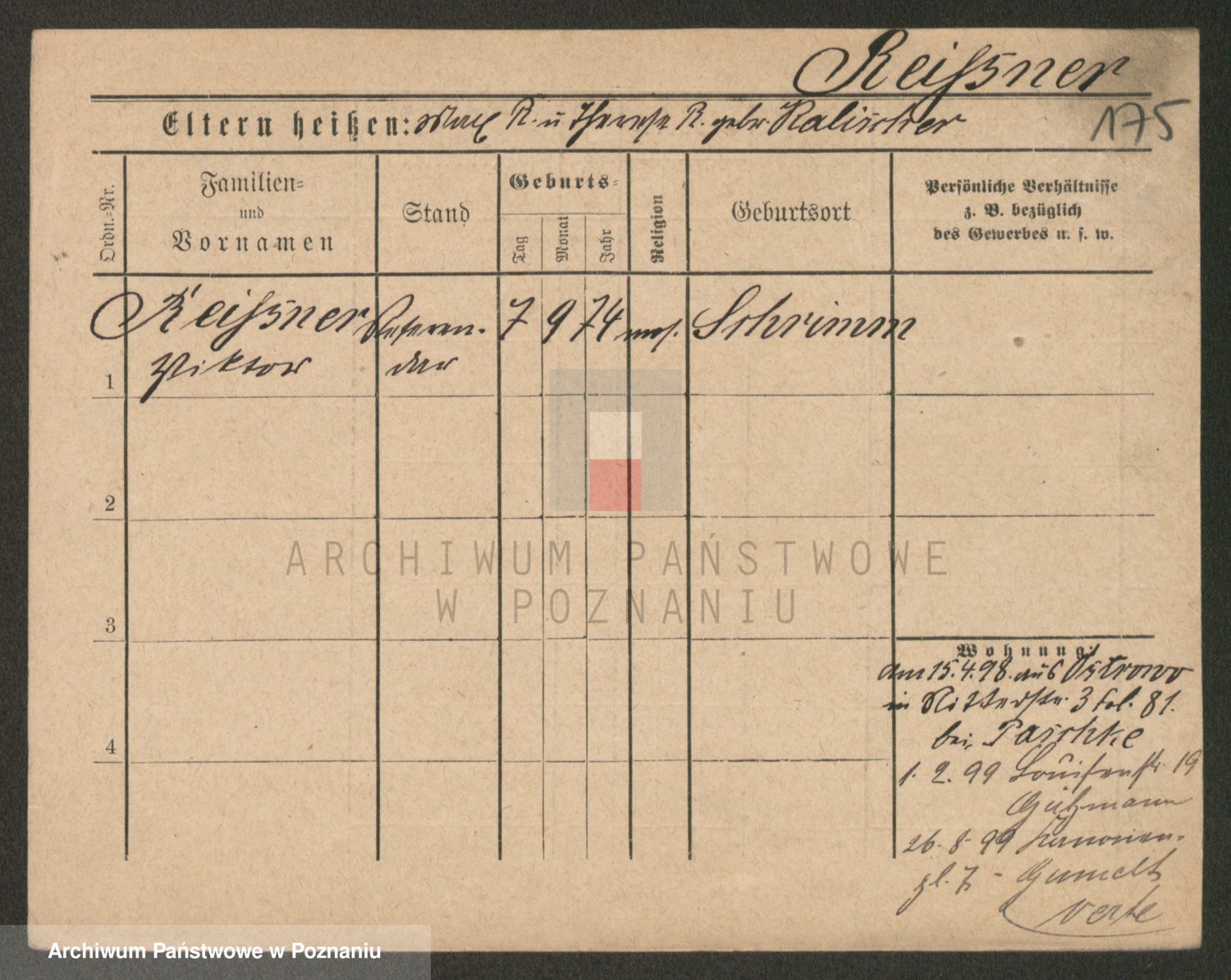 Podgląd karty osobowej dostępny jest po kliknięciu na nazwisko lub ikonkę karty. Można dokonywać powiększenia (ikony na górze) lub przechodzić między kolejnymi skanami (strzałki po bokach).