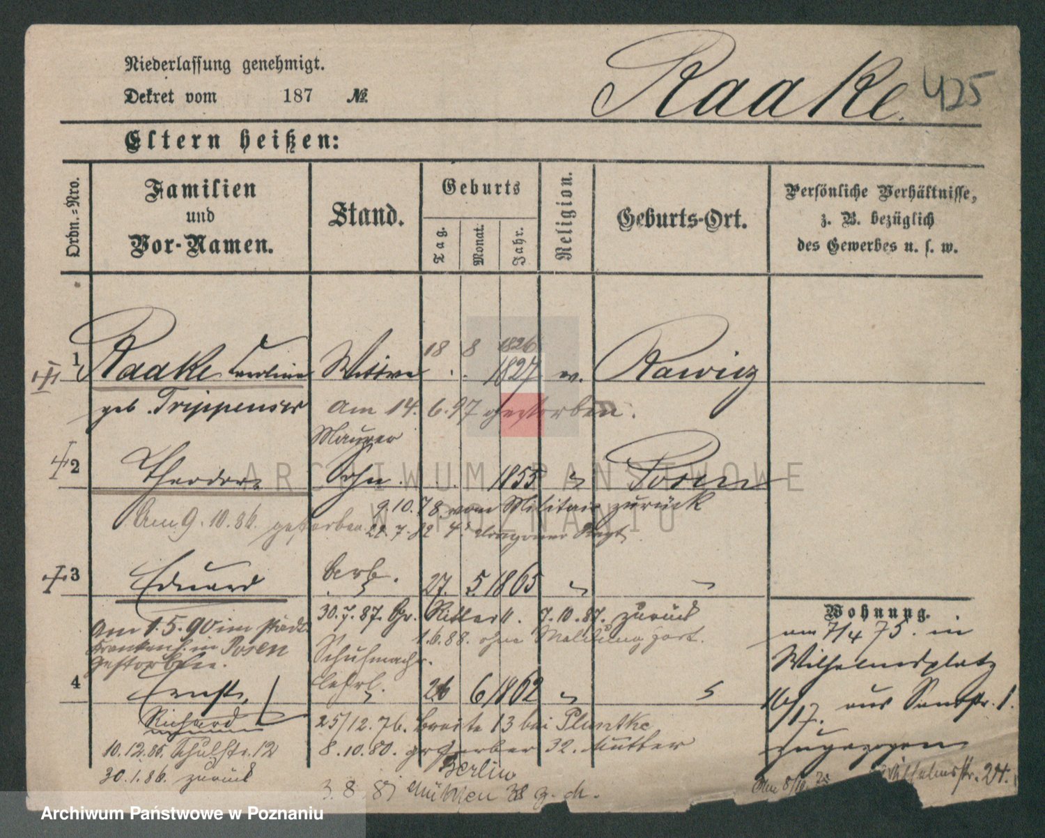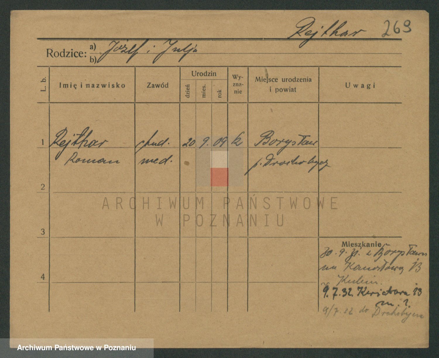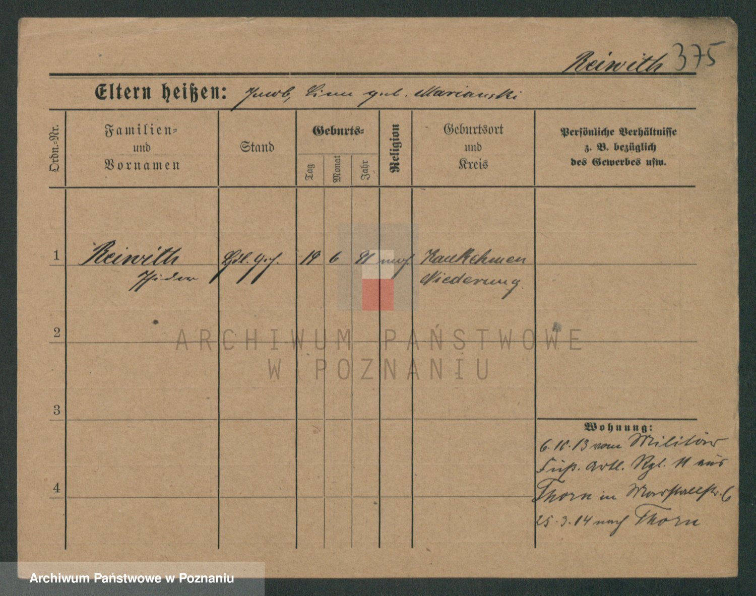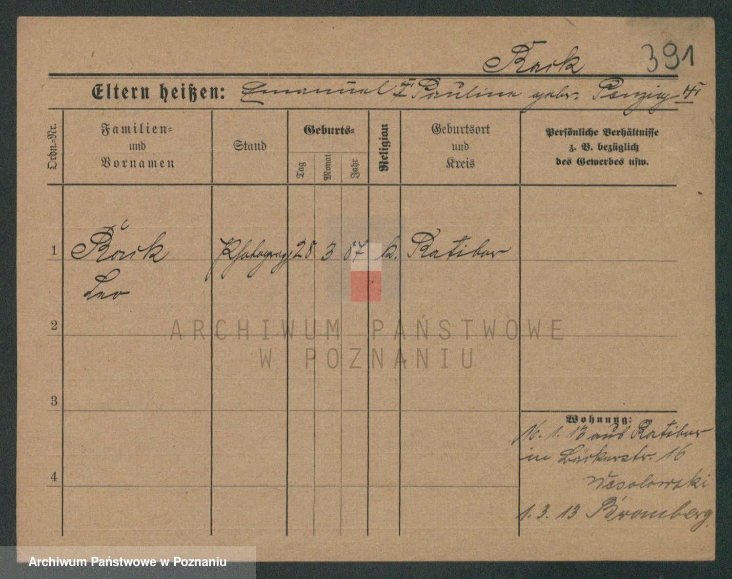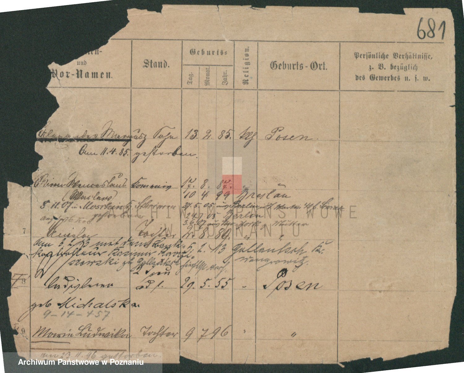Podgląd karty osobowej dostępny jest po kliknięciu na nazwisko lub ikonkę karty. Można dokonywać powiększenia (ikony na górze) lub przechodzić między kolejnymi skanami (strzałki po bokach).