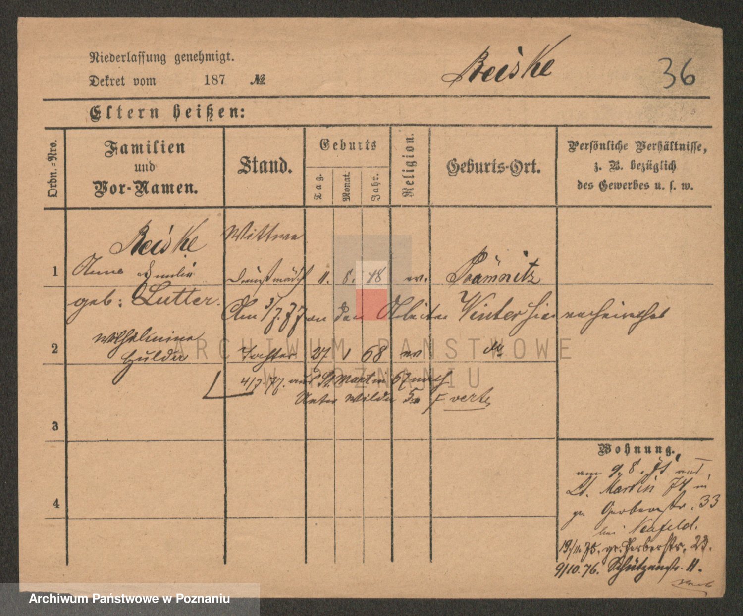 Reiske z d. Schilf, Auguste Wanda