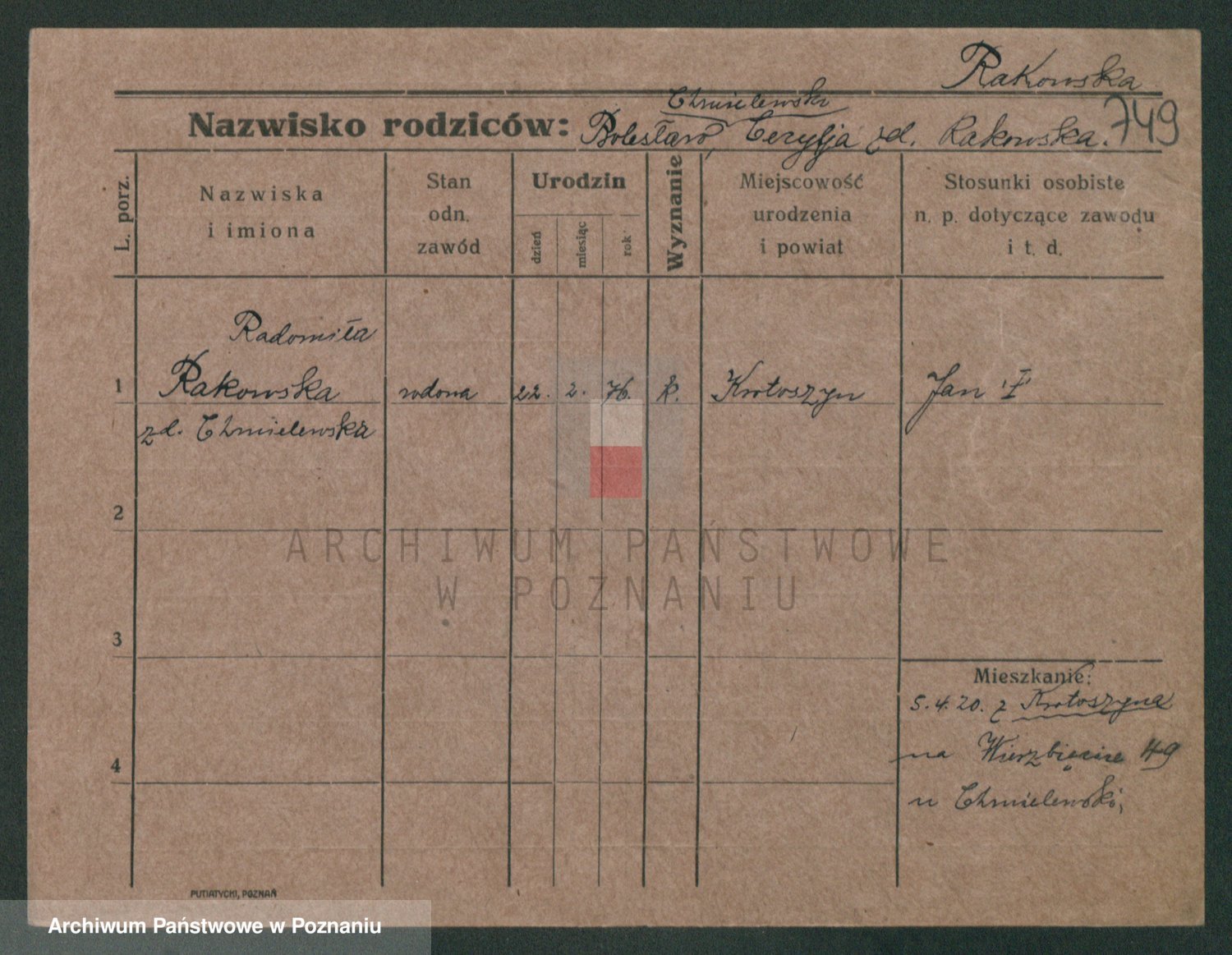 Rakowska z d. Zarębska, Marja