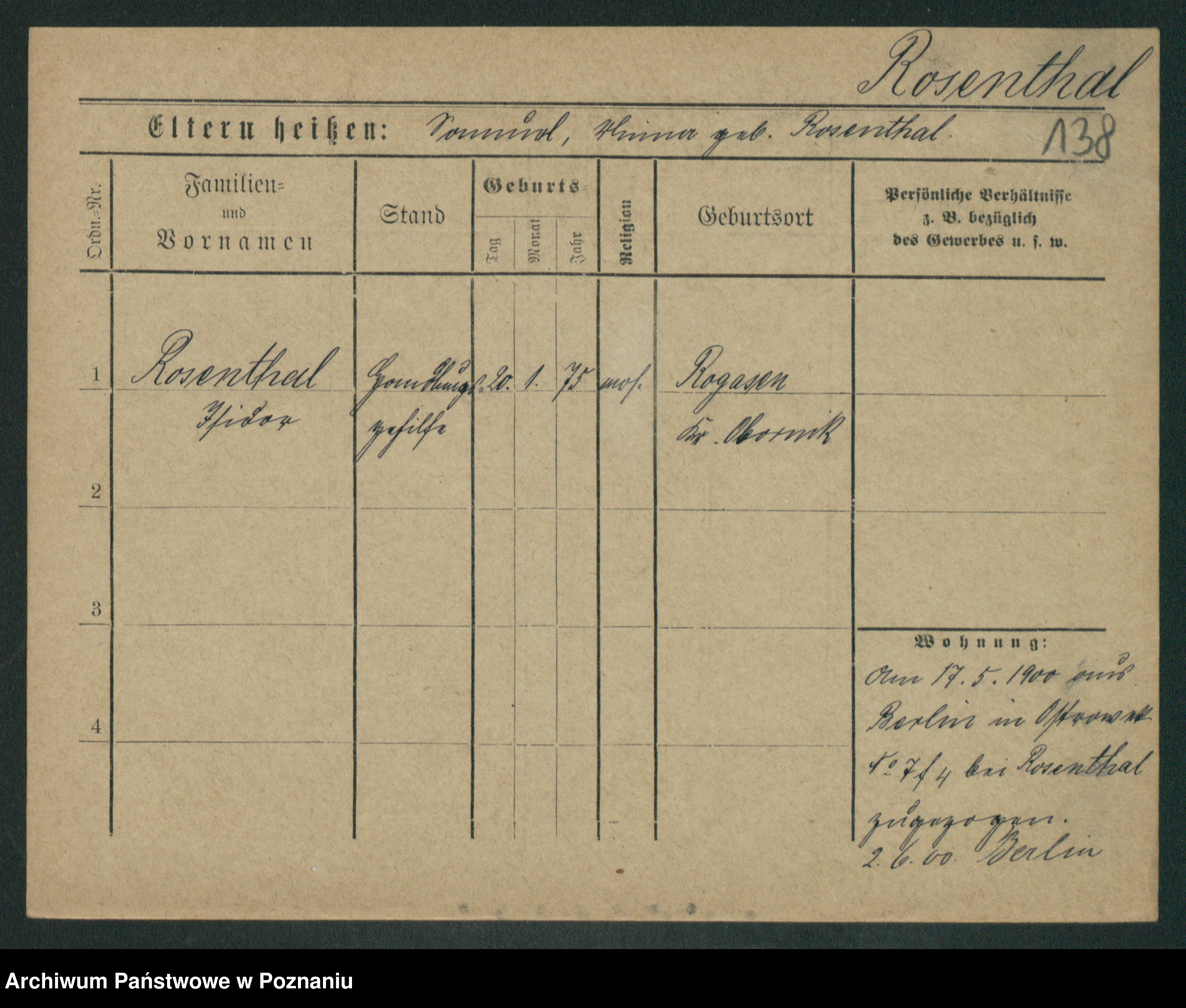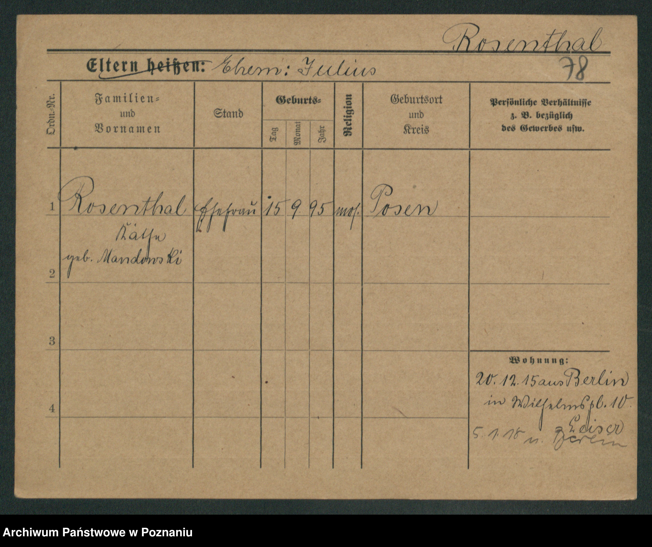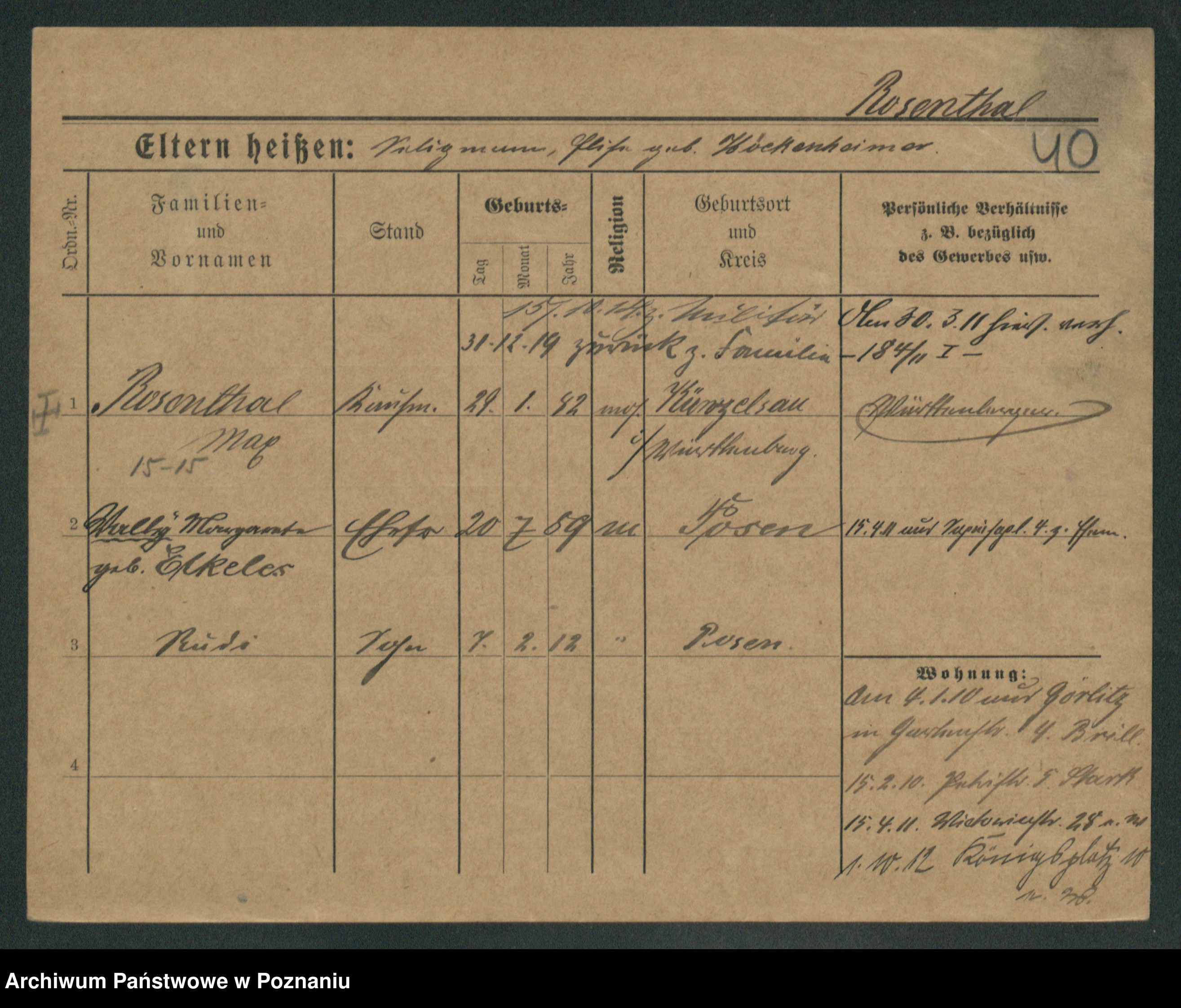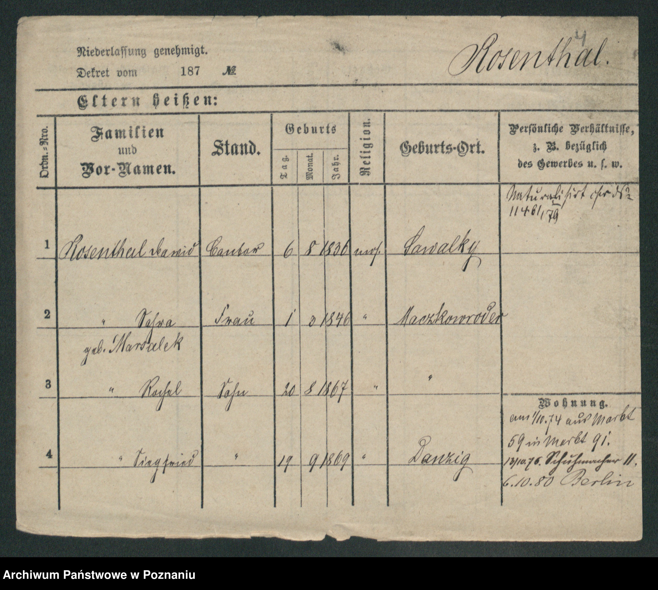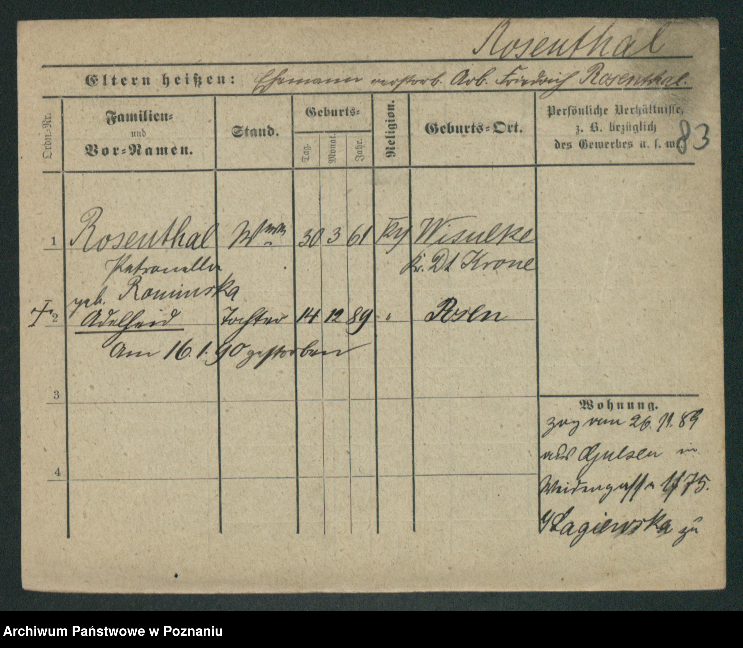 Rosenthal z d. Sperling I voto Damidt, Rosalie