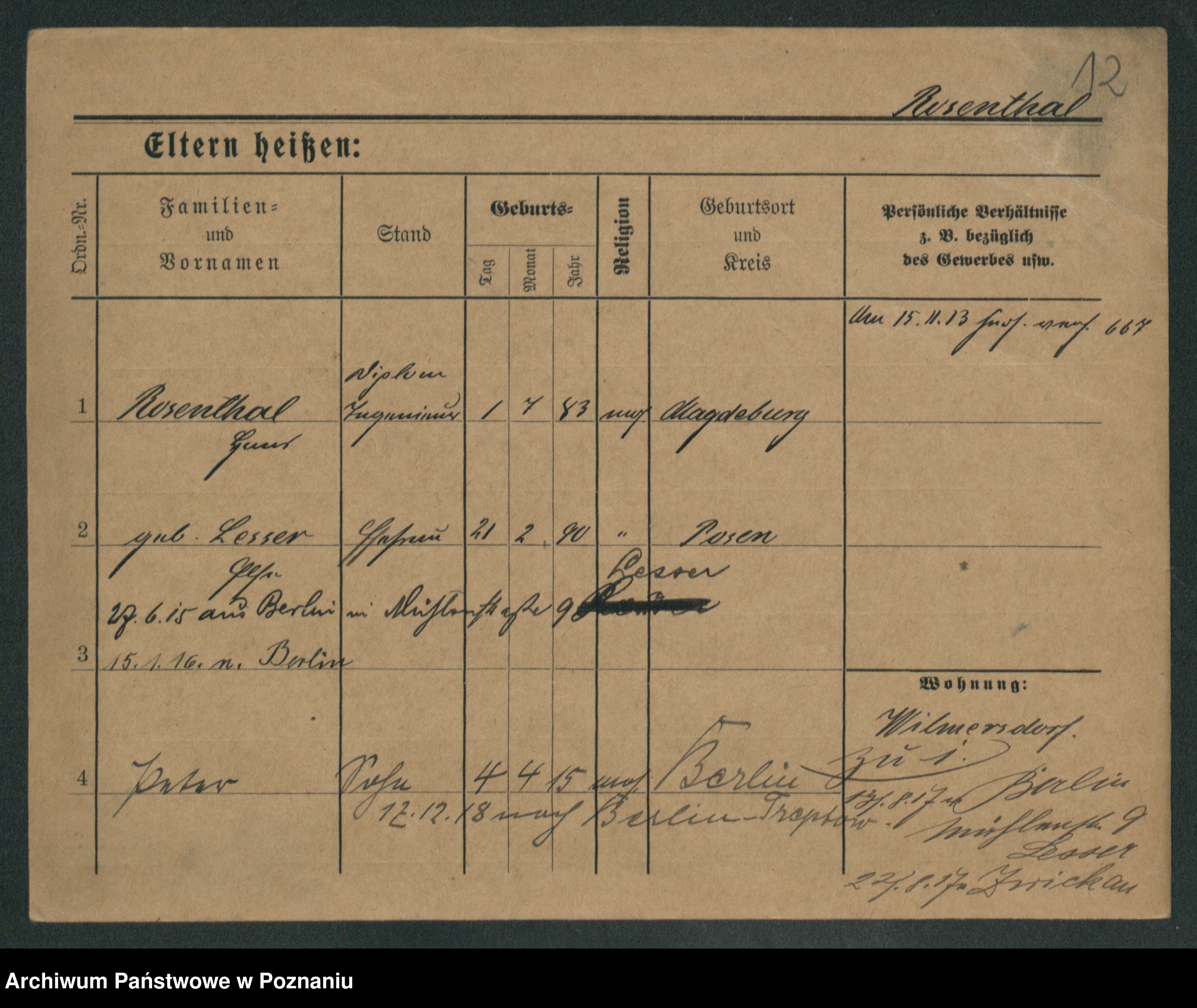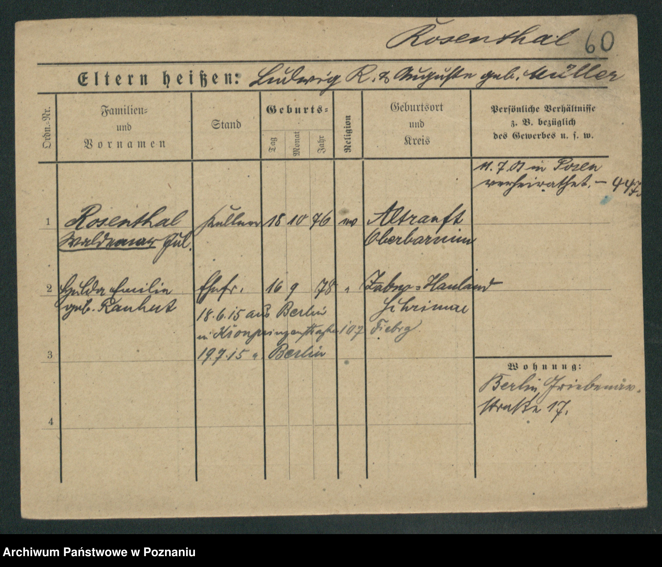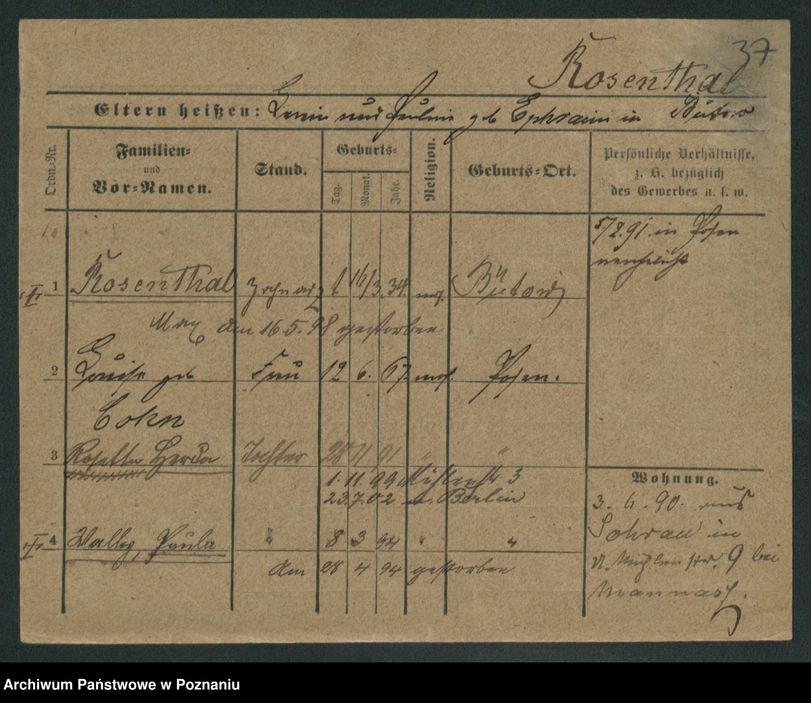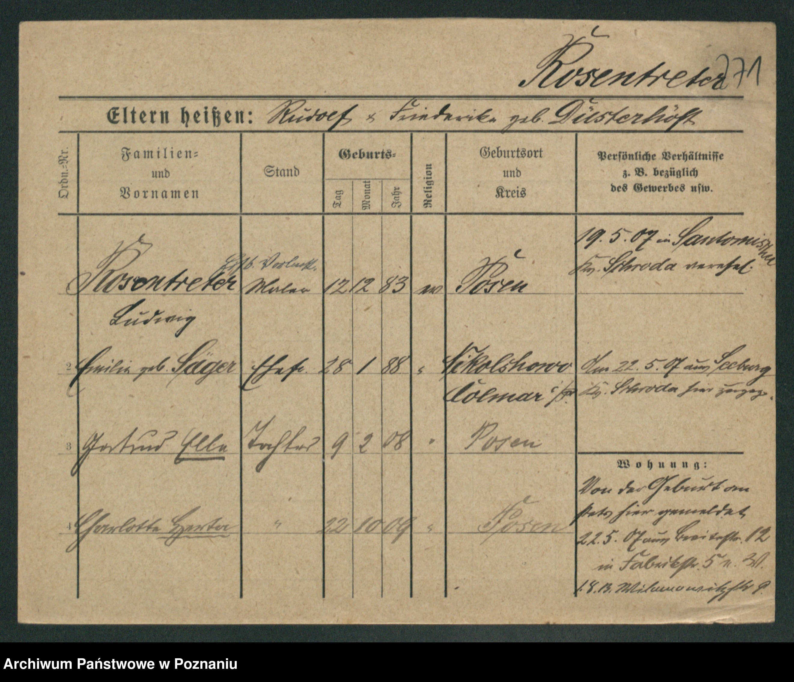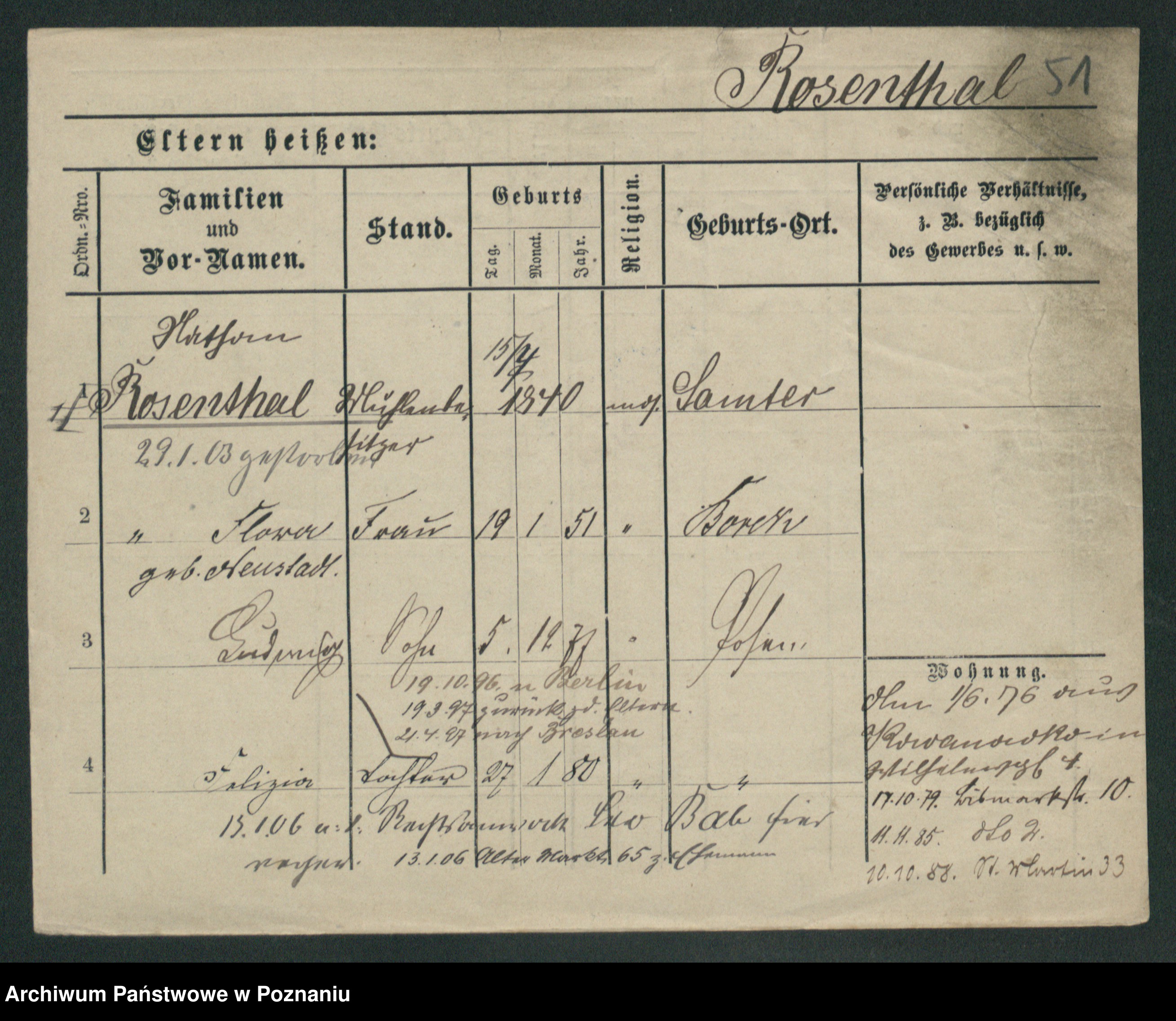 Rosenthal z d. Sperling I voto Damidt, Rosalie