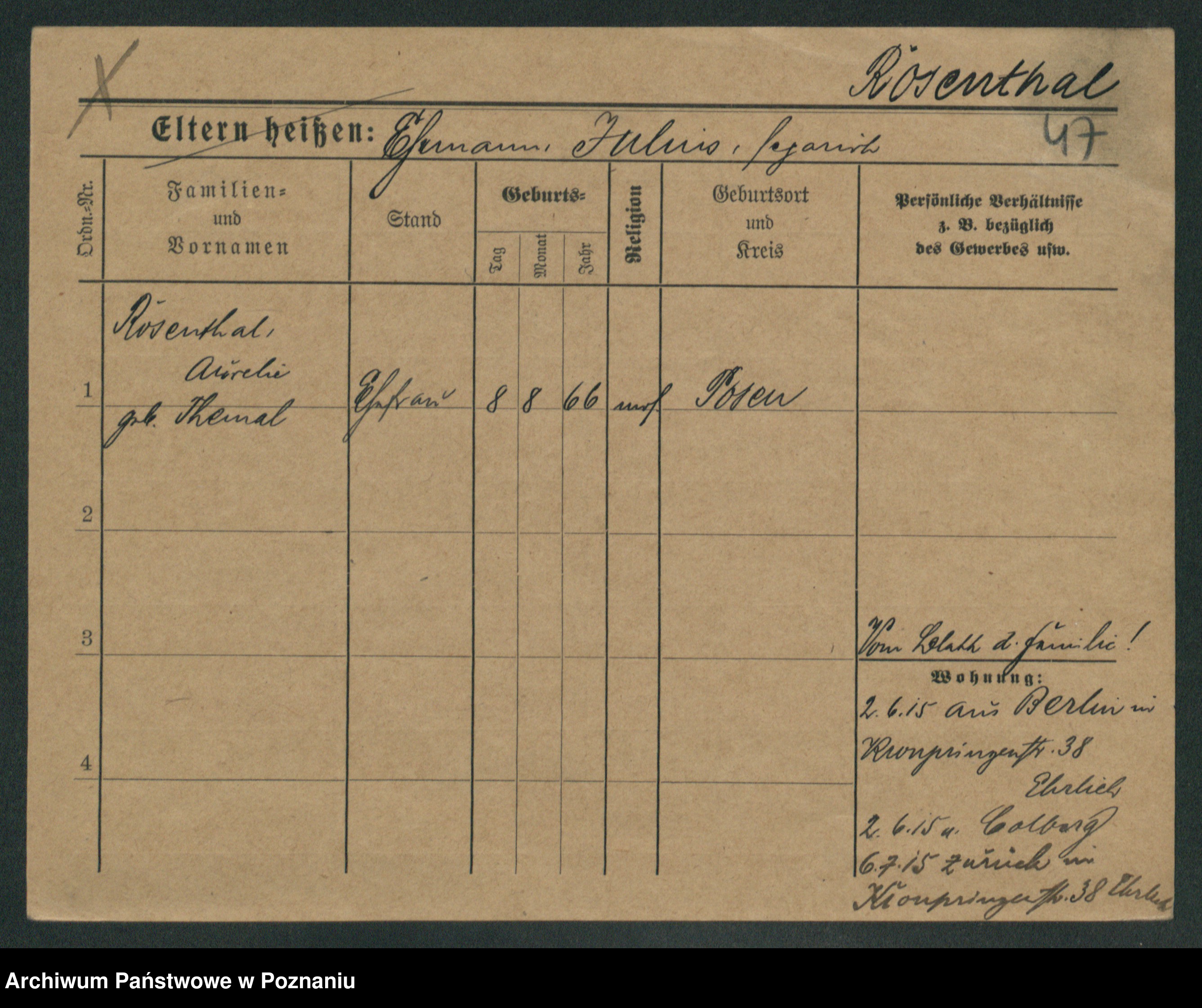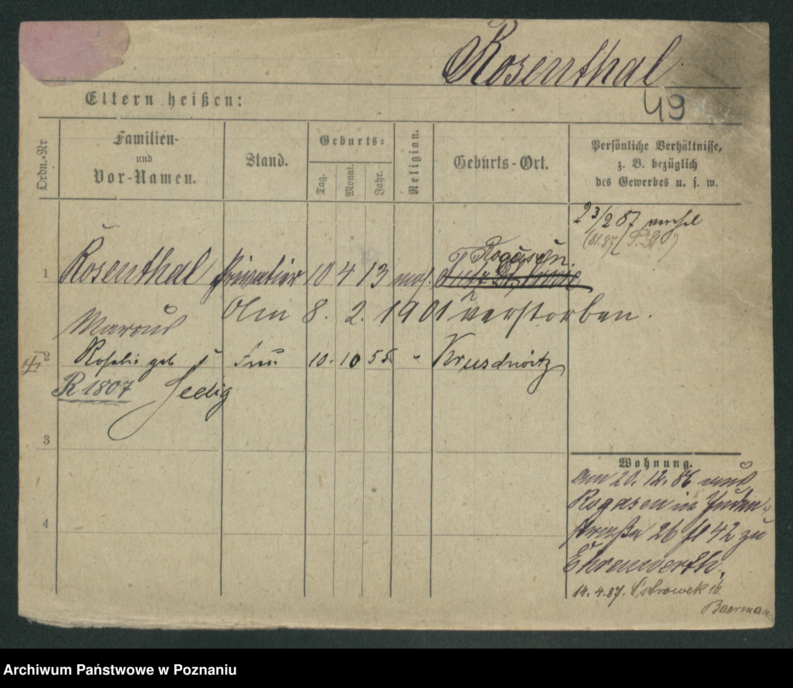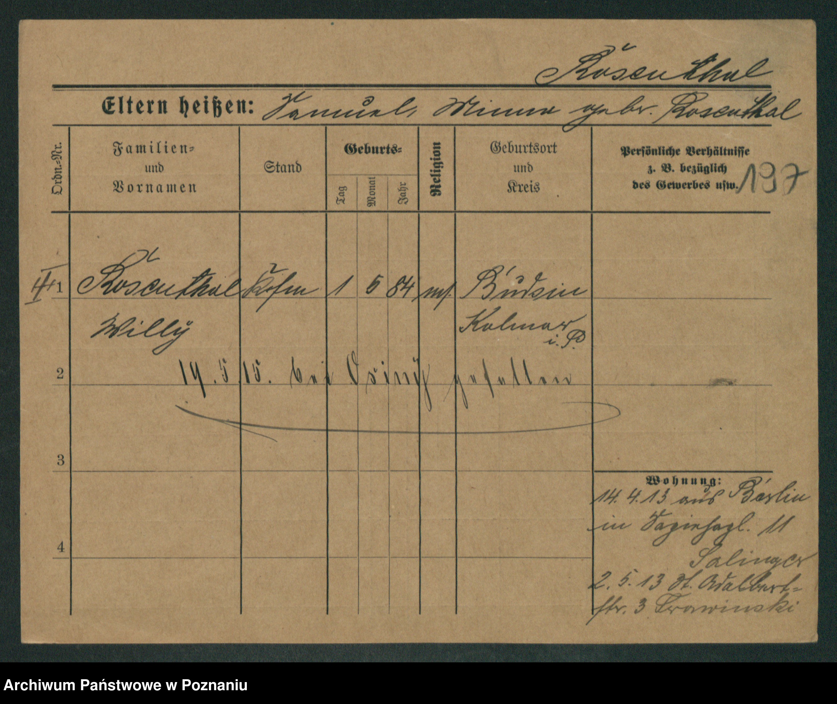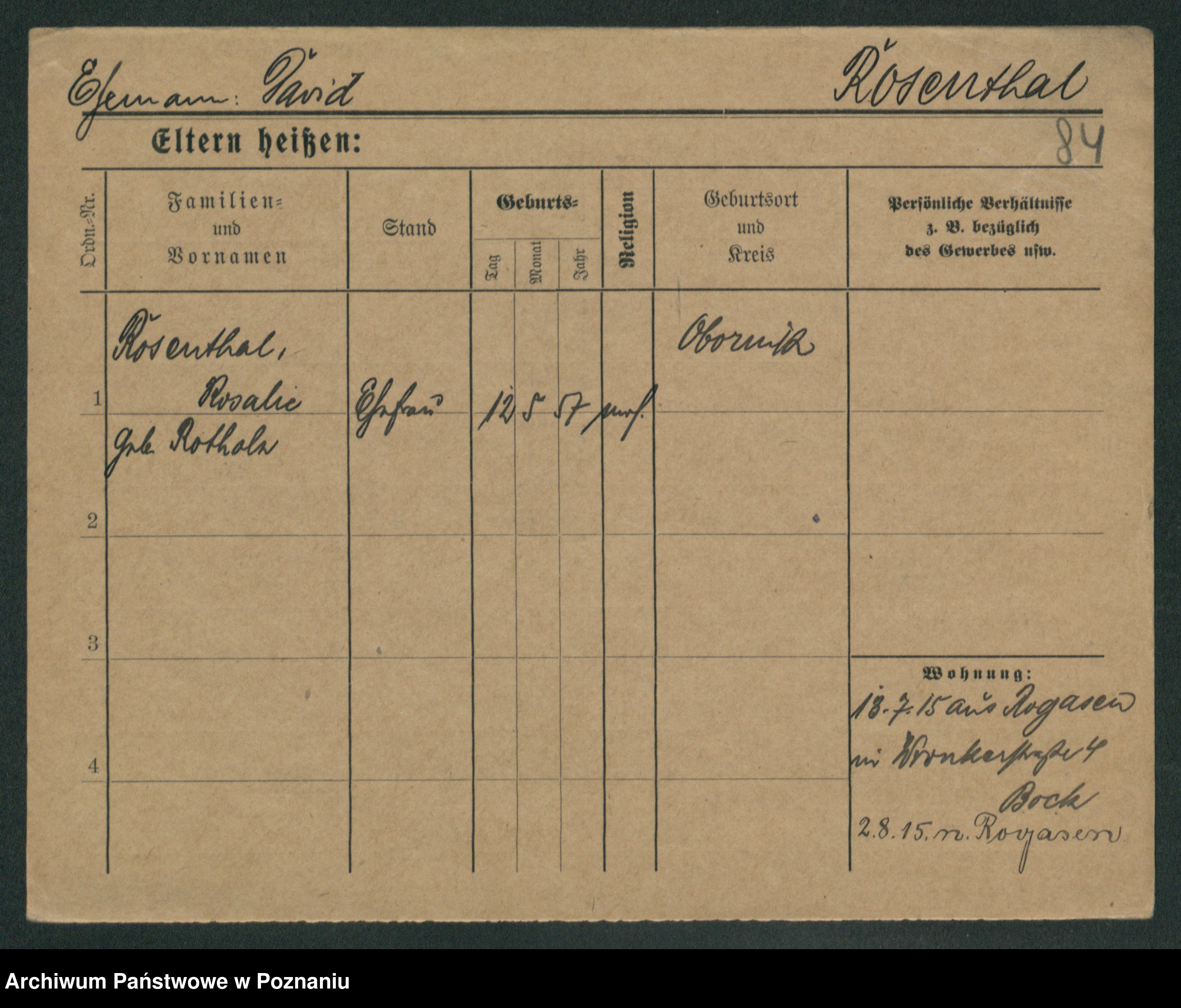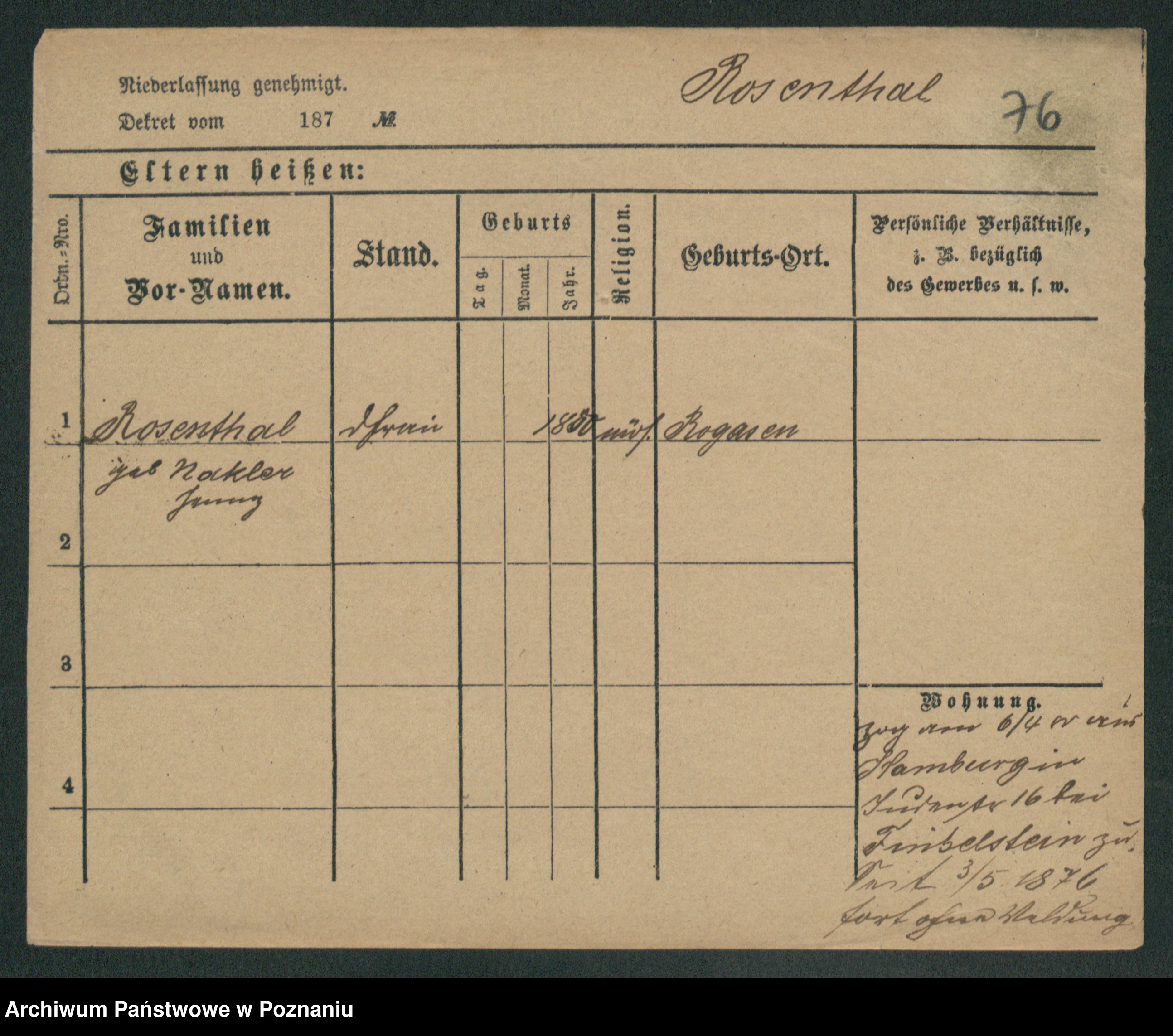 Rosenthal z d. Sperling I voto Damidt, Rosalie