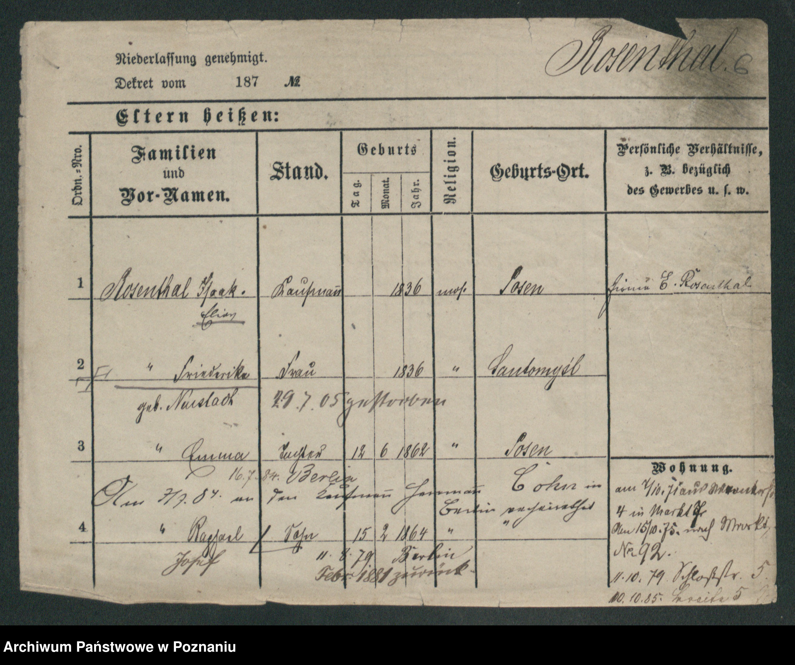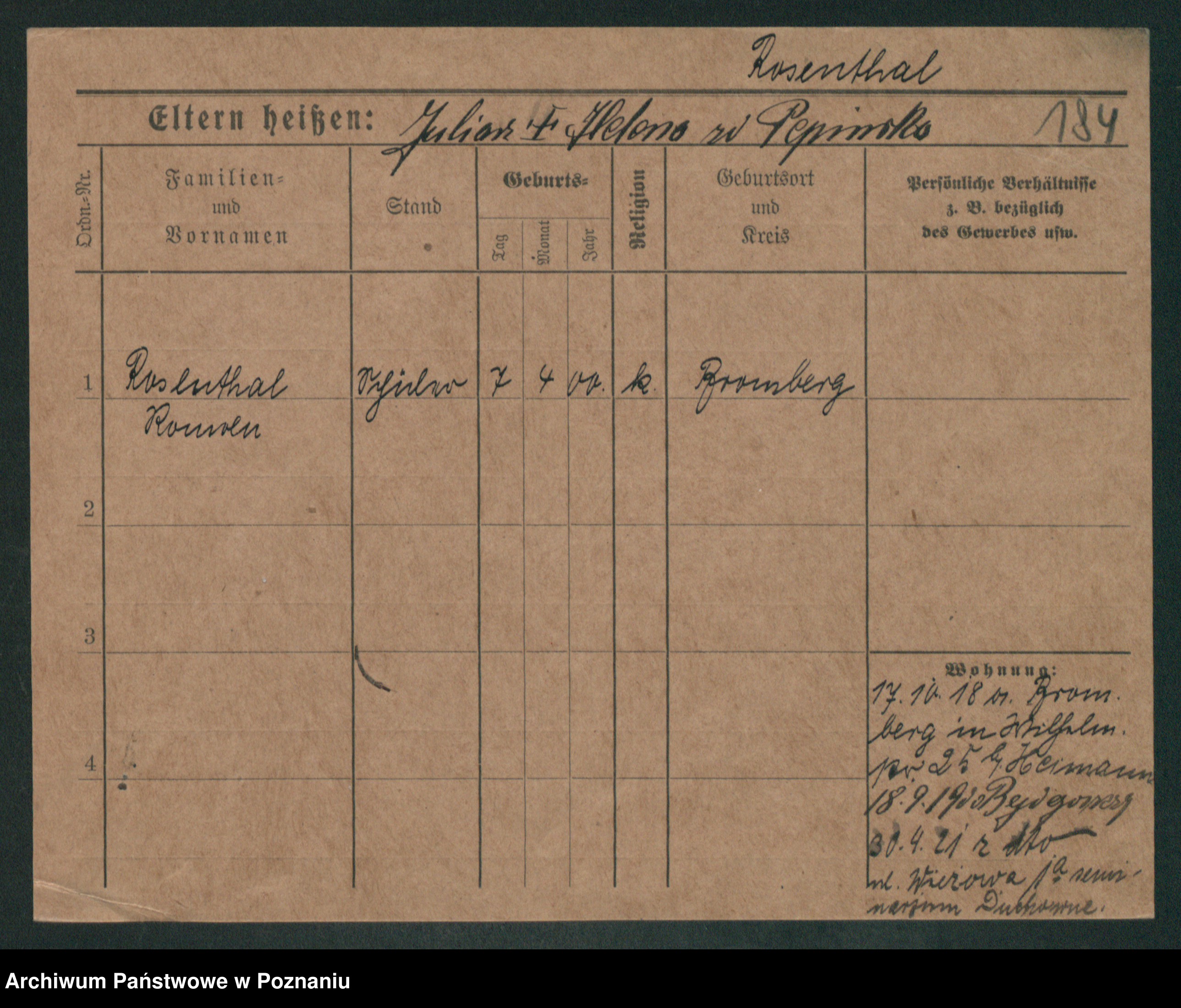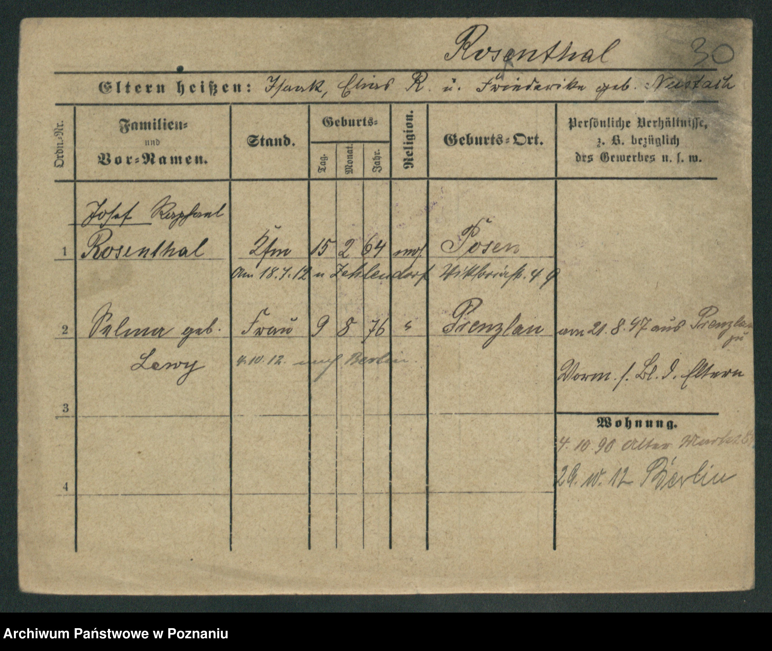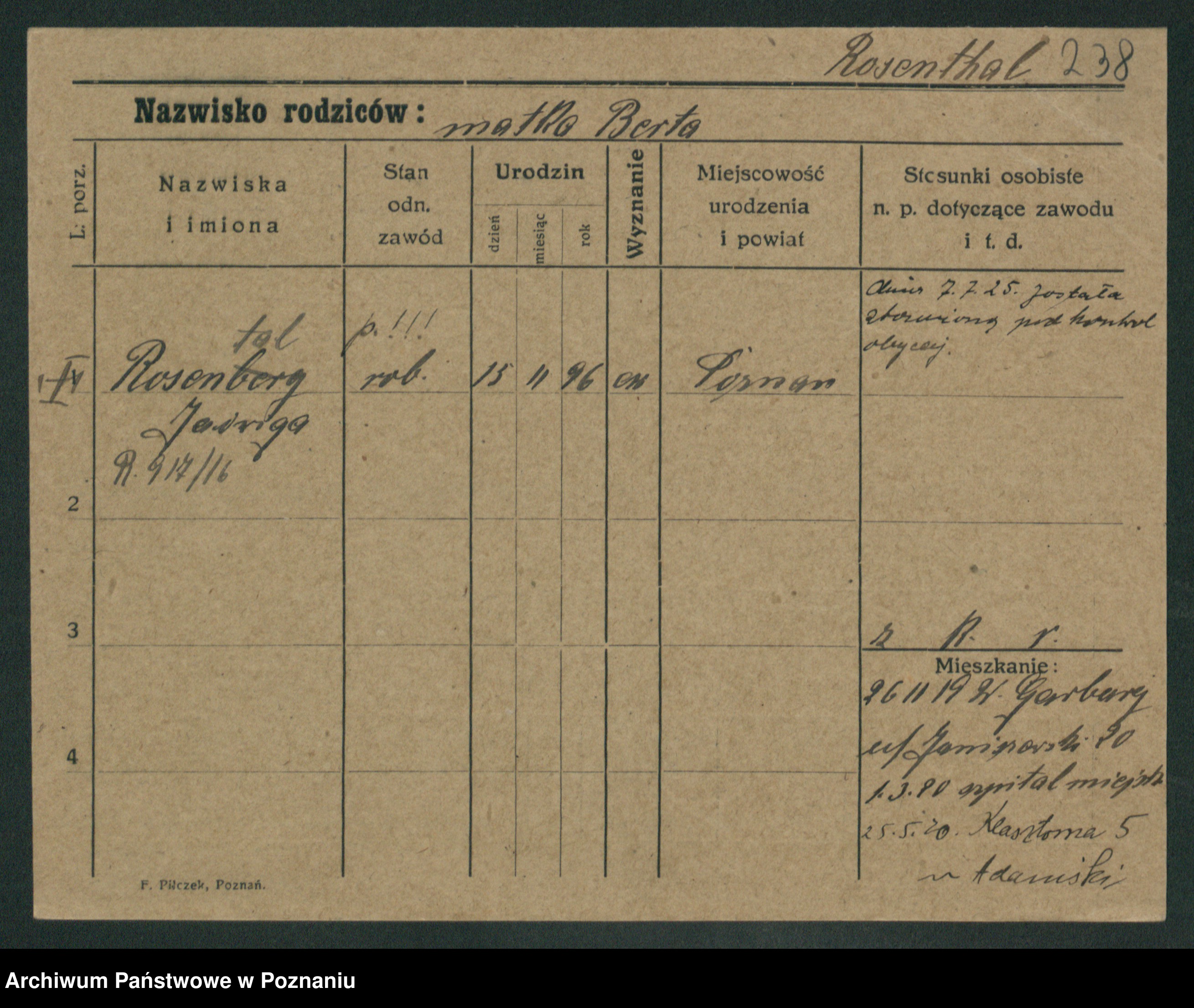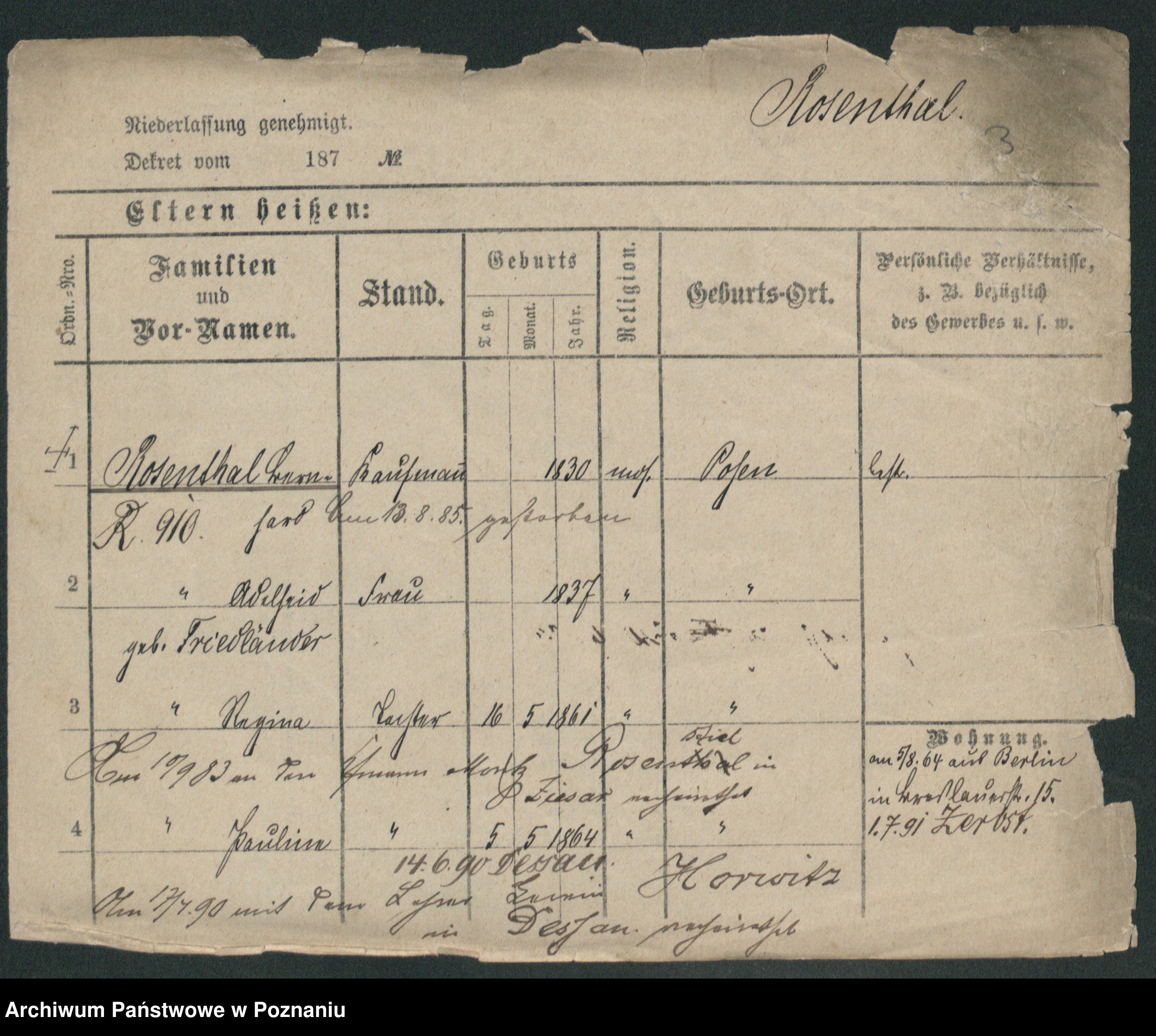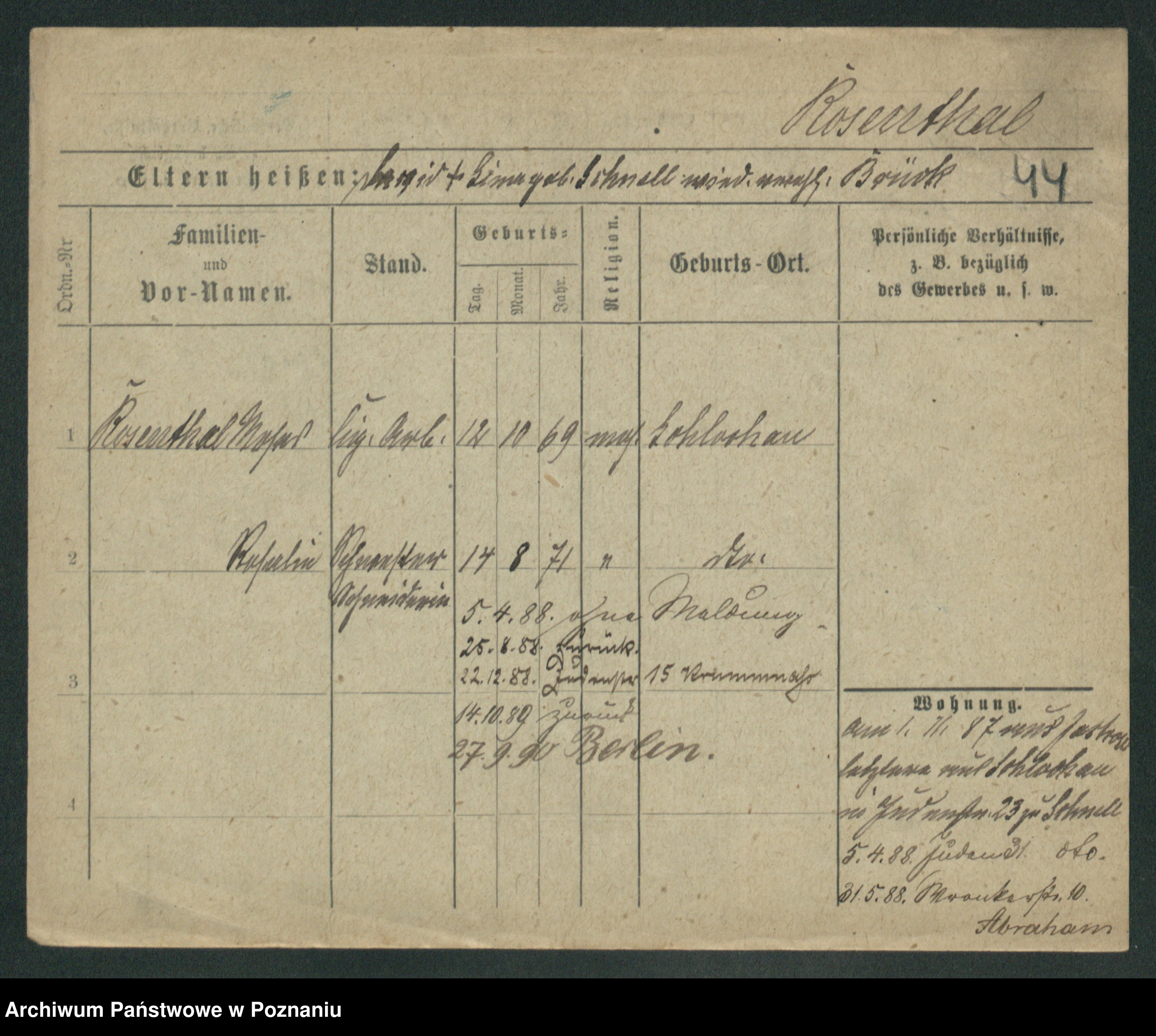 Rosenthal z d. Sperling I voto Damidt, Rosalie