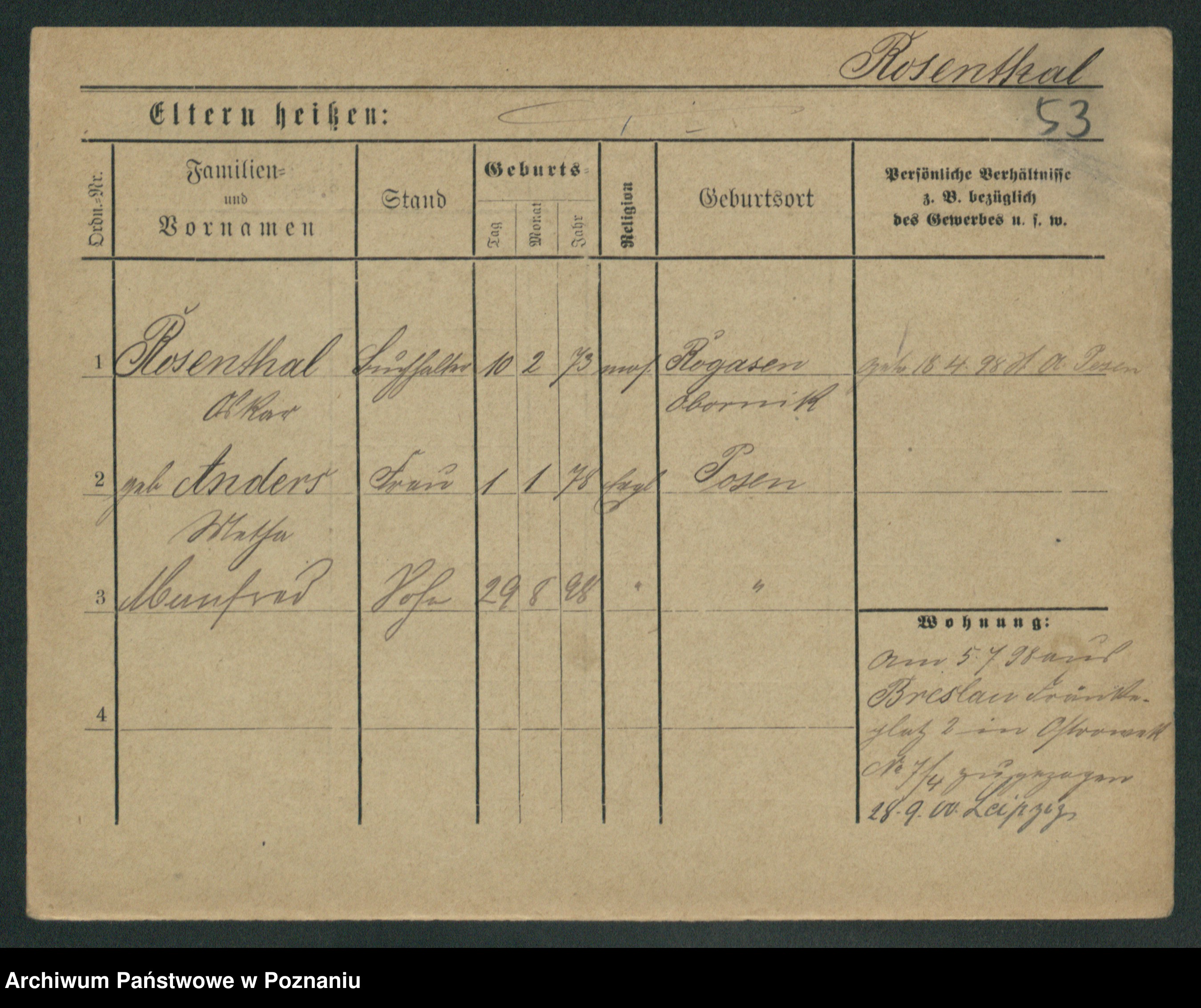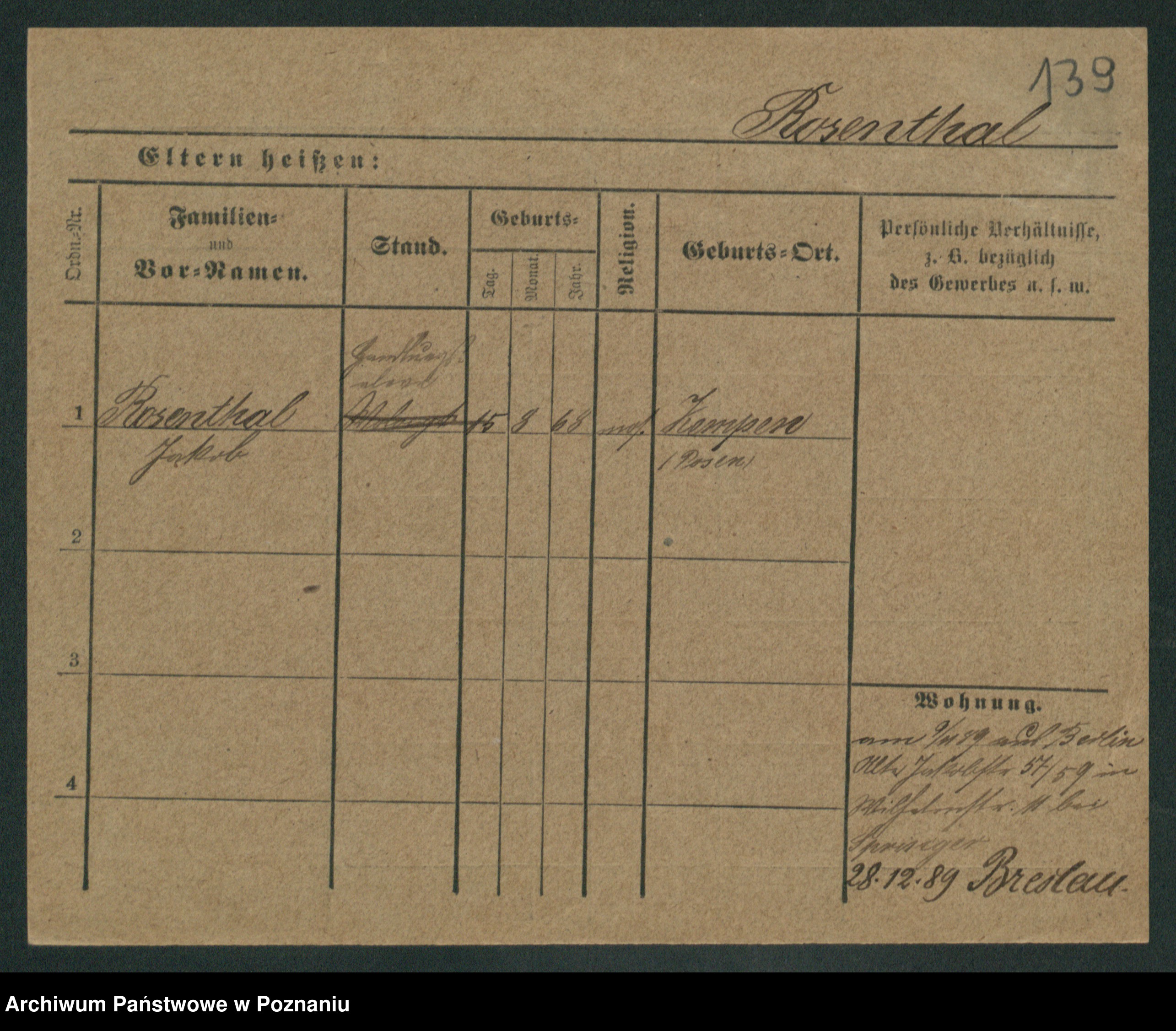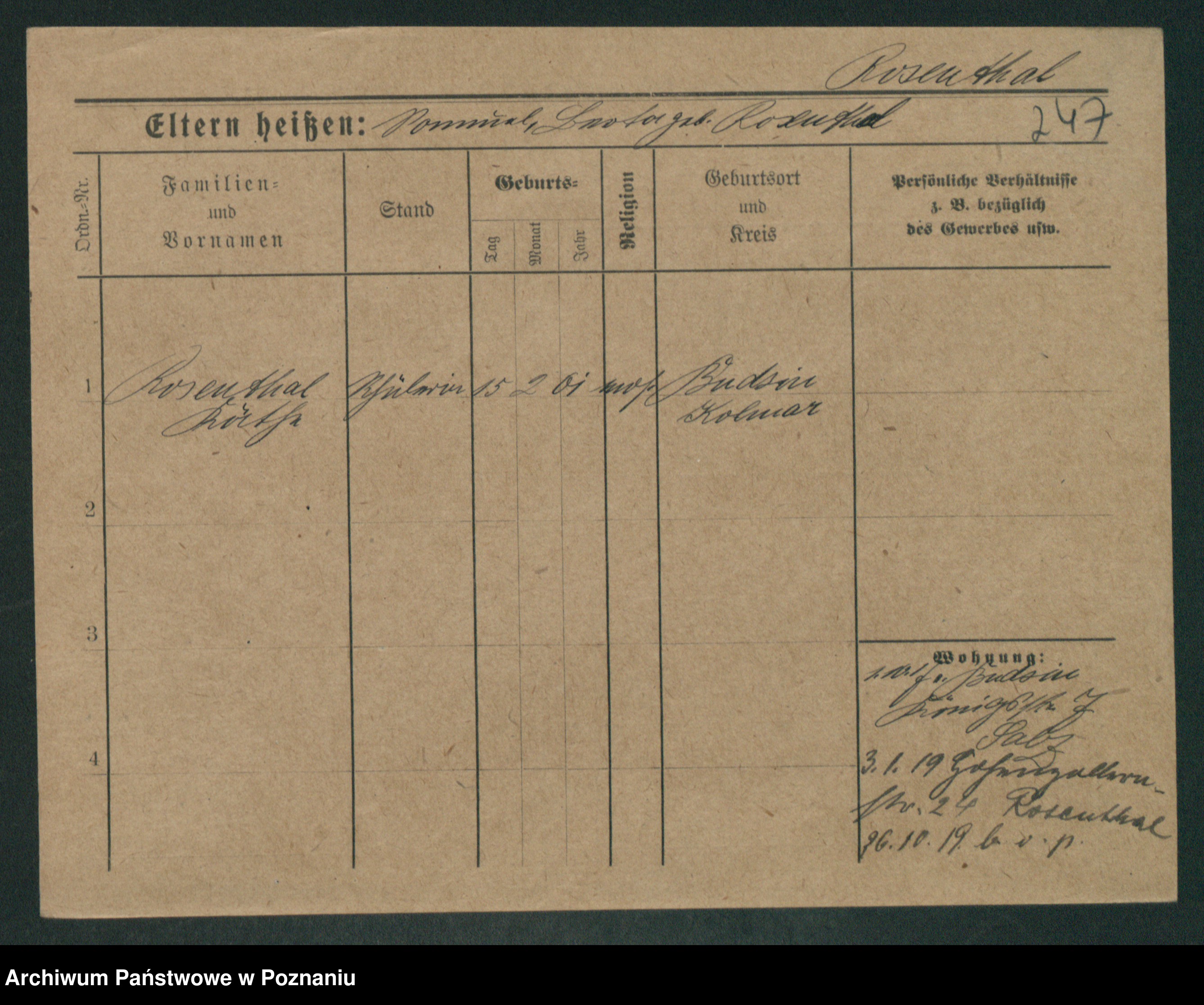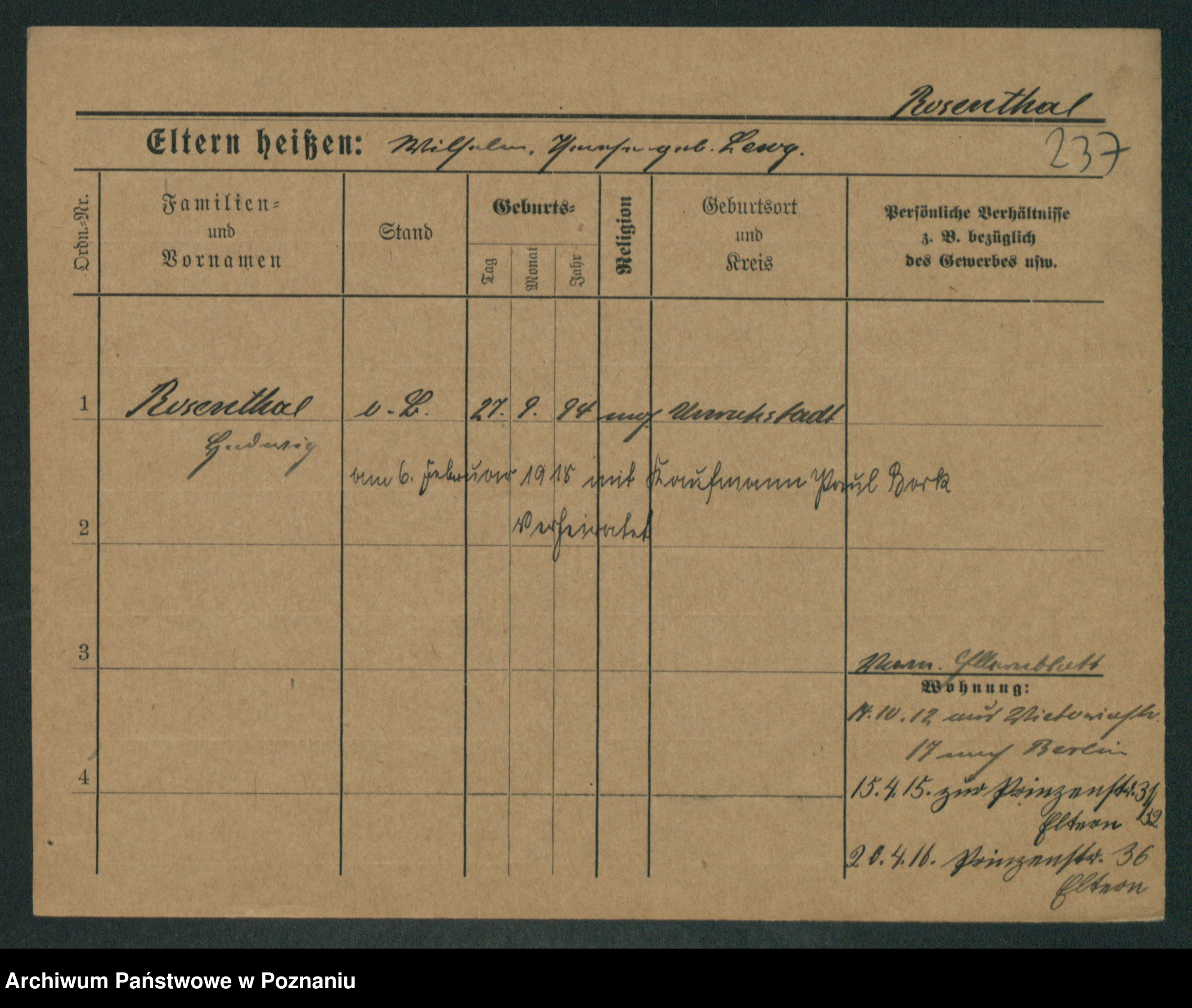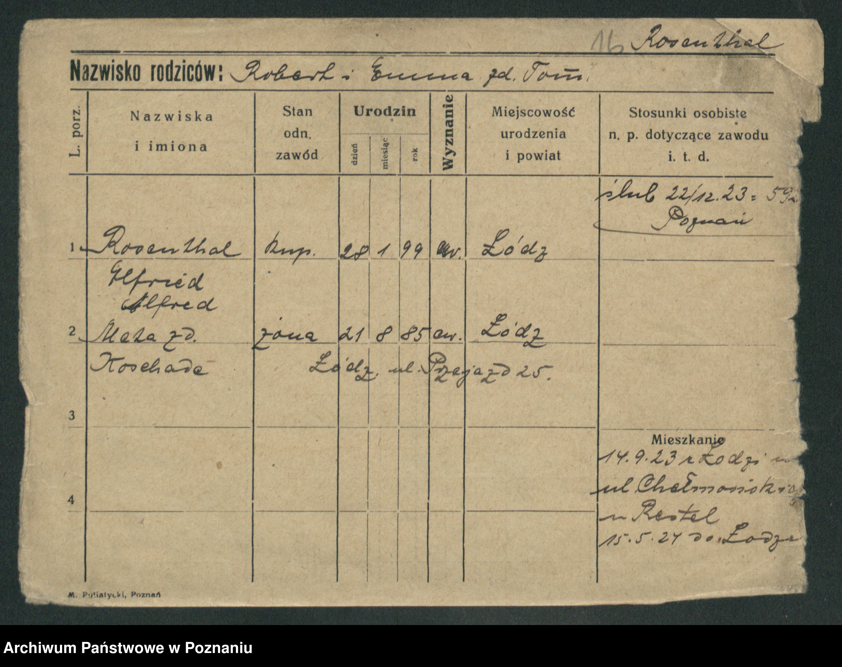 Rosenthal z d. Sperling I voto Damidt, Rosalie