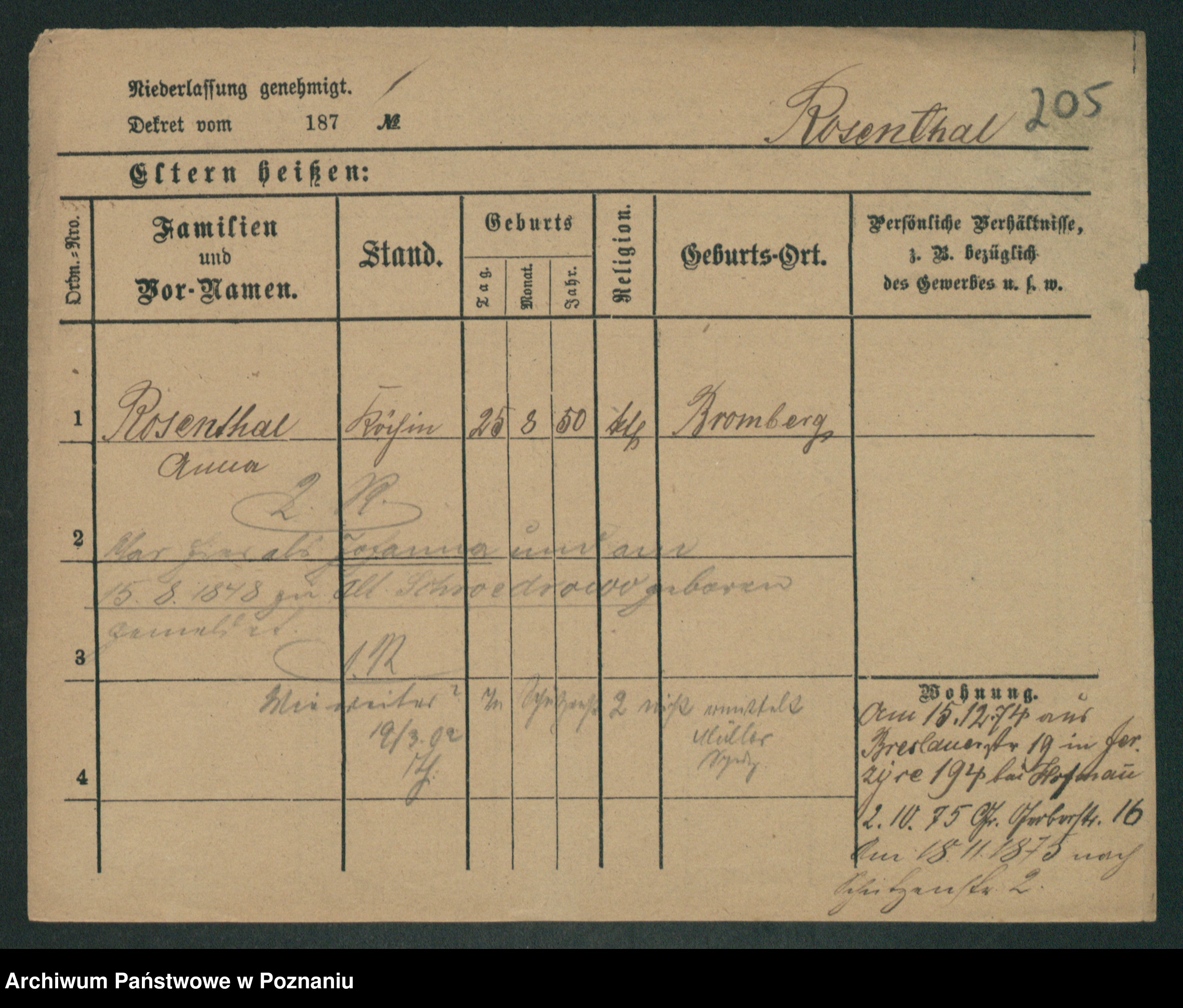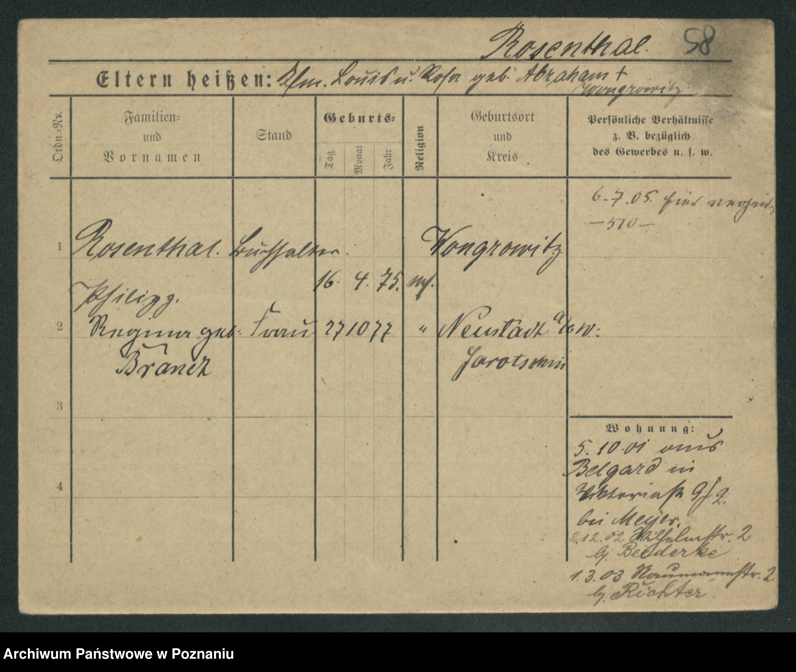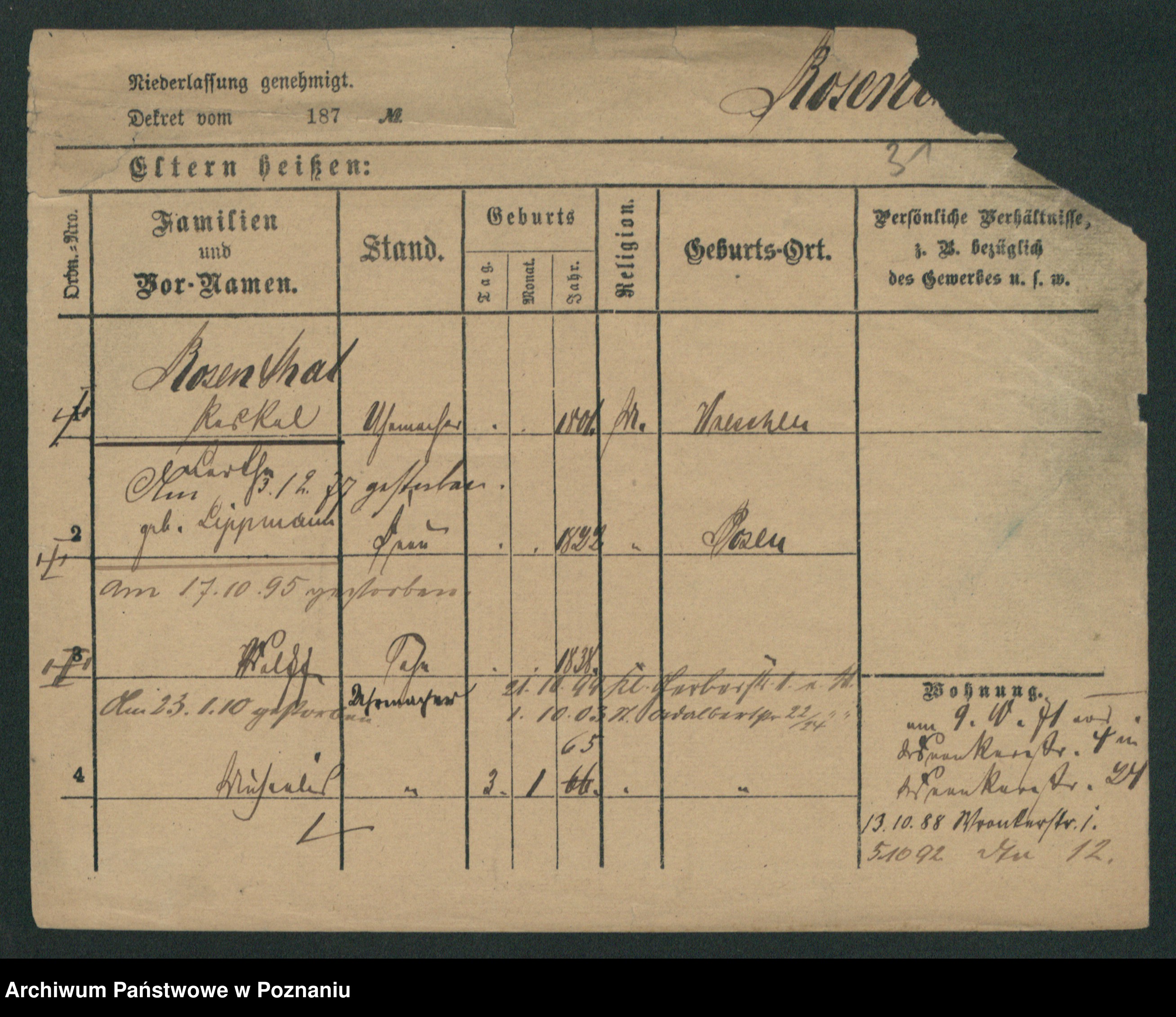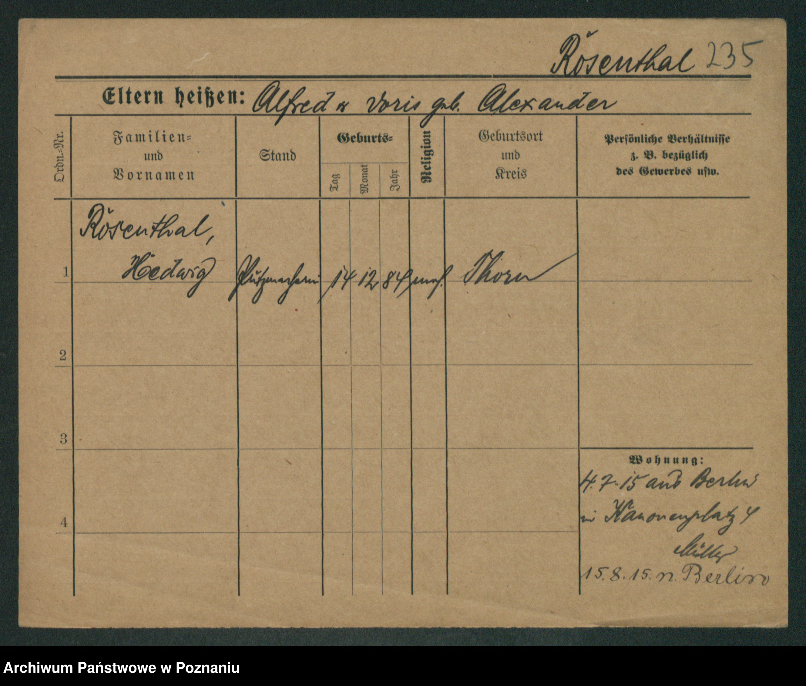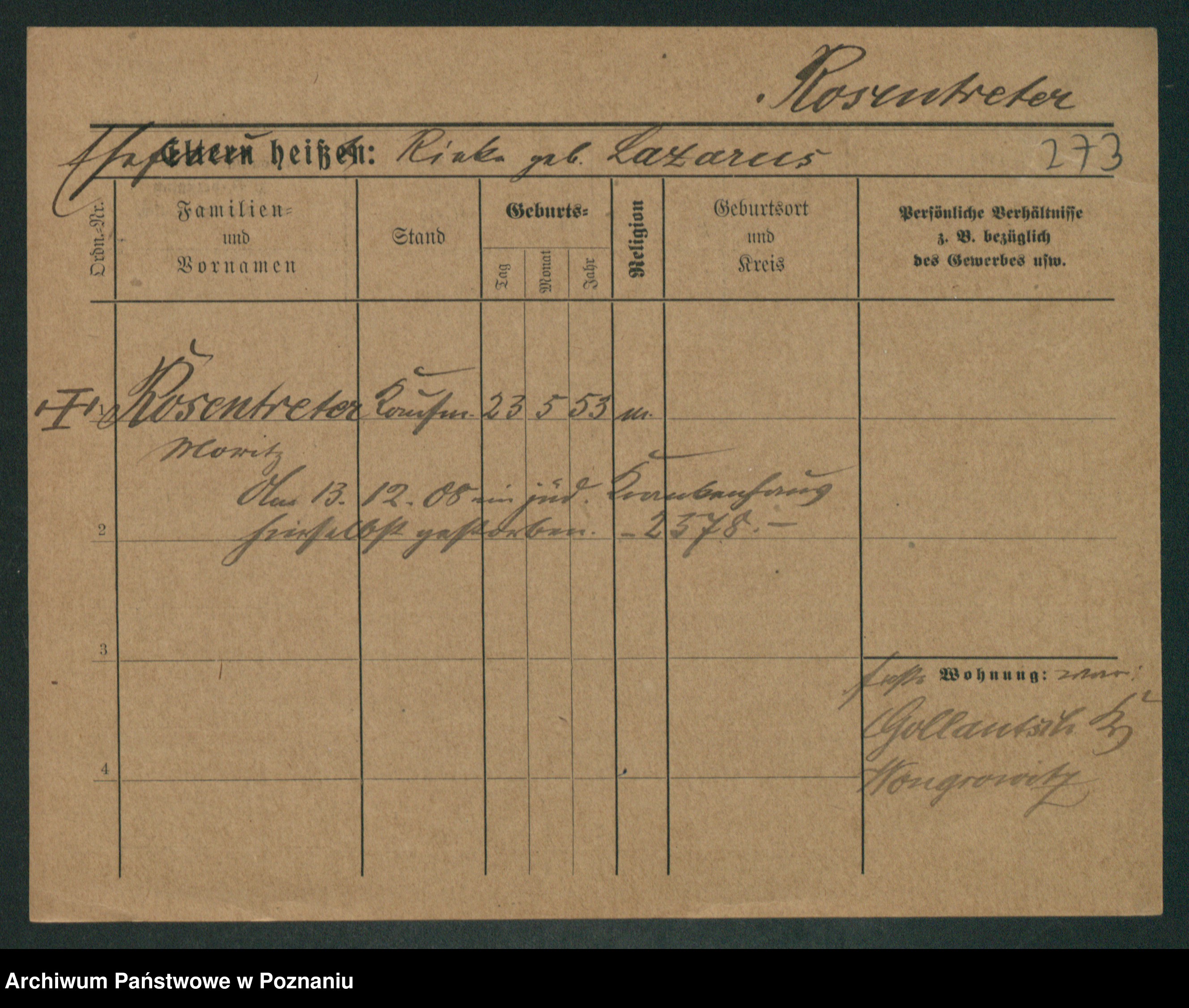 Rosenthal z d. Sperling I voto Damidt, Rosalie