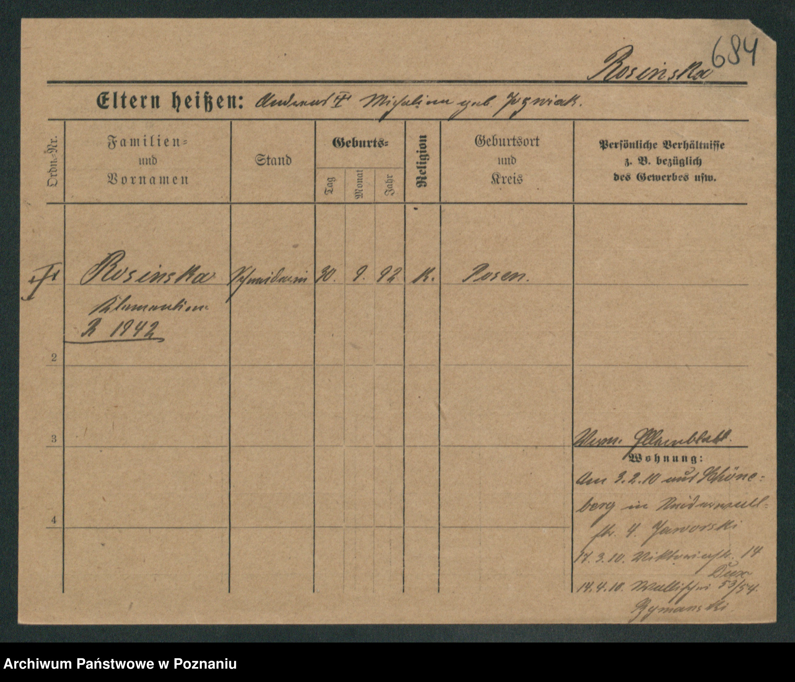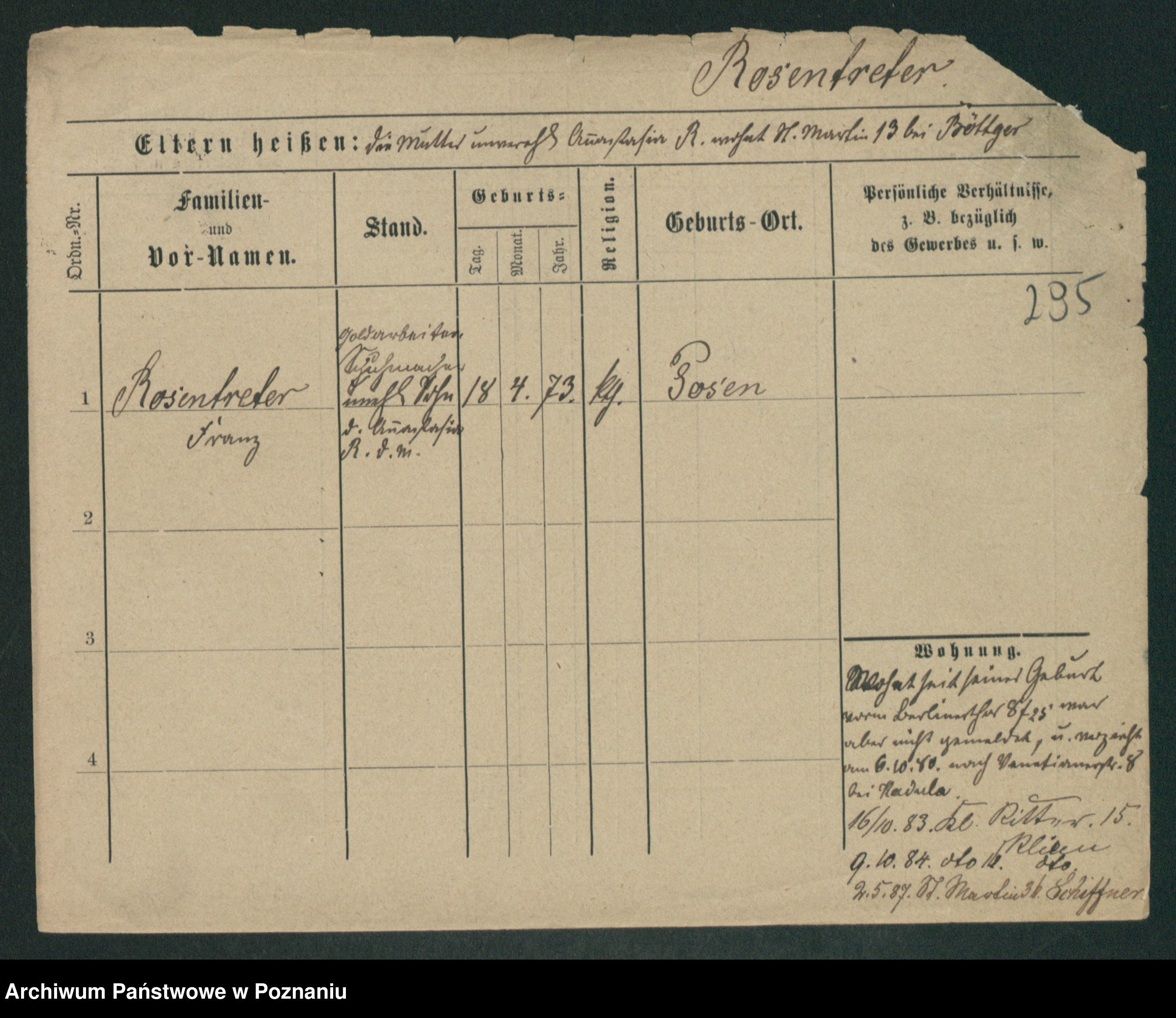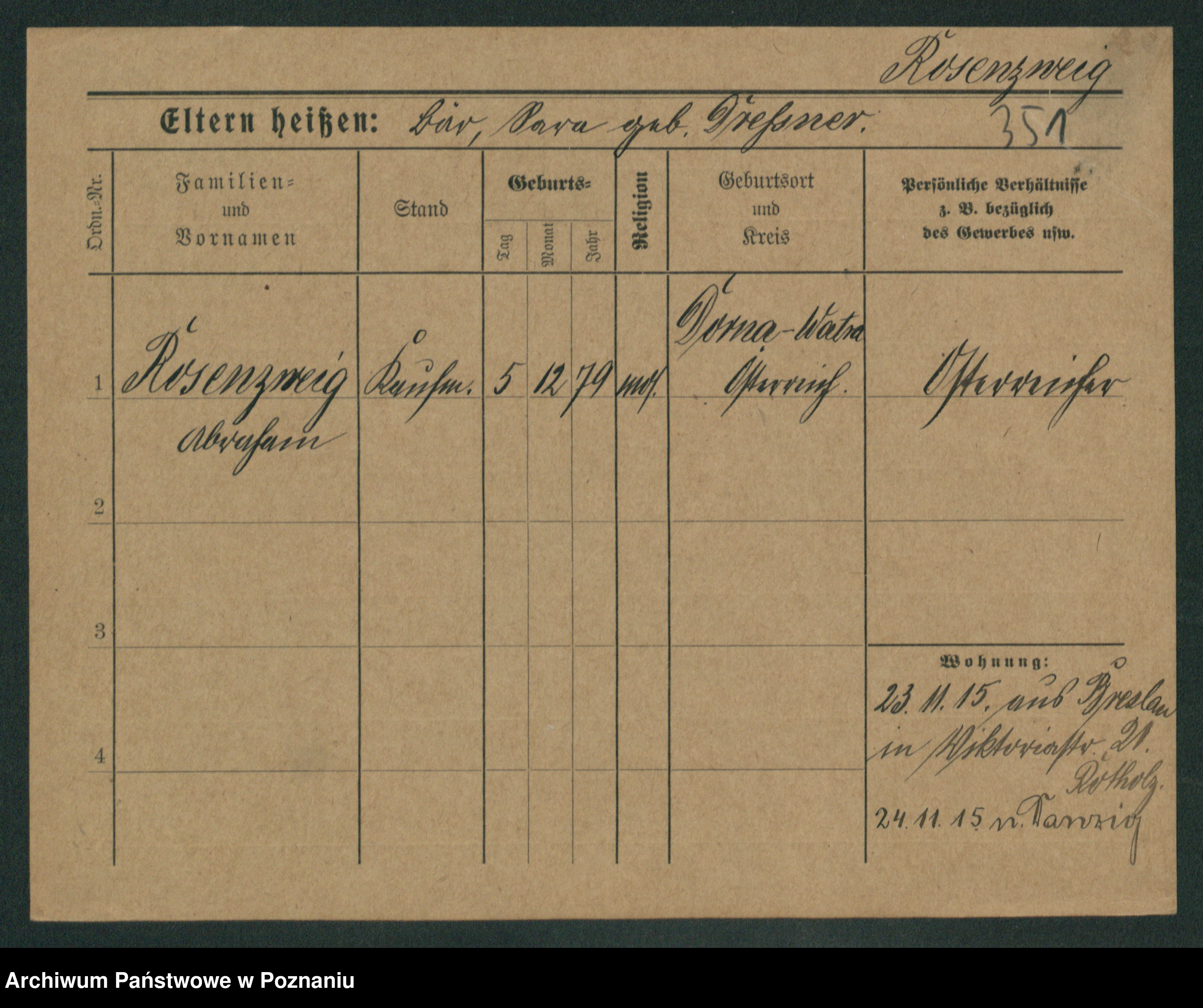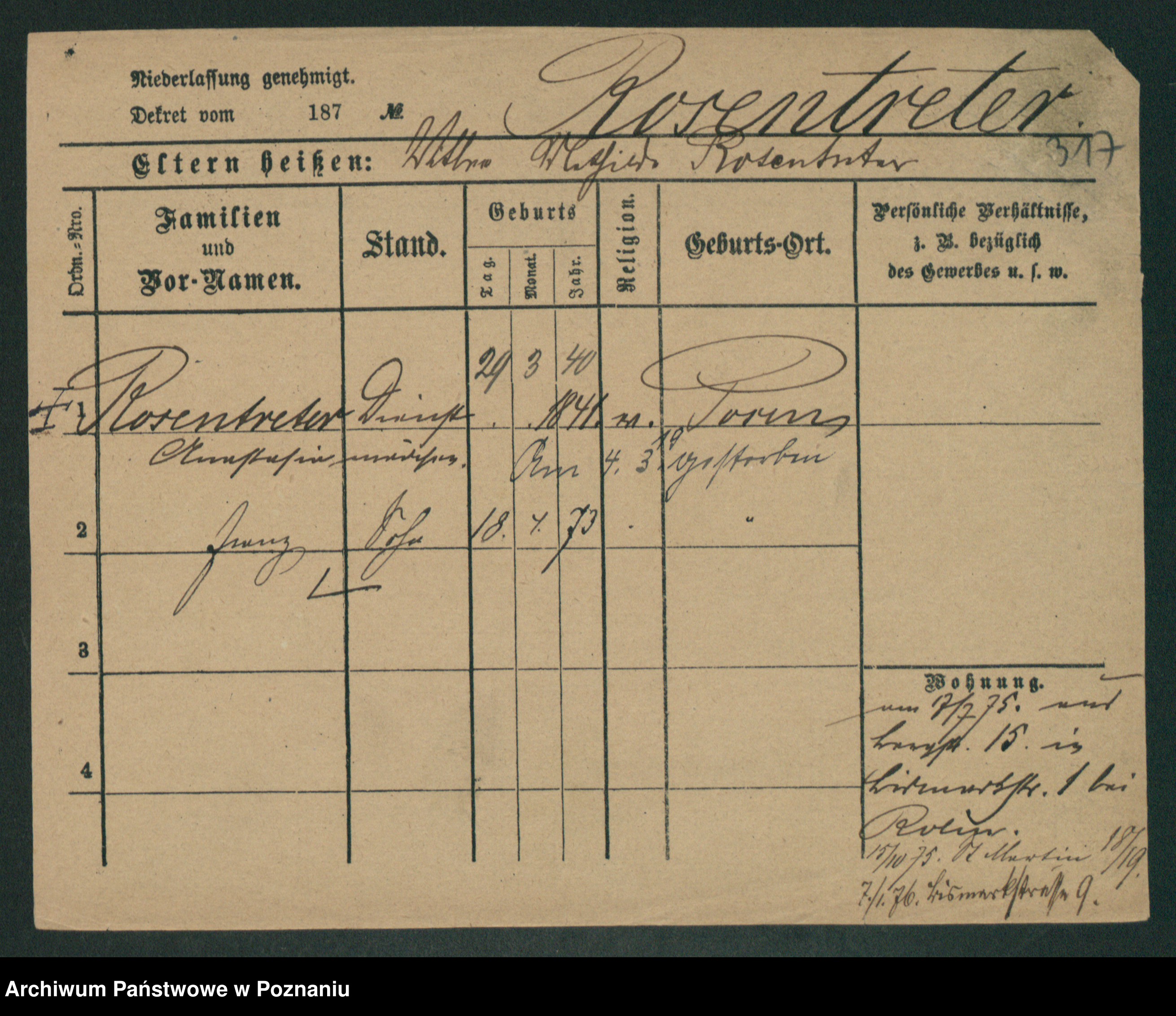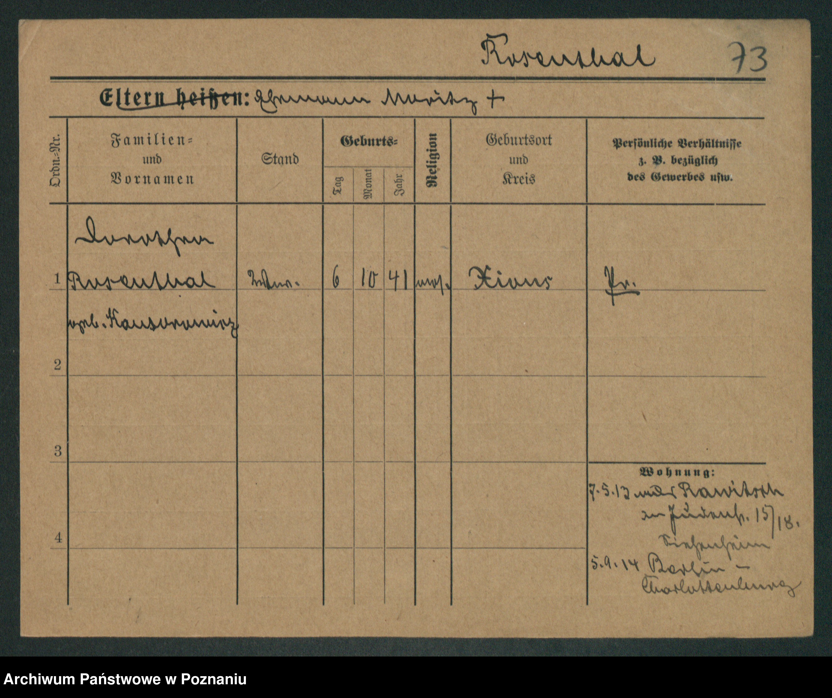 Rosenthal z d. Sperling I voto Damidt, Rosalie