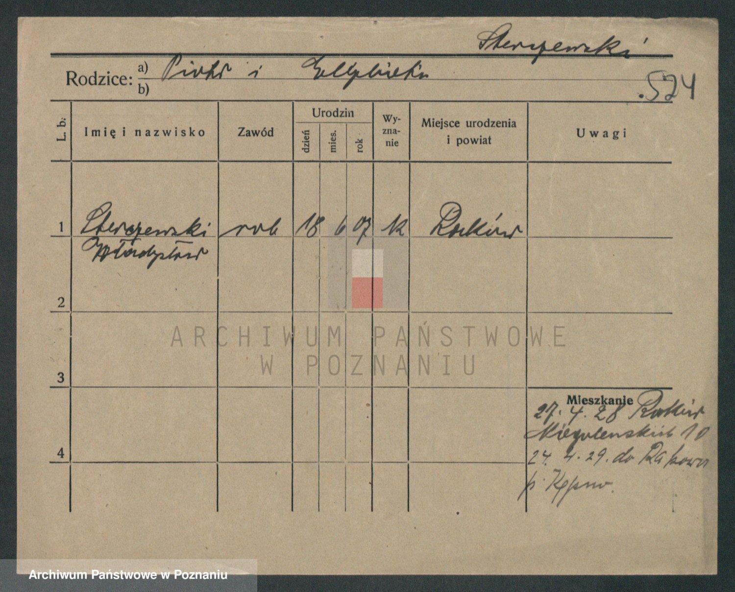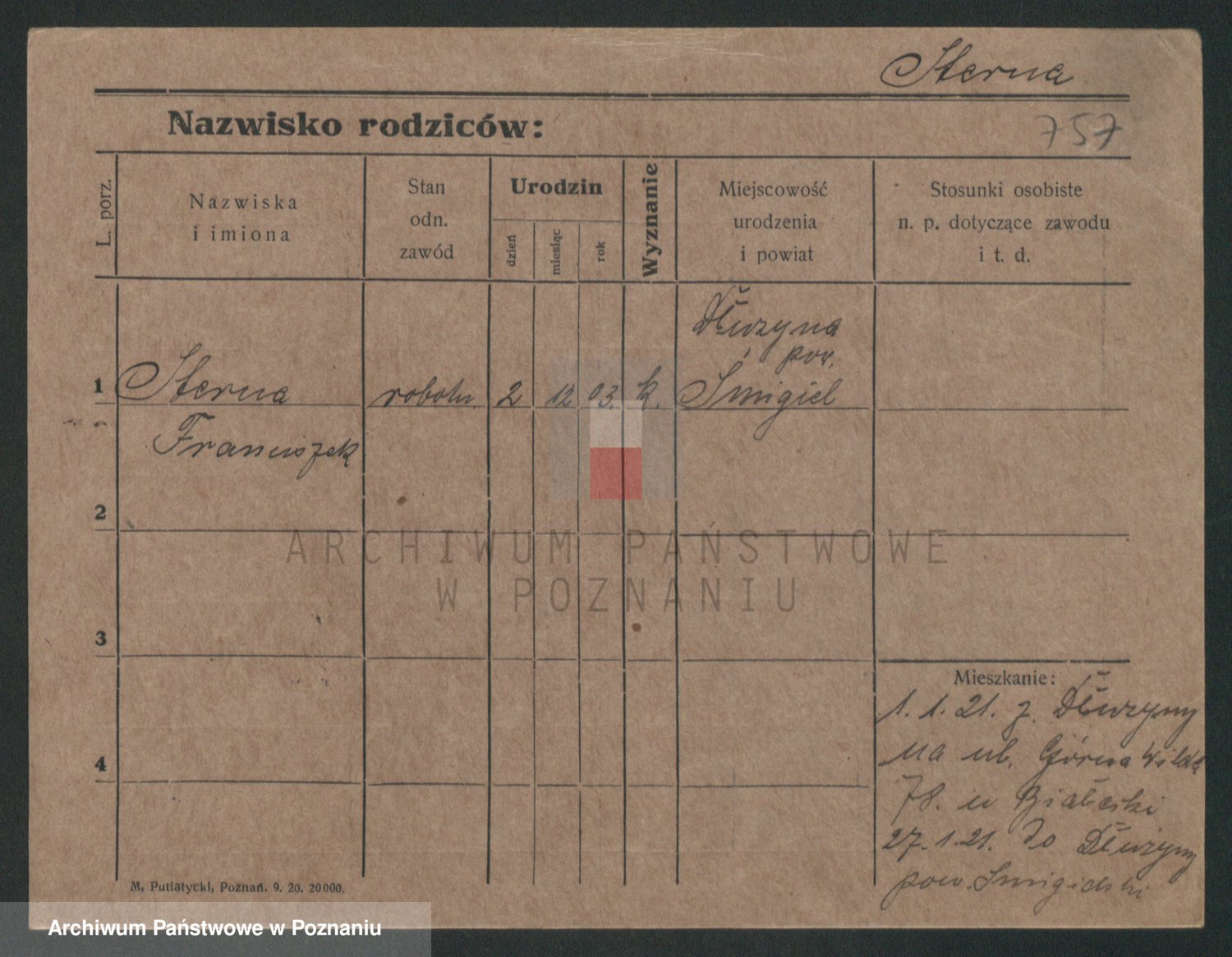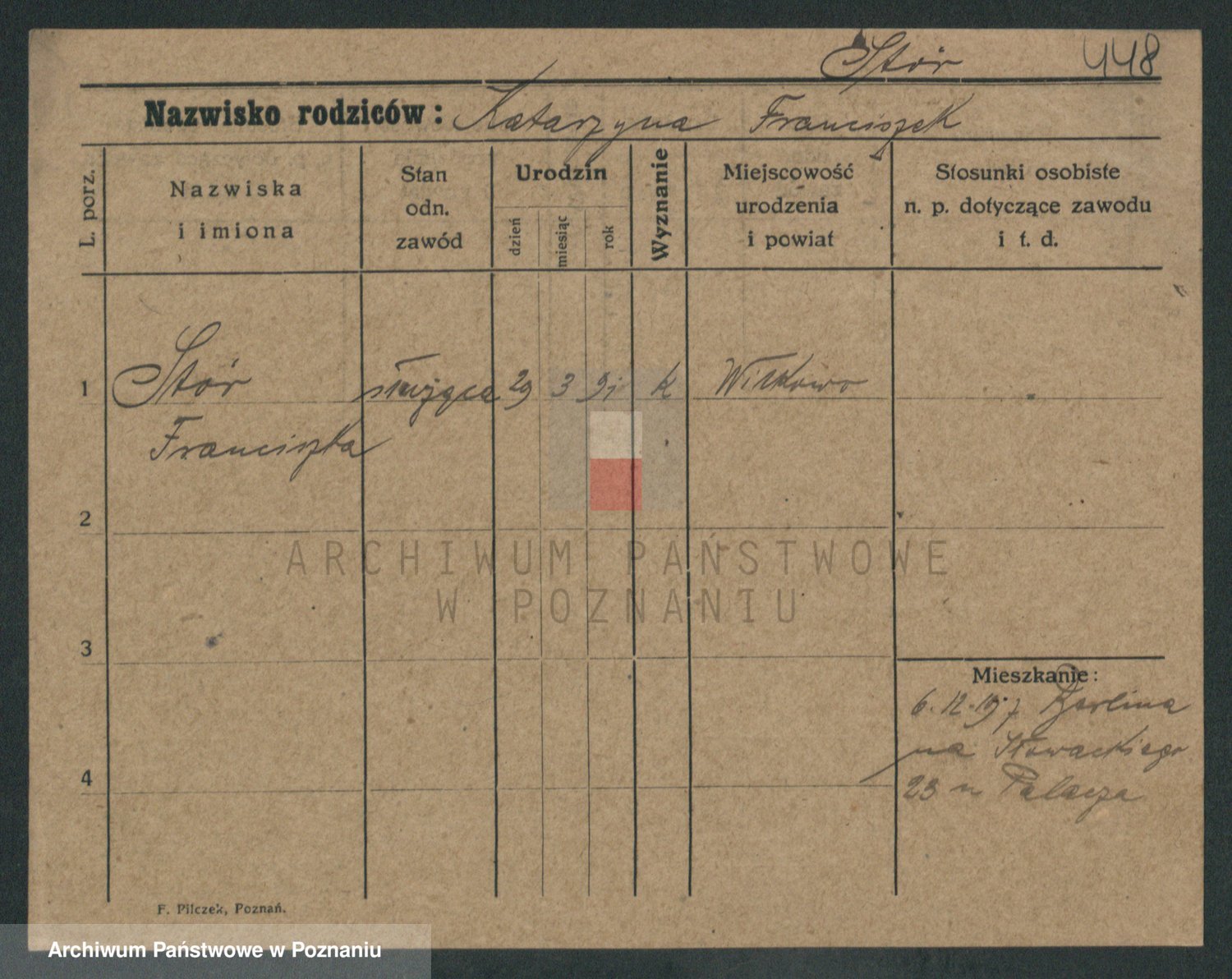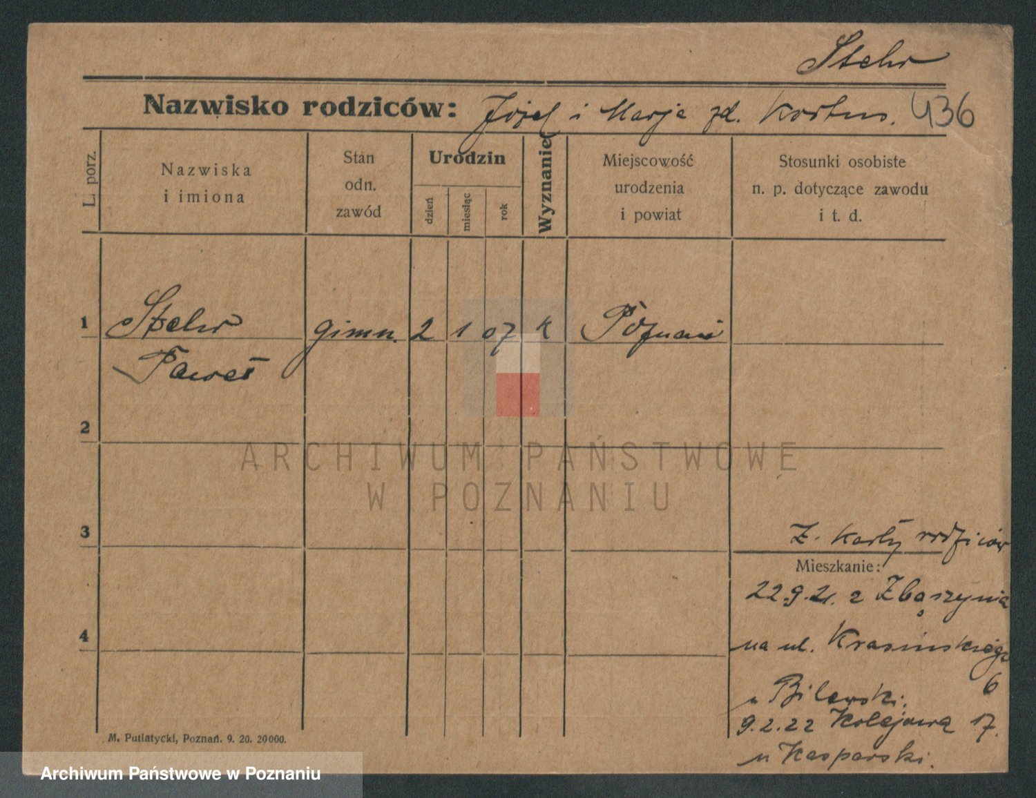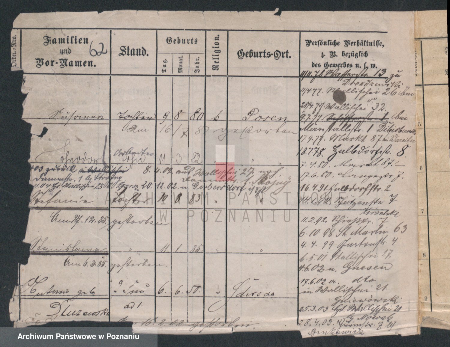 Podgląd karty osobowej dostępny jest po kliknięciu na nazwisko lub ikonkę karty. Można dokonywać powiększenia (ikony na górze) lub przechodzić między kolejnymi skanami (strzałki po bokach).