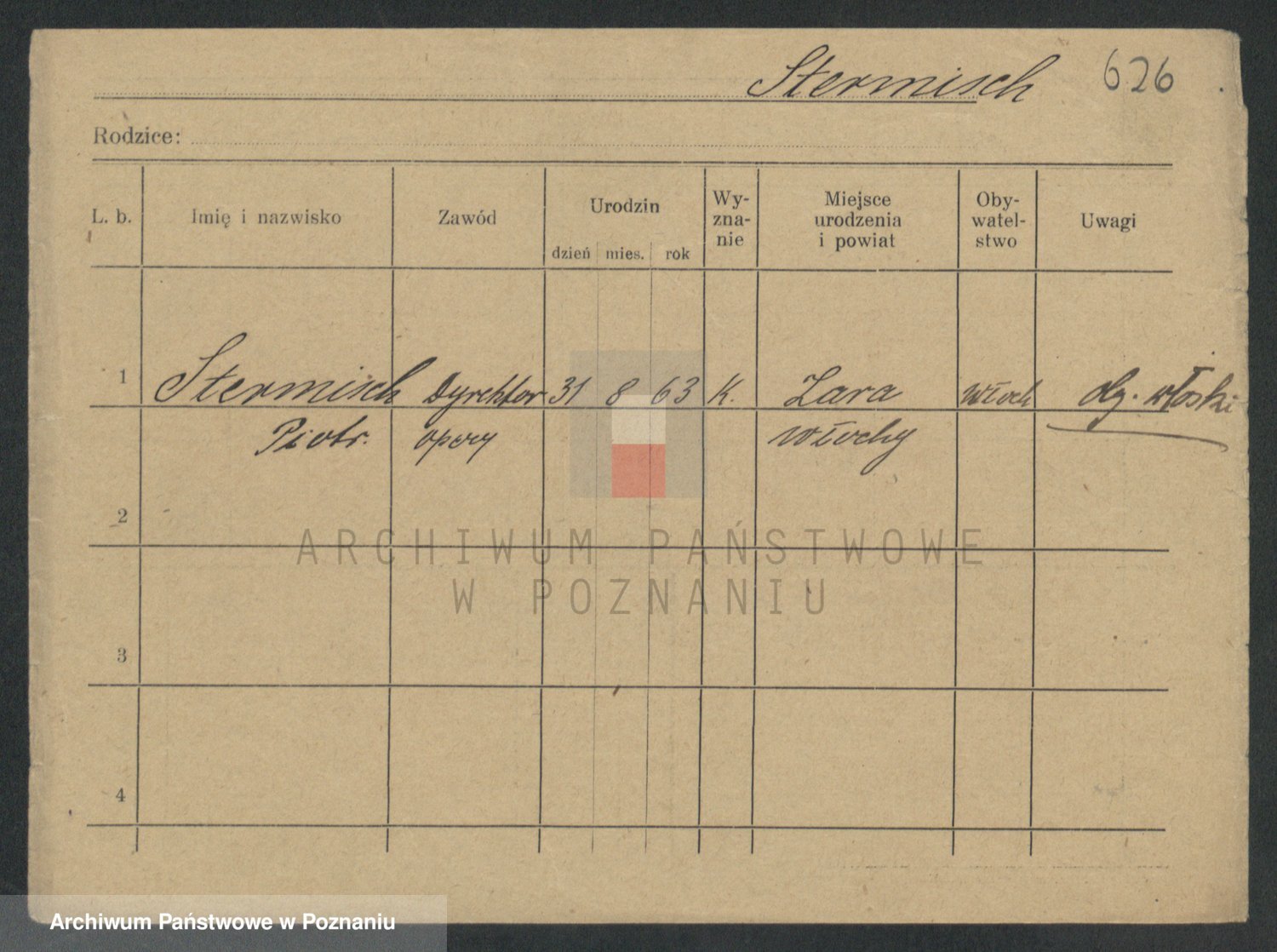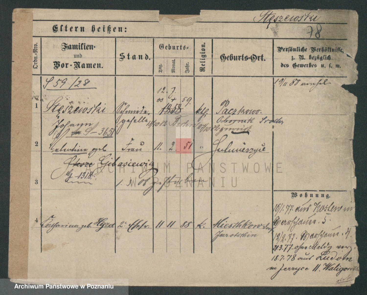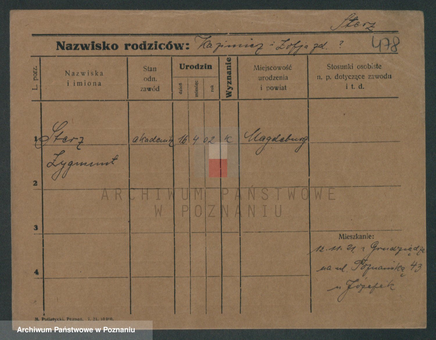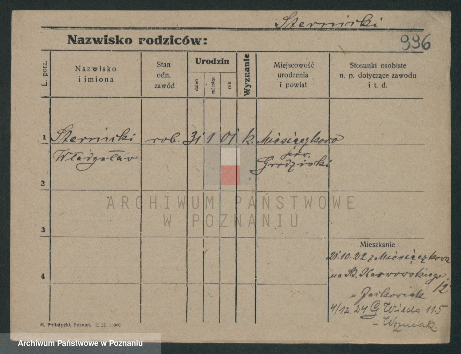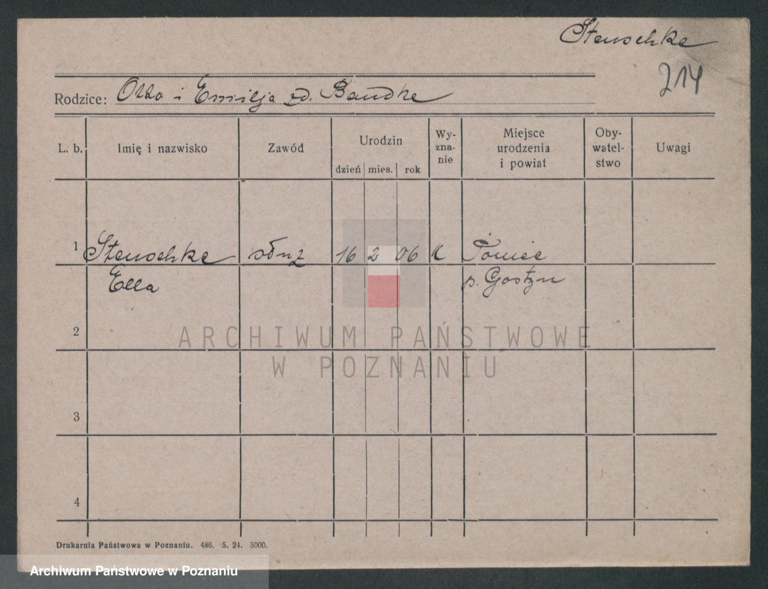 Podgląd karty osobowej dostępny jest po kliknięciu na nazwisko lub ikonkę karty. Można dokonywać powiększenia (ikony na górze) lub przechodzić między kolejnymi skanami (strzałki po bokach).