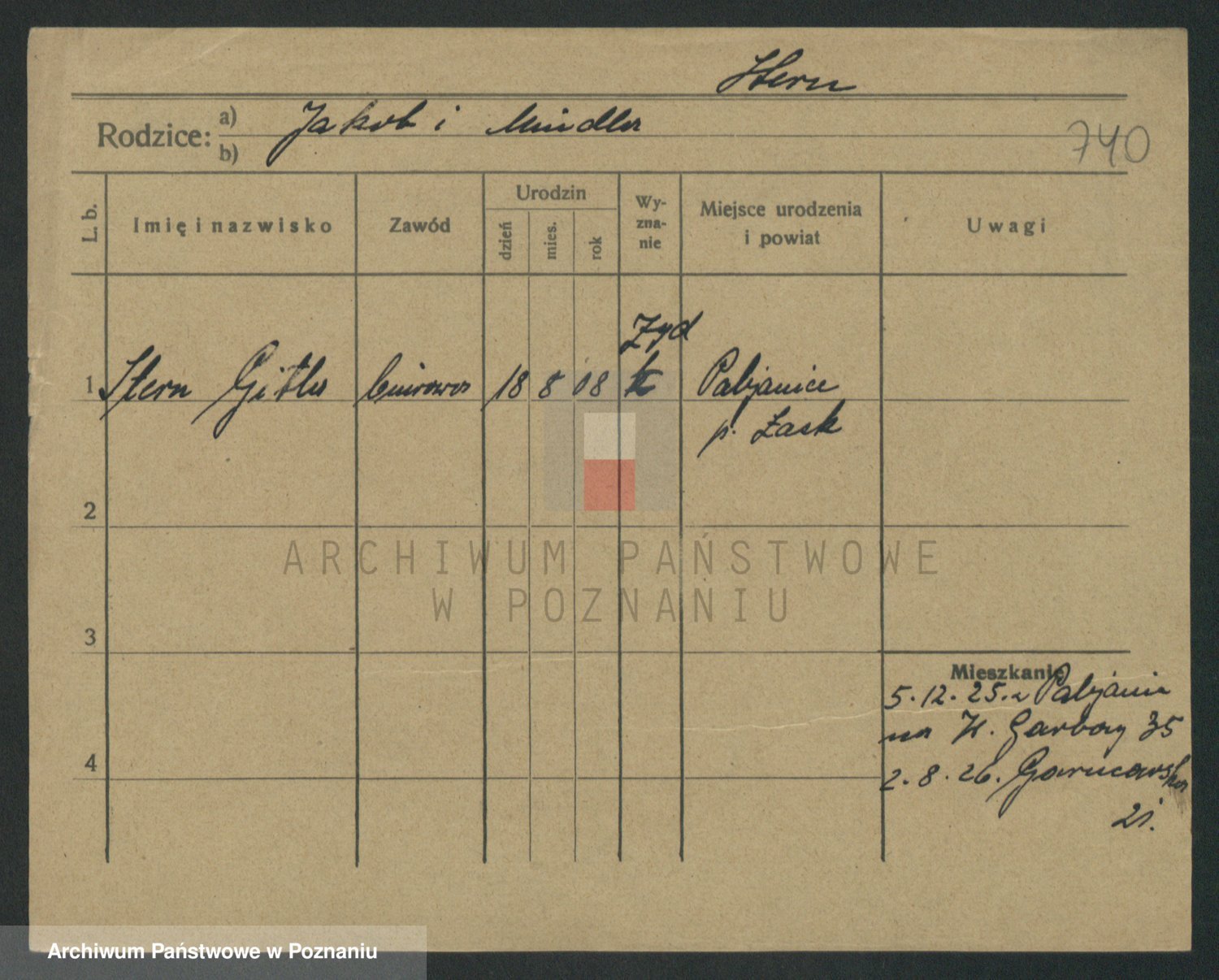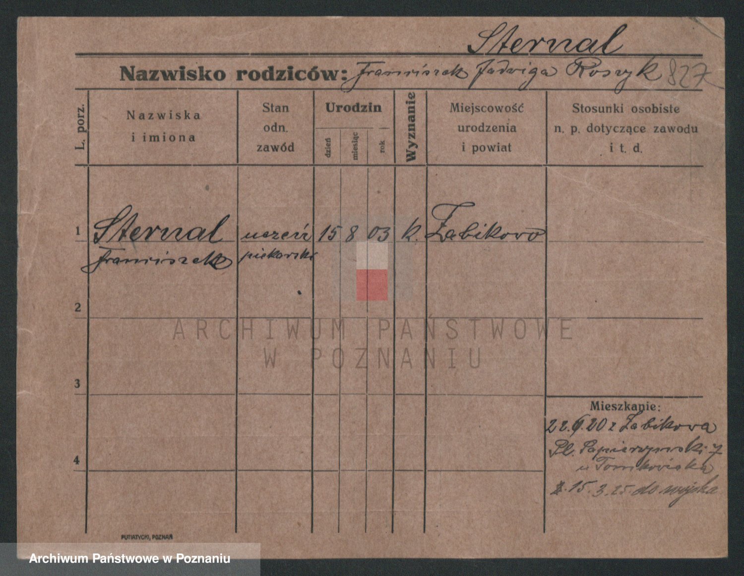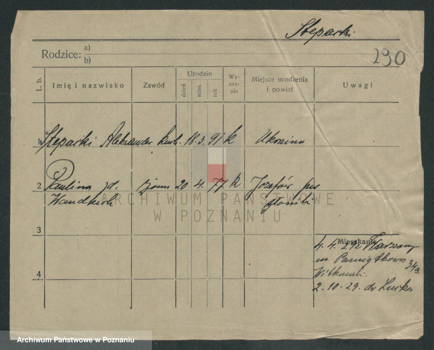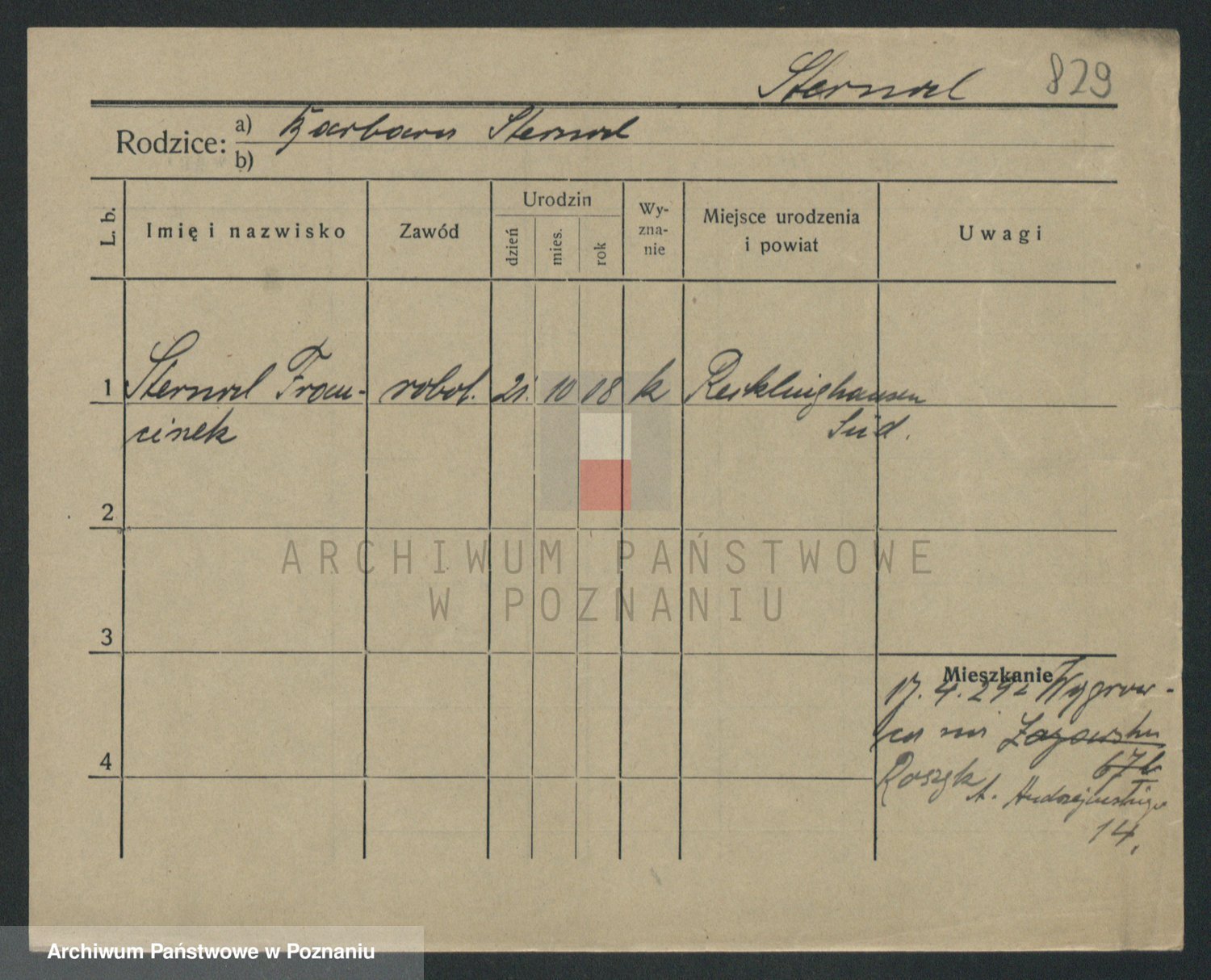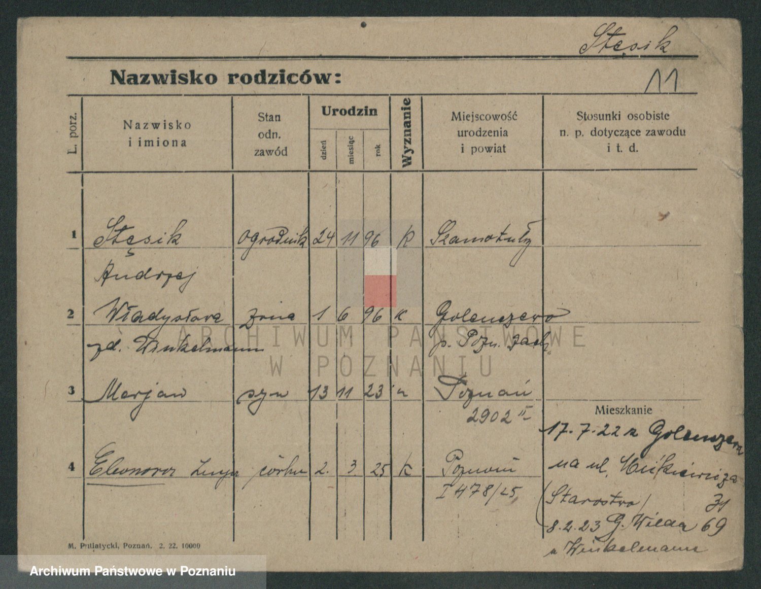 Podgląd karty osobowej dostępny jest po kliknięciu na nazwisko lub ikonkę karty. Można dokonywać powiększenia (ikony na górze) lub przechodzić między kolejnymi skanami (strzałki po bokach).